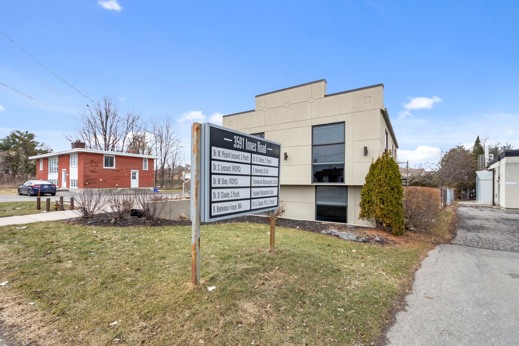 Professional office space for lease with excellent street front presence and visibility along bustling Innes Rd. 150 sqft office with quick access to HWY 417, public transit at your door and on-site parking. Modern building with large windows, common waiting area and shared kitchen. Perfect for all professional business types.