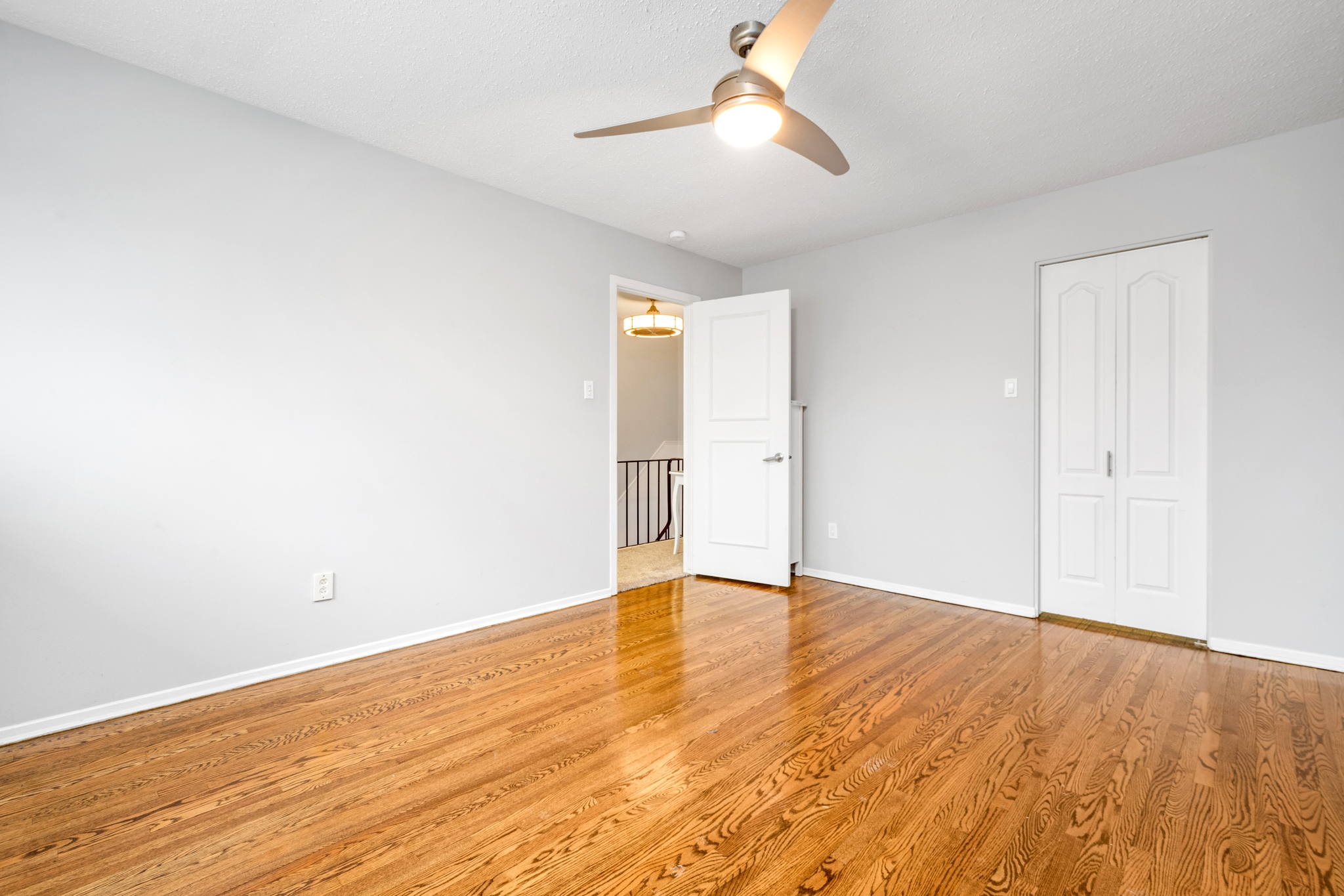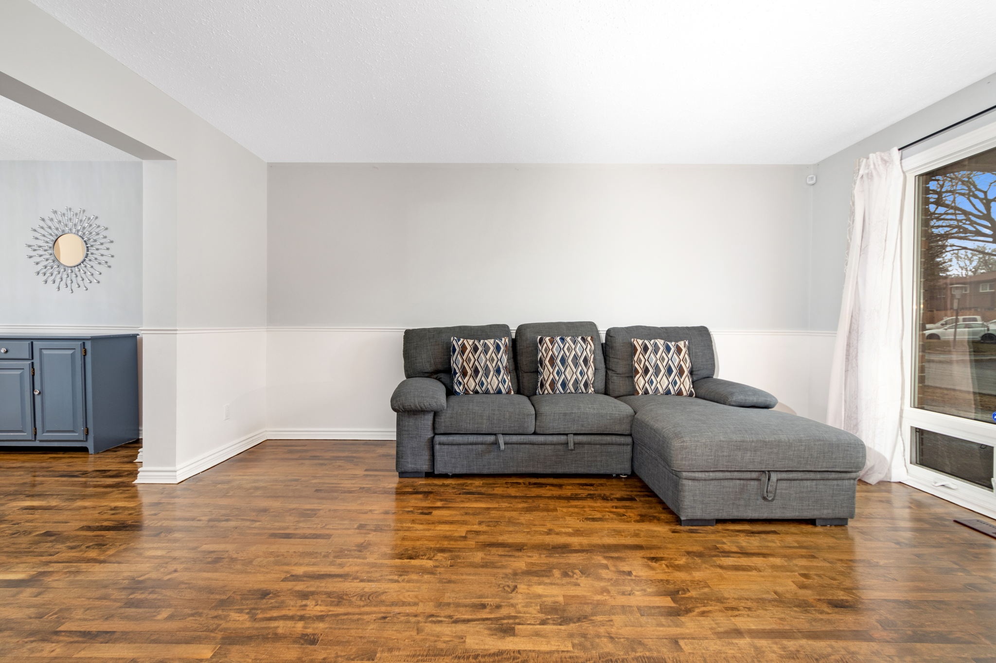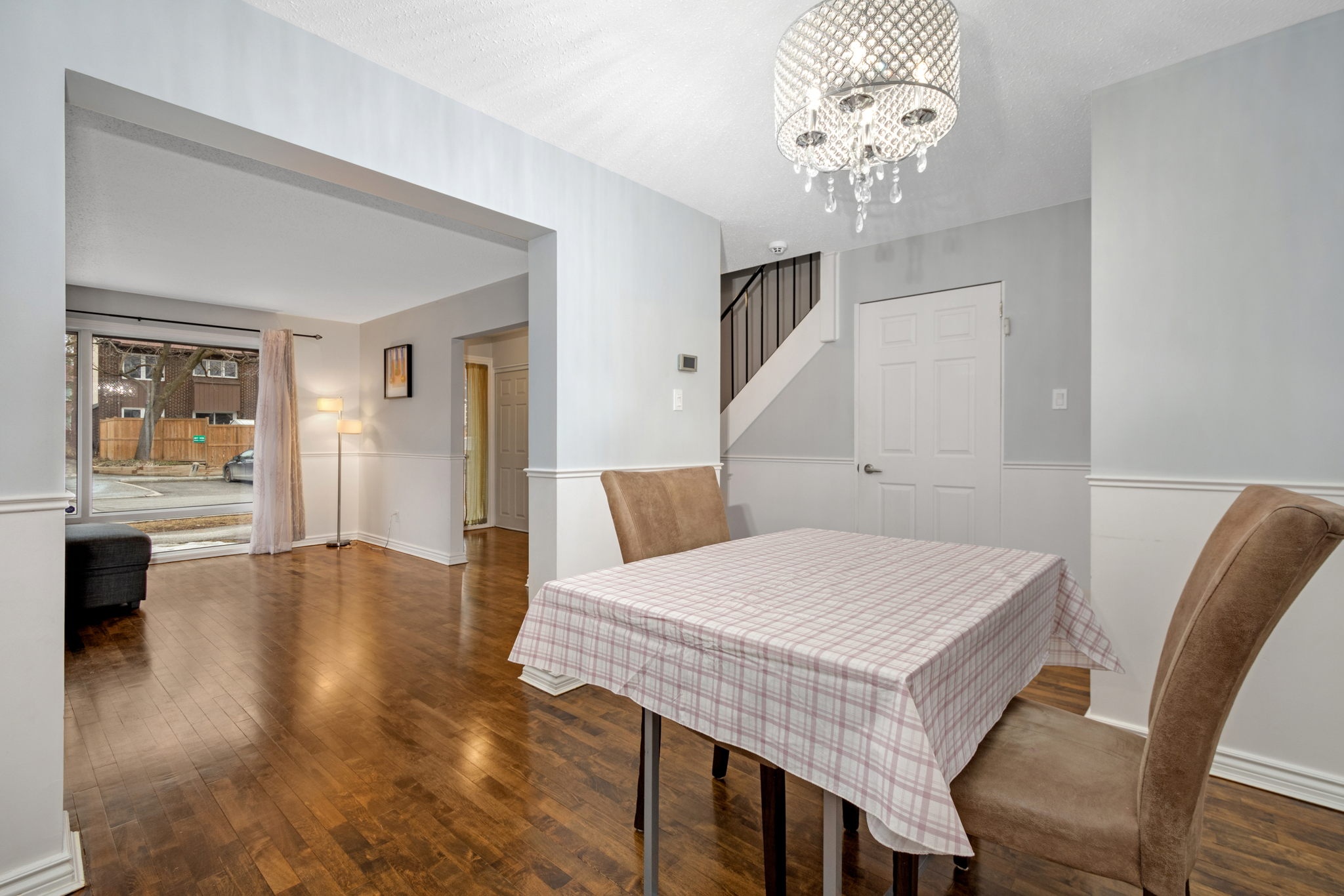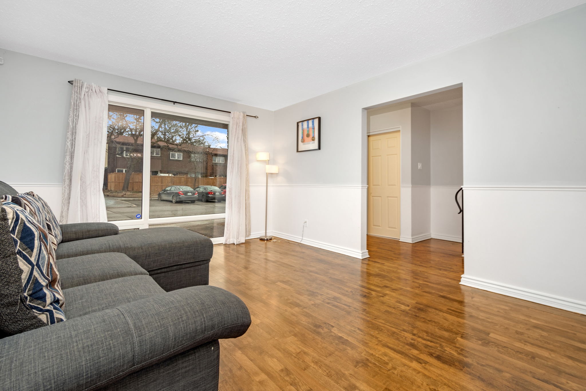 Calling all first-time homebuyers or those looking to downsize! This 3 bedroom, 2 bathroom townhome with a detached garage and plenty of upgrades presents a main floor layout with loads of natural light and gorgeous hardwood flooring throughout. Enjoy the gorgeous updated kitchen with ample cabinetry and eating area with patio door access to your private backyard with no rear neighbours and detached garage. Second level features 3 generous sized bedrooms and updated full bath with stunning tile flooring. Finished lower level with laundry room, powder room and spacious recroom perfect for bonus living space. Close to nearby parks, public transit and shopping.