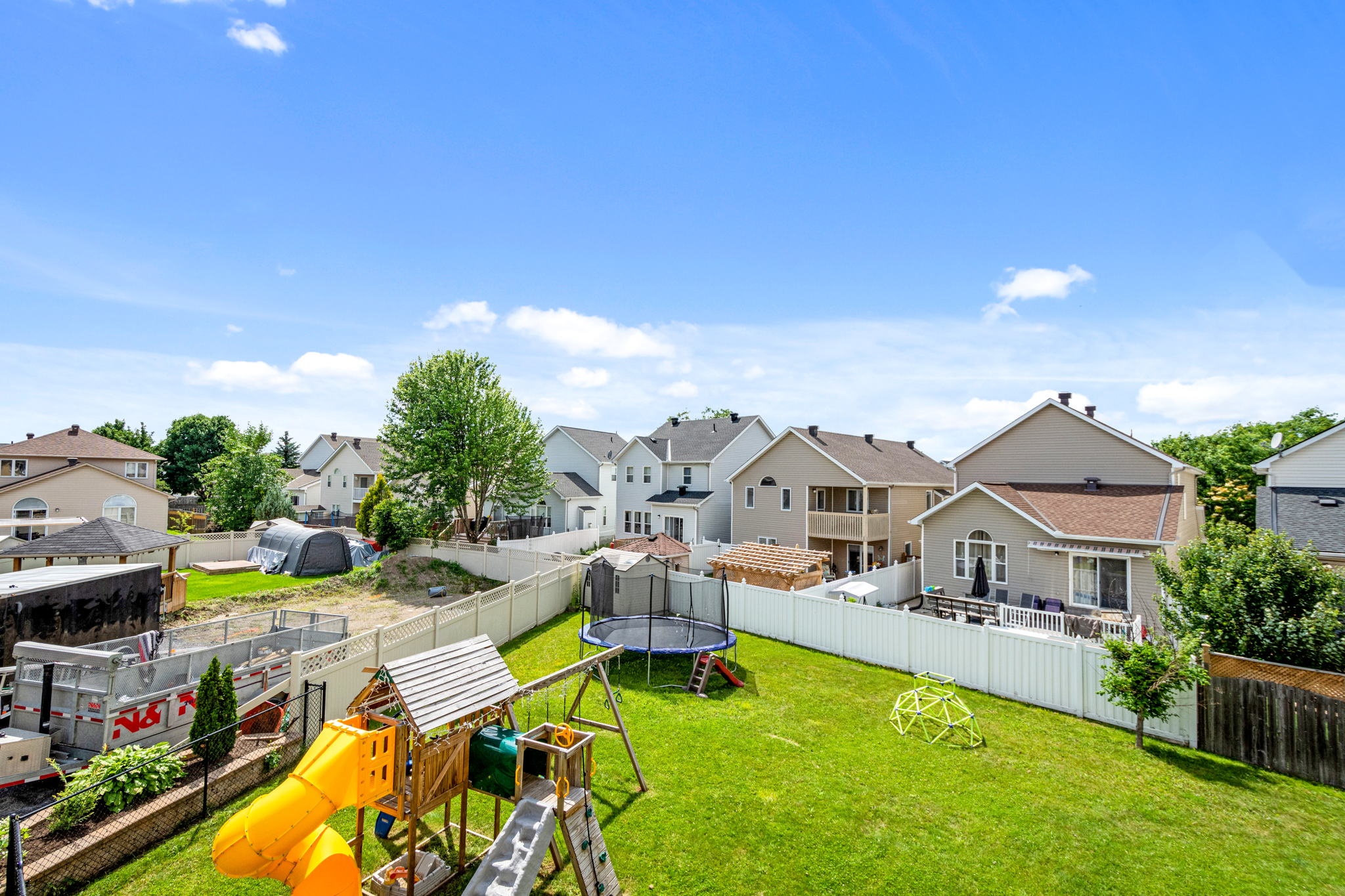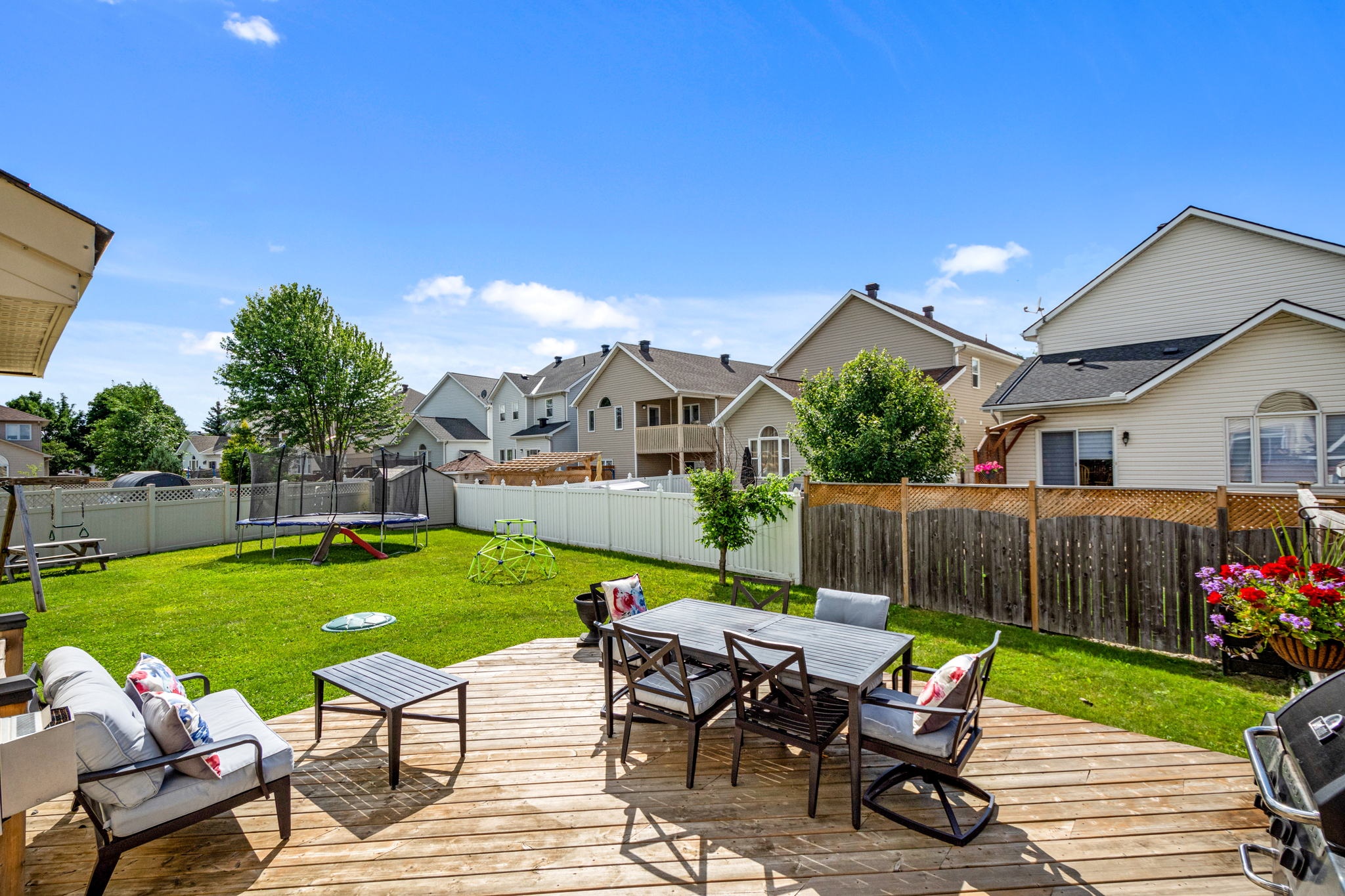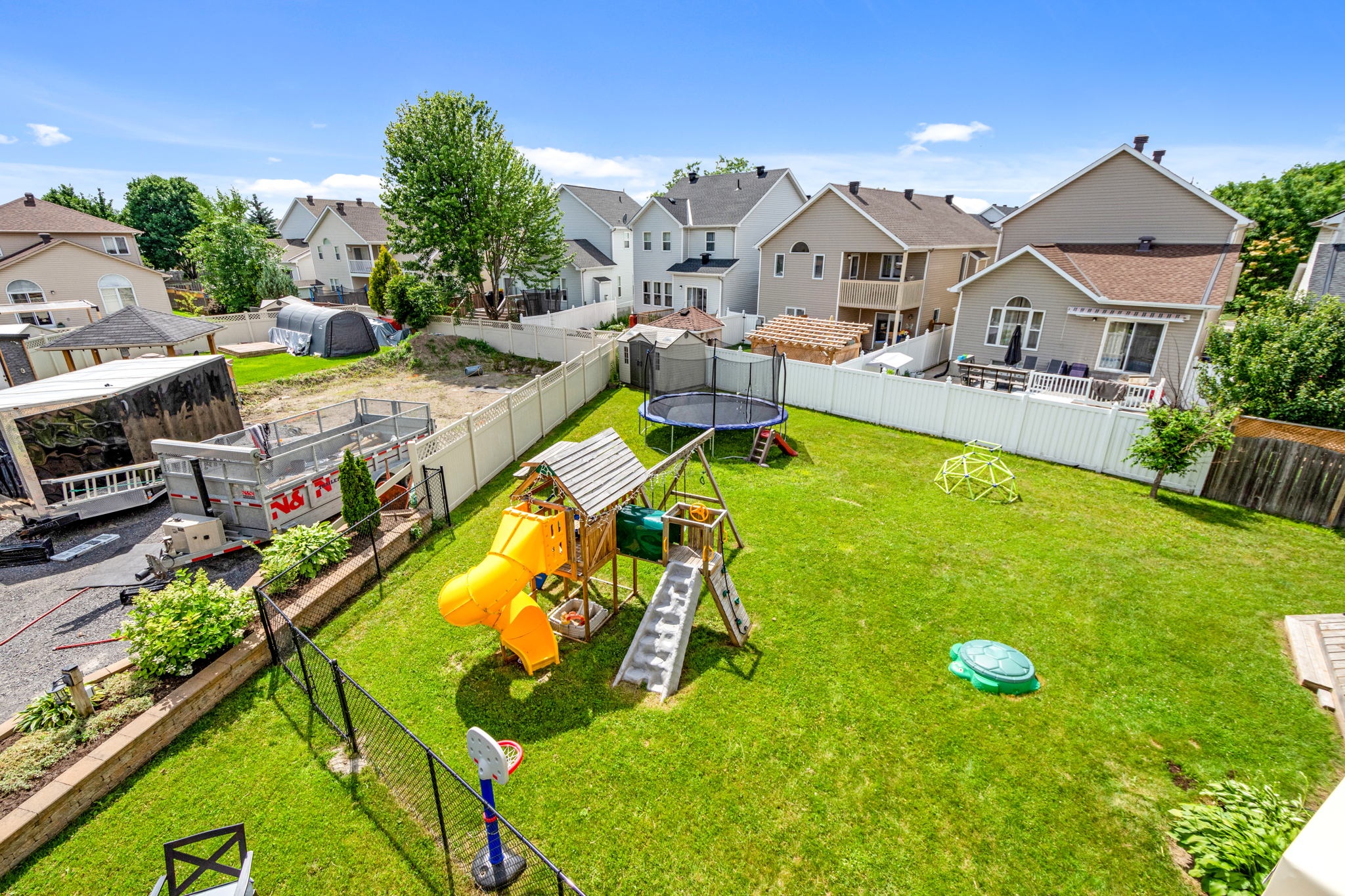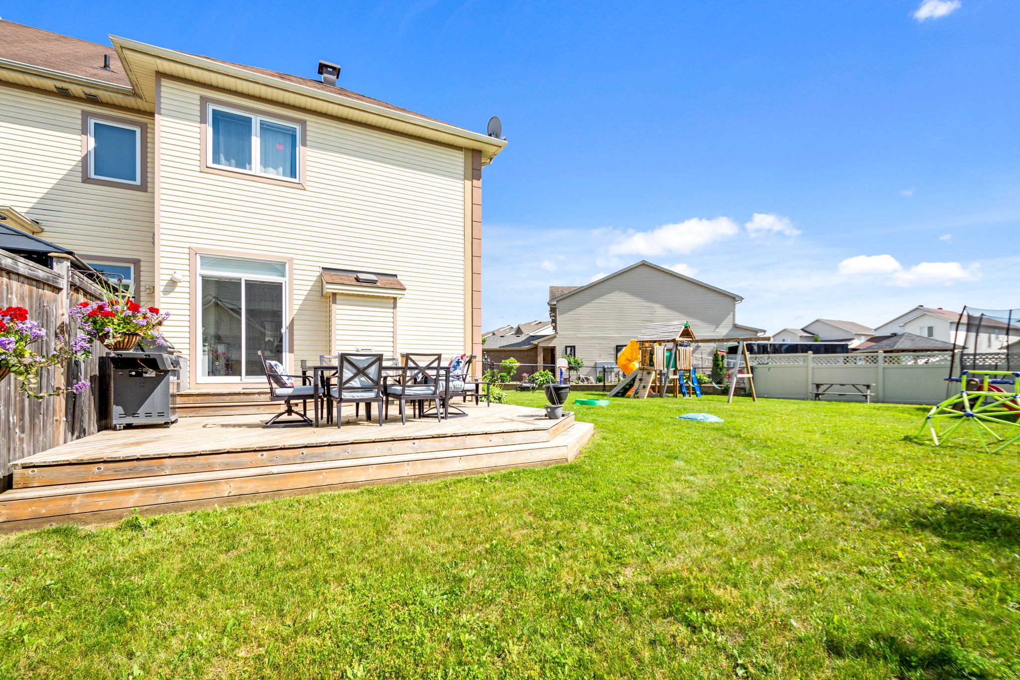 A rare find! This stylish executive townhome with a DOUBLE car garage and a MASSIVE rear yard is just what you’ve been looking for! An inviting entry leads to this naturally flowing, sun filled main level floor plan ornamented with stylish hardwood floors, striking 9ft ceilings and picture windows. The crisp white chef’s kitchen with chic backsplash and centre island oversees the principal living and dining rooms, perfect for entertaining and everyday living. Warm Berber carpet grace the upstairs where you will discover 2 balconies, a large primary suite complete with WIC and 5pc ensuite, three generous second bedrooms serviced by a full bathroom and laundry centre. A versatile lower level presents bonus living space perfect for a home theatre, gym, or both, a 2pc bathroom and ample storage. The fenced oversized lot with an entertainment sized deck and plenty of greenspace is a welcoming extension to this one-of-a-kind home. Your search stops here!