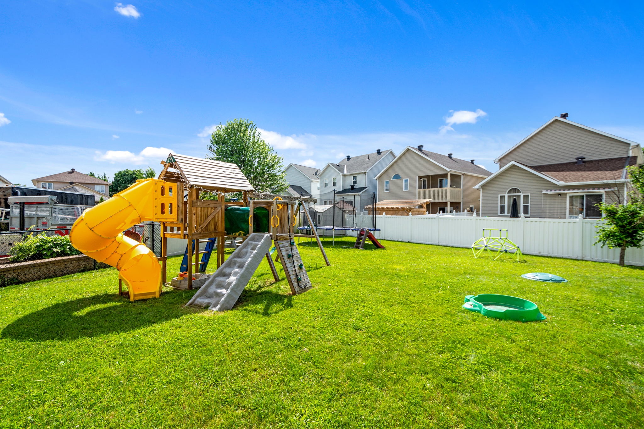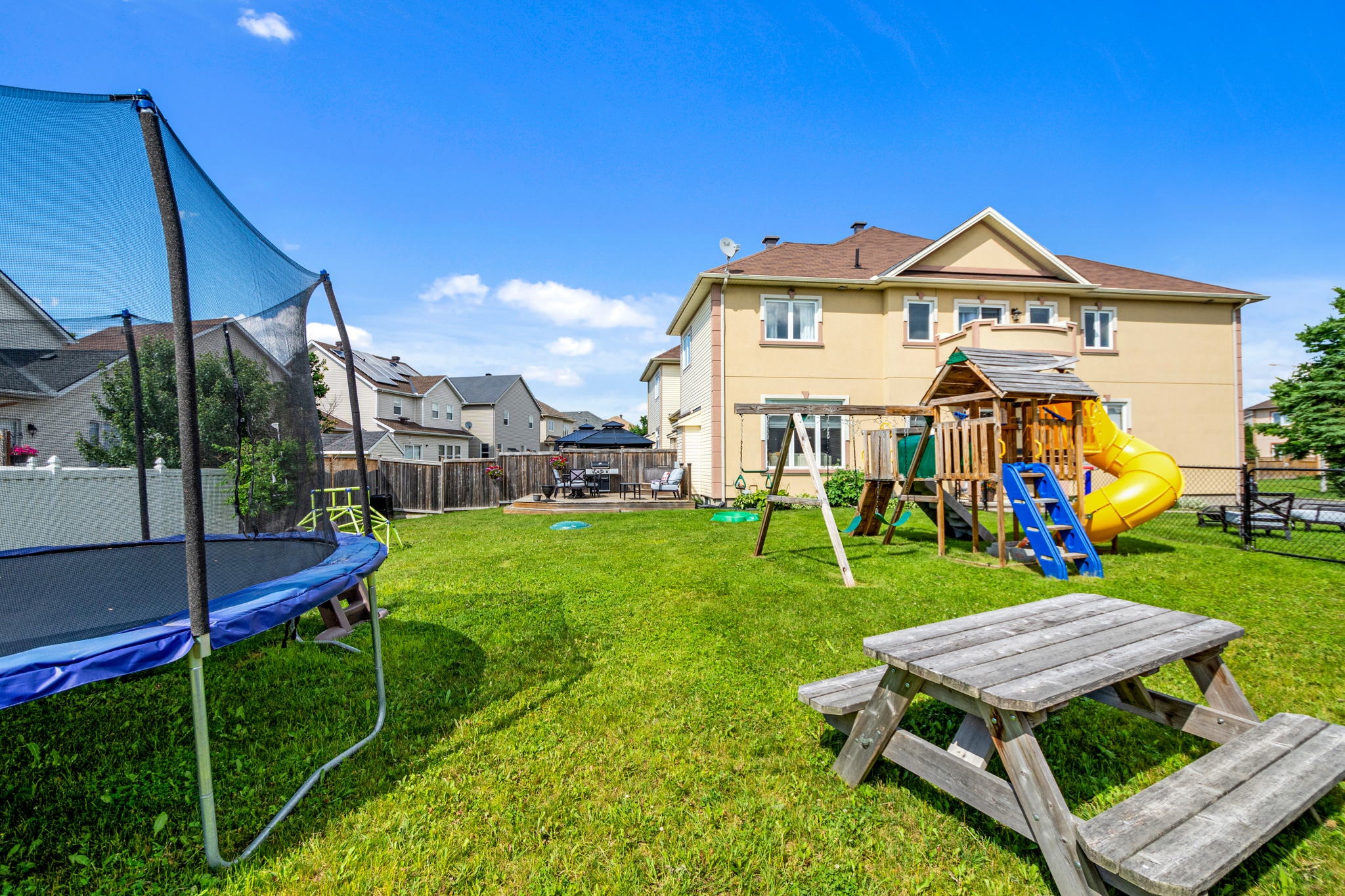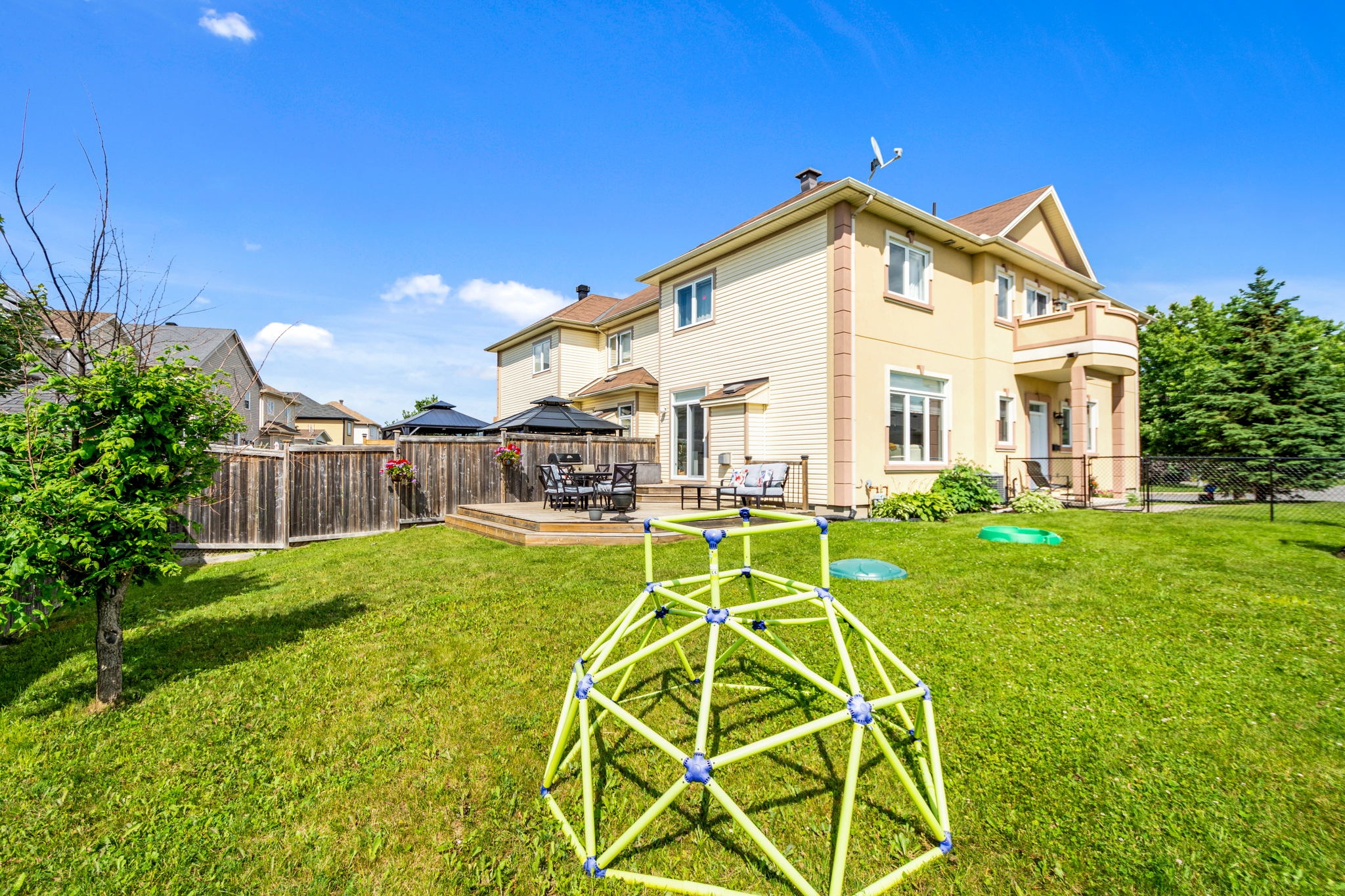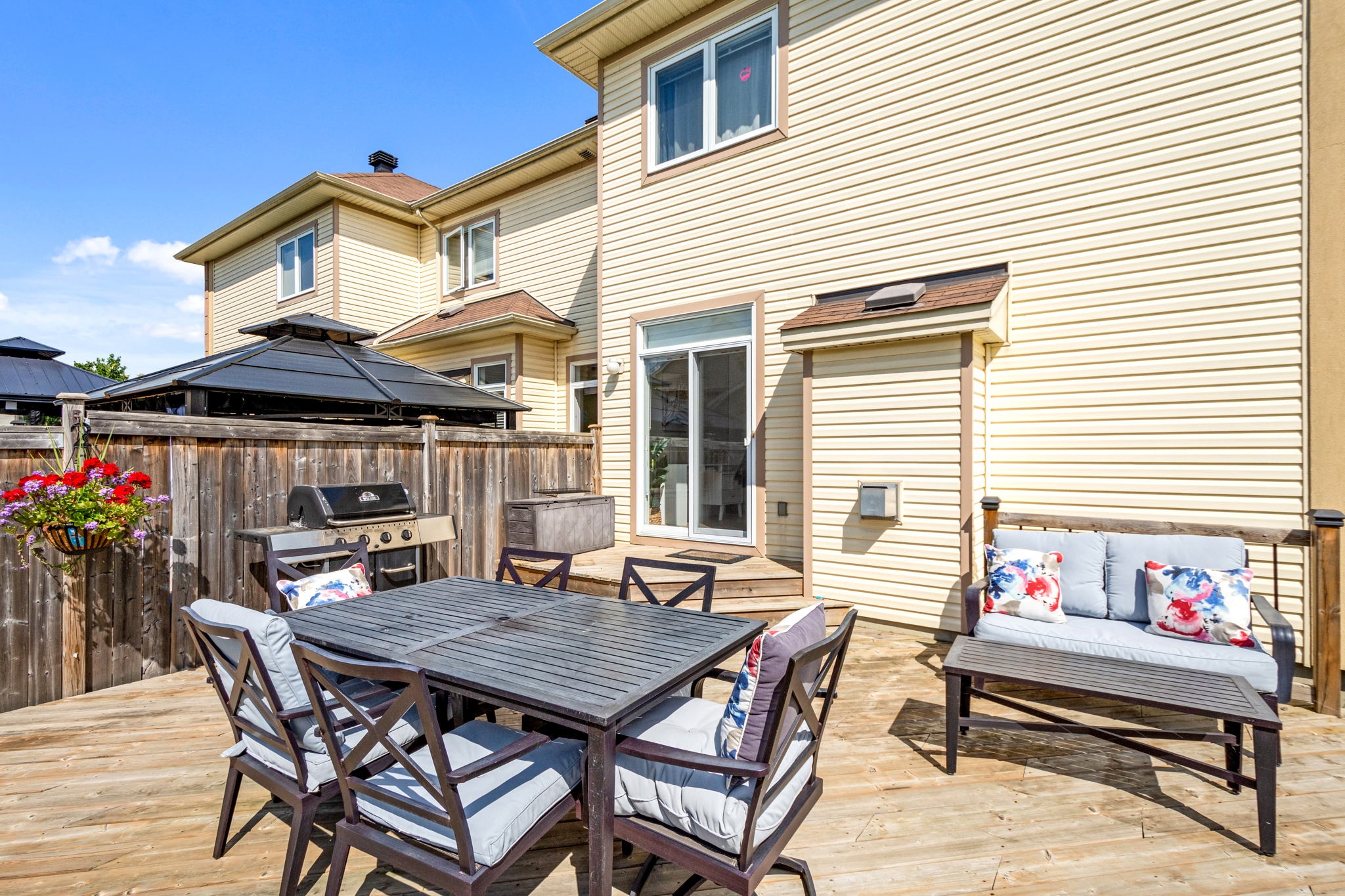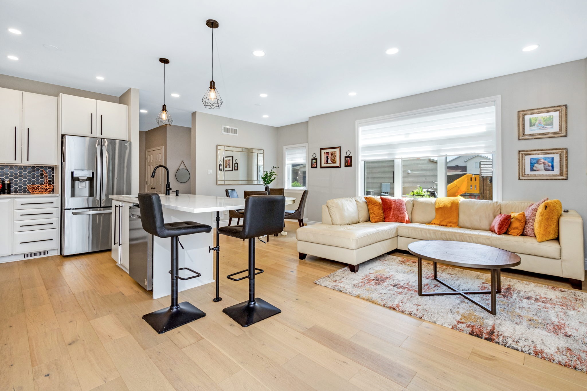 A rare find! This stylish executive townhome with a DOUBLE car garage and a MASSIVE rear yard is just what you’ve been looking for! An inviting entry leads to this naturally flowing, sun filled main level floor plan ornamented with stylish hardwood floors, striking 9ft ceilings and picture windows. The crisp white chef’s kitchen with chic backsplash and centre island oversees the principal living and dining rooms, perfect for entertaining and everyday living. Warm Berber carpet grace the upstairs where you will discover 2 balconies, a large primary suite complete with WIC and 5pc ensuite, three generous second bedrooms serviced by a full bathroom and laundry centre. A versatile lower level presents bonus living space perfect for a home theatre, gym, or both, a 2pc bathroom and ample storage. The fenced oversized lot with an entertainment sized deck and plenty of greenspace is a welcoming extension to this one-of-a-kind home. Your search stops here!