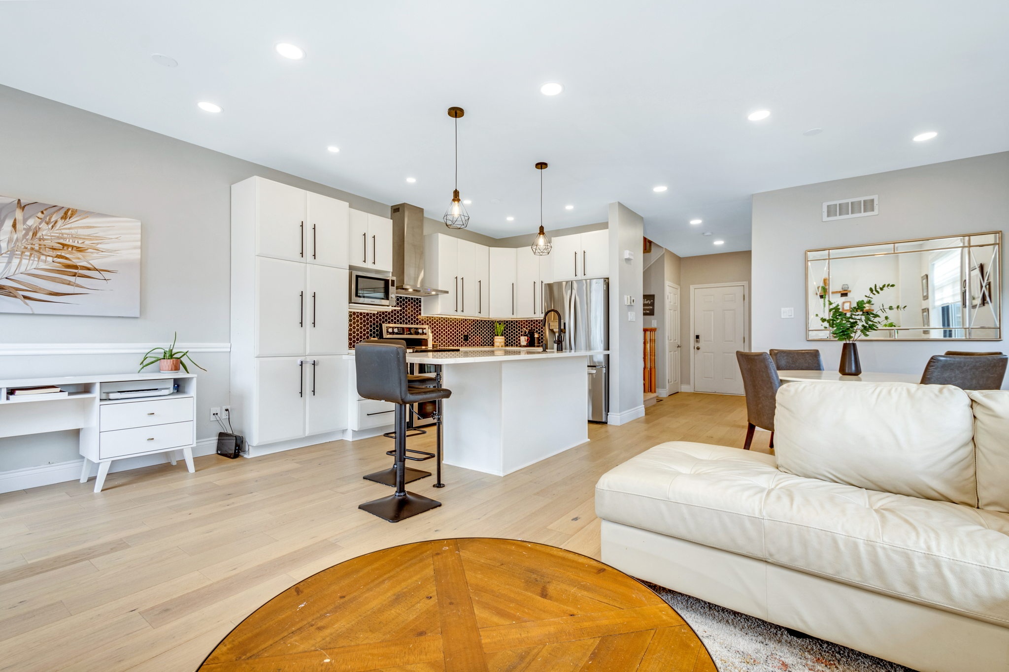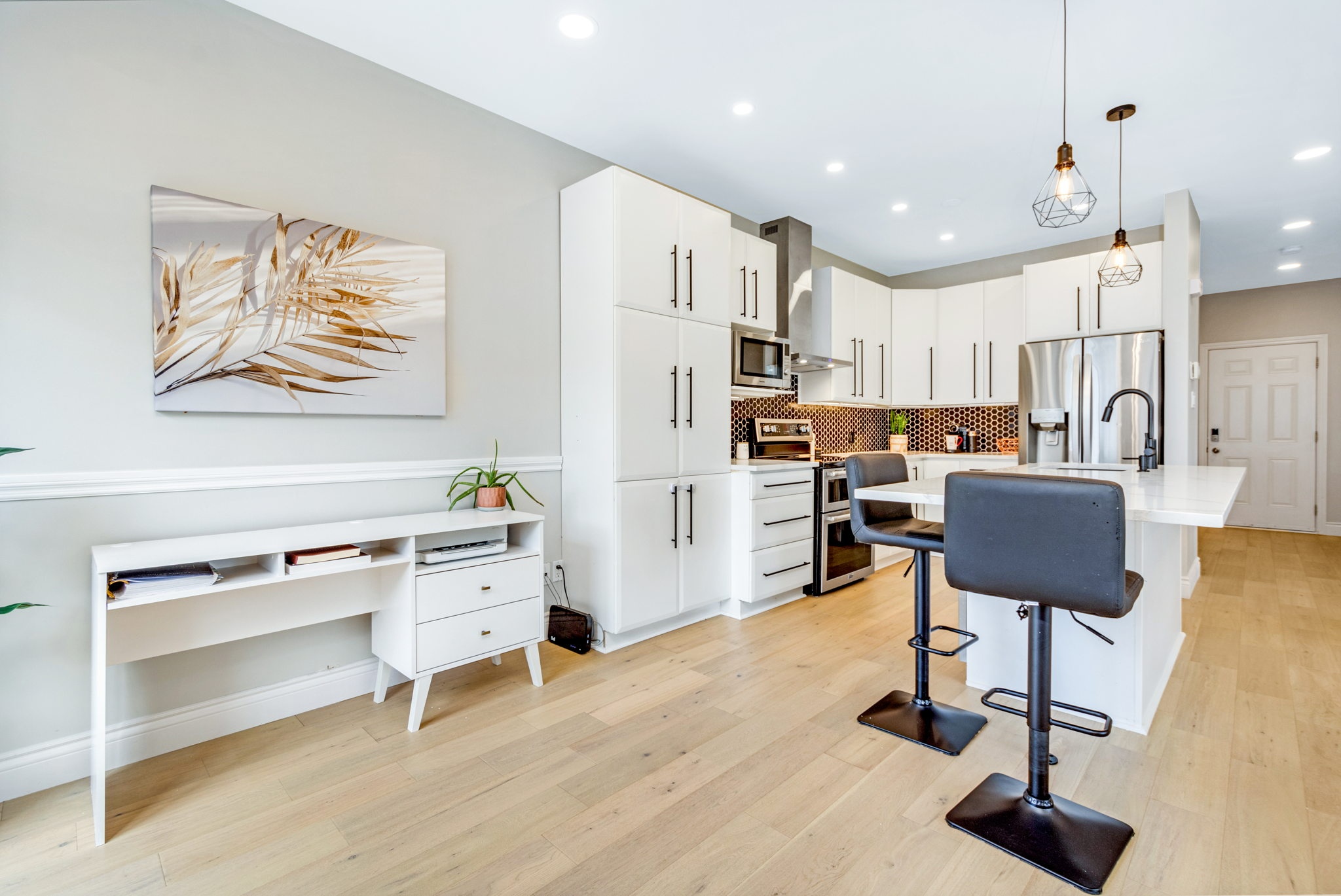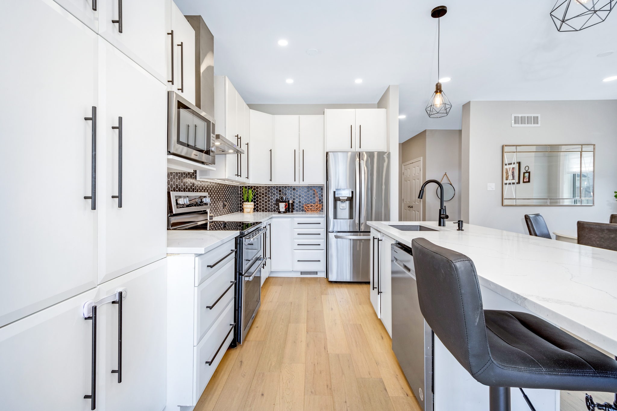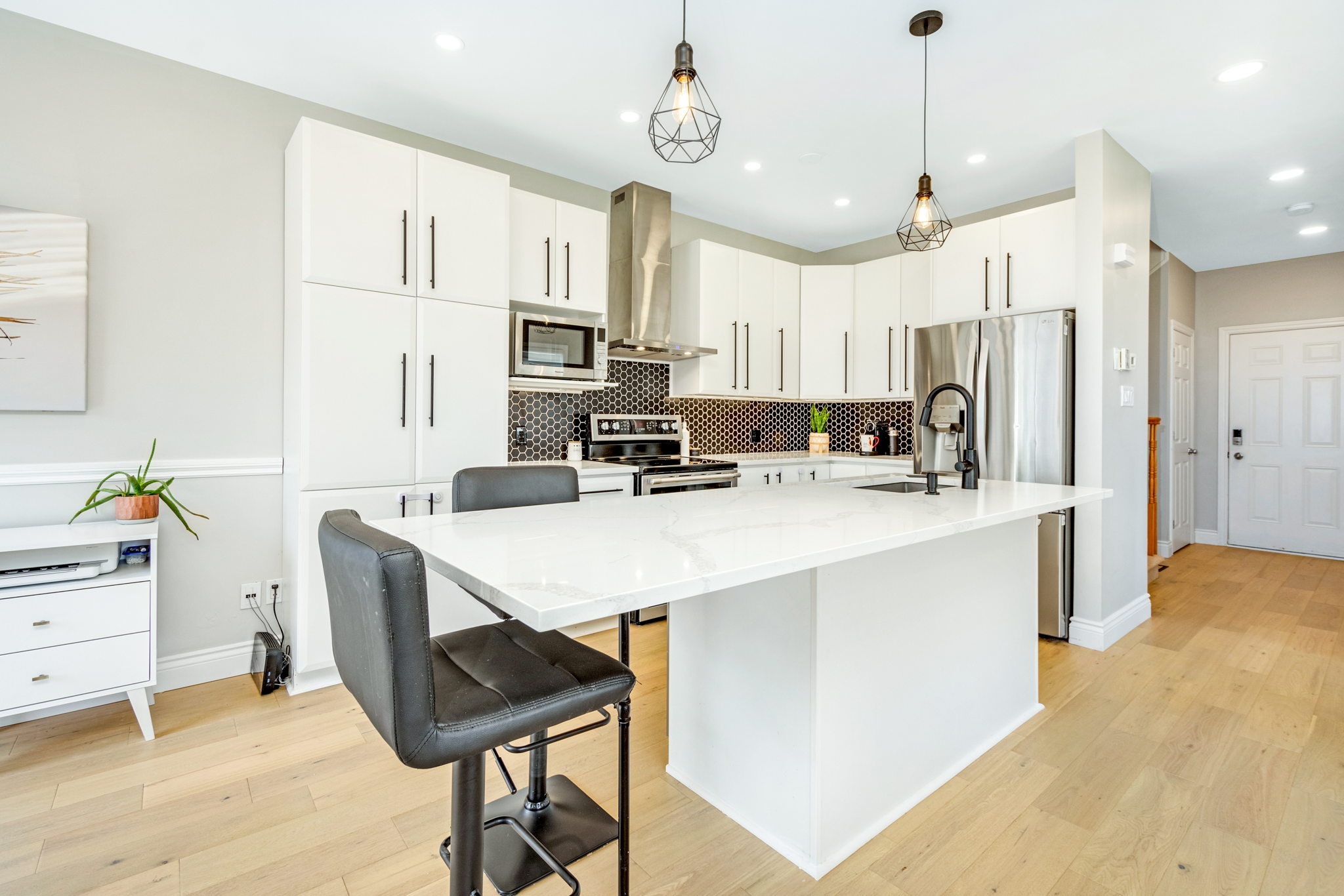 A rare find! This stylish executive townhome with a DOUBLE car garage and a MASSIVE rear yard is just what you’ve been looking for! An inviting entry leads to this naturally flowing, sun filled main level floor plan ornamented with stylish hardwood floors, striking 9ft ceilings and picture windows. The crisp white chef’s kitchen with chic backsplash and centre island oversees the principal living and dining rooms, perfect for entertaining and everyday living. Warm Berber carpet grace the upstairs where you will discover 2 balconies, a large primary suite complete with WIC and 5pc ensuite, three generous second bedrooms serviced by a full bathroom and laundry centre. A versatile lower level presents bonus living space perfect for a home theatre, gym, or both, a 2pc bathroom and ample storage. The fenced oversized lot with an entertainment sized deck and plenty of greenspace is a welcoming extension to this one-of-a-kind home. Your search stops here!