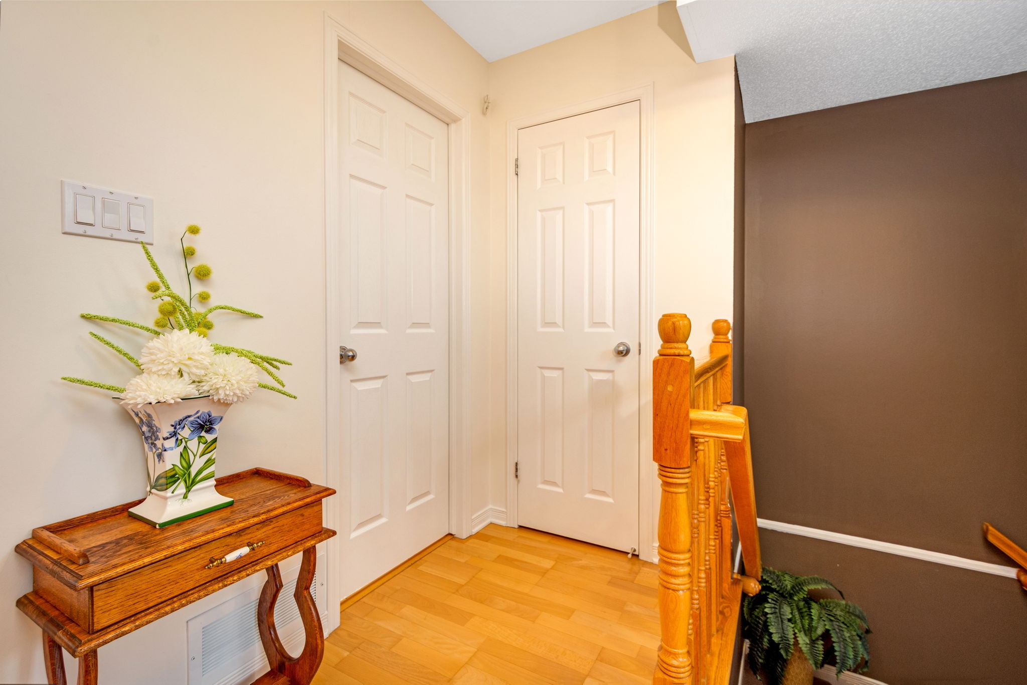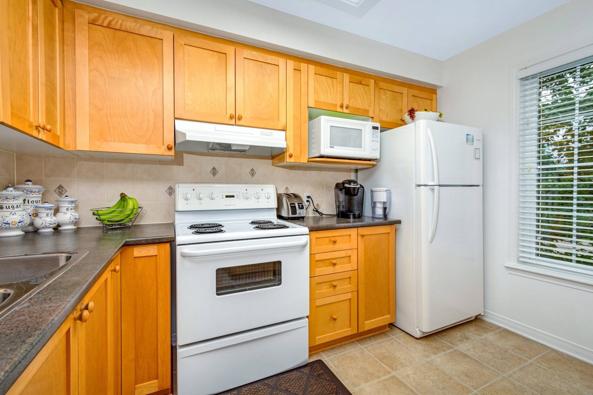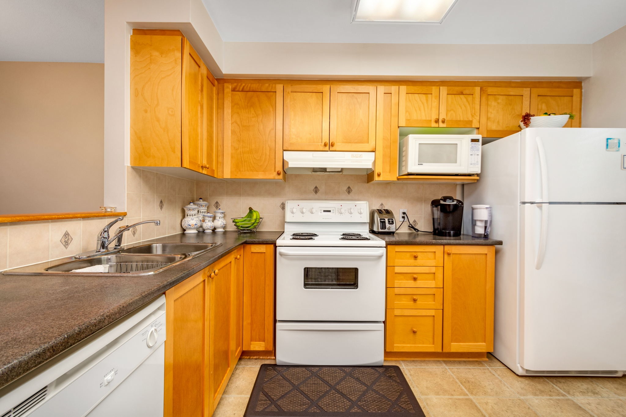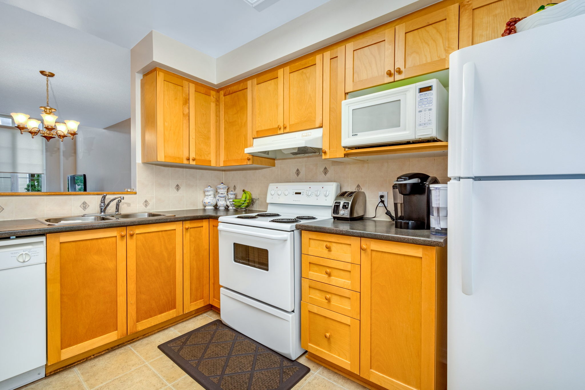 Welcome to this spacious, sun filled, open concept terrace home - perfect for First time buyers, investors or those looking to right-size! The main level layout presents an adjoining dining room and living room with striking vaulted ceiling open to above, a corner gas fireplace and a large palladium window that fills the space with natural light. A well-designed kitchen outfitted with ample cabinetry and counter space and a useful island with bar seating is ideal for casual entertaining and meal prep. Upstairs, you will discover the primary bedroom with cheater door access to a full bathroom and a private balcony, a generous second bedroom, and a multipurpose den, perfect for a home office, yoga room or reading corner. Close to schools, shopping and more. Public transit at your doorstep. One surfaced parking space included.