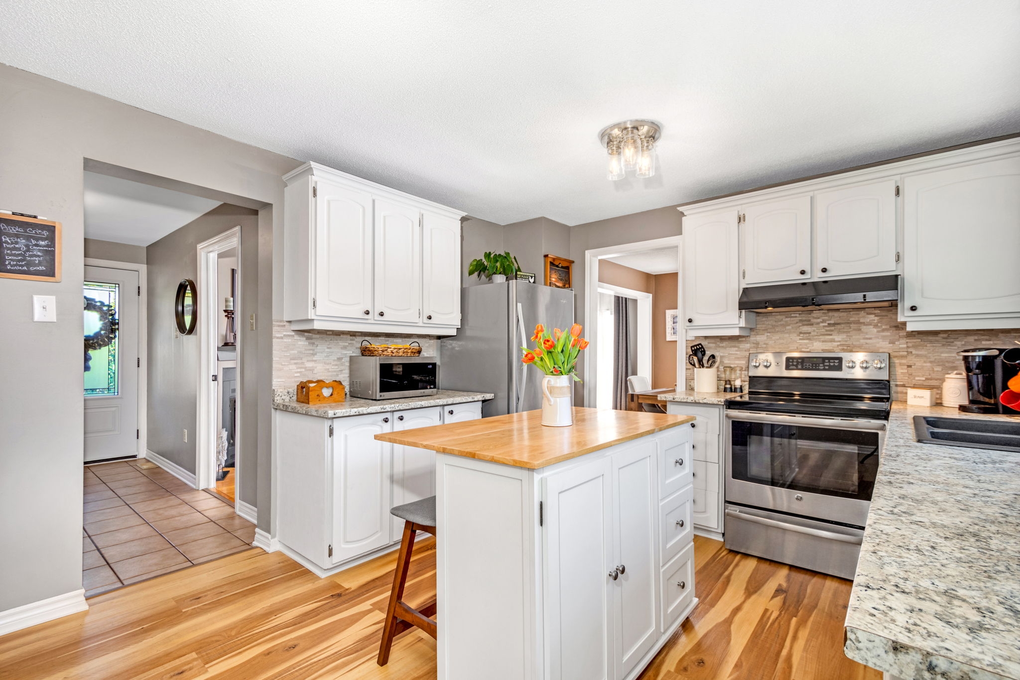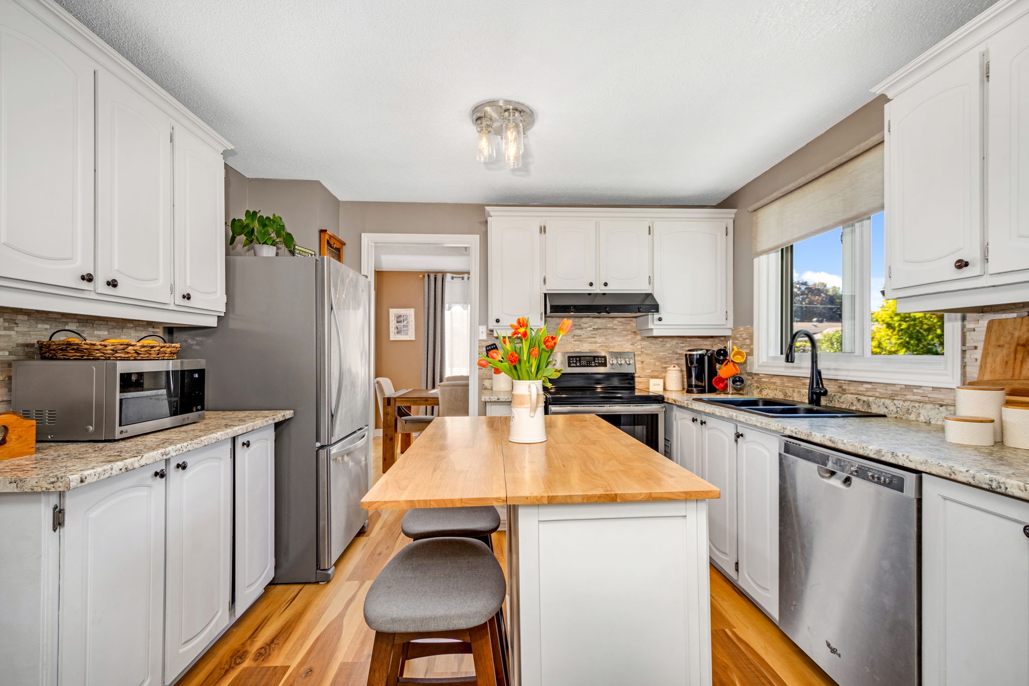Pride of ownership radiates throughout this sun filled split level home with NO REAR NEIGHBOURS in the charming and friendly neighbourhood of Rockland. Designed to maximize living space, this welcoming and versatile layout presents a spacious living room with cozy fireplace and a formal dining room, perfect for entertaining. An elegant and timeless white kitchen offers plenty of cabinetry and a social centre island with bar seating. The spacious primary bedroom with a convenient ensuite bathroom and 2 generous secondary bedrooms all have large windows and plenty of closet space. Ideal for casual entertaining, the finished basement presents additional living space with a large family room/rec room, a den or bonus room laundry area and convenient access to the backyard. The large, private backyard extends the living space to the outdoors with a new above ground pool, entertainment sized deck, plenty of yard space and useful storage sheds.
