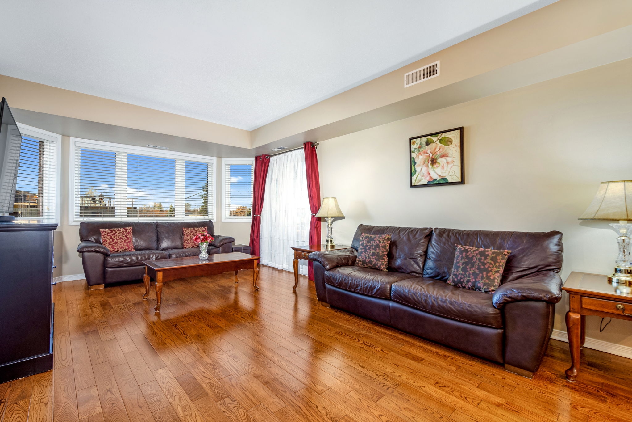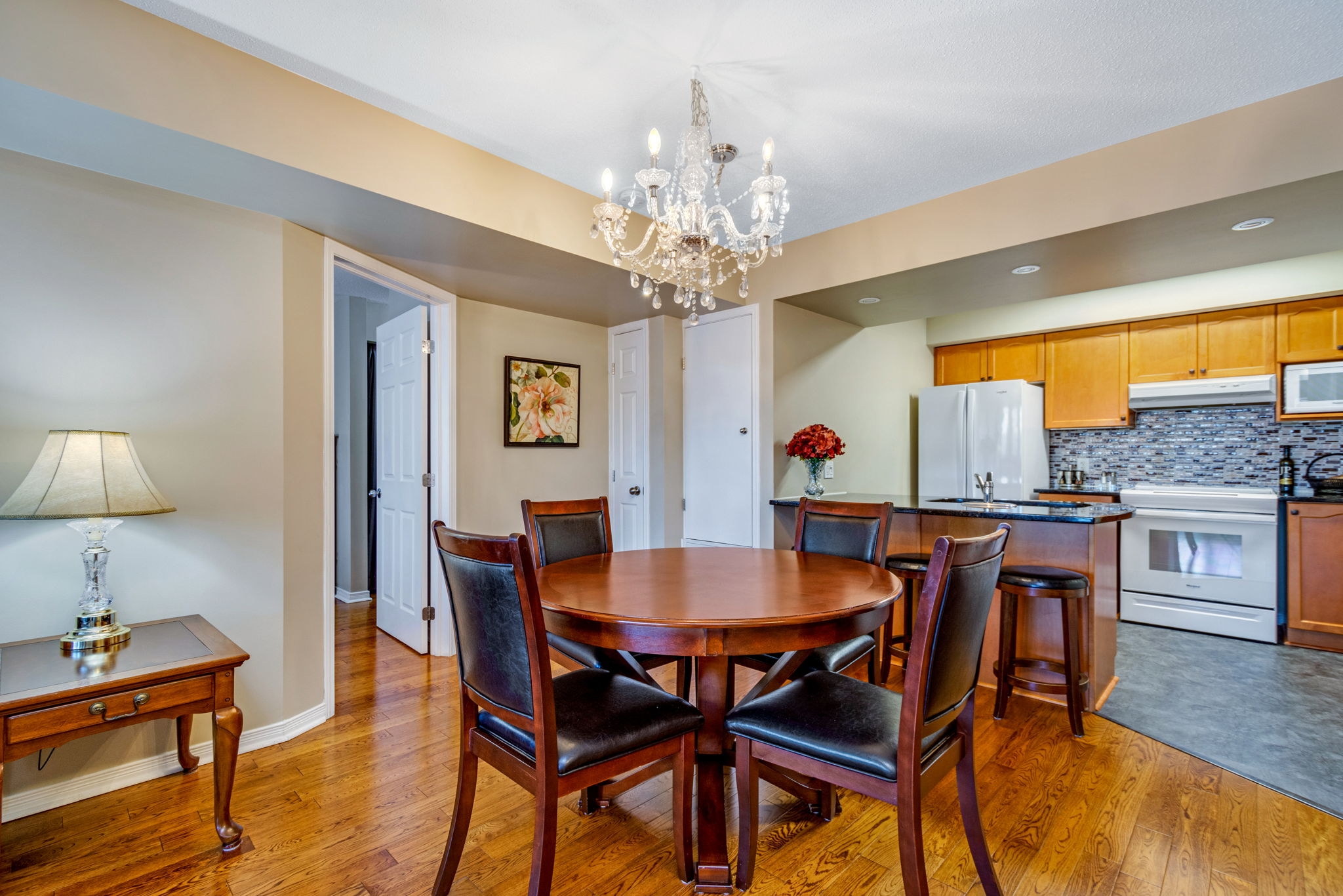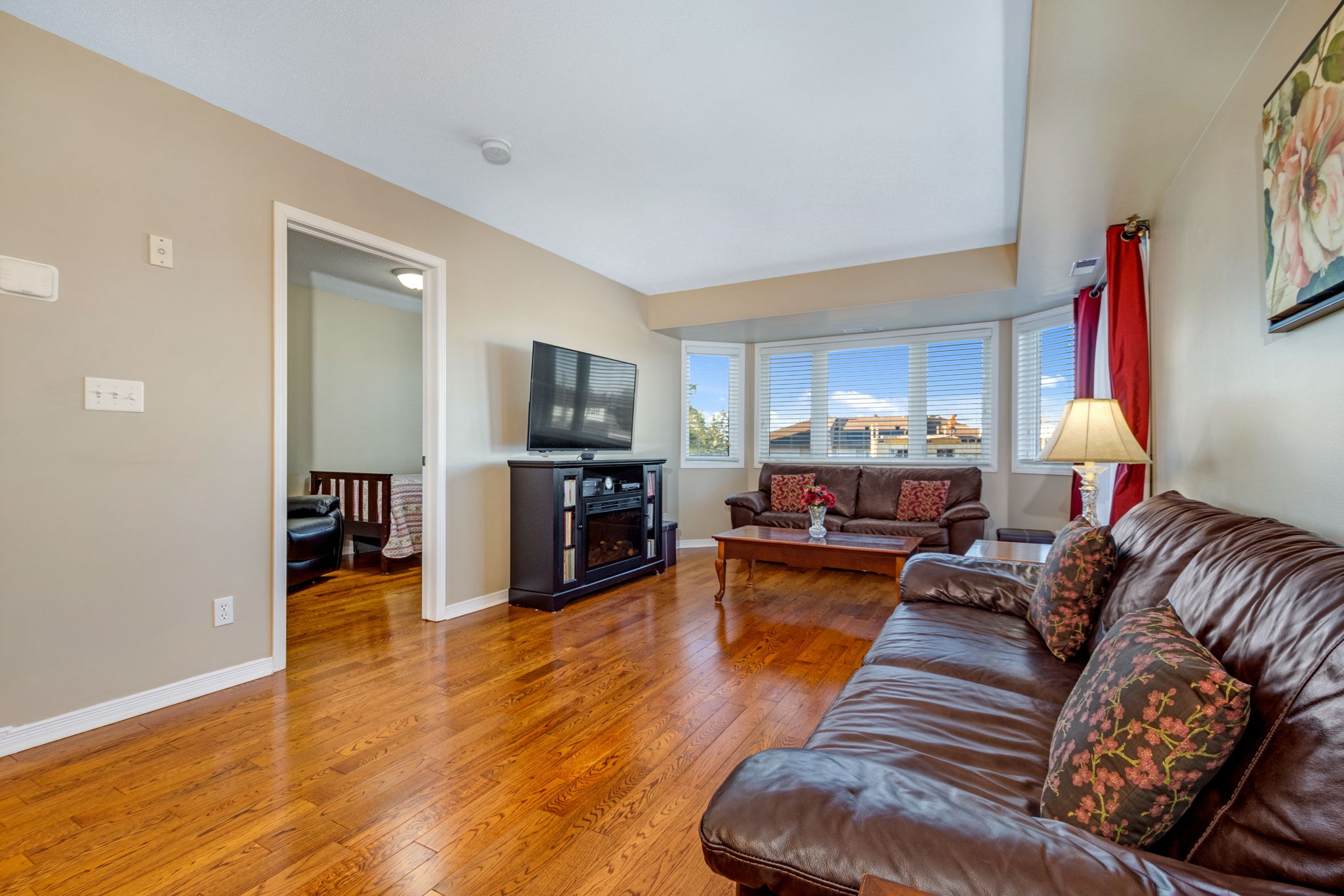 Upgraded, spotless and move-in ready! This 2 bedroom, 2 bathroom condo graced with hardwood and tile flooring throughout offers maintenance free living! A well-appointed kitchen with an abundance of cabinetry and breakfast bar overlooks the open concept dining room and living room with private balcony access. The spacious primary bedroom is complete with a 4-piece ensuite and the second bedroom, perfect for a guest room or home office is serviced by a full bathroom. In-unit laundry, parking and storage locker included! Condo fee includes water. A great location close to shopping, public transit, future LRT station, and recreation.