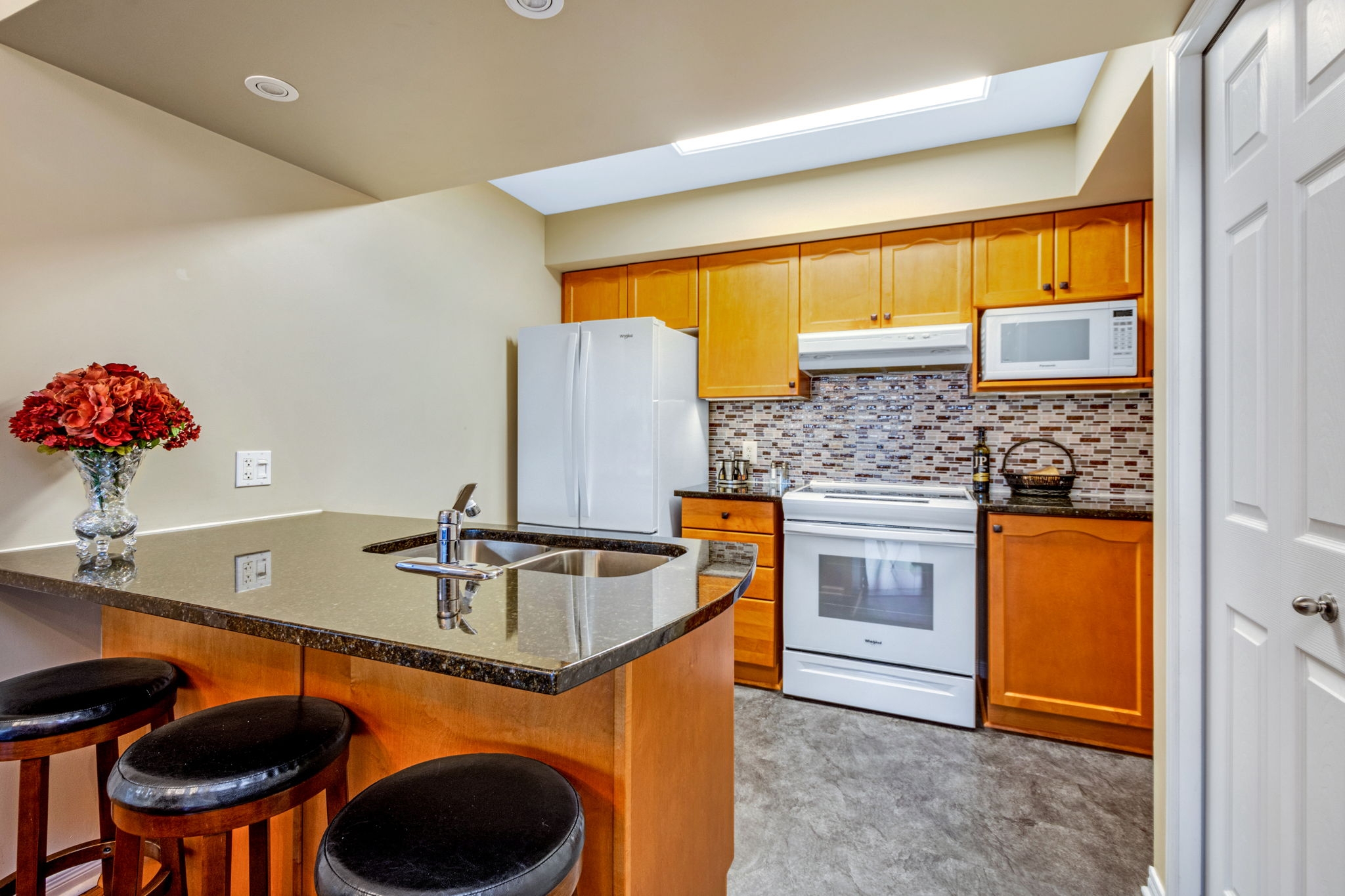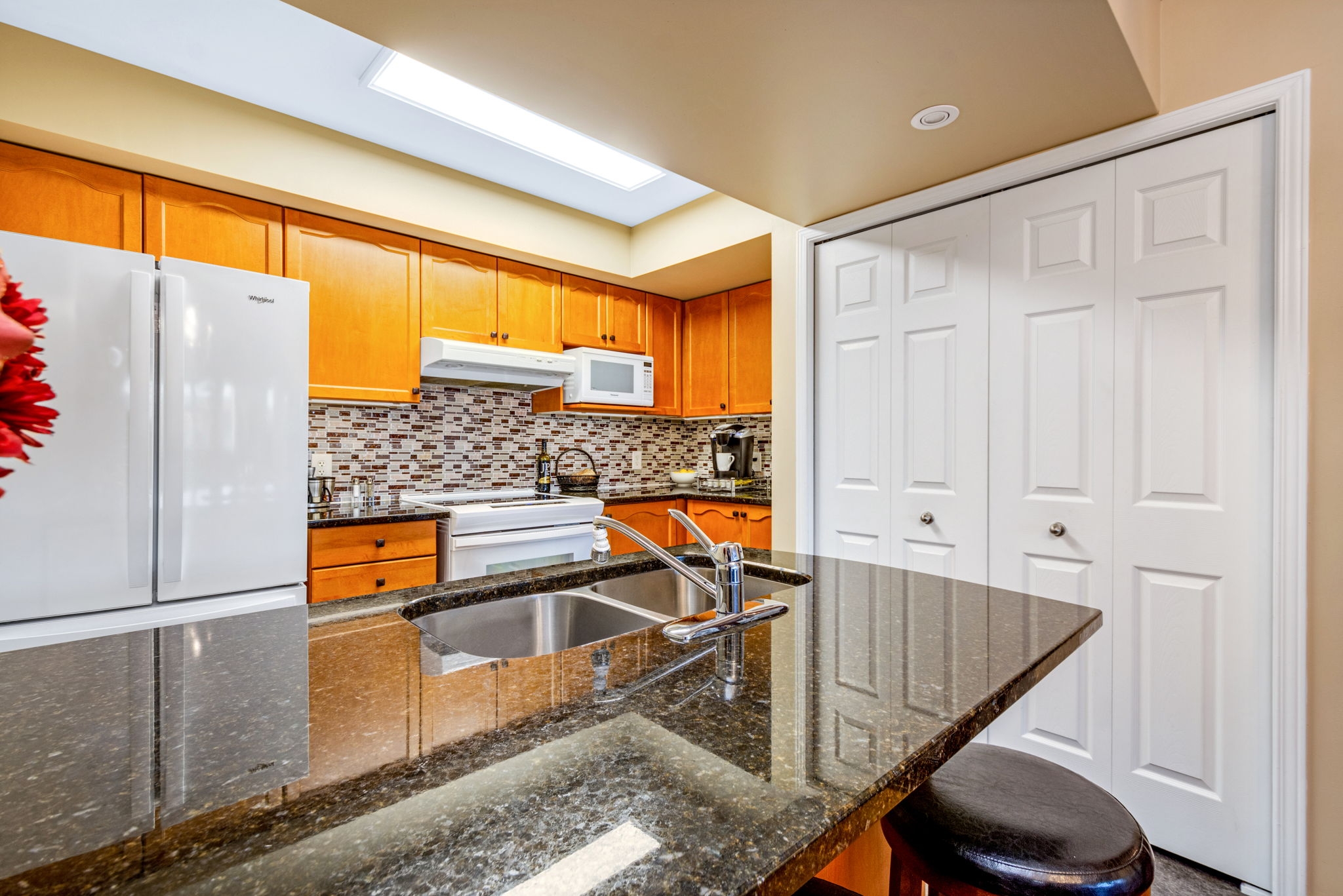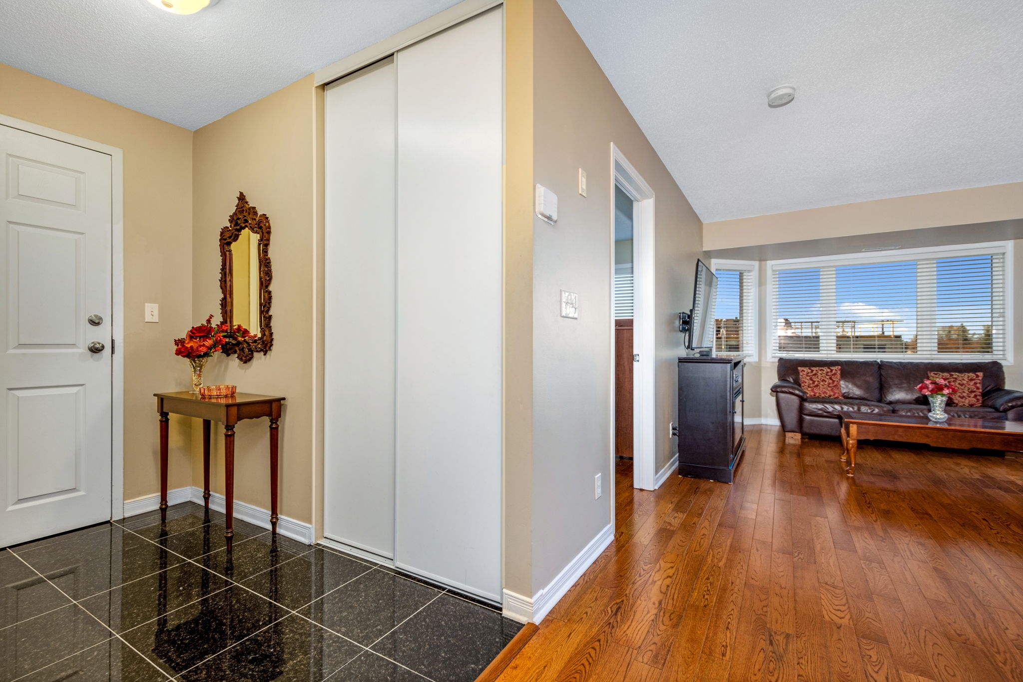 Upgraded, spotless and move-in ready! This 2 bedroom, 2 bathroom condo graced with hardwood and tile flooring throughout offers maintenance free living! A well-appointed kitchen with an abundance of cabinetry and breakfast bar overlooks the open concept dining room and living room with private balcony access. The spacious primary bedroom is complete with a 4-piece ensuite and the second bedroom, perfect for a guest room or home office is serviced by a full bathroom. In-unit laundry, parking and storage locker included! Condo fee includes water. A great location close to shopping, public transit, future LRT station, and recreation.