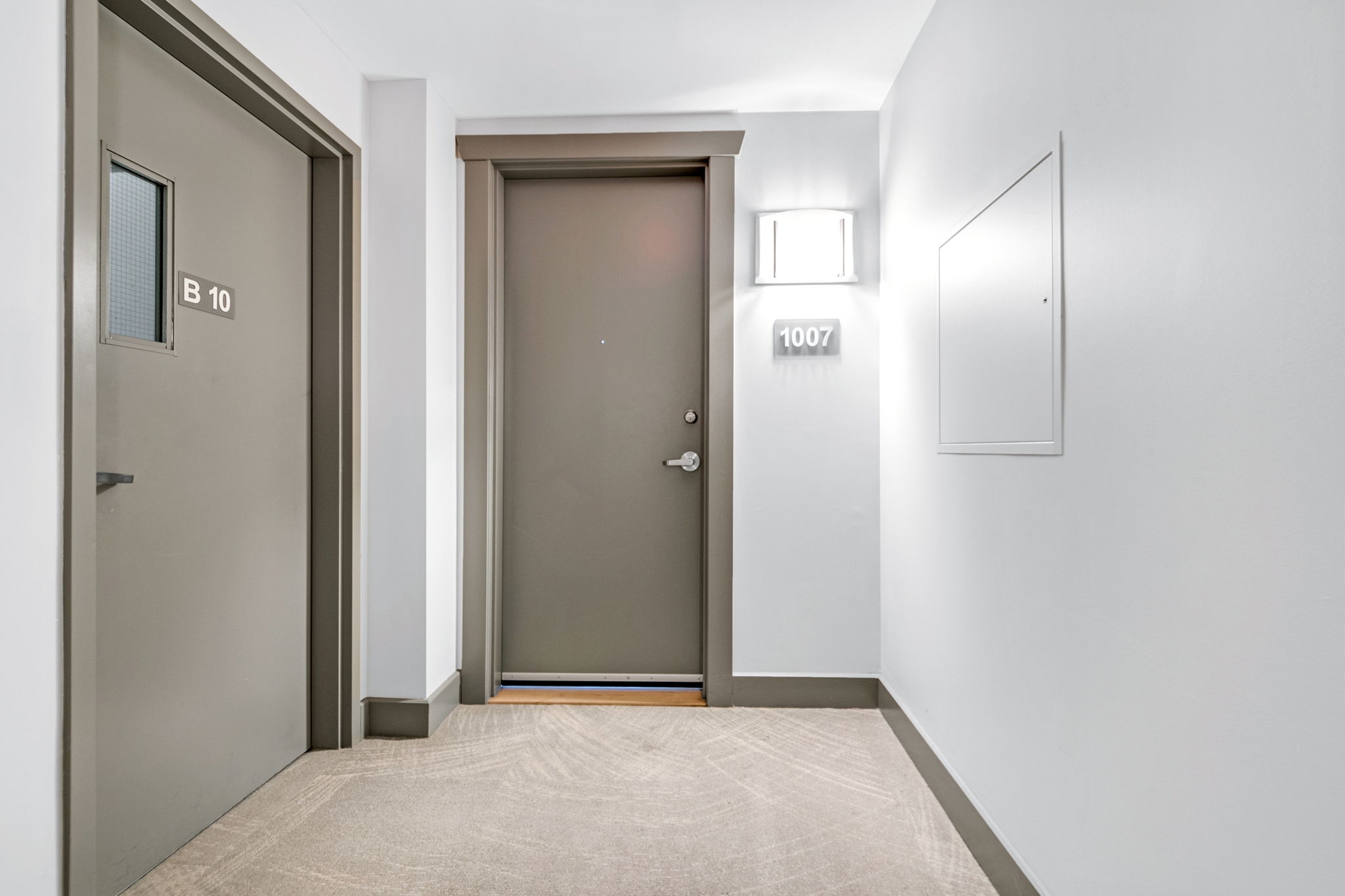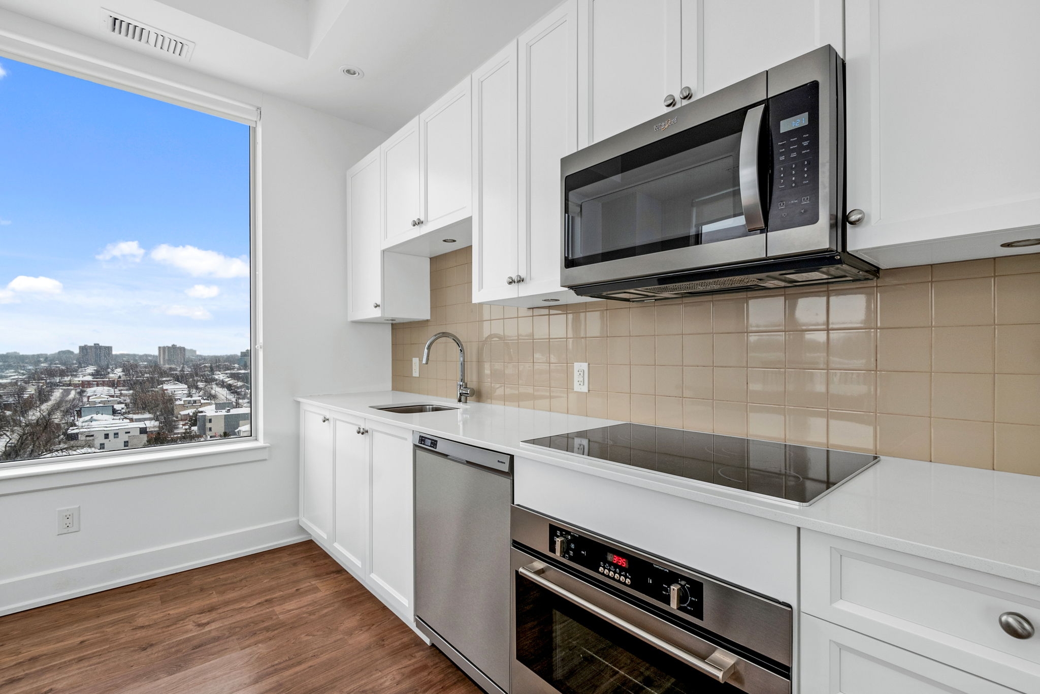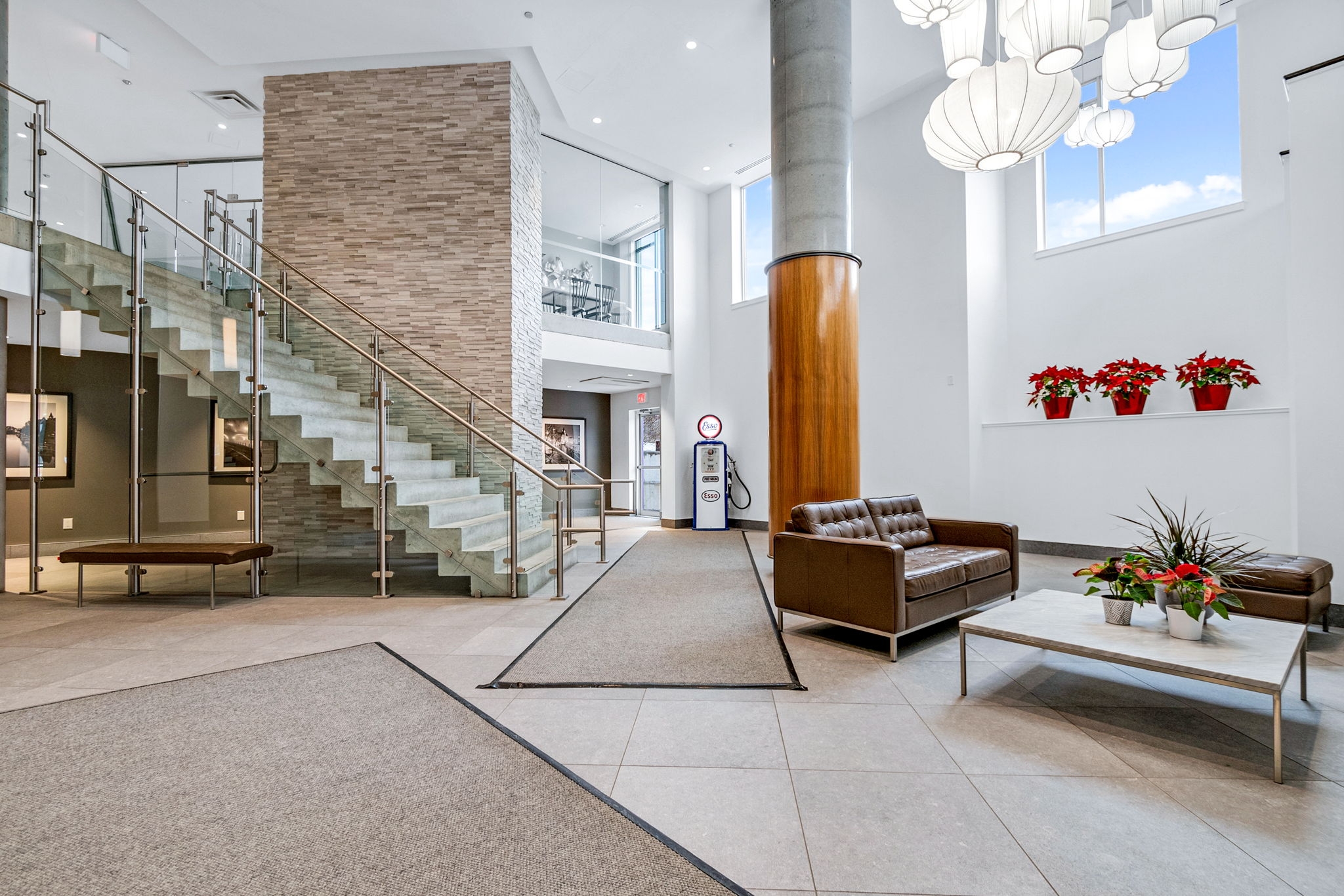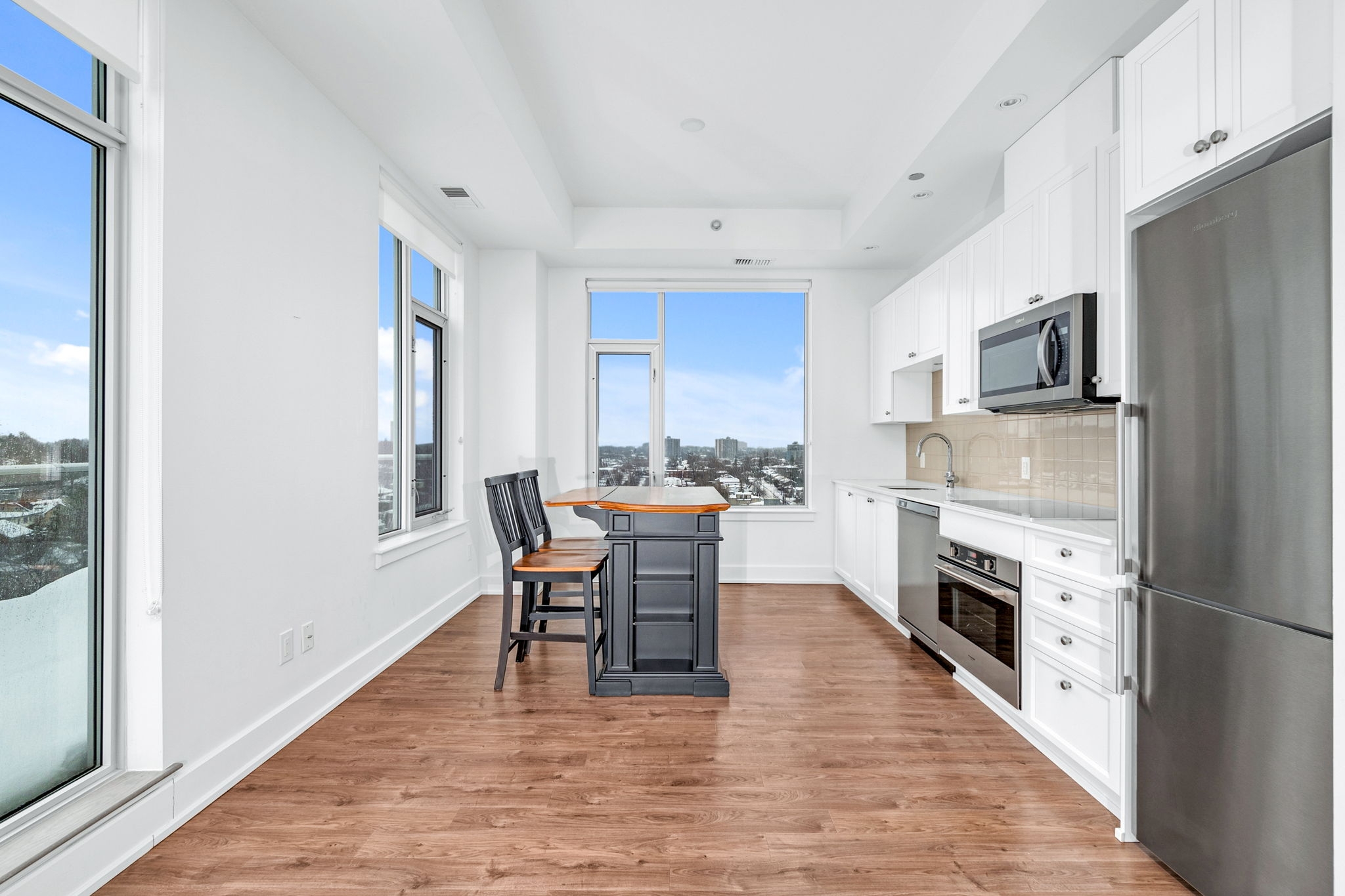 Nestled in the vibrant heart of Beechwood Village, this spacious 1-bedroom, 1-bathroom condo seamlessly combines comfort with a touch of luxury. The airy, open layout is flooded with natural light, creating an inviting ambiance in the generous living area, which offers ample room for a home office setup. The well-appointed kitchen boasts stainless steel appliances and plenty of cabinet space, perfect for culinary enthusiasts. A large bedroom and a stylish bathroom, along with convenient in-suite laundry, complete this inviting unit. Step out onto the expansive balcony, where you can savour your morning coffee or unwind in the evening while taking in breathtaking views. The building's impressive amenities include a state-of-the-art fitness centre, secure bike storage, a guest suite, and designated parking. You'll also find a lively party room, a stunning rooftop sunset lounge with a terrace, a pet wash station, and a car wash station alongside a fully equipped workshop. This condo truly offers everything you need for a modern, convenient lifestyle.