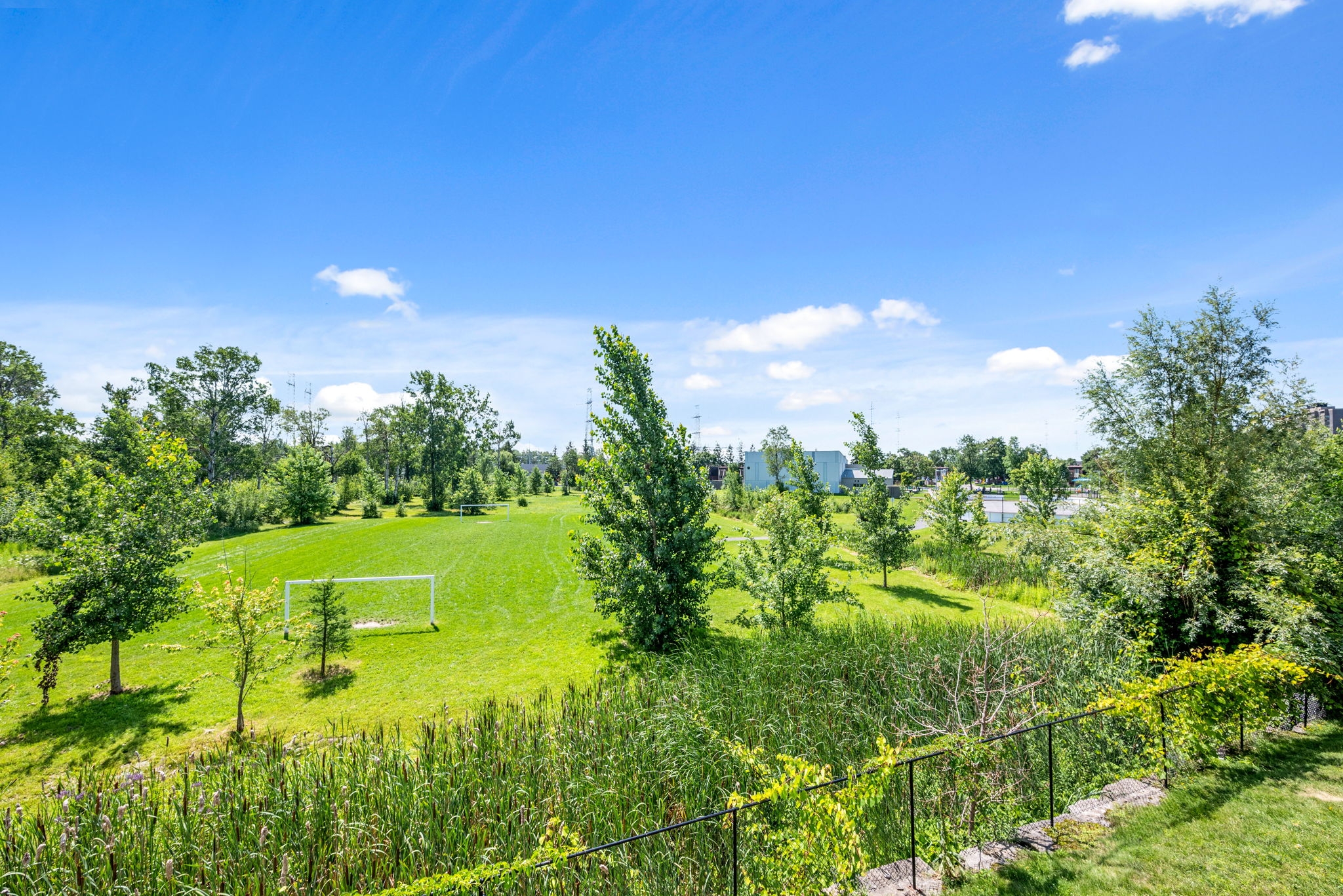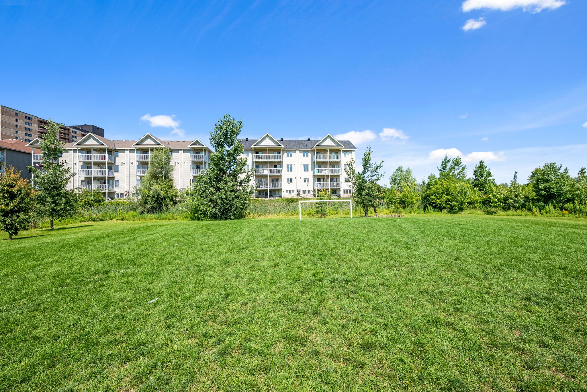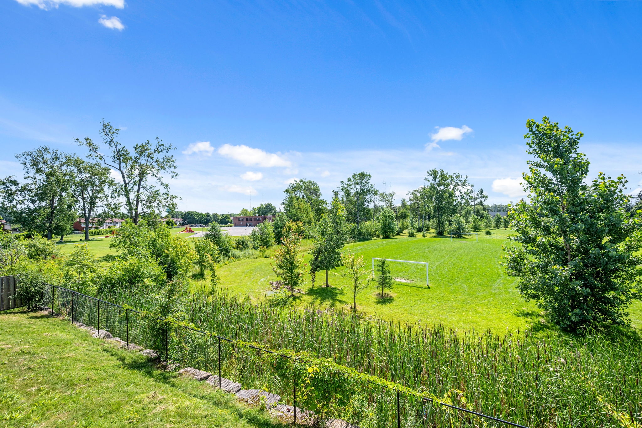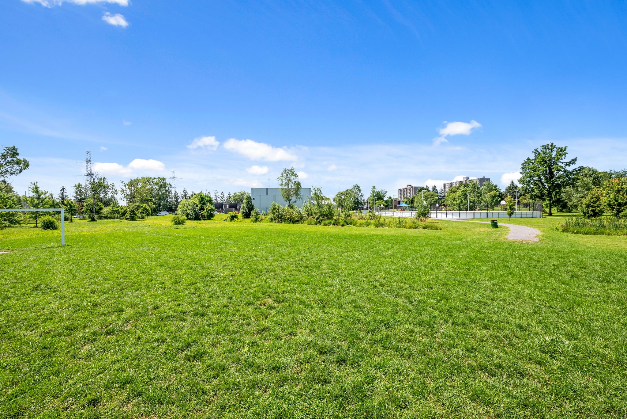 Welcome This spacious 2-bedroom lower unit terrace home offering a desirable location with no rear neighbours backing onto a soccer field and lush greenspace. The open concept design is complemented by beautiful hardwood flooring throughout most of the principal rooms and bedrooms. This spacious and well-appointed layout that emphasizes comfort and functionality with an eat-in kitchen patio door leading to your own private balcony. The lower level presents a sun filled family room with an open-to-above design and floor-to-ceiling windows, A generously sized primary bedroom with a cheater ensuite and a second bedroom complete this level. Everything you need is just a stone’s throw away, recreation, public transit, Heron Gate Mall and more