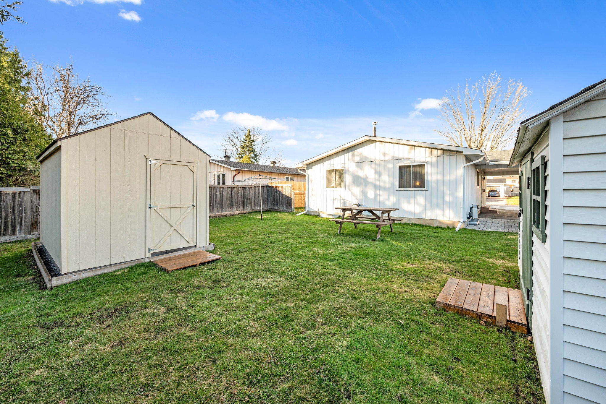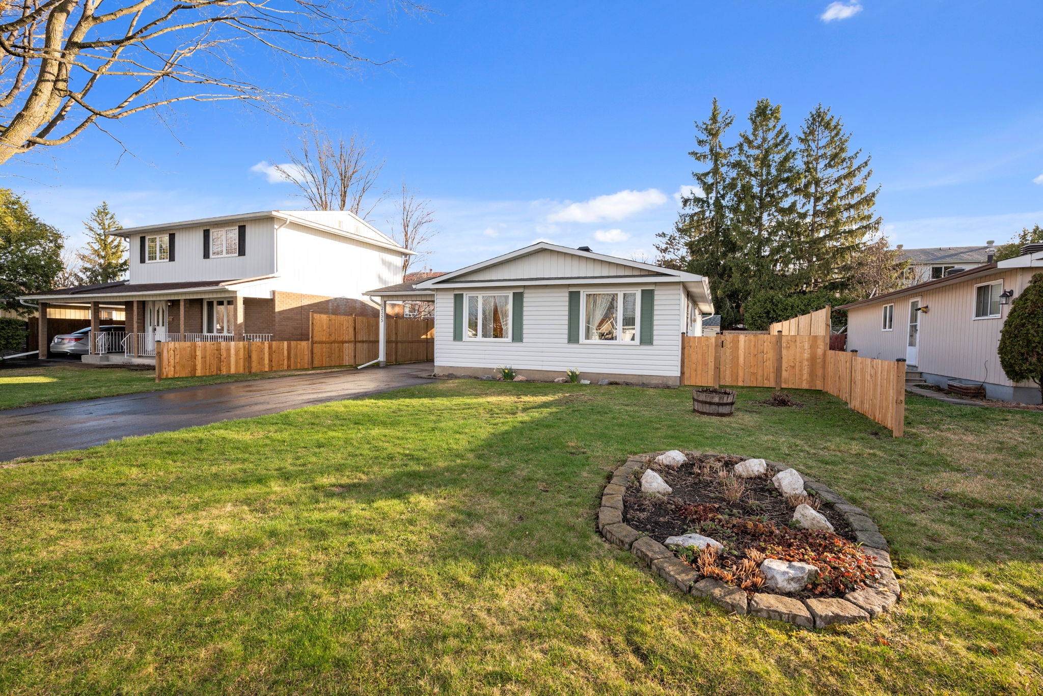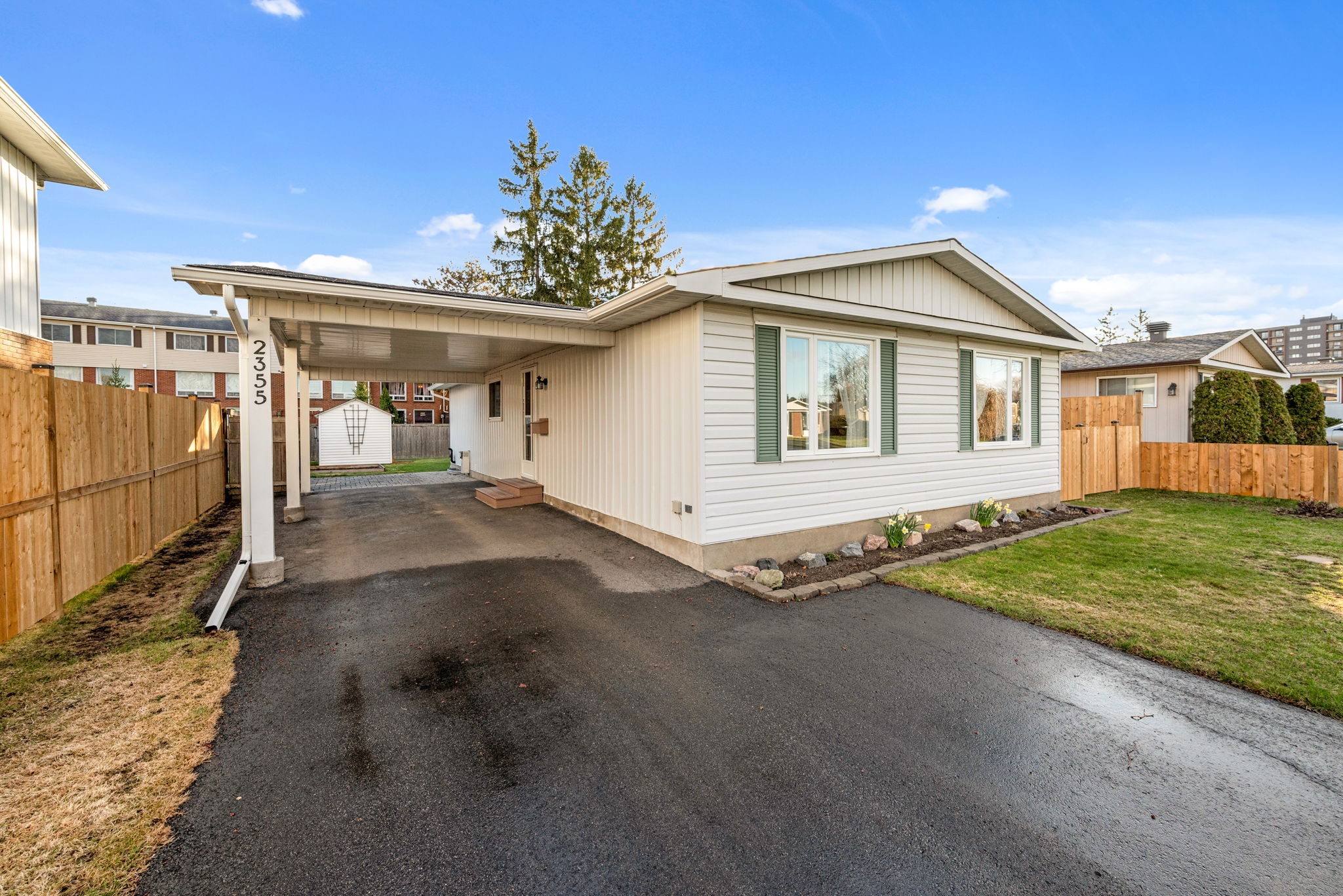 Welcome to this meticulously maintained 3-bedroom, 2-bathroom bungalow in the heart of Sheffield Glen. Enter the inviting main level living room, with a wonderful view of the front yard that seamlessly connects the nearby eat-in kitchen, providing abundant space for cooking and gathering. The main floor features a spacious primary bedroom and two secondary bedrooms, along with a full family bathroom, offering a versatile and practical living space for families or guests. A convenient side door provides easy access to the laneway (2017), and the large, fenced yard with a patio and two storage sheds is ideal for a workshop or storing outdoor essentials and tools. Bonus living space is offered on the lower level with a multipurpose rec room, a hobbyist's den, an additional 3pc bathroom, laundry facilities, and storage. Conveniently located close to the Ottawa Hospital, CHEO, shopping and transit, and HWY 417.