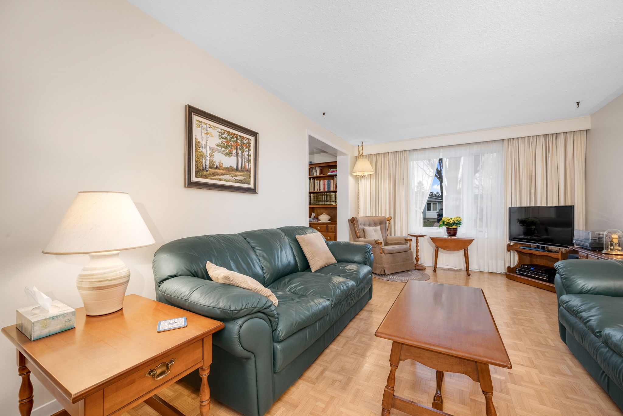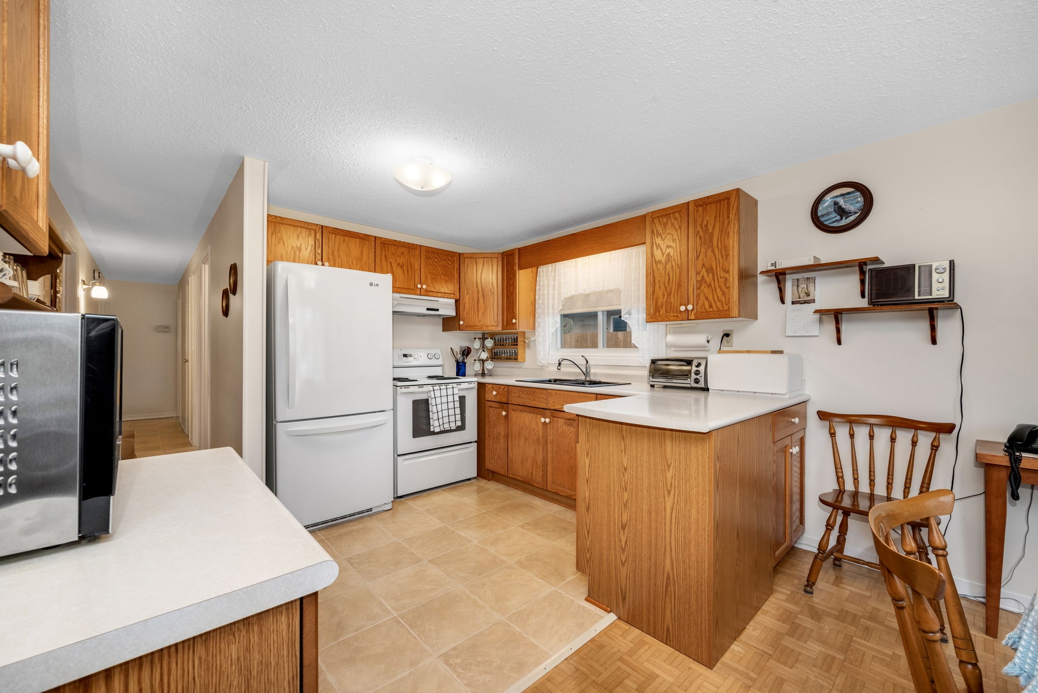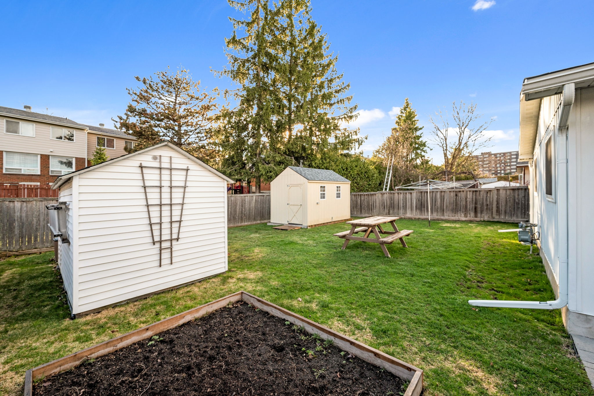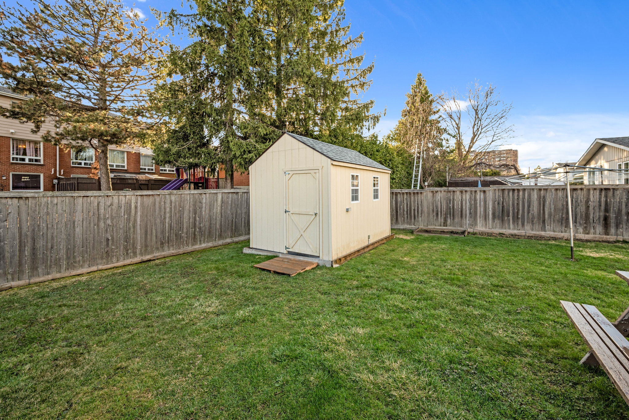 Welcome to this meticulously maintained 3-bedroom, 2-bathroom bungalow in the heart of Sheffield Glen. Enter the inviting main level living room, with a wonderful view of the front yard that seamlessly connects the nearby eat-in kitchen, providing abundant space for cooking and gathering. The main floor features a spacious primary bedroom and two secondary bedrooms, along with a full family bathroom, offering a versatile and practical living space for families or guests. A convenient side door provides easy access to the laneway (2017), and the large, fenced yard with a patio and two storage sheds is ideal for a workshop or storing outdoor essentials and tools. Bonus living space is offered on the lower level with a multipurpose rec room, a hobbyist's den, an additional 3pc bathroom, laundry facilities, and storage. Conveniently located close to the Ottawa Hospital, CHEO, shopping and transit, and HWY 417.