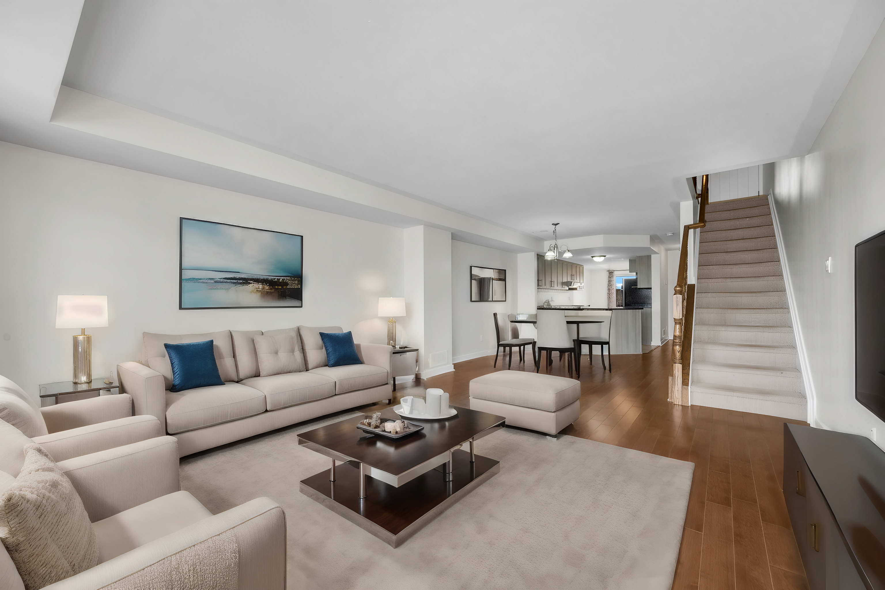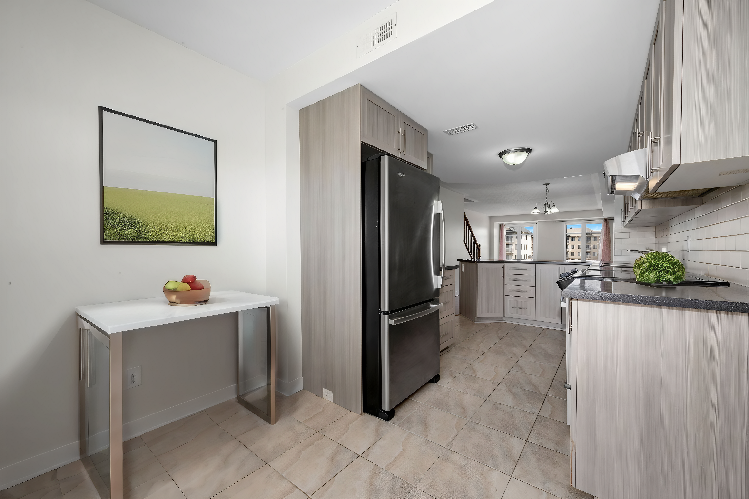 Welcome to this bright and airy two-bedroom, three bathroom upper unit that presents a balance of comfort and functionality. Seamlessly designed, the open-concept layout features a spacious living room and a separate dining area. The well-equipped kitchen leading to a private covered balcony features contemporary cabinetry, subway tiled backsplash, and an eat-in breakfast area or space for a workstation. Upstairs, is home to two well-proportioned bedrooms, each with its own ensuite bathroom, along with ample storage space and laundry centre. Conveniently situated, just steps away from the shops of Tenth Line, transit options, parks, and more! Some photos have been virtually staged.