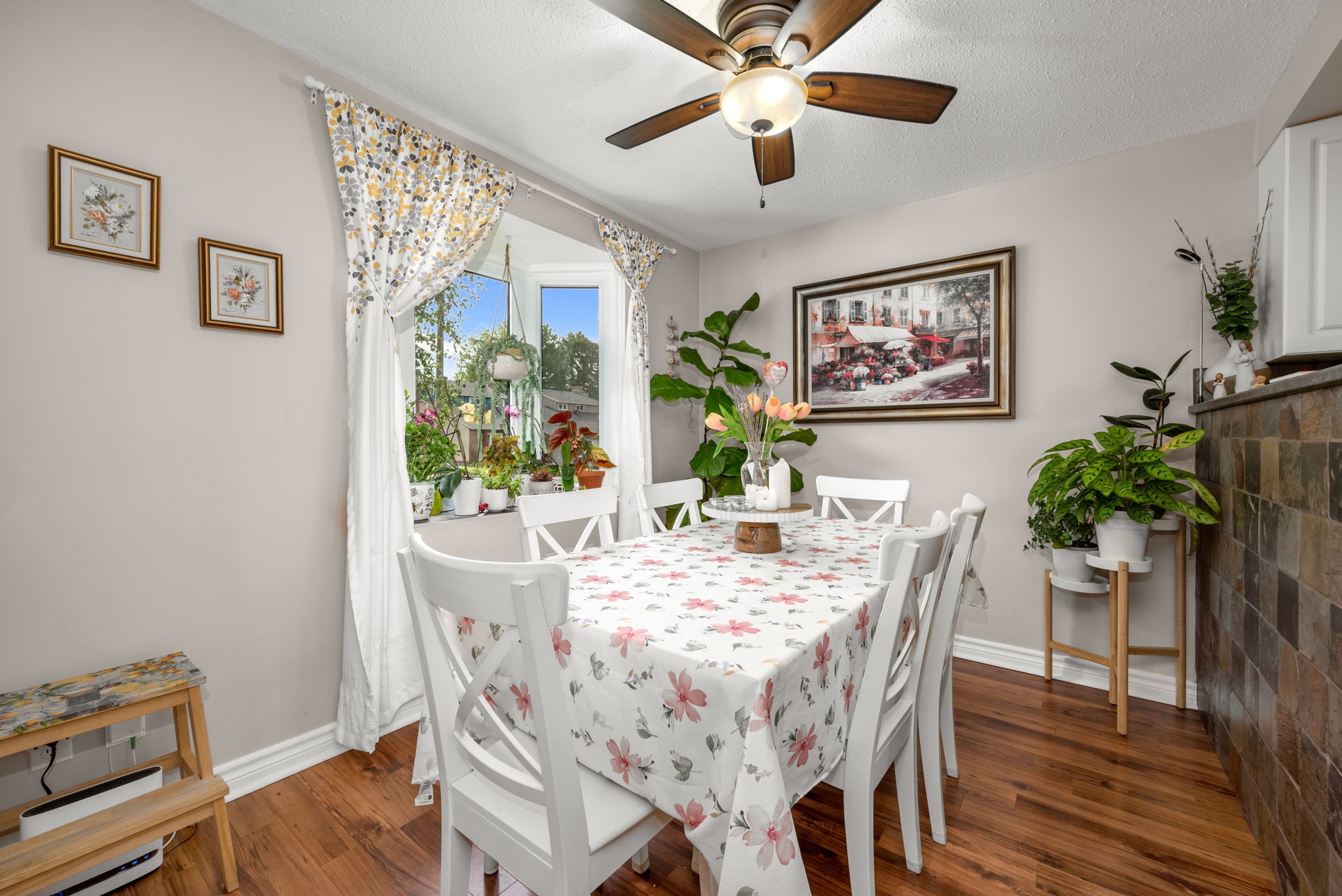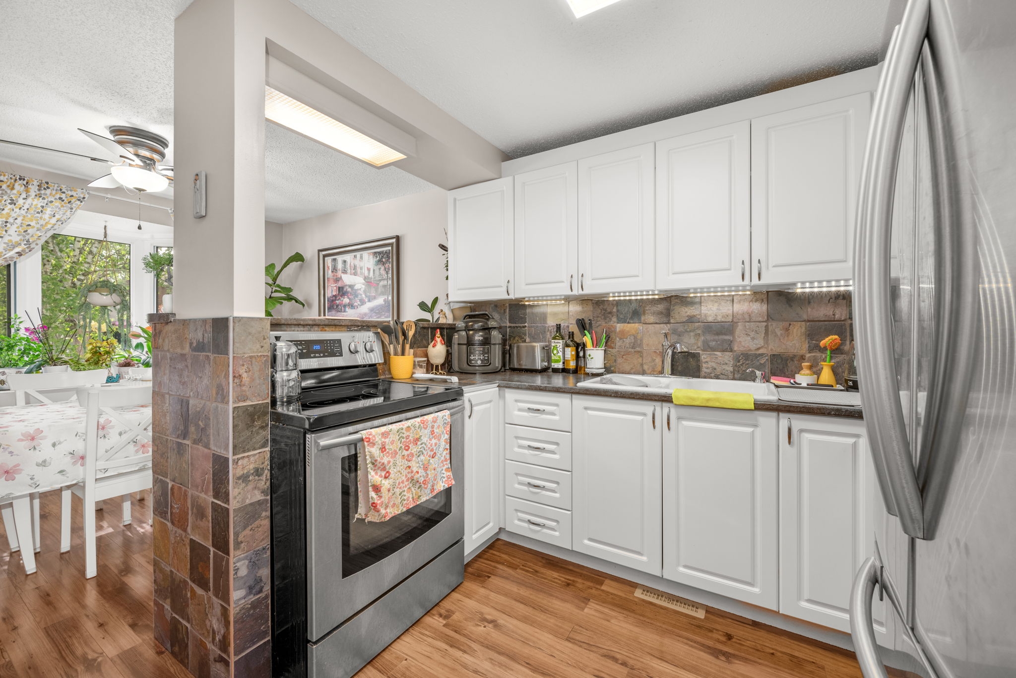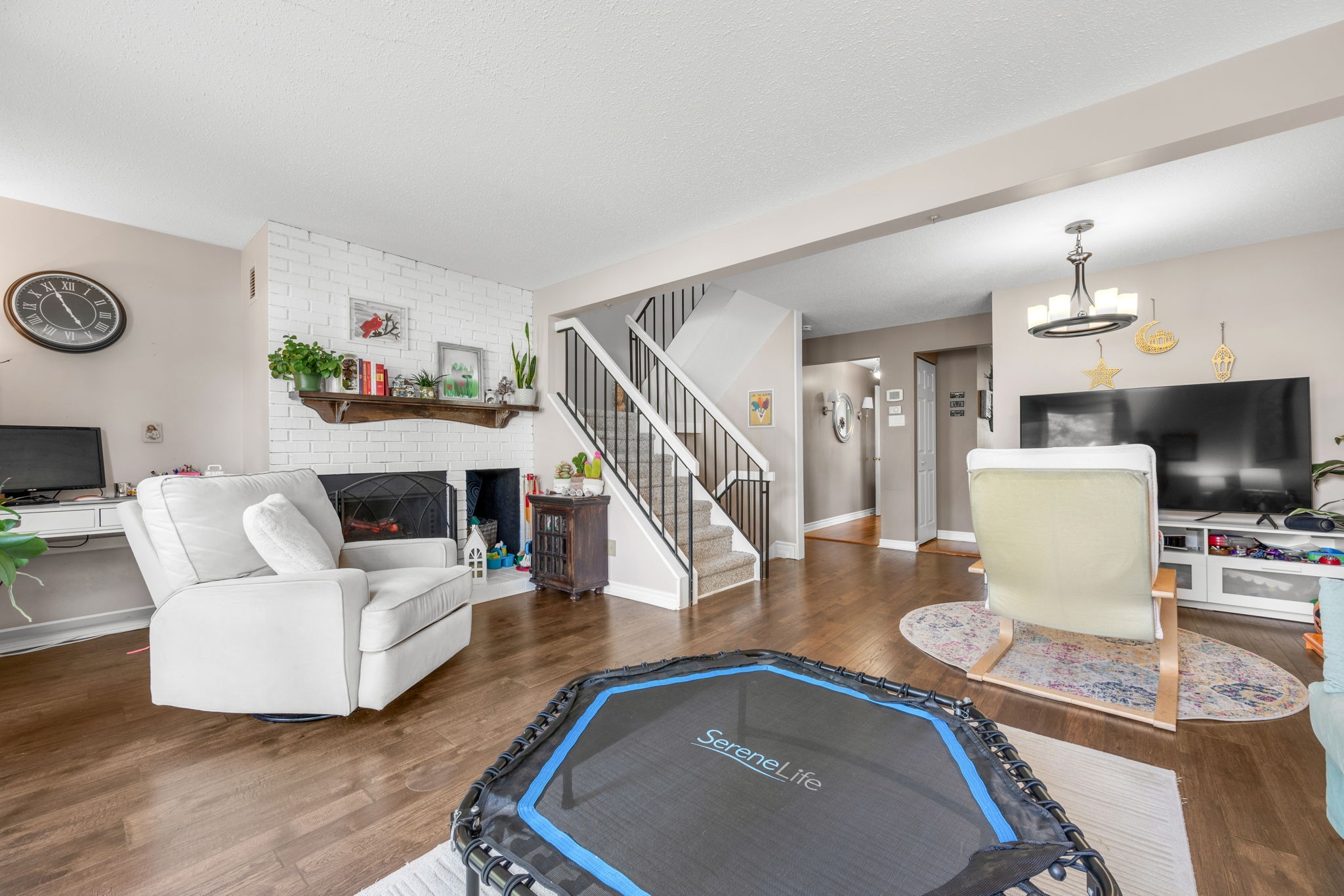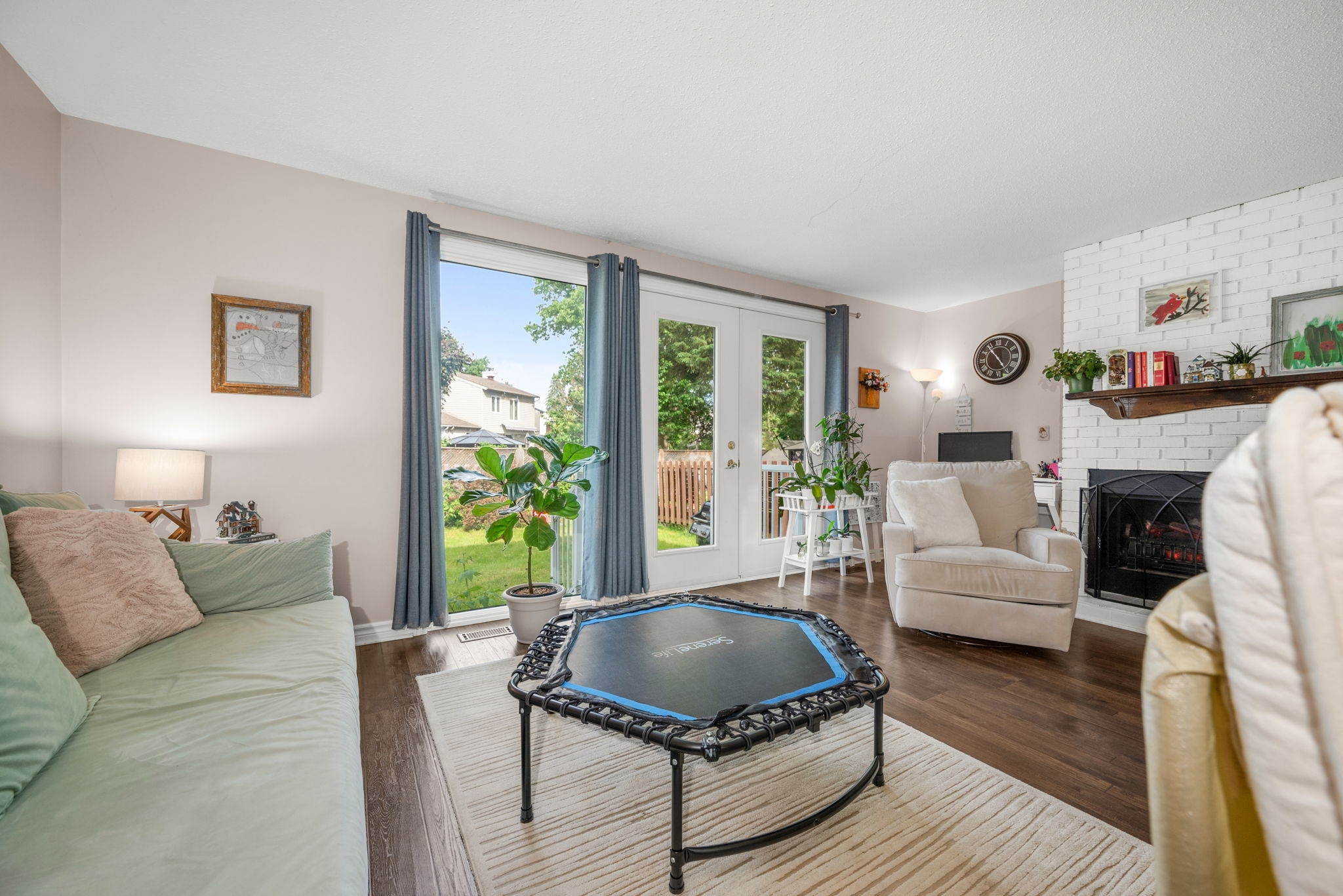 This well-maintained semi-detached home is a true find! Easy to maintain laminate flooring throughout elevates the look and style. The updated, timeless white kitchen is equipped with stainless steel appliances, a pantry, ample counter space, and a sunny eating area with a charming bay window overlooking the front yard. A spacious living room boasts a cozy wood fireplace and patio doors that open to the backyard, perfect for entertaining. The dining room is generous in size, ideal for hosting gatherings. Completing the main level is a convenient laundry room, mudroom, and a half bathroom. Upstairs, you'll find a sizable master bedroom along with two additional bedrooms. The main bathroom includes a convenient cheater door from the master bedroom. Outside, a private fenced yard offers a tranquil retreat. This delightful home is ready for you to move in and start enjoying its updated features and inviting ambiance.