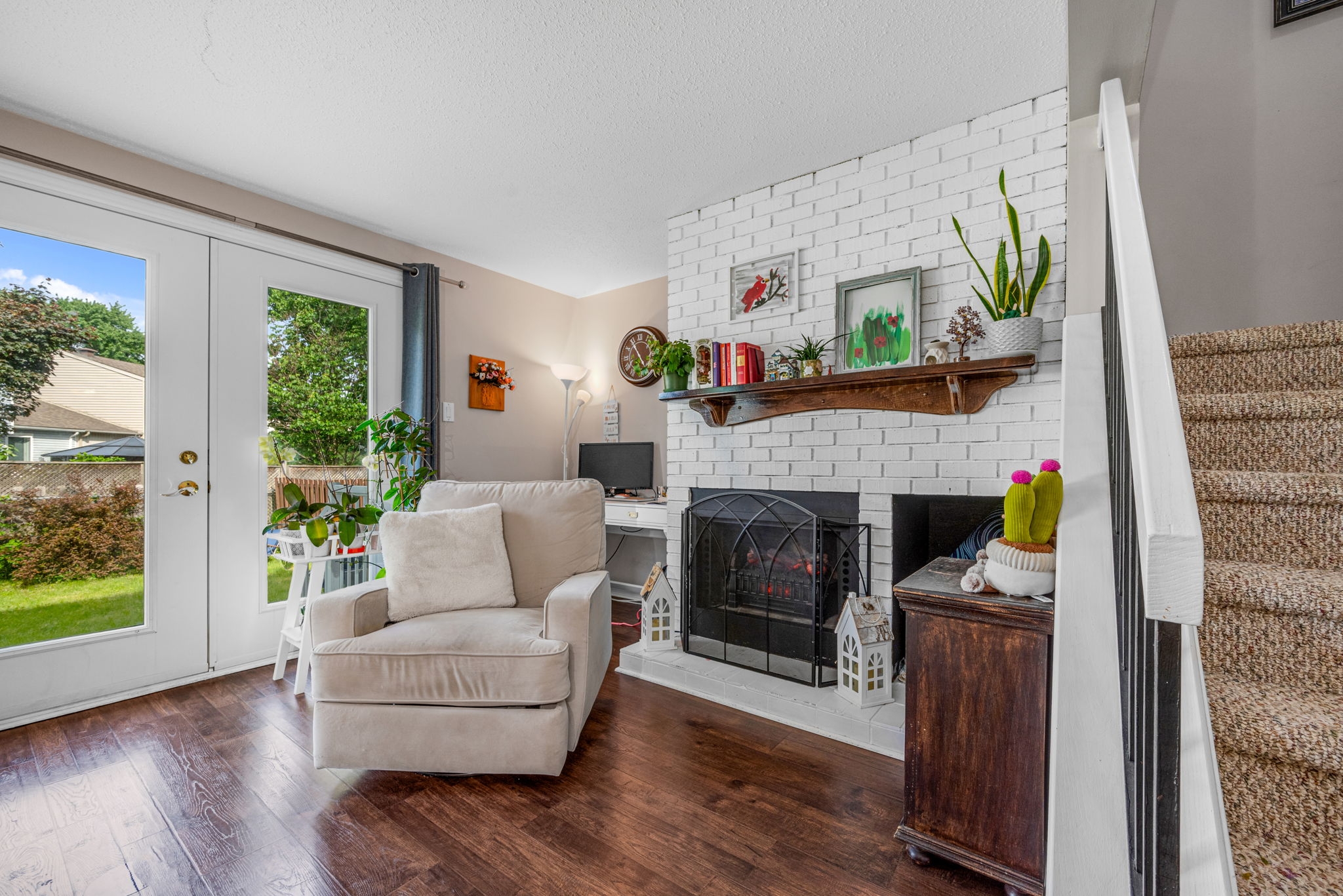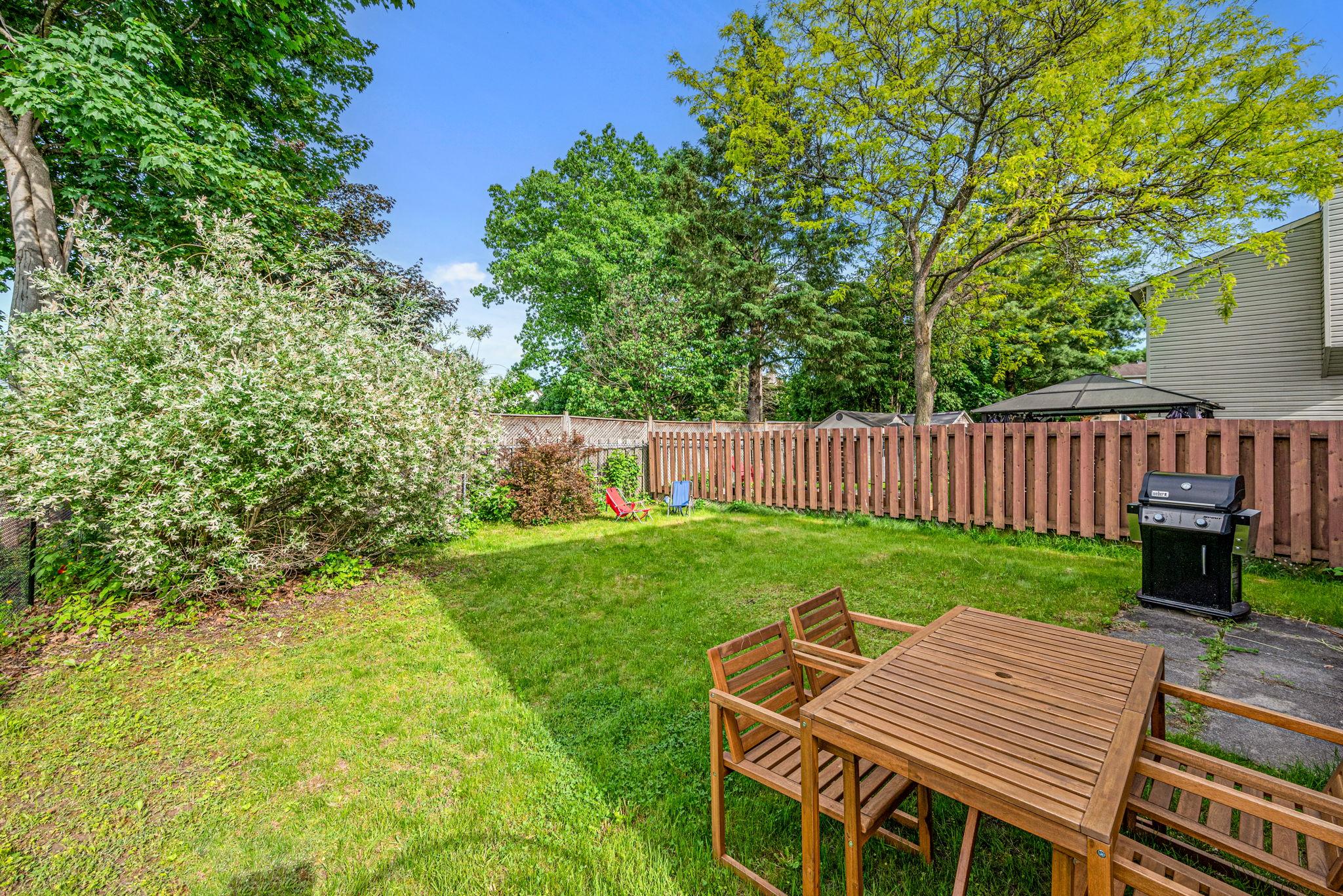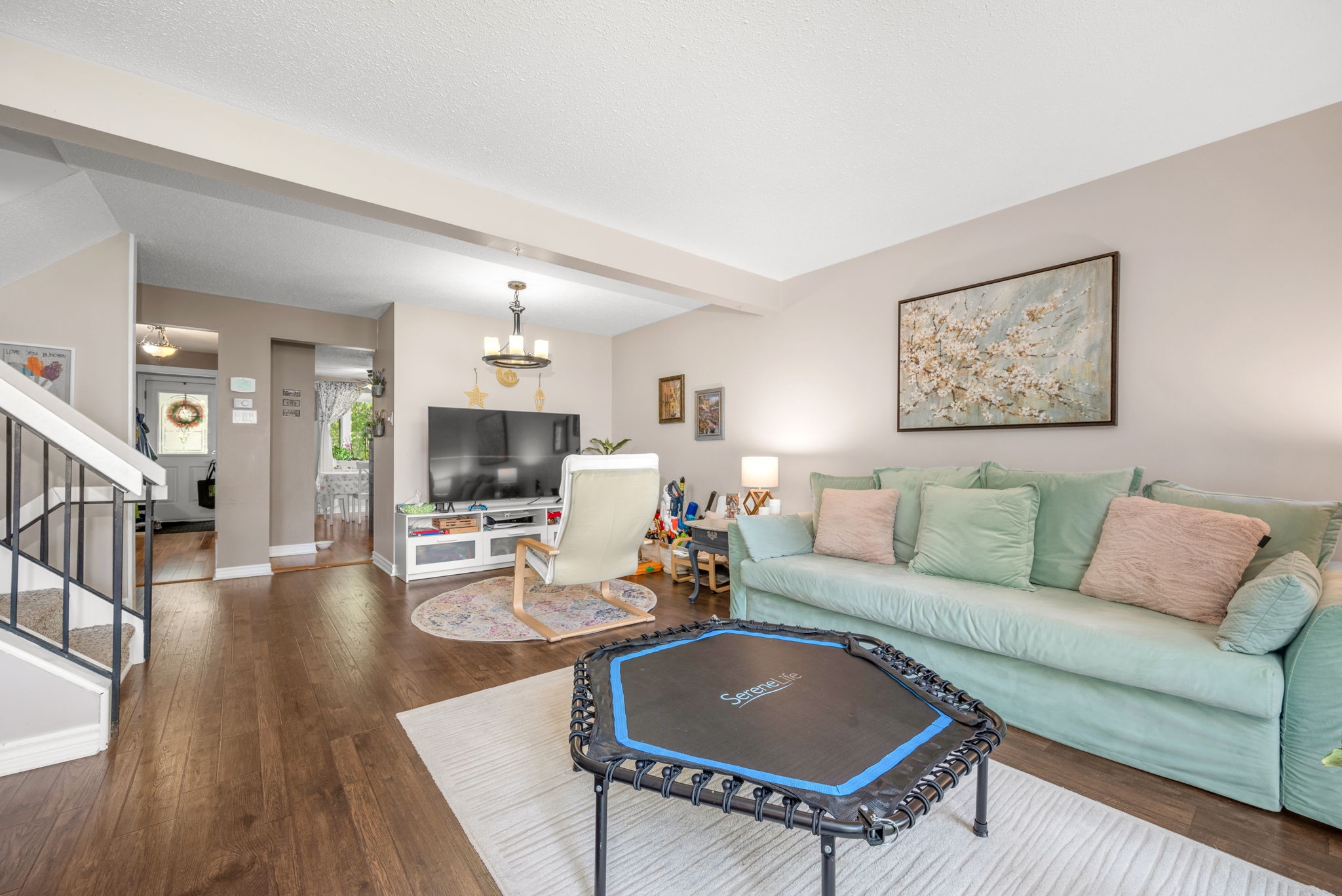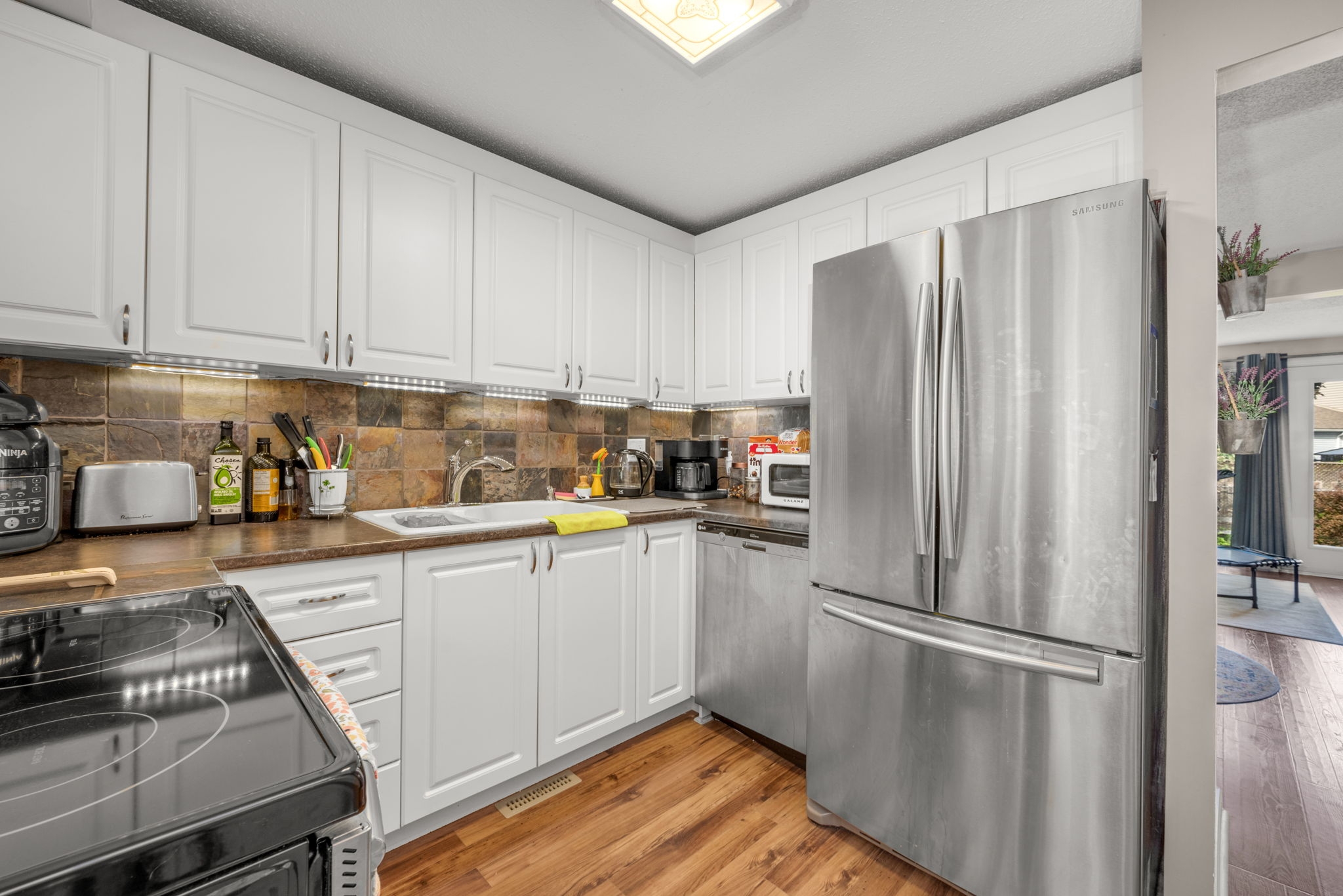 This well-maintained semi-detached home is a true find! Easy to maintain laminate flooring throughout elevates the look and style. The updated, timeless white kitchen is equipped with stainless steel appliances, a pantry, ample counter space, and a sunny eating area with a charming bay window overlooking the front yard. A spacious living room boasts a cozy wood fireplace and patio doors that open to the backyard, perfect for entertaining. The dining room is generous in size, ideal for hosting gatherings. Completing the main level is a convenient laundry room, mudroom, and a half bathroom. Upstairs, you'll find a sizable master bedroom along with two additional bedrooms. The main bathroom includes a convenient cheater door from the master bedroom. Outside, a private fenced yard offers a tranquil retreat. This delightful home is ready for you to move in and start enjoying its updated features and inviting ambiance.