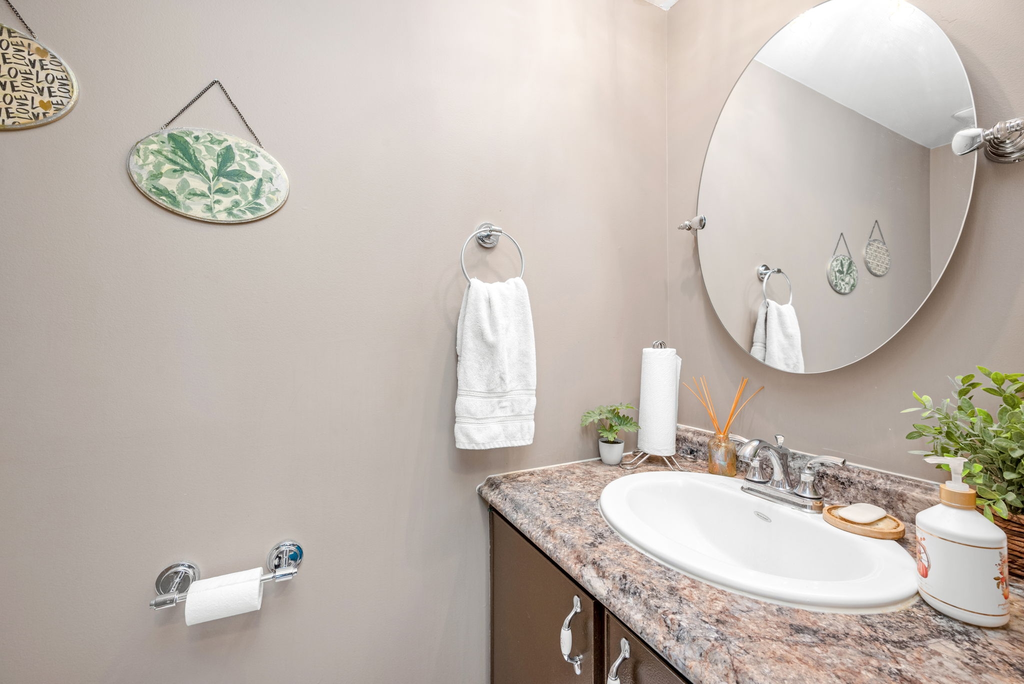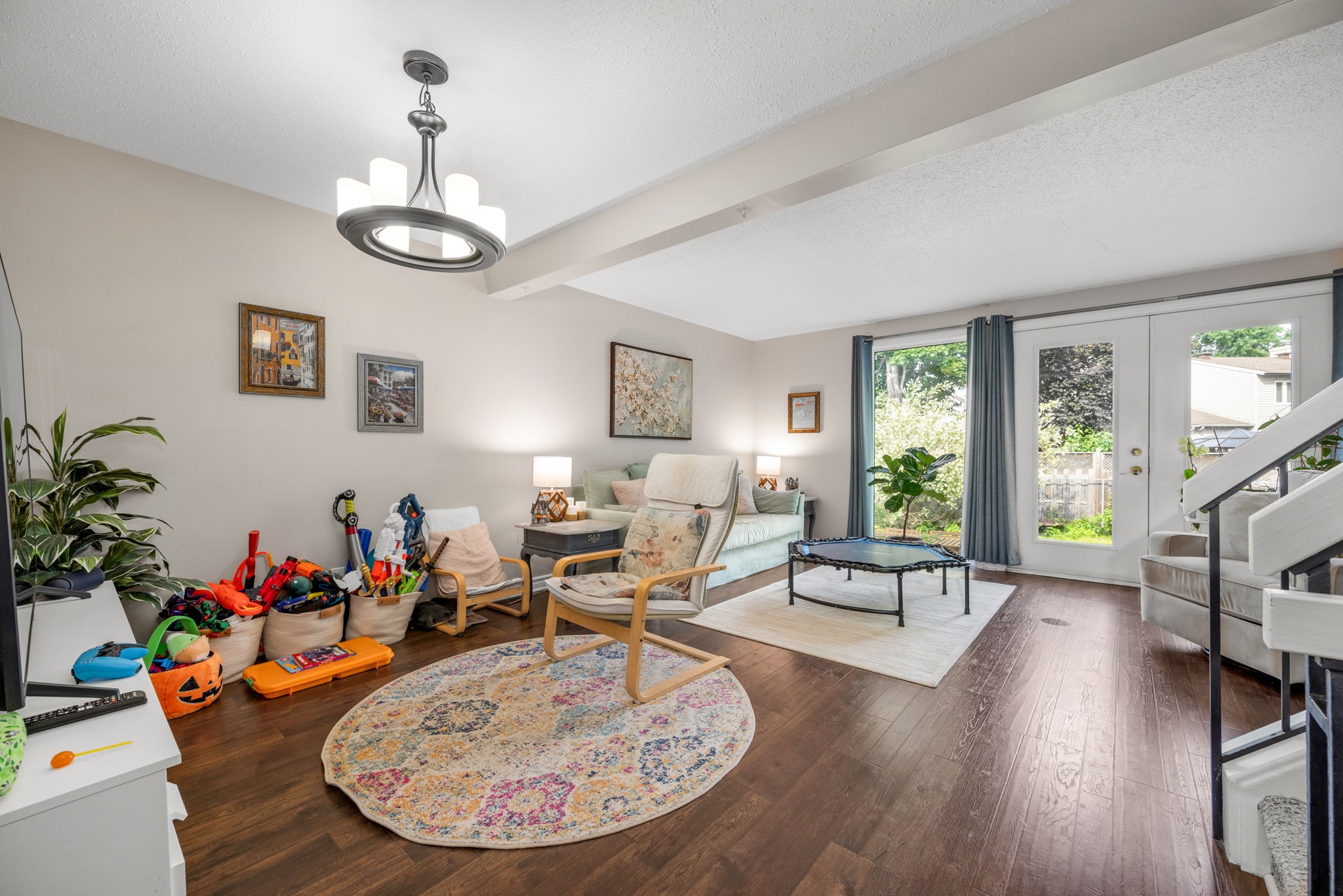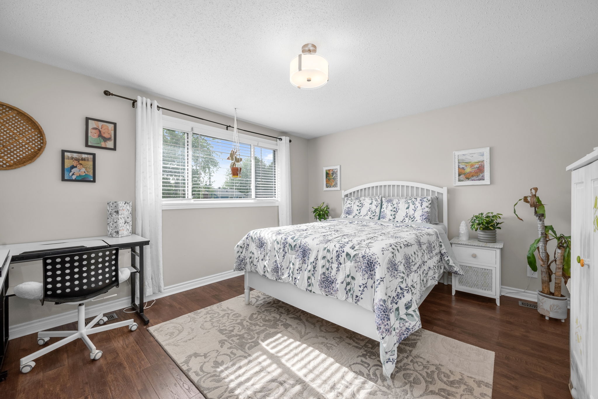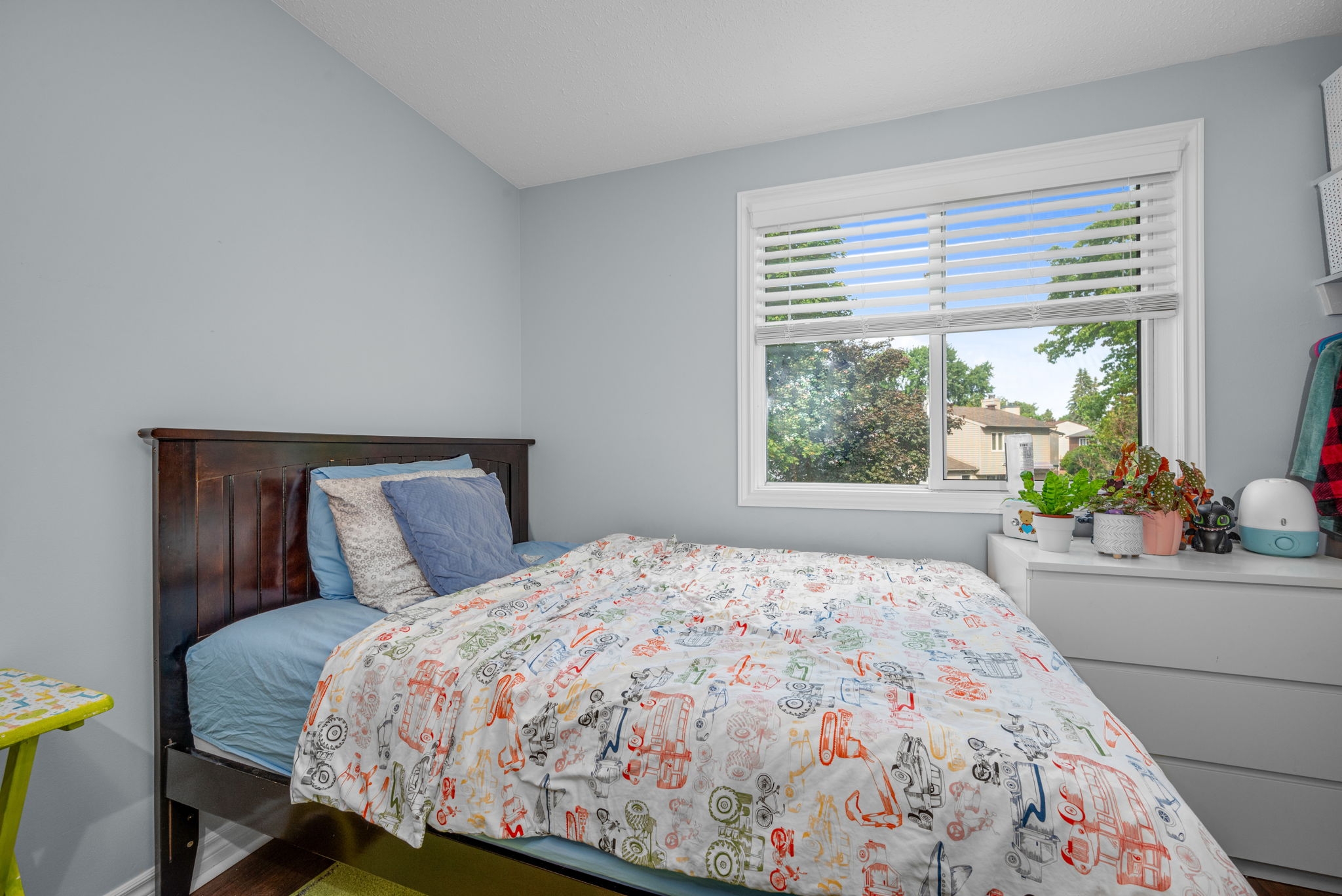 This well-maintained semi-detached home is a true find! Easy to maintain laminate flooring throughout elevates the look and style. The updated, timeless white kitchen is equipped with stainless steel appliances, a pantry, ample counter space, and a sunny eating area with a charming bay window overlooking the front yard. A spacious living room boasts a cozy wood fireplace and patio doors that open to the backyard, perfect for entertaining. The dining room is generous in size, ideal for hosting gatherings. Completing the main level is a convenient laundry room, mudroom, and a half bathroom. Upstairs, you'll find a sizable master bedroom along with two additional bedrooms. The main bathroom includes a convenient cheater door from the master bedroom. Outside, a private fenced yard offers a tranquil retreat. This delightful home is ready for you to move in and start enjoying its updated features and inviting ambiance.