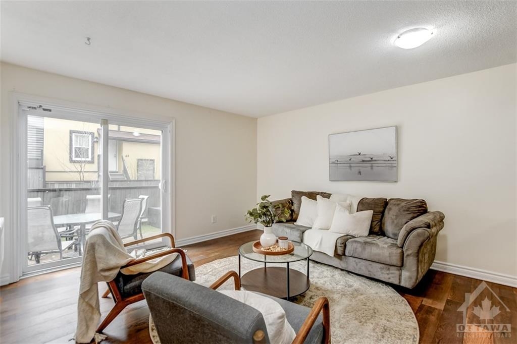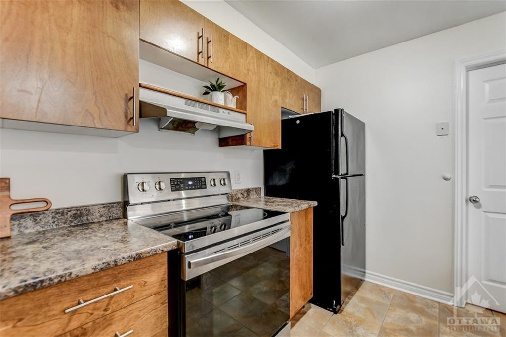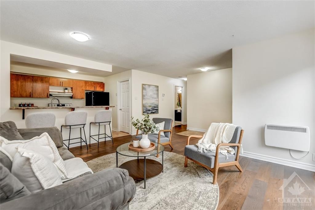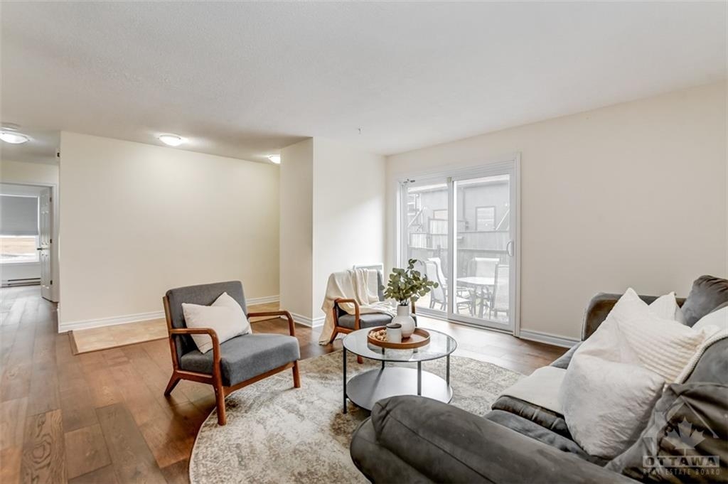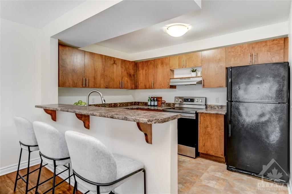 FOR RENT! Are you a great tenant looking for an updated two bedroom + den condo all on one level? This unit is completely carpet-free; enjoy new hardwood floors, modern kitchen with breakfast bar, loads of cupboard space and all appliances, two spacious bedrooms, den, updated bathroom + laundry room/storage space and storage locker. Bright and airy with patio doors leading to fenced patio area. Parking for one included with ample visitor parking available. Water included in the rent. Fantastic location close to IKEA, Queensway Carleton Hospital, Algonquin College, shopping, parks, future LRT and easy access to Hwy 417 for your commute!