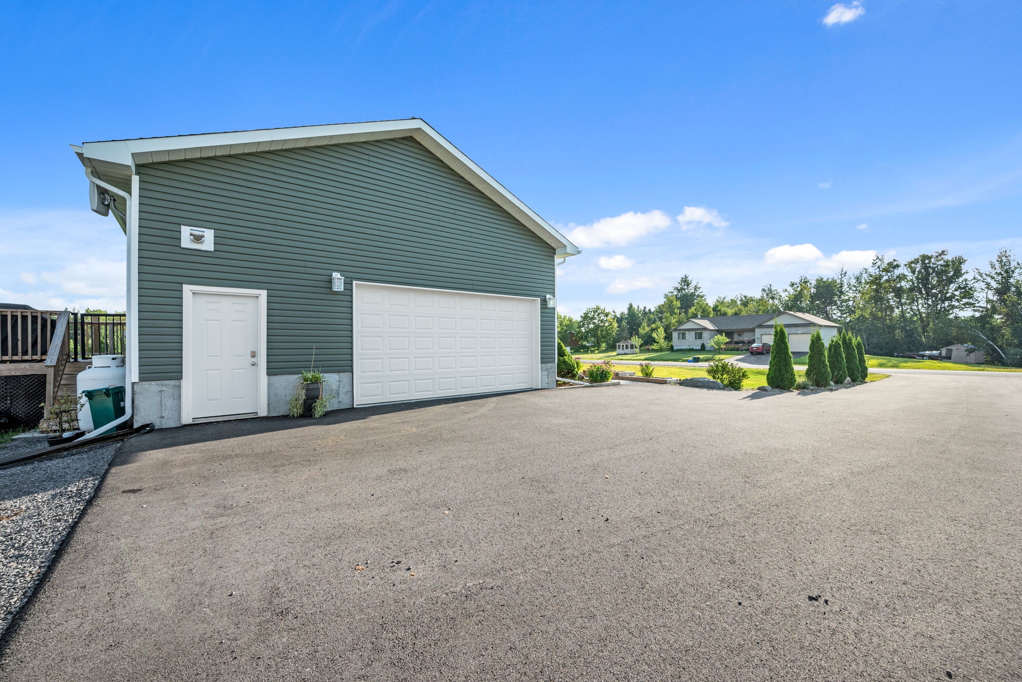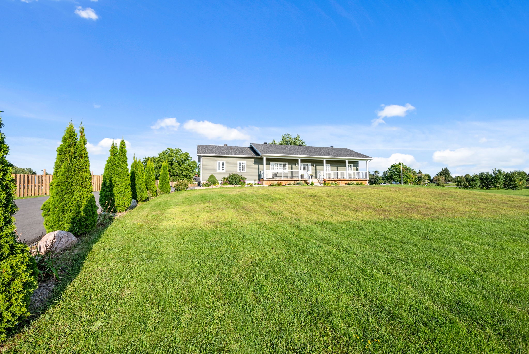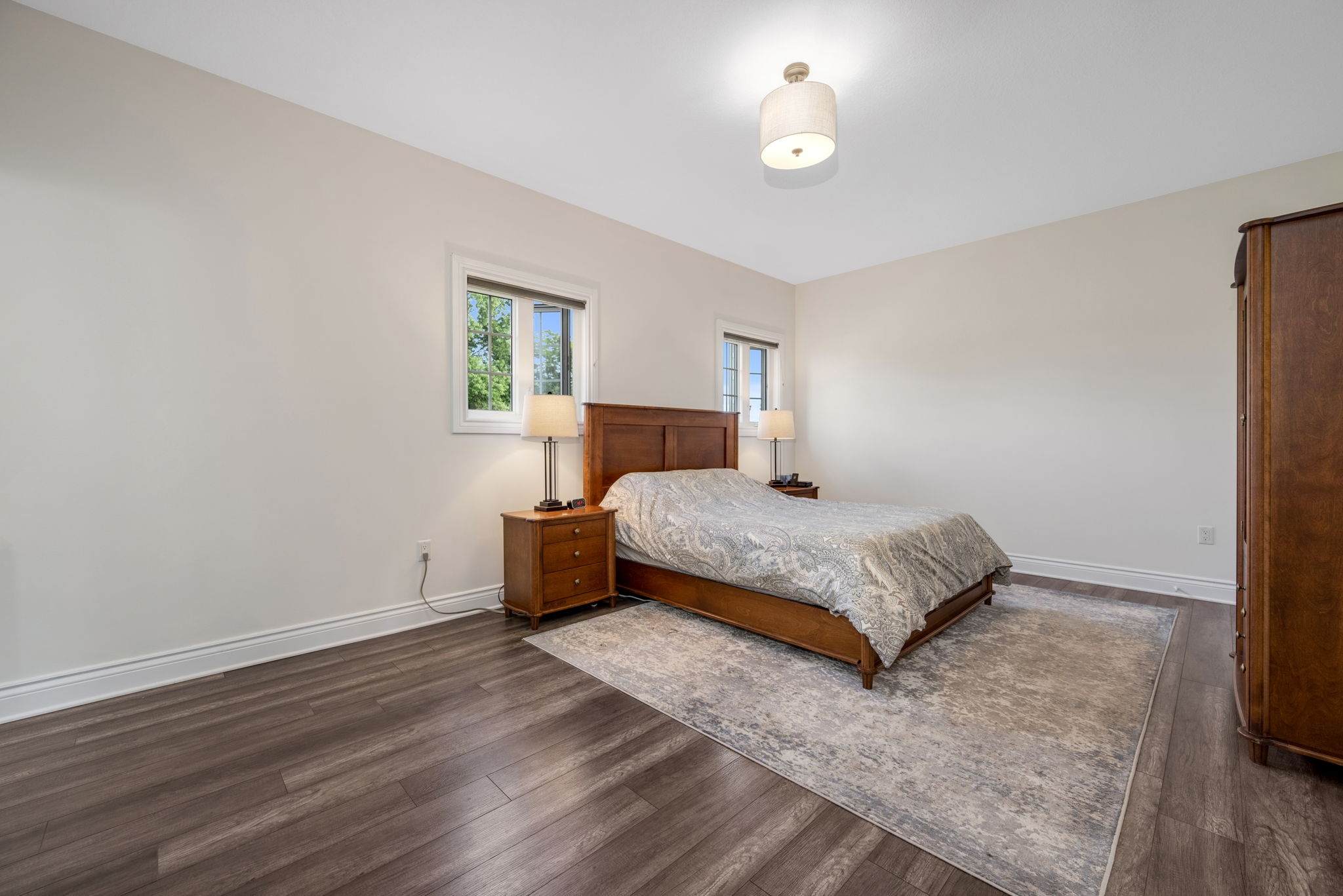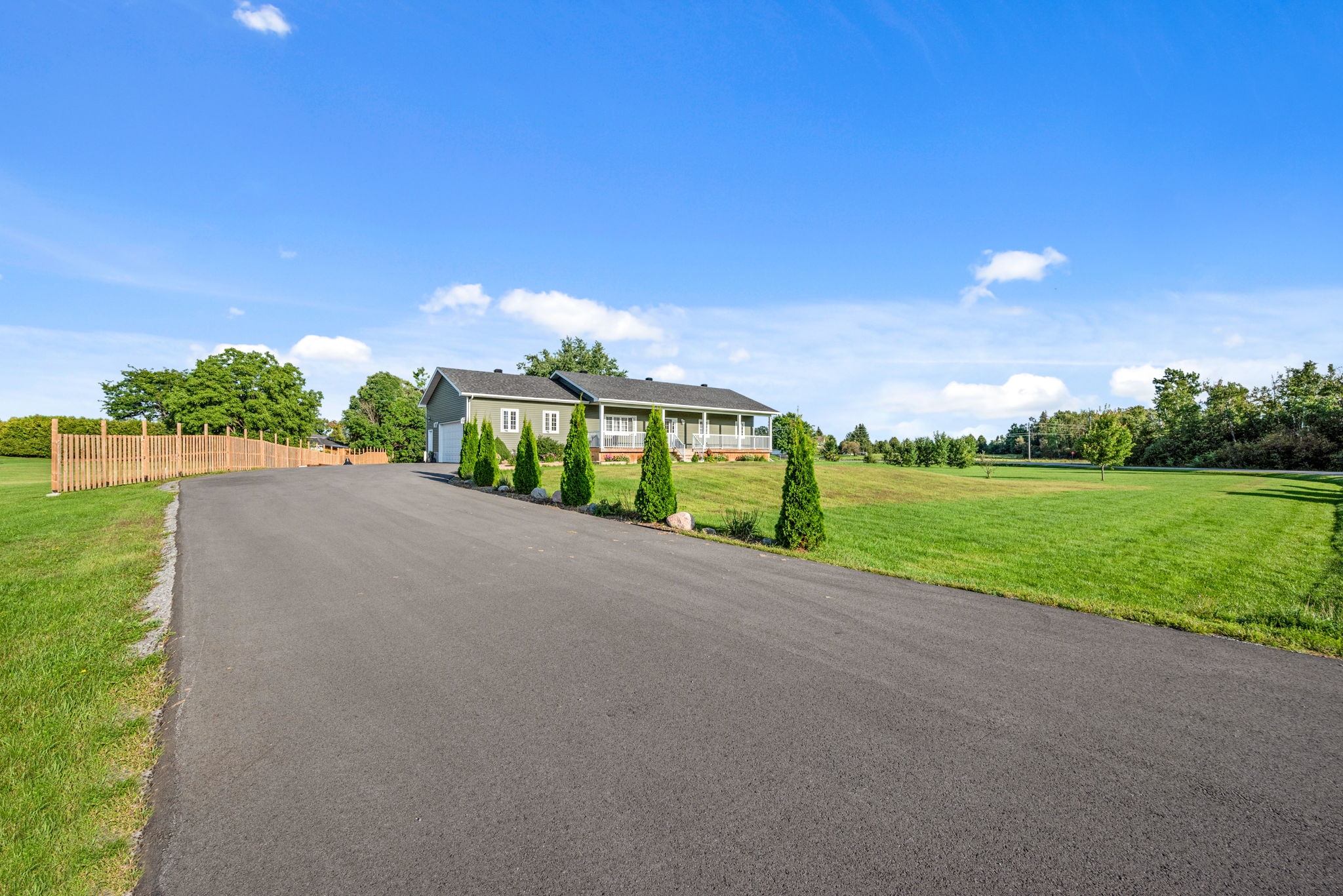 Introducing a stunning custom-built 4-bedroom bungalow in the coveted Starlight Estates, nestled on just under 2 acres of beautifully maintained land. This home offers an open-concept layout that blends elegance and functionality. The chef's kitchen features ample cabinetry, a center island, and modern appliances, seamlessly connecting to the spacious living room adorned with large windows and a stylish accent wall. The primary bedroom is a true retreat with a private ensuite bathroom, while two additional bedrooms share a well-appointed full bathroom. The finished basement expands your living space with a large recreation room, an extra bedroom, and a full bathroom—ideal for guests or extended family. Step outside to enjoy the expansive deck that overlooks the oversized yard, offering endless possibilities for outdoor activities, gardening, or simply relaxing in the serene surroundings.