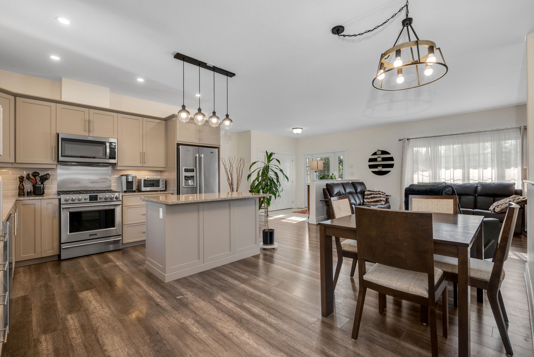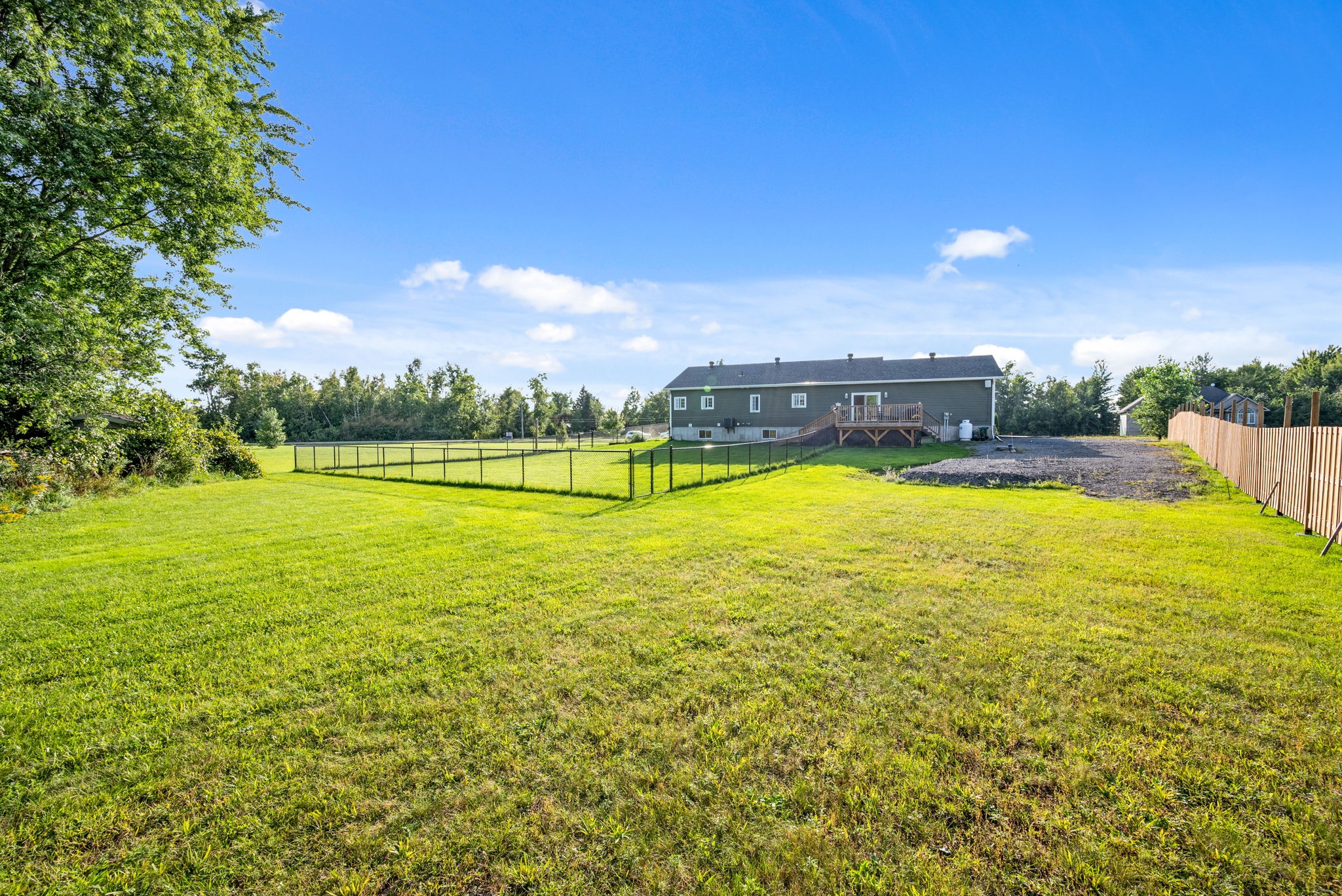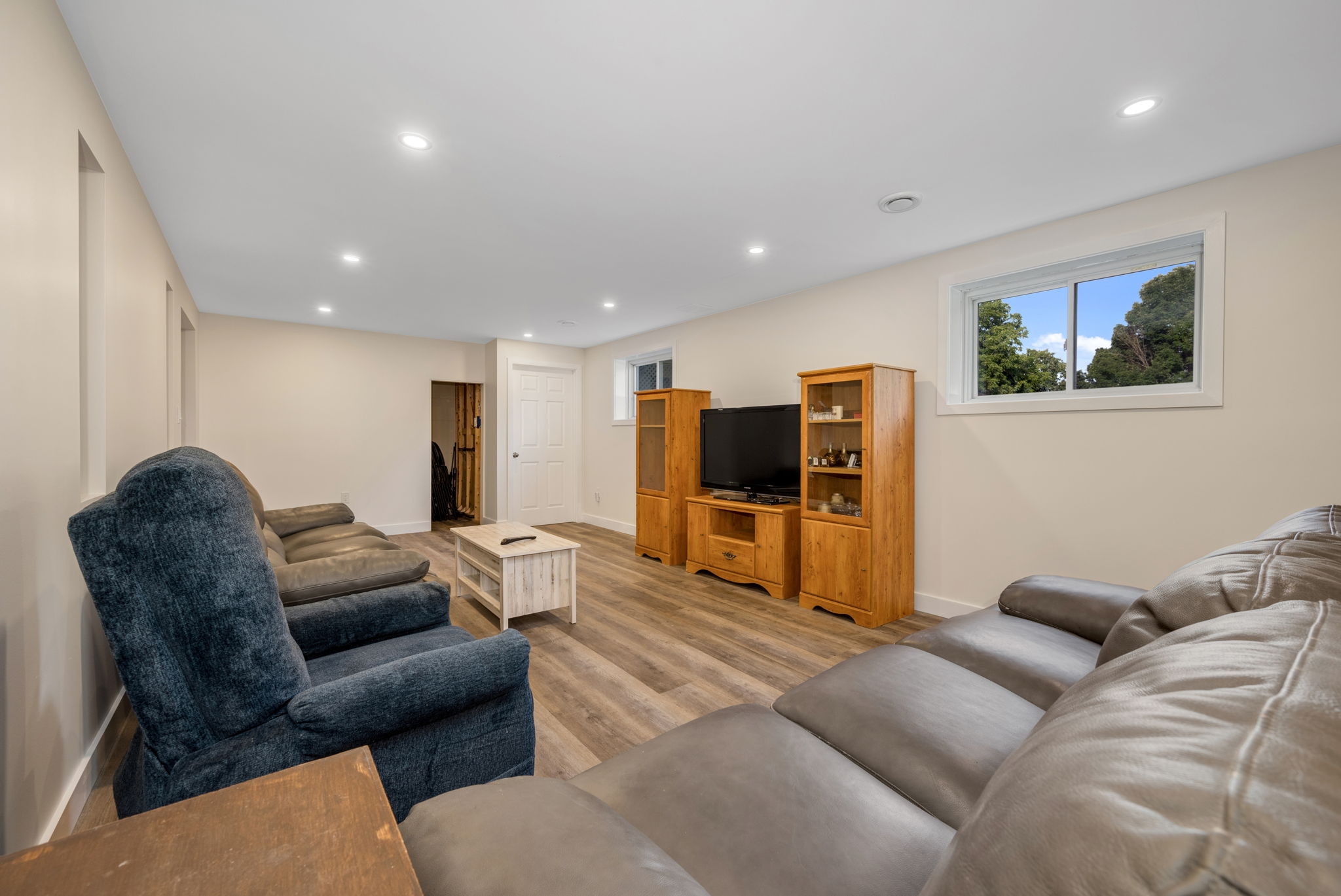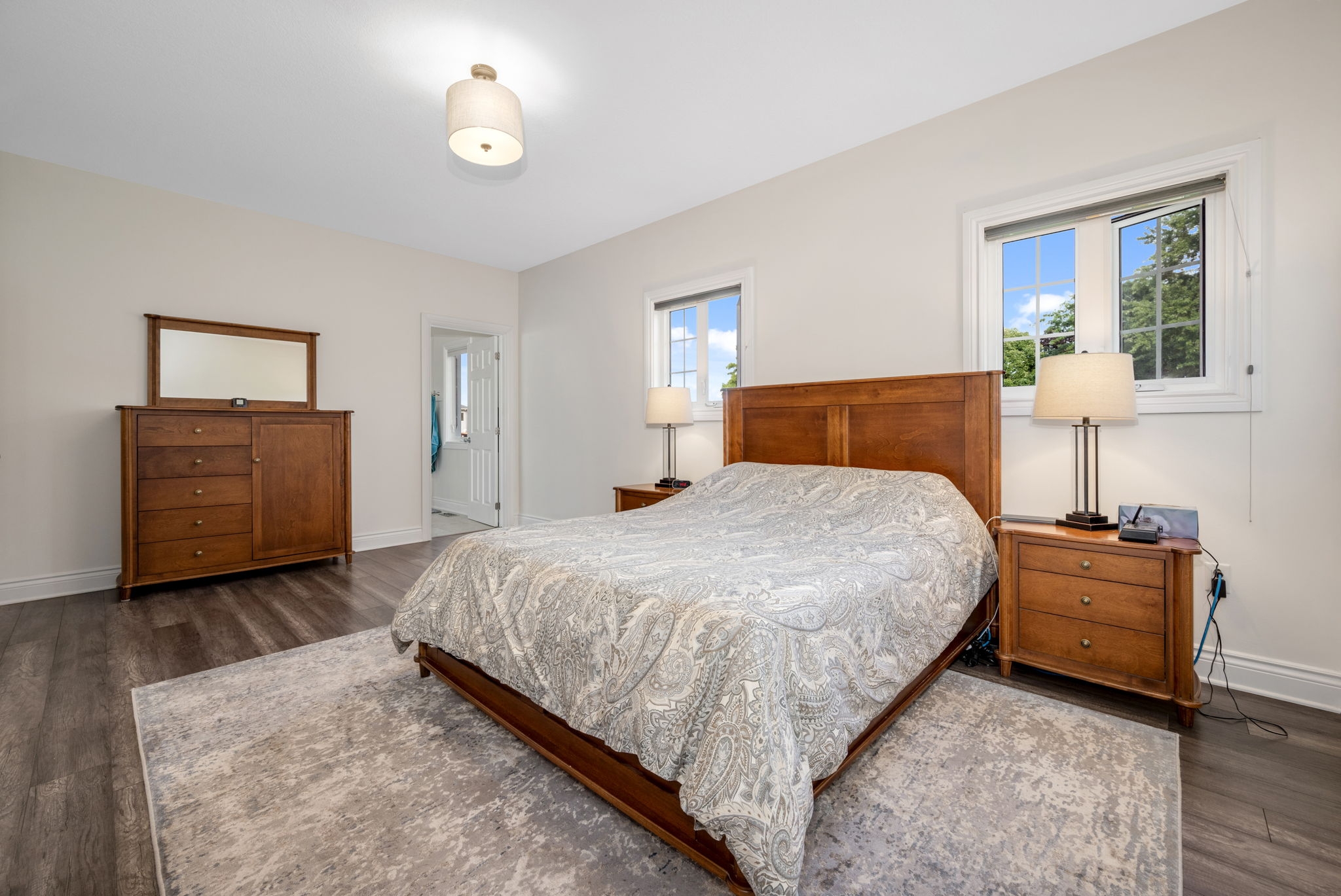Introducing a stunning custom-built 4-bedroom bungalow in the coveted Starlight Estates, nestled on just under 2 acres of beautifully maintained land. This home offers an open-concept layout that blends elegance and functionality. The chef's kitchen features ample cabinetry, a center island, and modern appliances, seamlessly connecting to the spacious living room adorned with large windows and a stylish accent wall. The primary bedroom is a true retreat with a private ensuite bathroom, while two additional bedrooms share a well-appointed full bathroom. The finished basement expands your living space with a large recreation room, an extra bedroom, and a full bathroom—ideal for guests or extended family. Step outside to enjoy the expansive deck that overlooks the oversized yard, offering endless possibilities for outdoor activities, gardening, or simply relaxing in the serene surroundings.