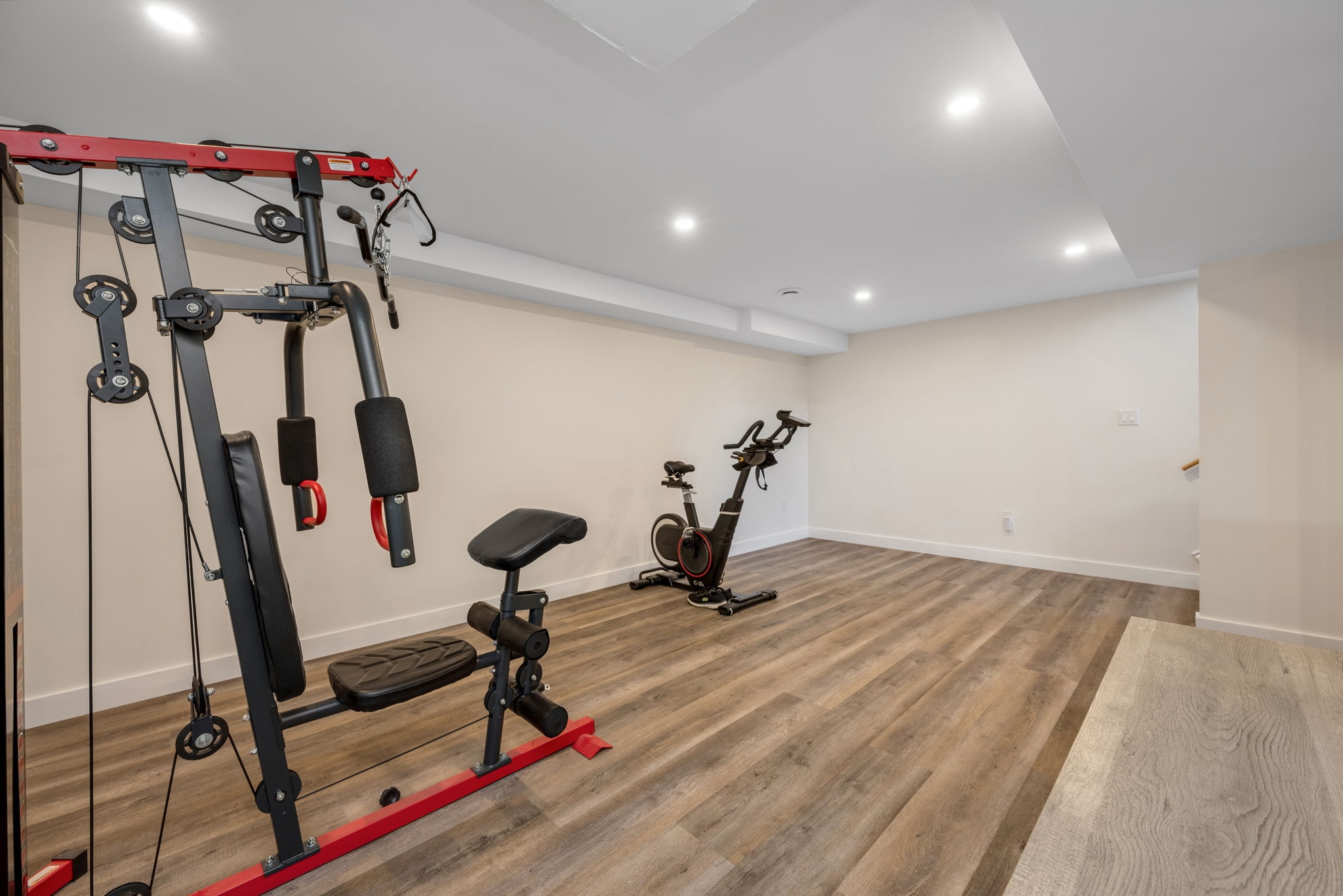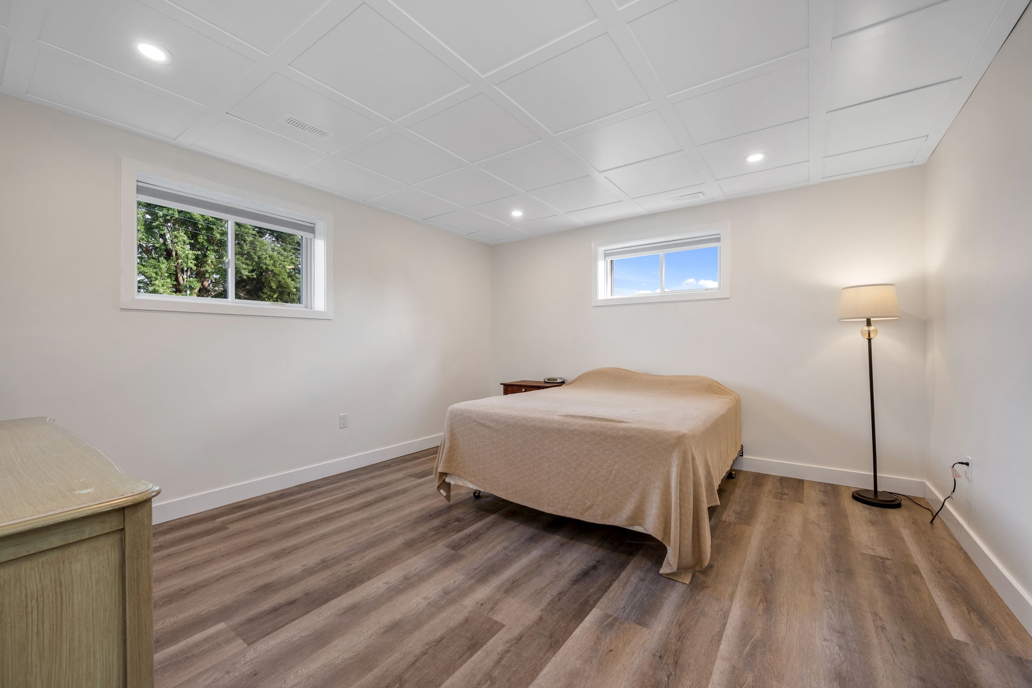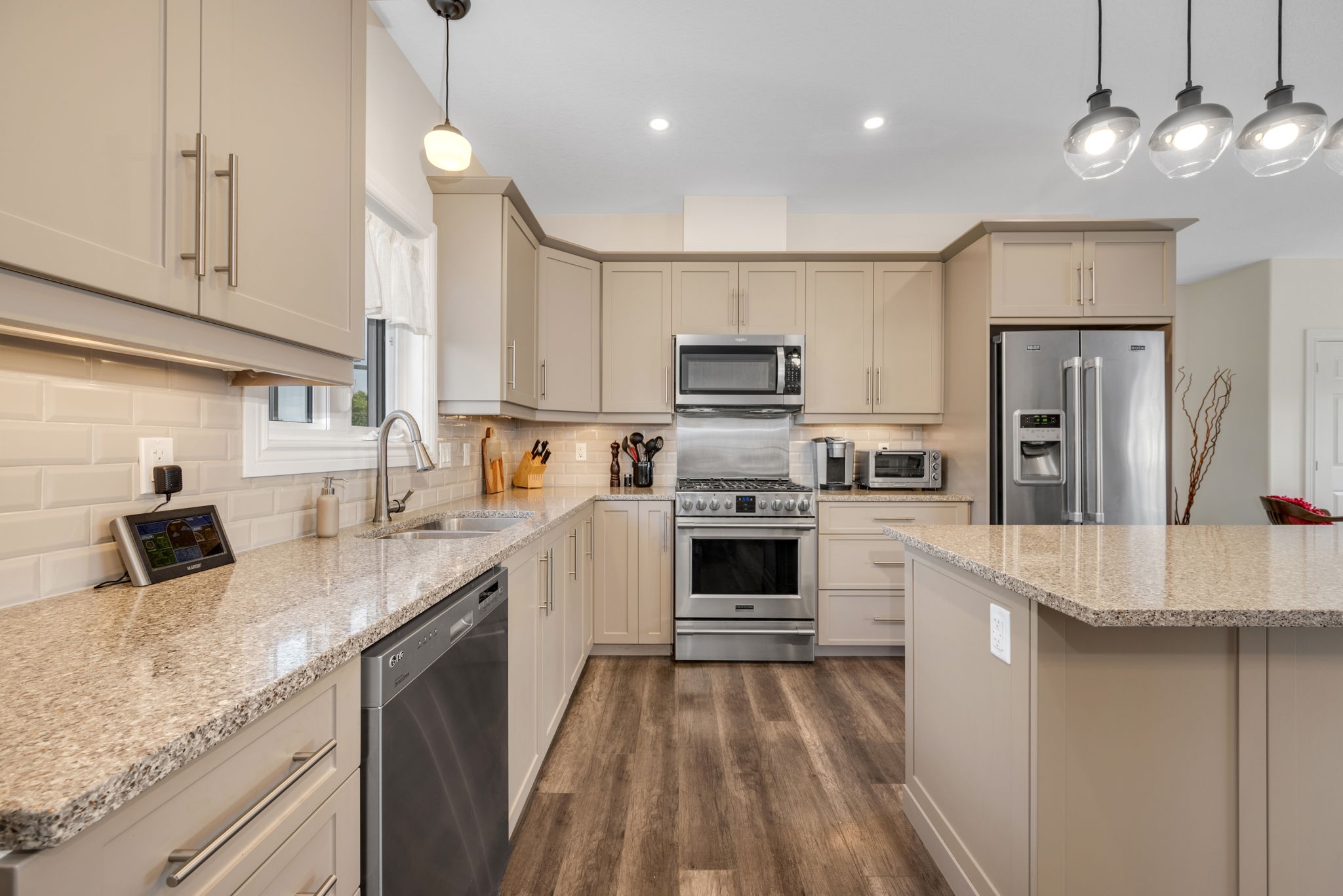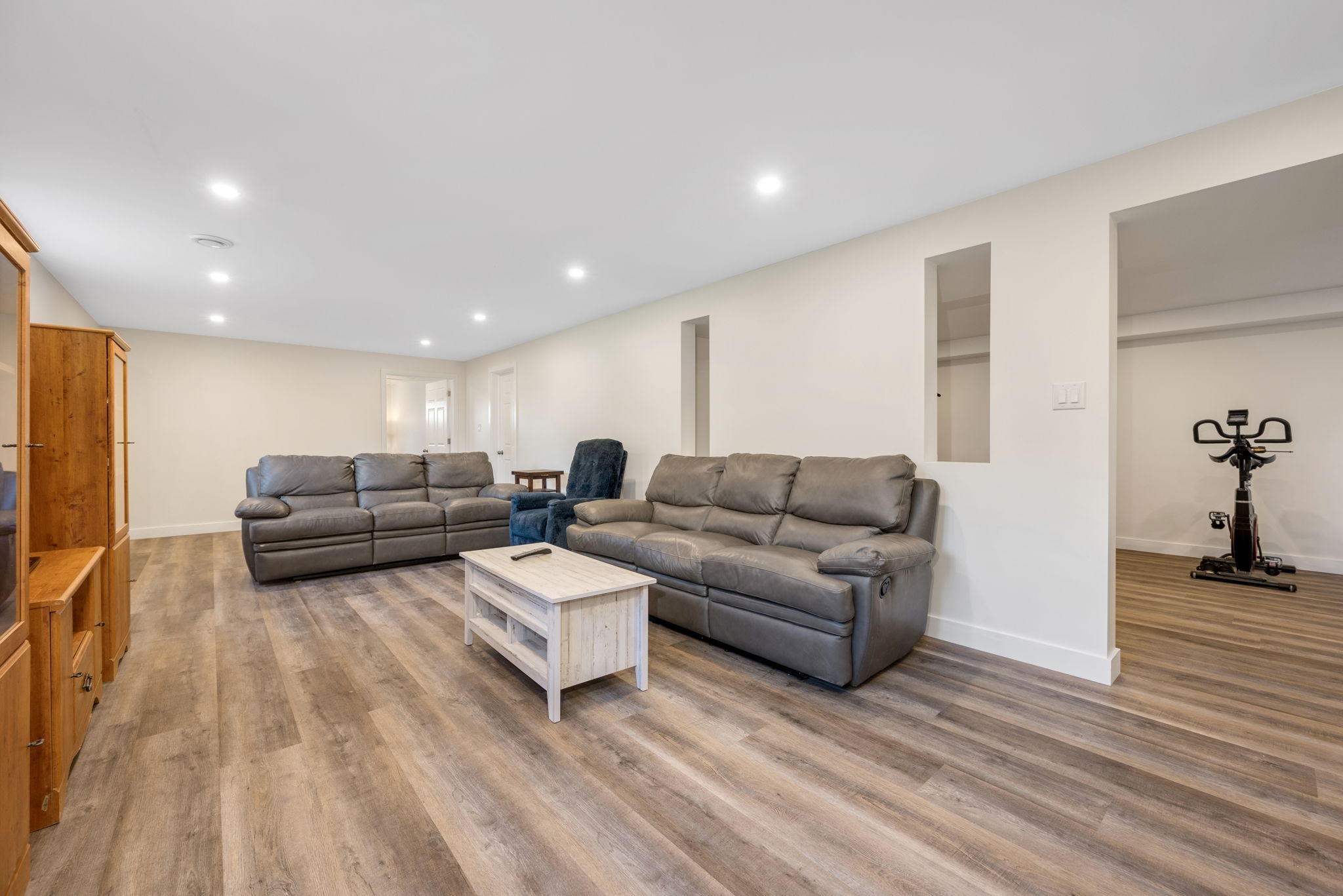 Introducing a stunning custom-built 4-bedroom bungalow in the coveted Starlight Estates, nestled on just under 2 acres of beautifully maintained land. This home offers an open-concept layout that blends elegance and functionality. The chef's kitchen features ample cabinetry, a center island, and modern appliances, seamlessly connecting to the spacious living room adorned with large windows and a stylish accent wall. The primary bedroom is a true retreat with a private ensuite bathroom, while two additional bedrooms share a well-appointed full bathroom. The finished basement expands your living space with a large recreation room, an extra bedroom, and a full bathroom—ideal for guests or extended family. Step outside to enjoy the expansive deck that overlooks the oversized yard, offering endless possibilities for outdoor activities, gardening, or simply relaxing in the serene surroundings.