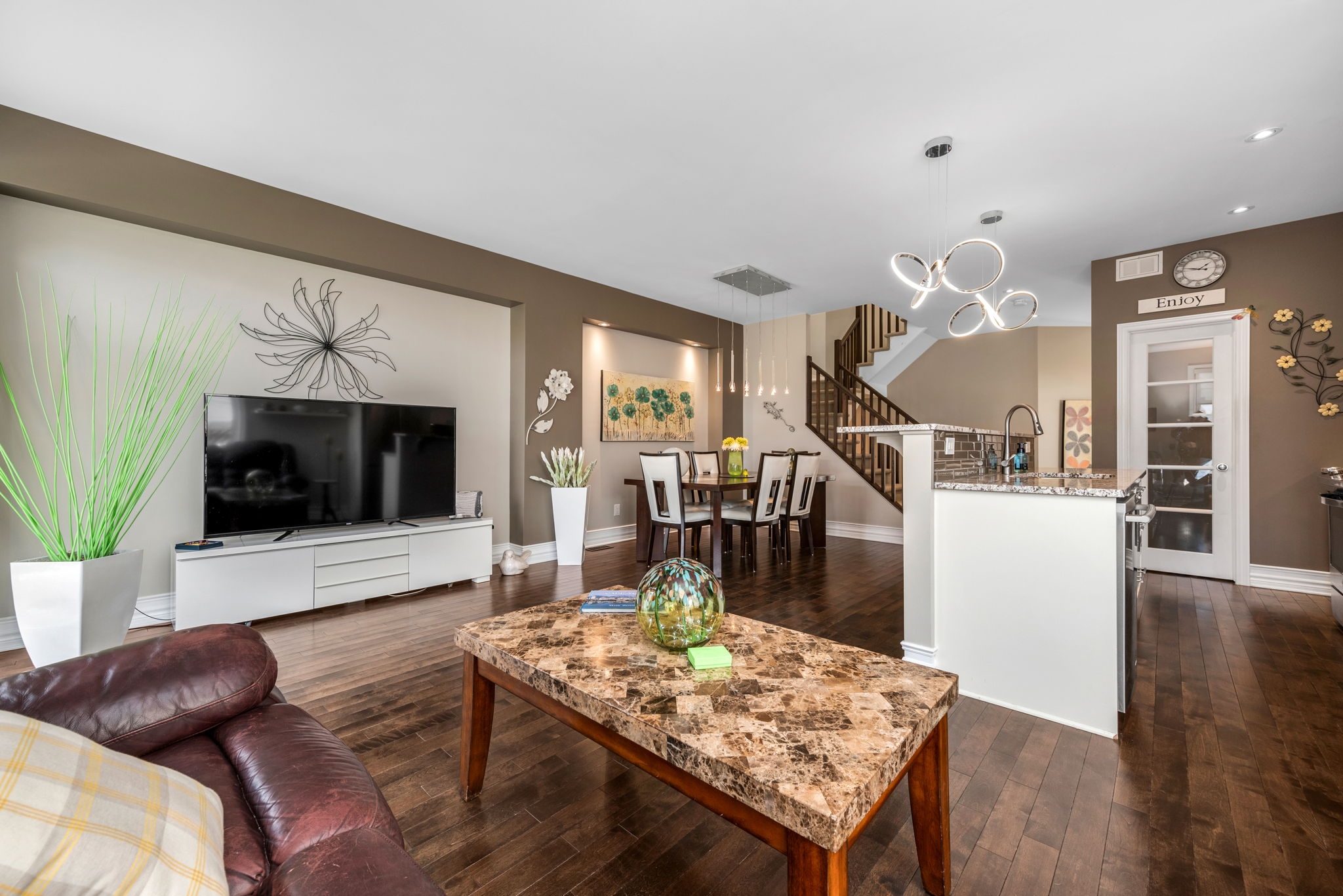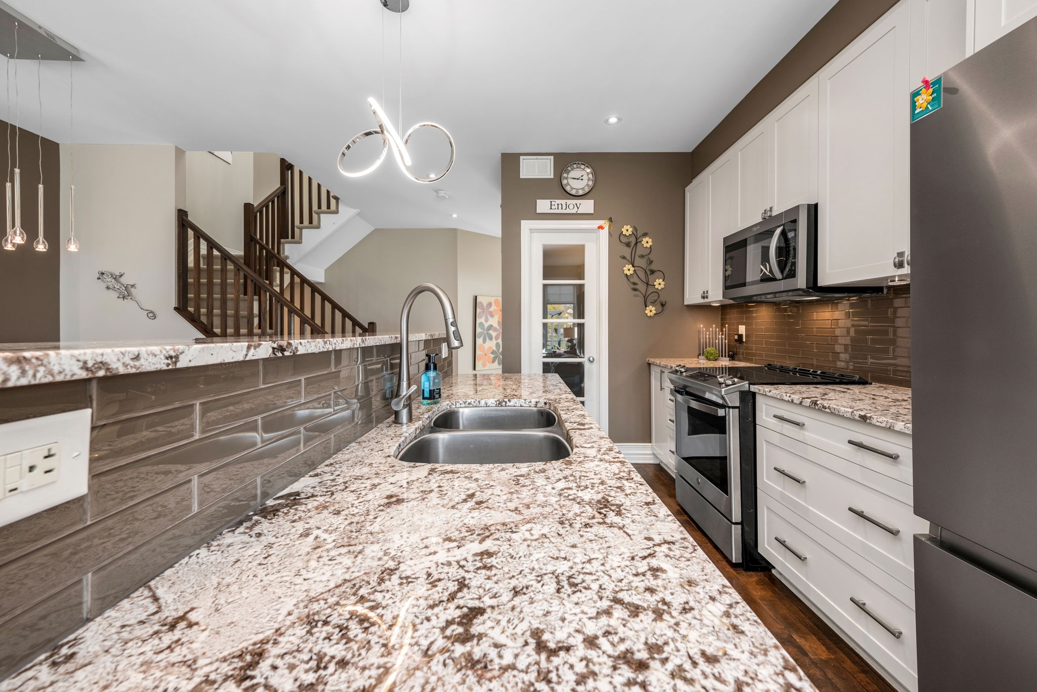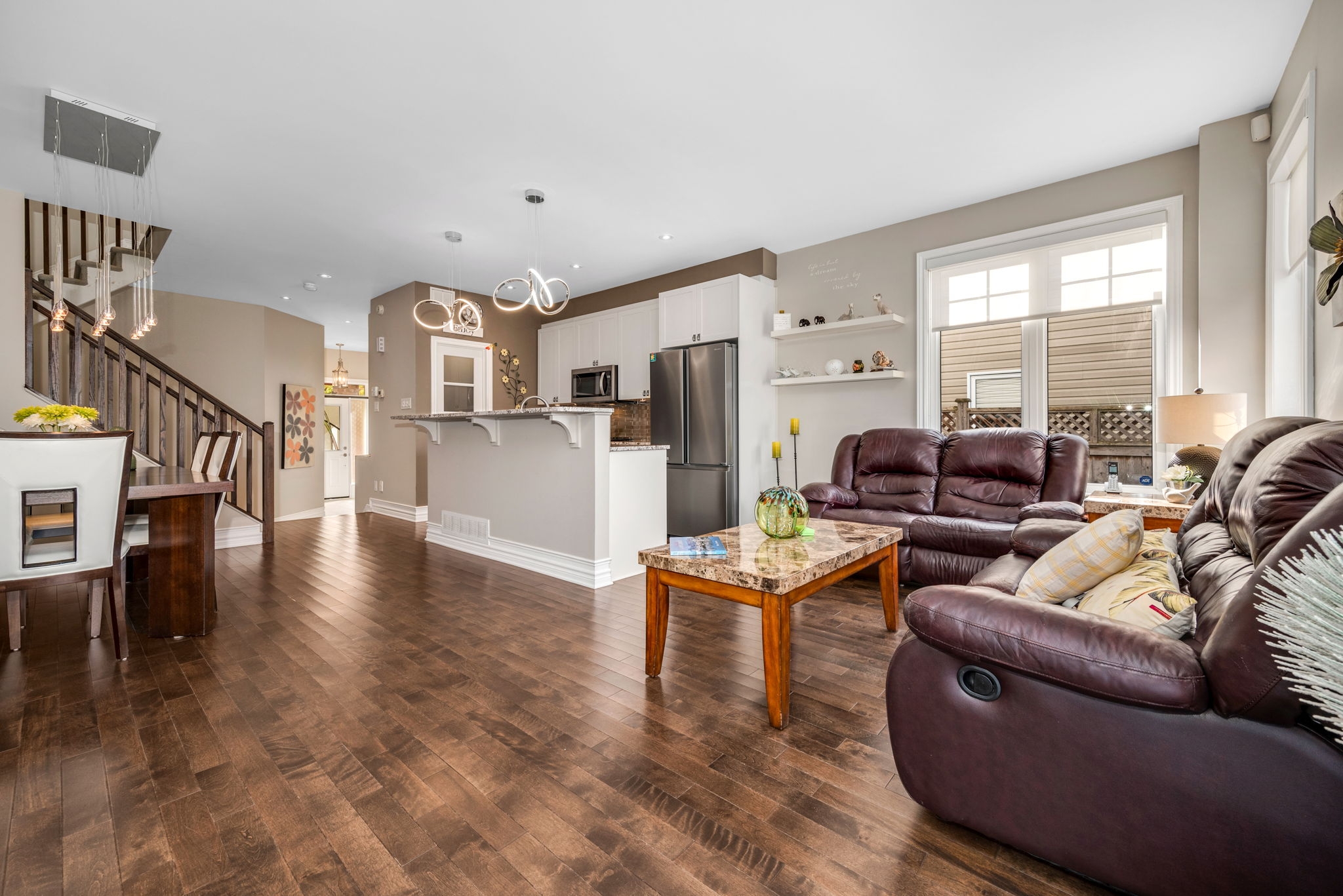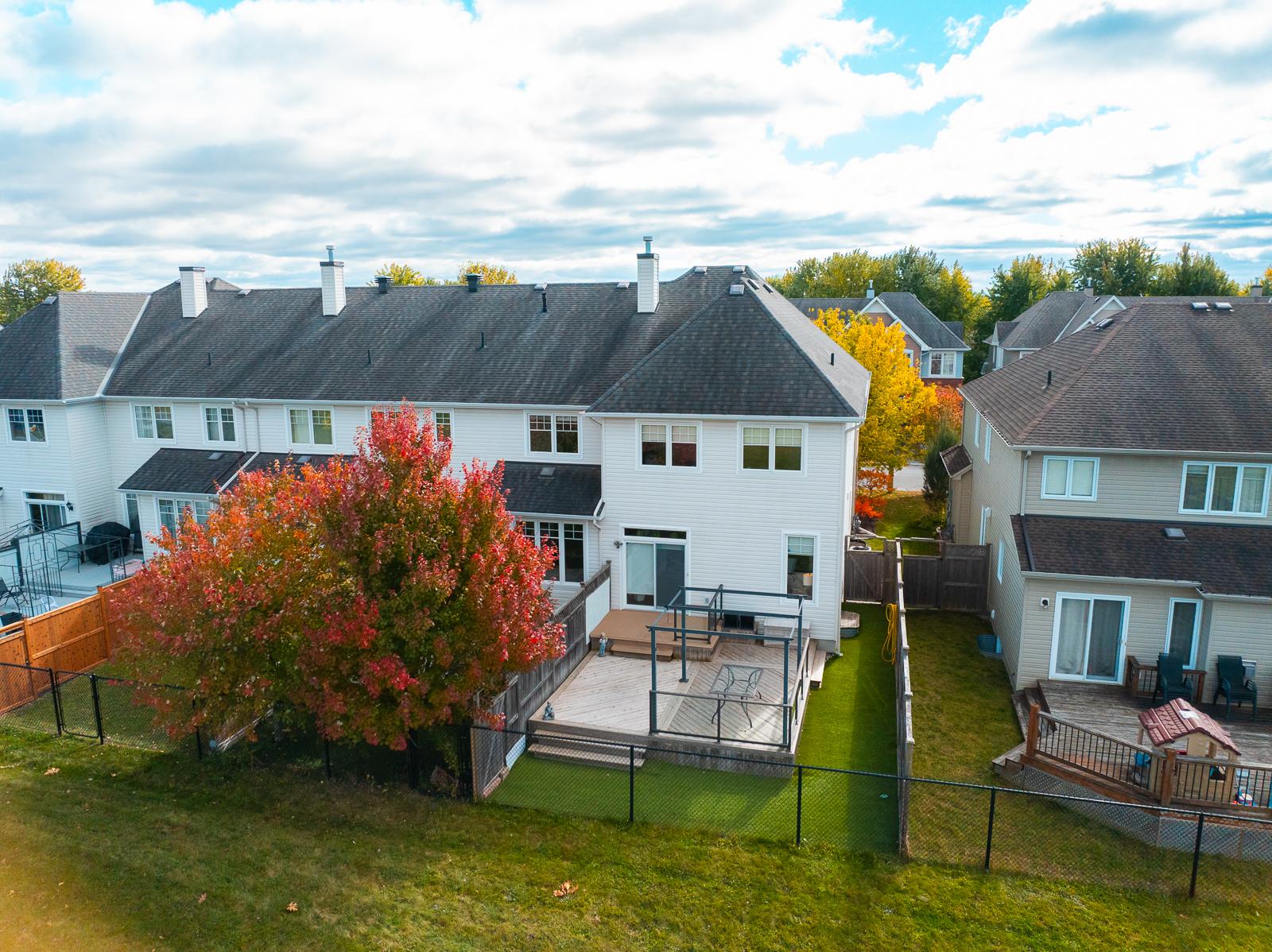 Backing onto Turtle Park, this stunning 3-bedroom plus den end unit townhome in Findlay Creek checks all the boxes! The impressive open concept main level showcases a striking kitchen equipped with newer appliances, corner pantry and raised bar, perfect for entertaining. Spacious living and dining areas bathe in natural light, creating an inviting atmosphere for everyone to enjoy. Upstairs, the primary retreat boasts an updated 5pc ensuite, complemented by a versatile bonus den that can easily serve as a home office/play area. Two additional bedrooms and a full family bathroom complete this level. A finished basement offers a large rec room w/cozy fireplace, perfect for casual living and movie nights. Outside, discover a picturesque backyard that seamlessly merges indoor/outdoor living, overlooking Turtle park. Featuring an abundance of upgrades, this home is conveniently located just steps from schools & shopping, with easy access to the future LRT, YOW Airport, and downtown Ottawa.