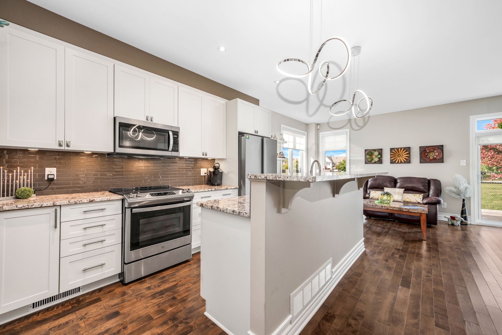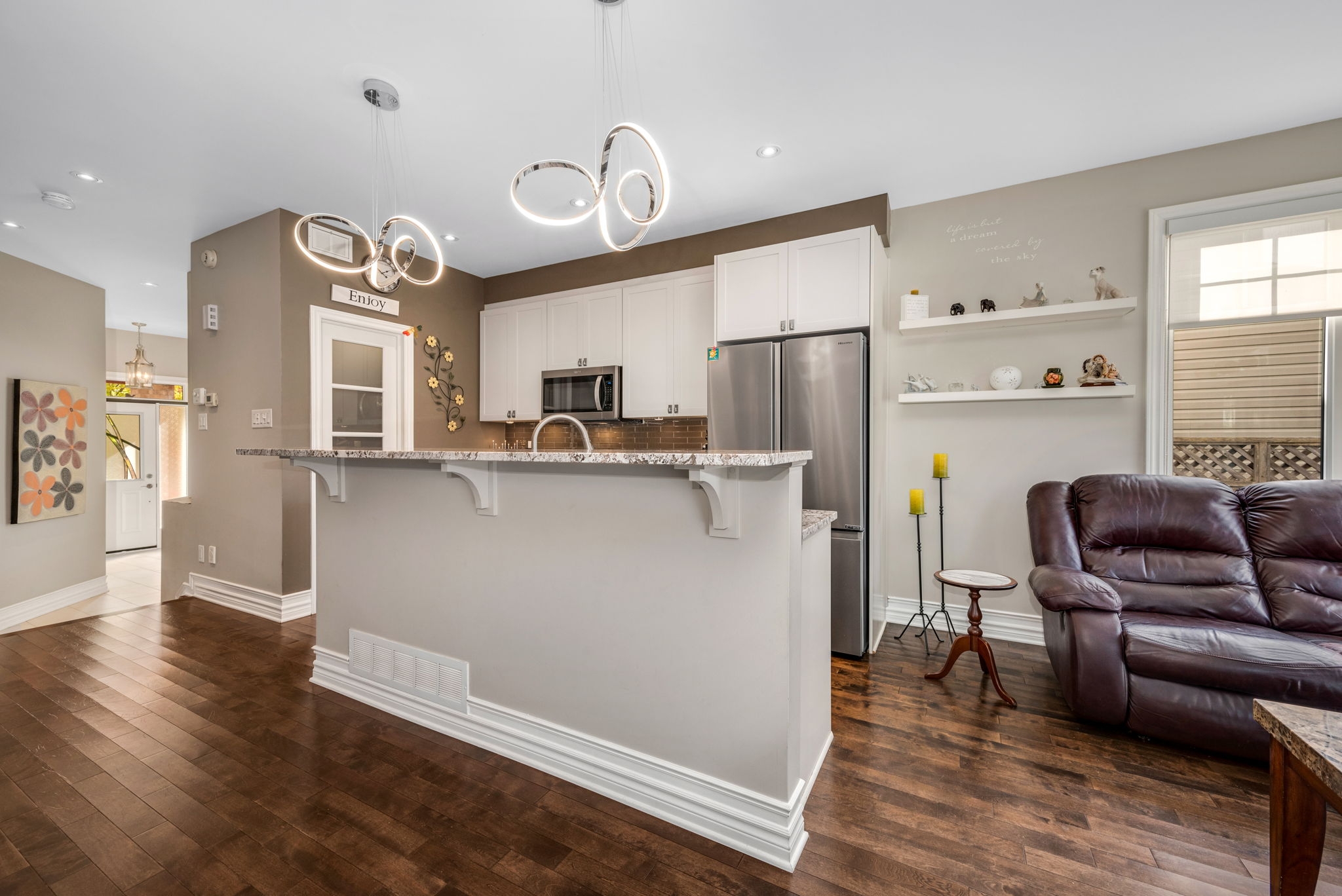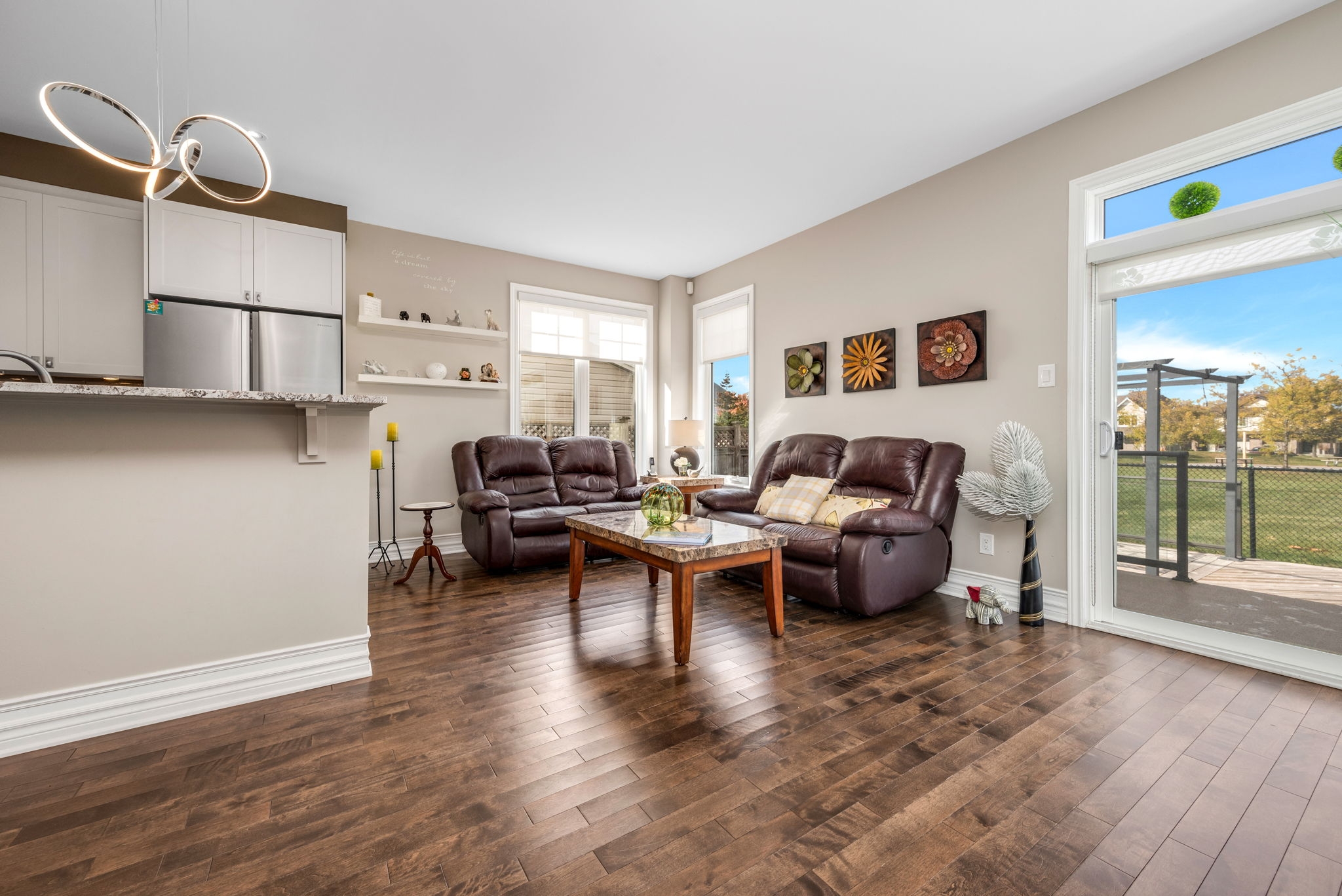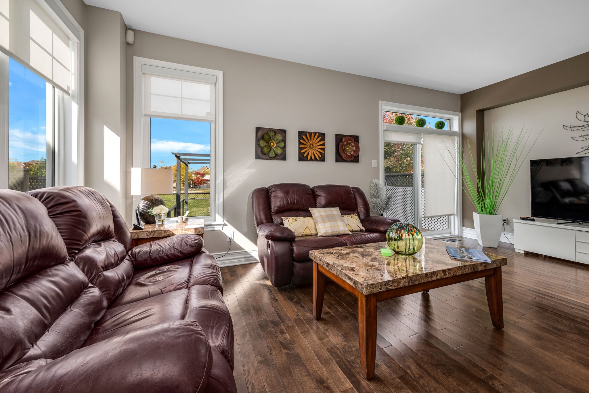 Backing onto Turtle Park, this stunning 3-bedroom plus den end unit townhome in Findlay Creek checks all the boxes! The impressive open concept main level showcases a striking kitchen equipped with newer appliances, corner pantry and raised bar, perfect for entertaining. Spacious living and dining areas bathe in natural light, creating an inviting atmosphere for everyone to enjoy. Upstairs, the primary retreat boasts an updated 5pc ensuite, complemented by a versatile bonus den that can easily serve as a home office/play area. Two additional bedrooms and a full family bathroom complete this level. A finished basement offers a large rec room w/cozy fireplace, perfect for casual living and movie nights. Outside, discover a picturesque backyard that seamlessly merges indoor/outdoor living, overlooking Turtle park. Featuring an abundance of upgrades, this home is conveniently located just steps from schools & shopping, with easy access to the future LRT, YOW Airport, and downtown Ottawa.
