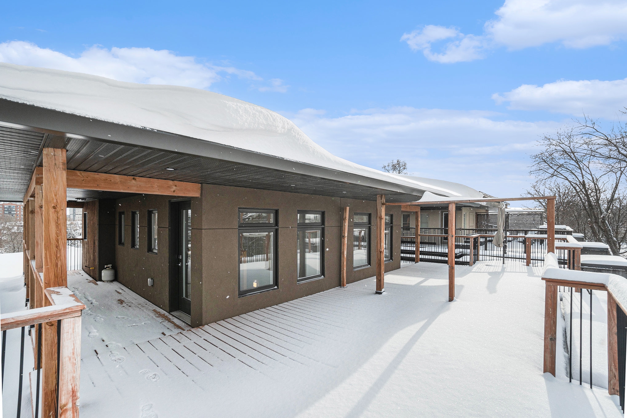 or gym, along with a 3pc bathroom. An expansive rooftop deck offers panoramic views of the Ottawa River and Gatineau Hills an ideal space to relax and unwind. Located steps from Westboro beach, multi-use paths, the Ottawa River, transit, and close to local shops, and cafes. Some photos are virtually staged.