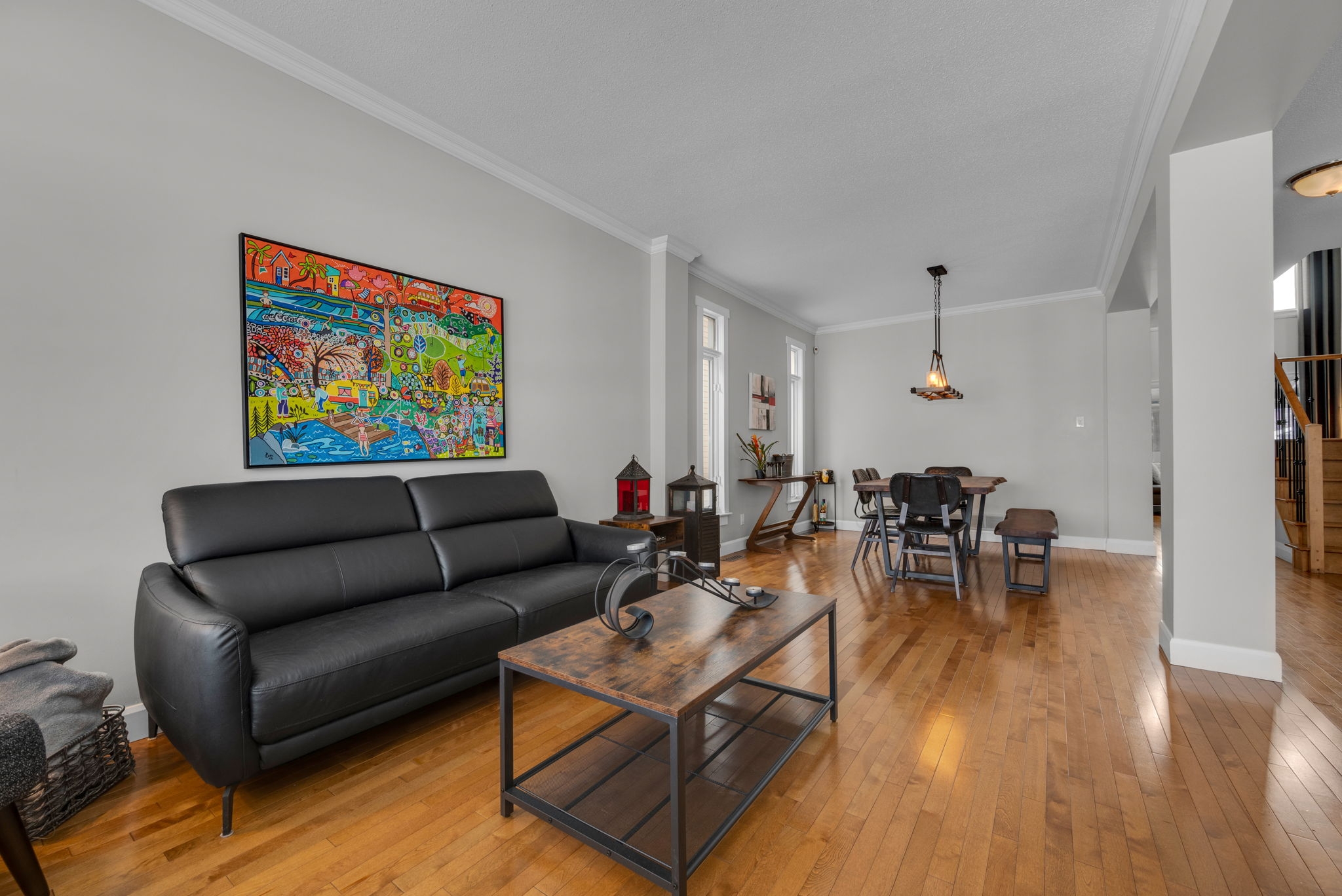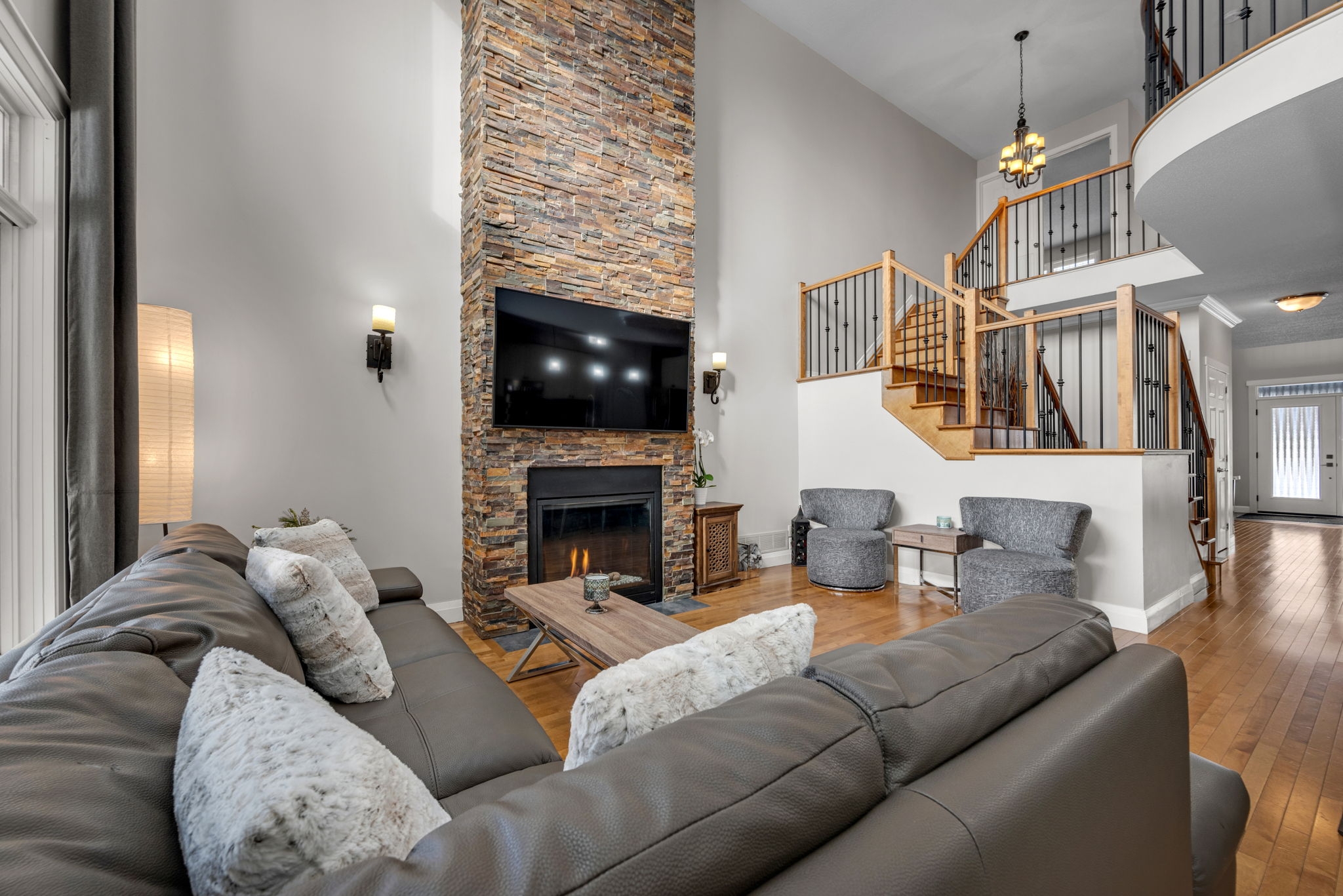 Welcome to this stunning family home in the heart of Orleans, offering generous living spaces, modern finishes, and an unbeatable location near excellent schools, parks, and everyday essentials. Step inside to a bright and inviting living room and dining area, featuring gleaming hardwood floors that flow seamlessly throughout the main level. The chefs kitchen is a standout, offering a large eating area and ample cabinetry, adjacent to the charming family room. Here, a striking gas fireplace wall and soaring 18' ceilings create a warm and elegant space to gather. A main-floor den provides convenience and flexibility for a 5th bedroom or a home office. Upstairs, the spacious and primary suite is a retreat of its own, complete with a walk-in closet and a luxurious, newly upgraded, ensuite featuring a soaker tub. Three additional bedrooms and a full bathroom complete this level, offering ample space for a growing family.The fully finished basement is designed for entertainment and relaxation, featuring a large recreation room with a gas fireplace, a bar/kitchenette, and a versatile bonus den, perfect for a home gym or playroom. A true highlight of this home is the new heated 3-season porch, a bright and cozy space to enjoy and entertain. Step outside to the fenced-in backyard, with in-ground pool, perfect for outdoor gatherings.This beautiful home offers the perfect blend of comfort, style, and practicality in one of Orleans most sought-after neighbourhoods. Don't miss your chance to make it yours!