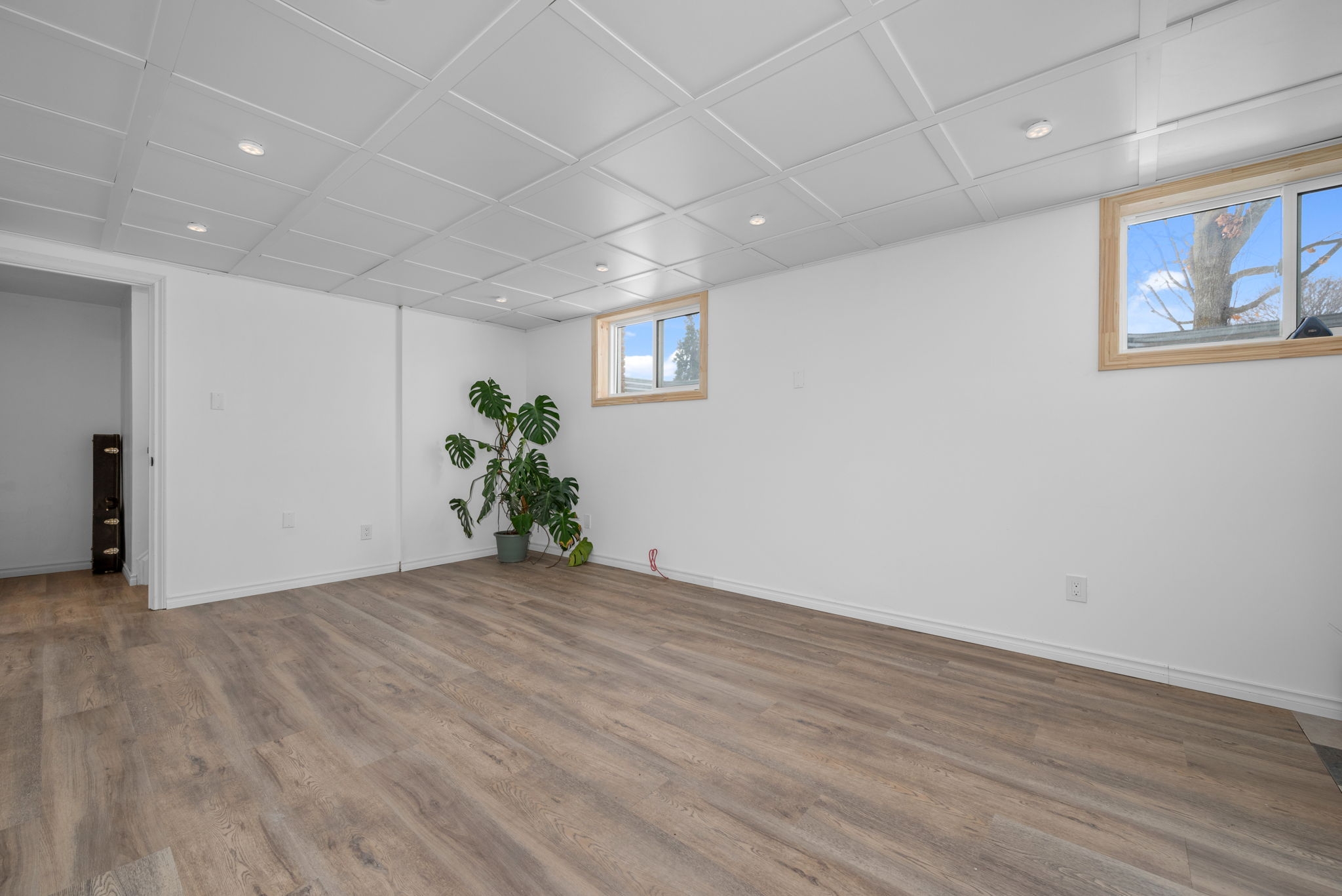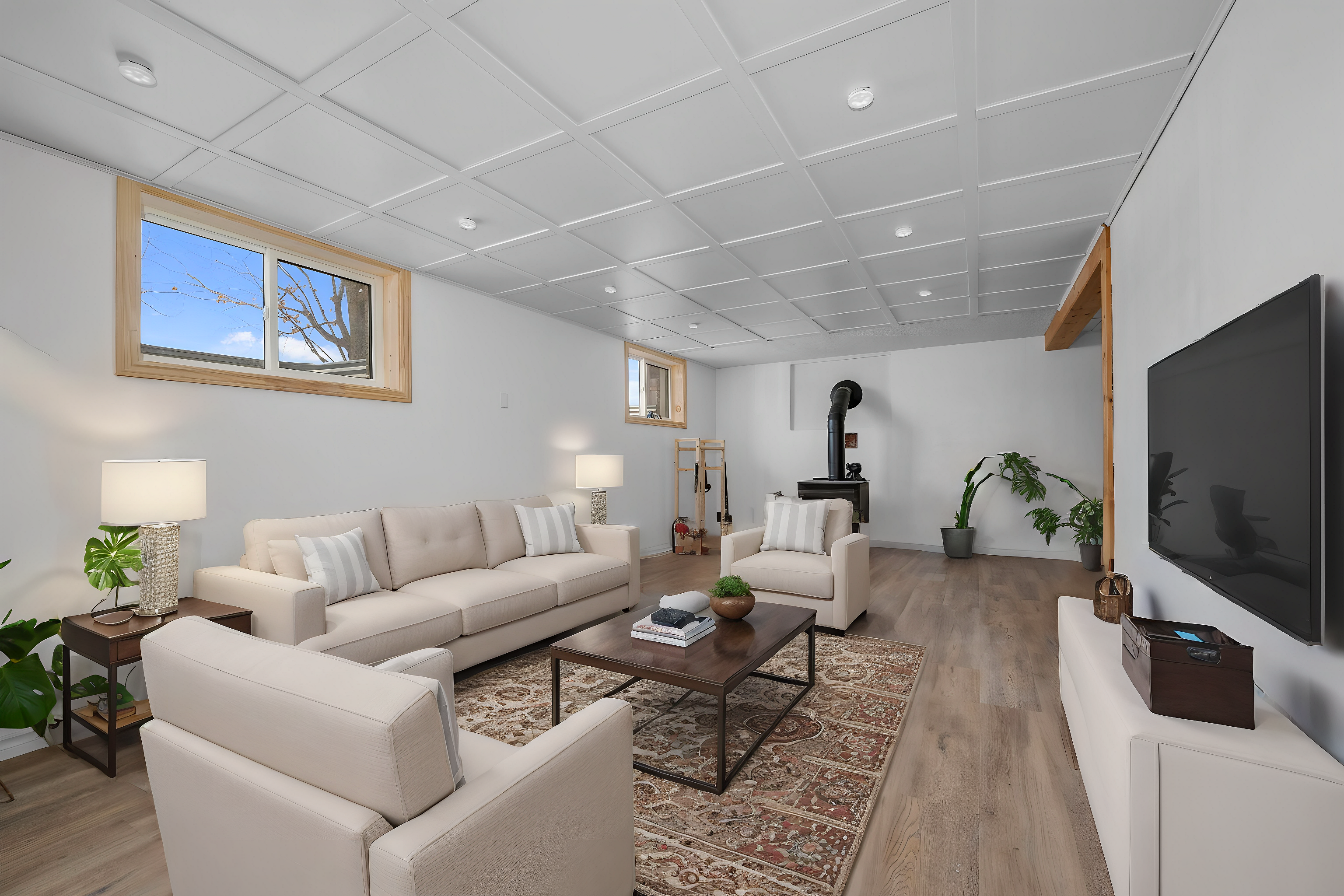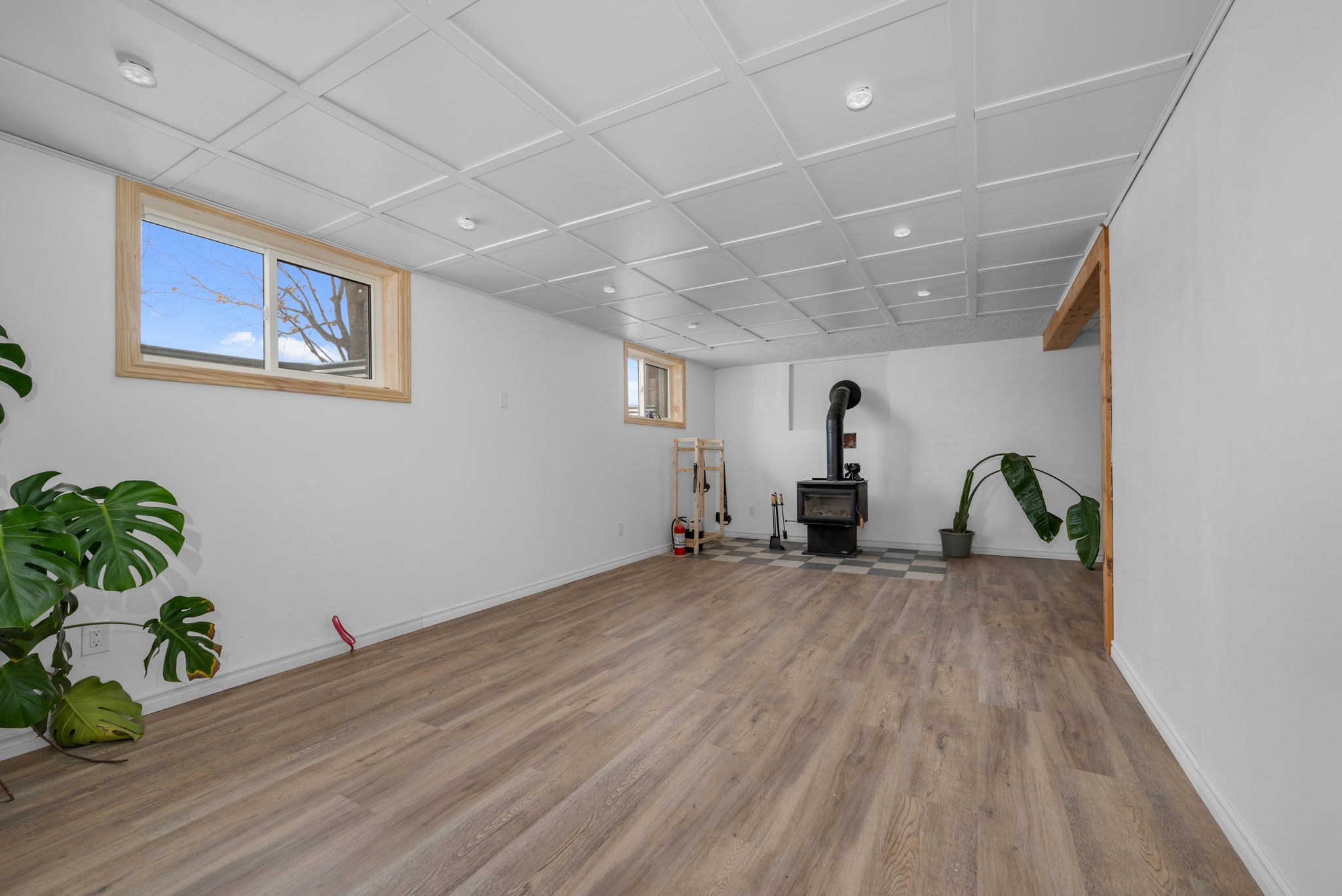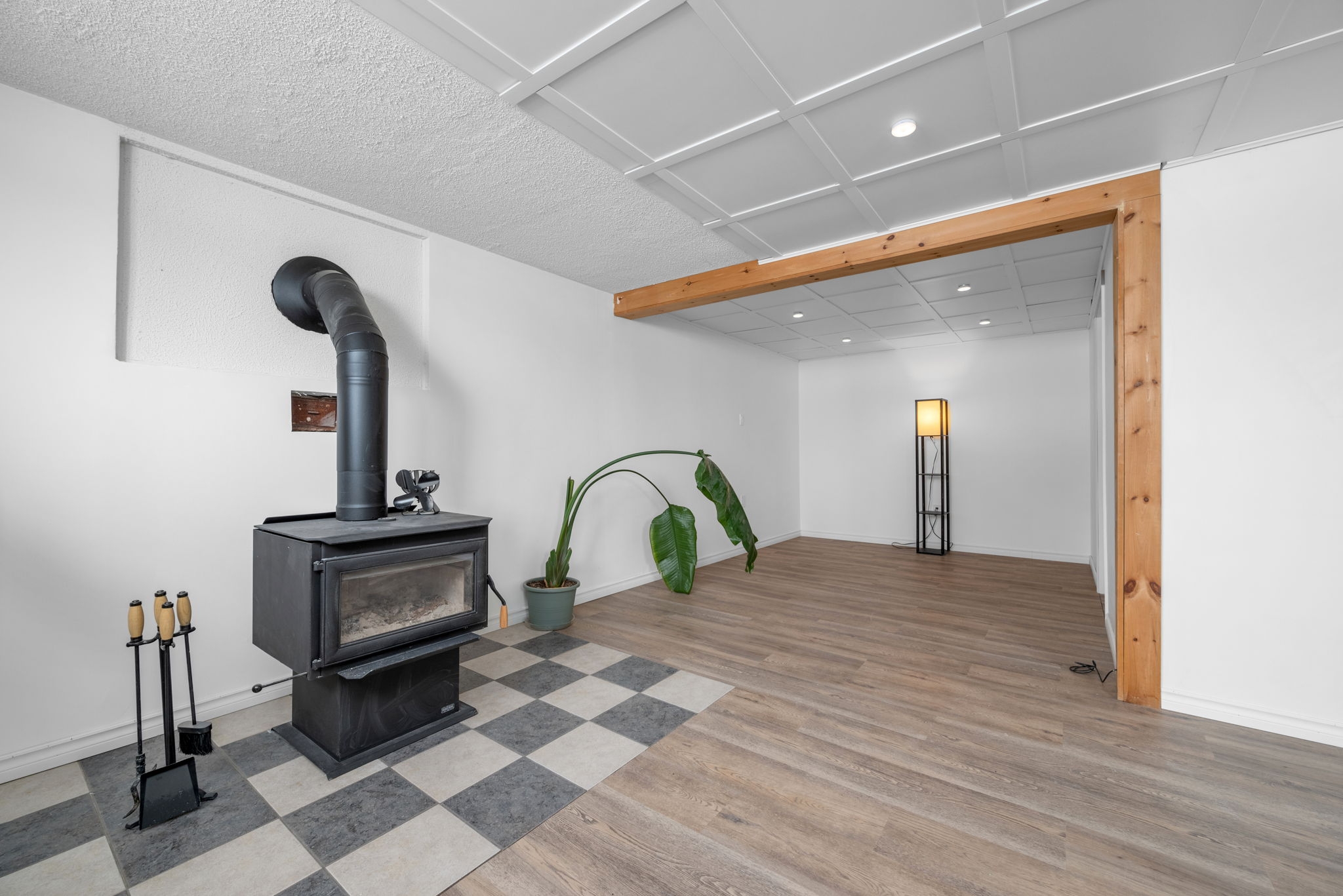 Discover exceptional value in this beautifully appointed 3-bedroom bungalow, perfect for first-time buyers, downsizers, or investors. Nestled in a quiet location, this bright and sun-filled home boasts a thoughtfully designed floor plan, ideal for a growing family. The open-concept layout offers great sight lines, seamlessly connecting the inviting living and dining areas to a stylish and functional kitchen, perfect for everyday living and entertaining. Three generously sized bedrooms and a fully renovated bathroom complete the main level.The lower level expands the living space with a cozy wood stove, a versatile nook/den, and a generous combined laundry and storage area. Step outside to the wonderful rear yard, where a spacious deck provides the perfect setting for outdoor living. With plenty of room for kids to play or for the avid gardener to create their dream space, this home offers endless possibilities.