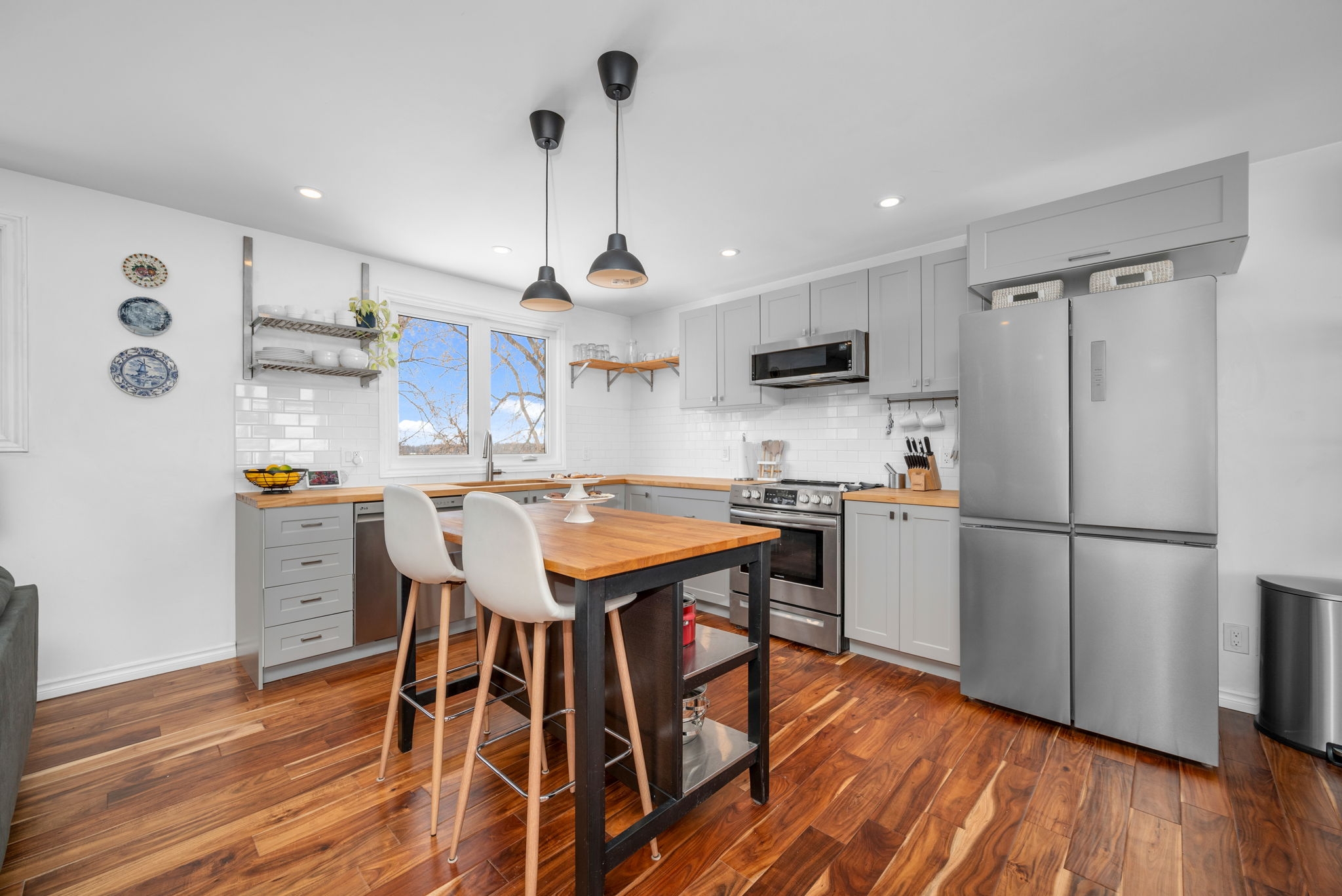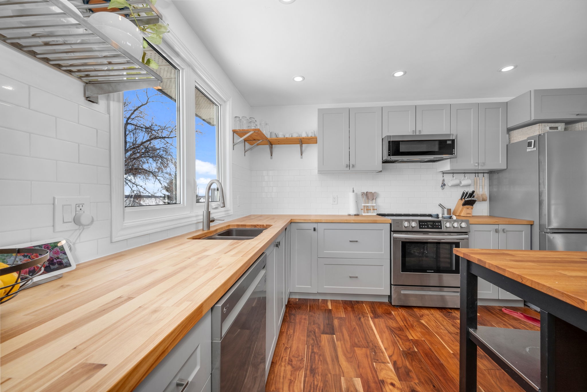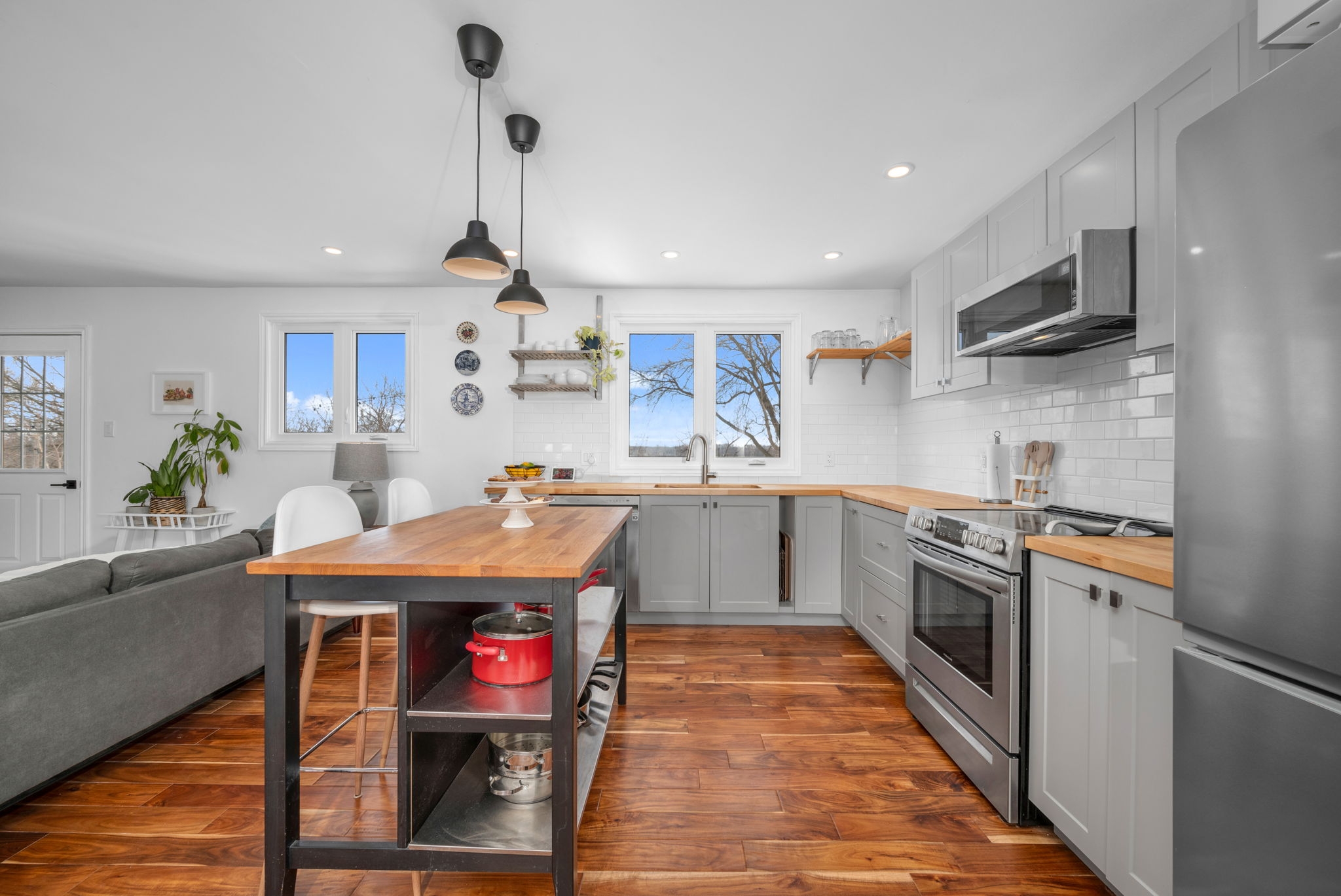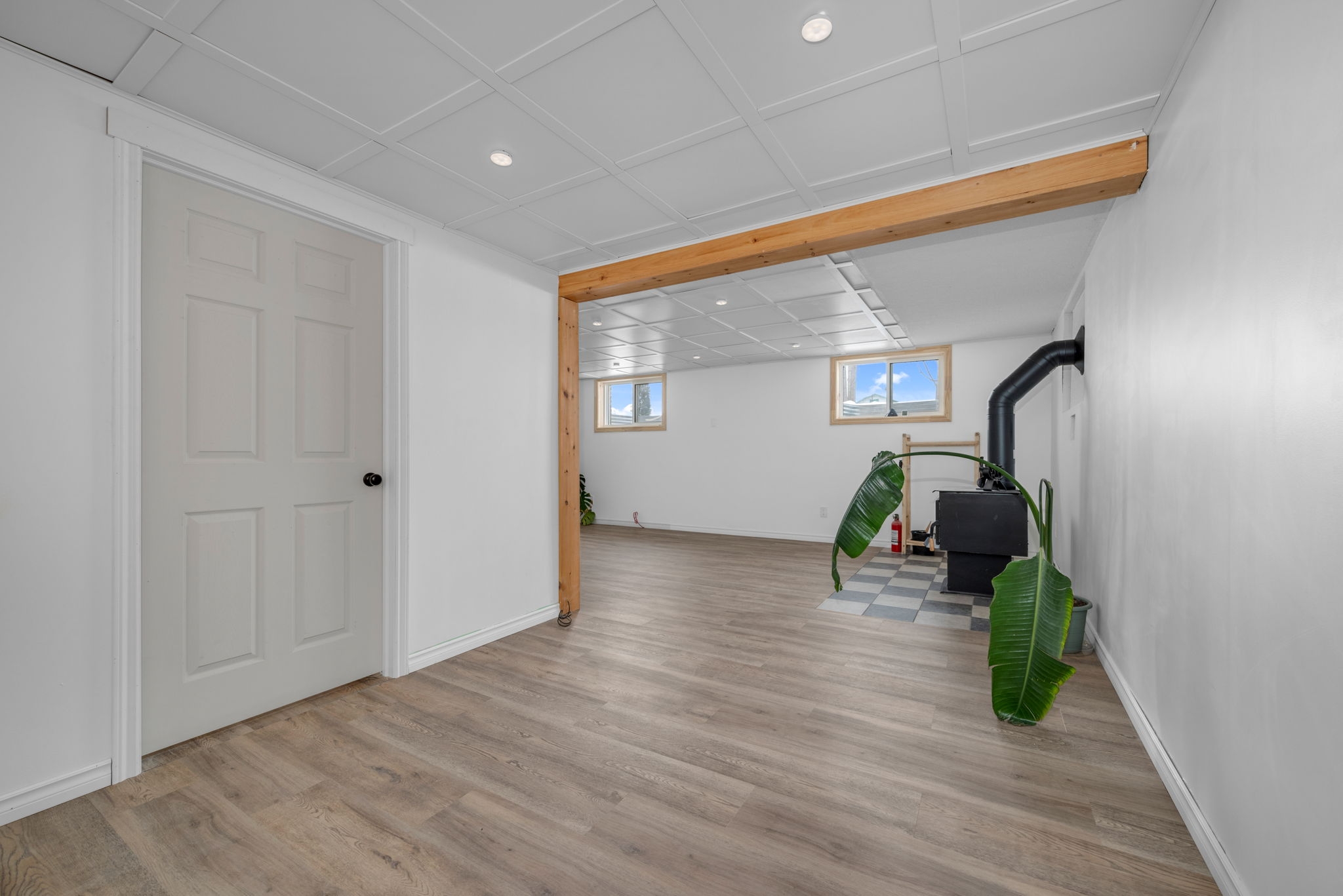 Discover exceptional value in this beautifully appointed 3-bedroom bungalow, perfect for first-time buyers, downsizers, or investors. Nestled in a quiet location, this bright and sun-filled home boasts a thoughtfully designed floor plan, ideal for a growing family. The open-concept layout offers great sight lines, seamlessly connecting the inviting living and dining areas to a stylish and functional kitchen, perfect for everyday living and entertaining. Three generously sized bedrooms and a fully renovated bathroom complete the main level.The lower level expands the living space with a cozy wood stove, a versatile nook/den, and a generous combined laundry and storage area. Step outside to the wonderful rear yard, where a spacious deck provides the perfect setting for outdoor living. With plenty of room for kids to play or for the avid gardener to create their dream space, this home offers endless possibilities.