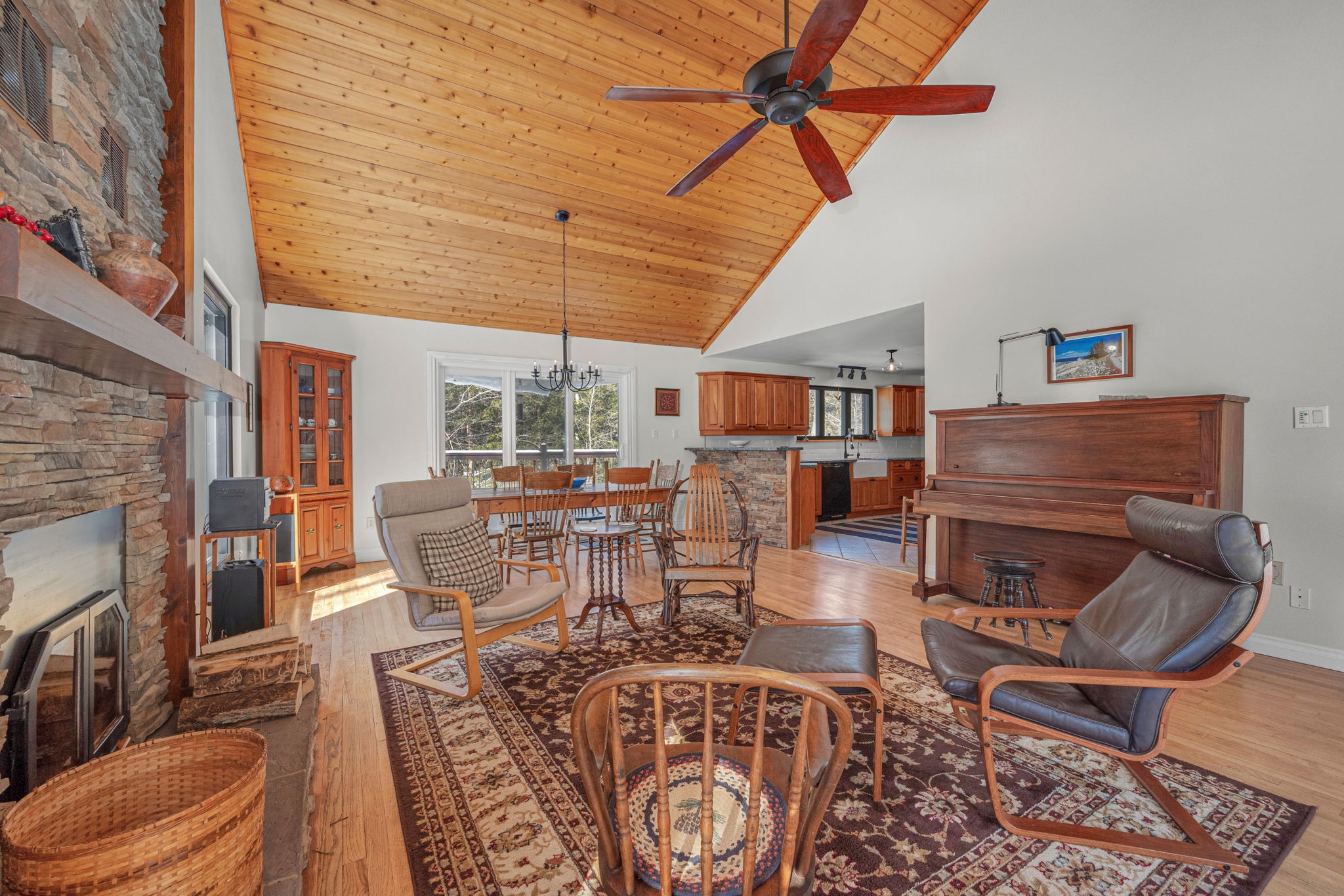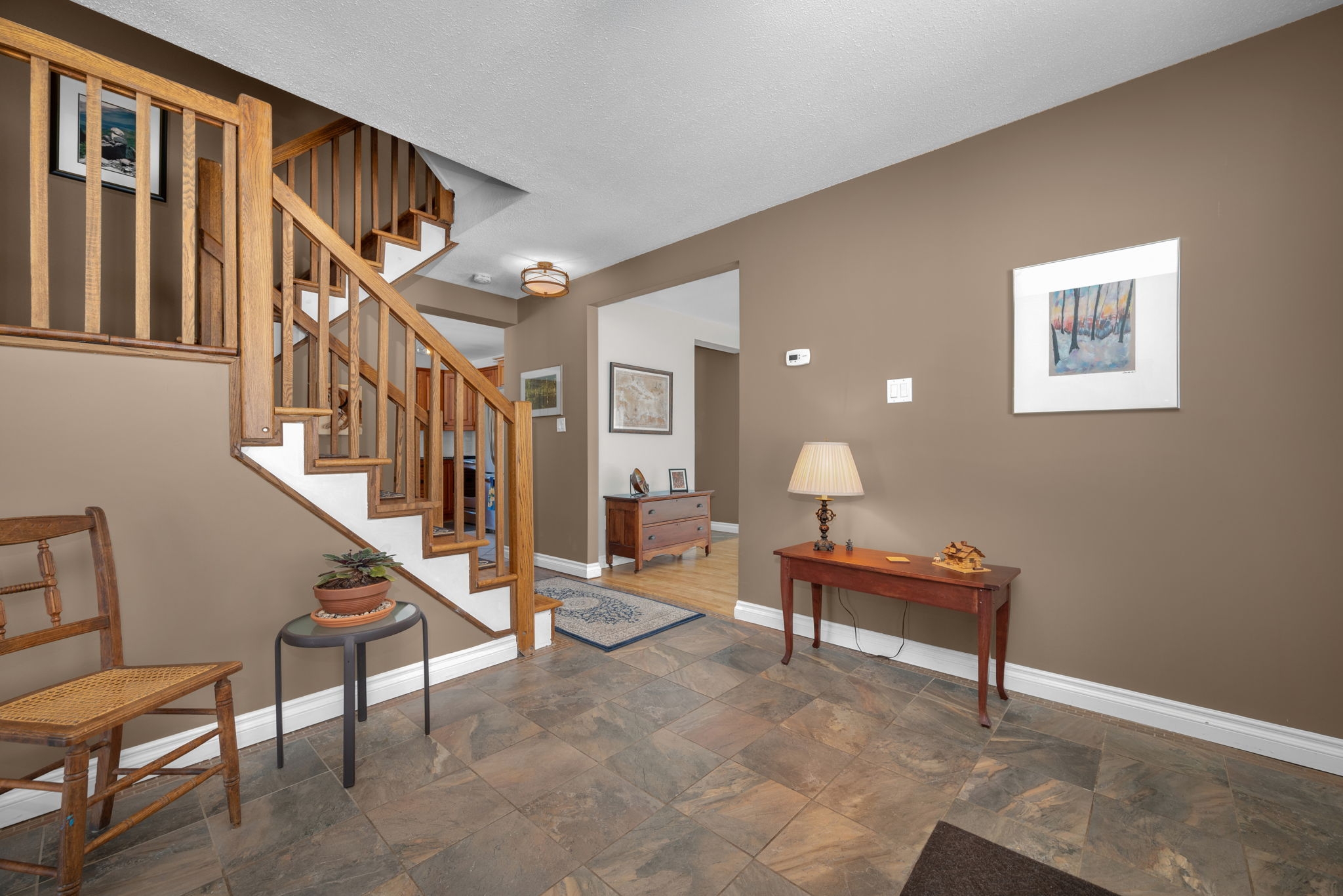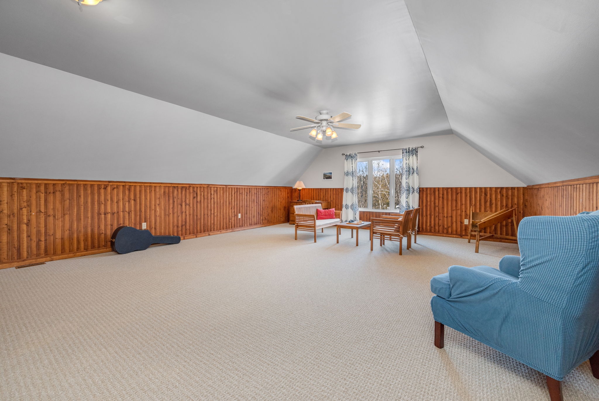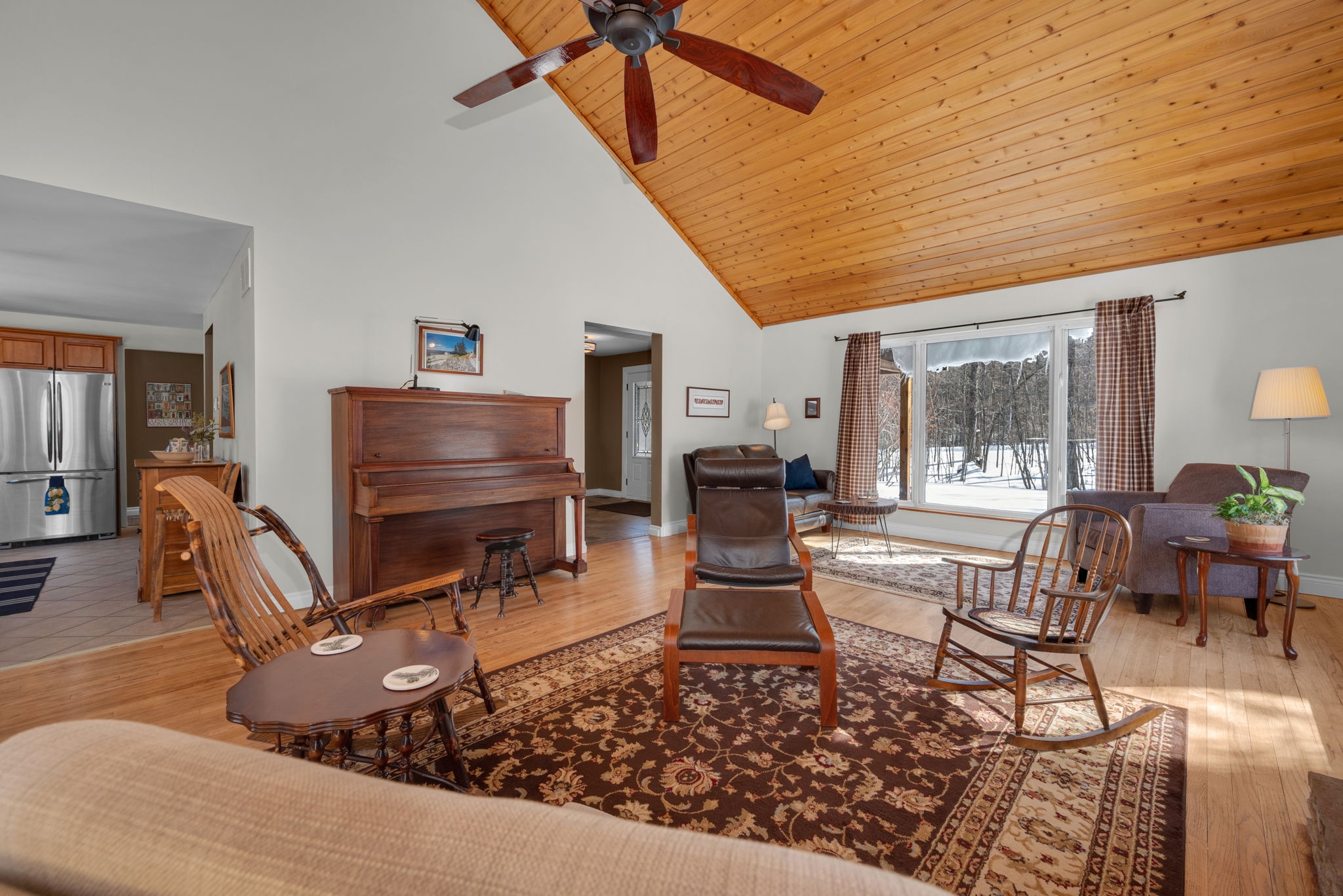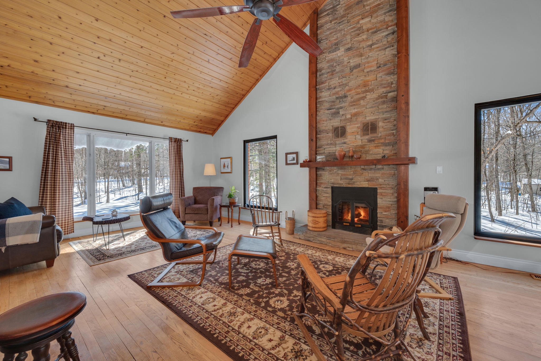 Welcome to this stunning 3400 sq ft family home, perfectly situated on a beautifully treed and private 2.75-acre lot. Designed for both comfort and functionality, this home offers an abundance of space inside and out. Featuring three generous bedrooms, a large loft and three full bathrooms, this home is ideal for growing families or those who love to entertain. The great room is a true showstopper, boasting soaring cathedral ceilings and a stunning stone wood-burning fireplace, creating a warm and inviting space for cozy evenings. The open-concept design seamlessly connects the great room, dining room, and kitchen, making it the perfect gathering spot for family and friends. When the weather warms up, step outside to the expansive cedar deck, where you can take in the breathtaking views of your private, tree-lined property. The walk-out fully finished basement adds even more living space, complete with a wood pellet stove in the family room, a dedicated area for hobbies, and endless possibilities to make it your own. Additional highlights include a large double-car garage with inside entry, an indoor sauna for ultimate relaxation, and plenty of space to enjoy both indoor and outdoor living. With its blend of privacy, luxury, and charm, this home is a rare find - don't miss your chance to make it yours!