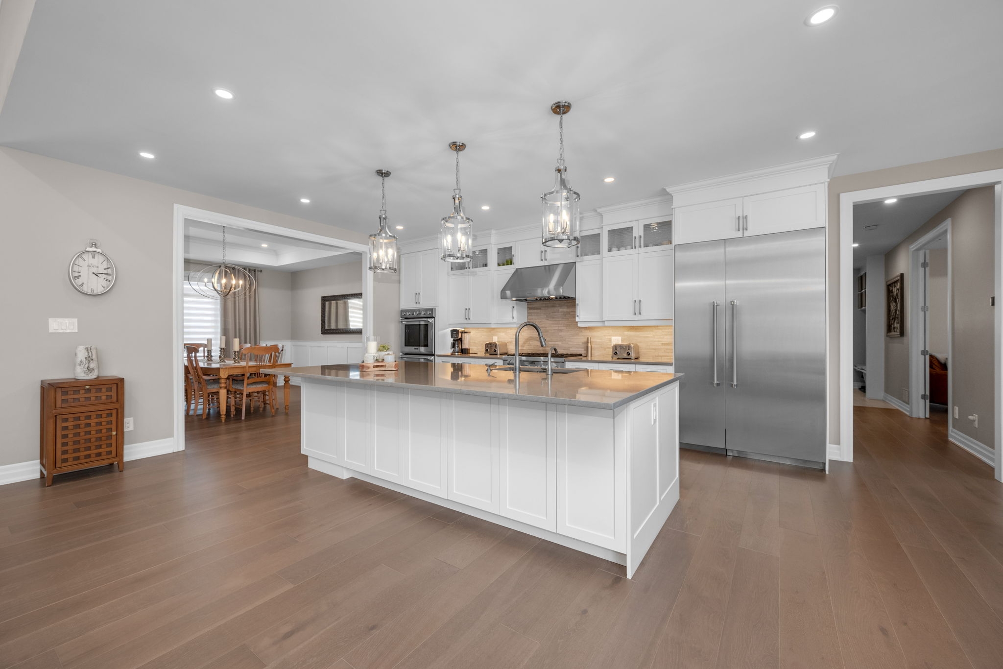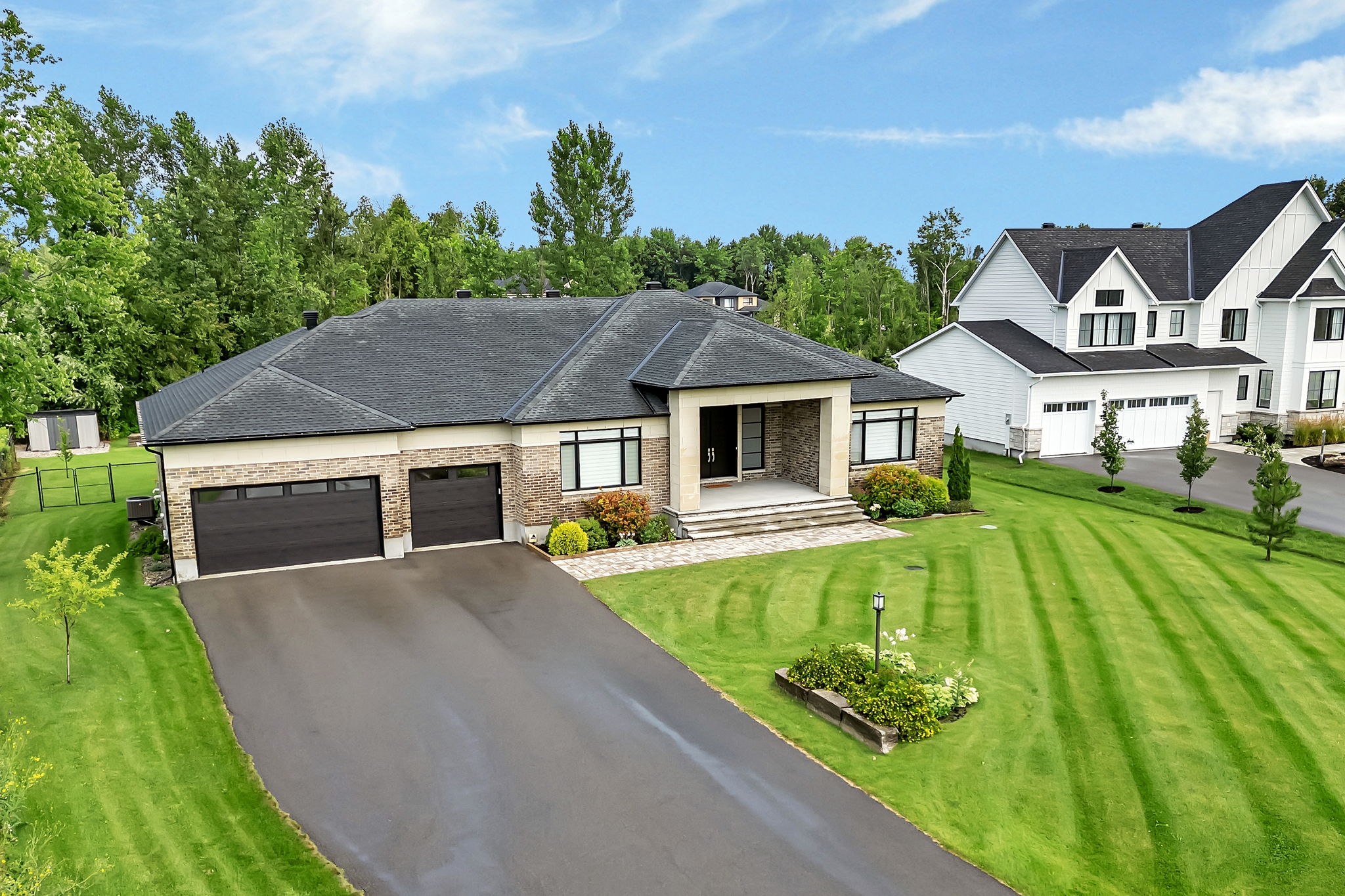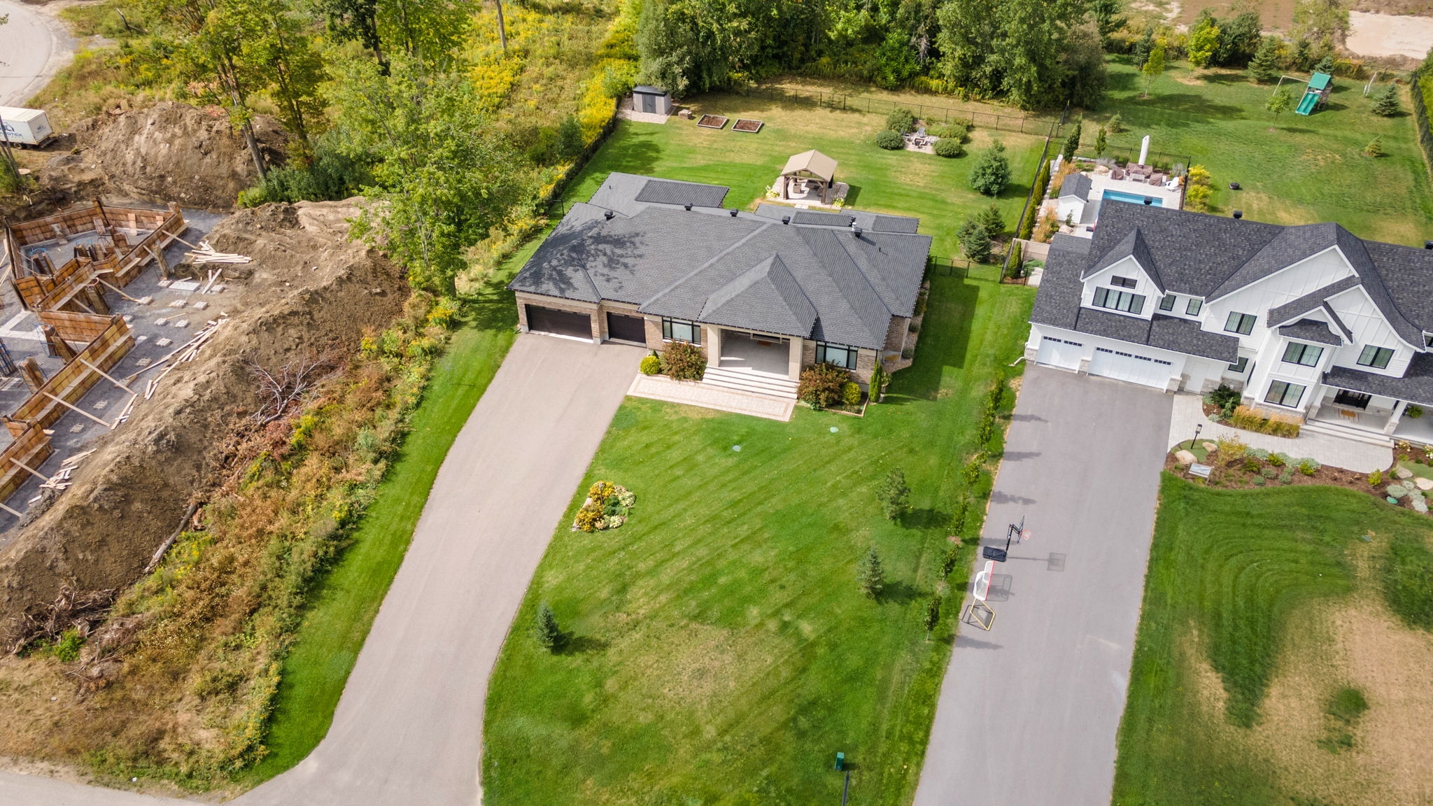 Step into this stunning custom John Gerard bungalow, featuring an expansive 3400 sqft of main-floor living space, enhanced by over 2000 sqft of beautifully finished basement. Exuding luxury and sophistication, this full brick residence is adorned with high-end finishes throughout. The main floor showcases, timeless trim work, elegant hardwood floors, tile, and soaring ceilings ranging from 9 to 12 feet, contributing to the home's grand ambiance. A fully functional main floor laundry room and pantry room offer convenience, while four spacious bedrooms (one currently used as an office) on the main level, along with a fifth bedroom and full washroom in the basement, accommodate families of all sizes.The gourmet kitchen is a culinary delight, equipped with top-tier Thermador appliances, soft-close drawers, and cupboards, and adorned with sleek quartz countertops in the kitchen and all washrooms. The basement is an entertainer's paradise, boasting a large recreation room, wet bar, billiards area, full gym (easily convertible to a sixth bedroom), and ample storage space with direct access to the triple-car garage. The property is situated on an oversized 1.1 acre lot, larger than neighboring properties, and includes a wooded area that ensures privacy and seclusion. This exceptional property perfectly combines style, comfort, and functionality, making it an ideal place to call home.