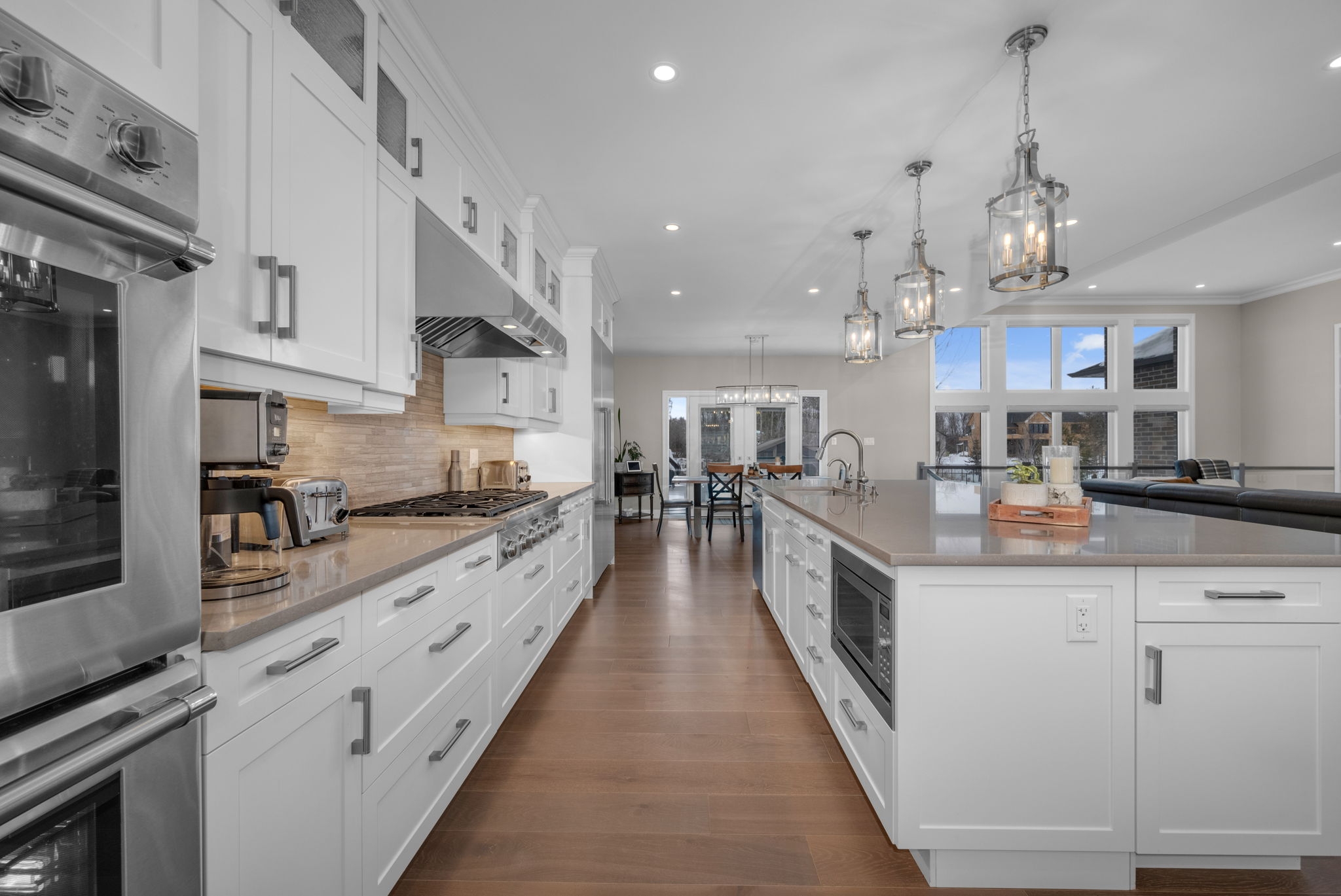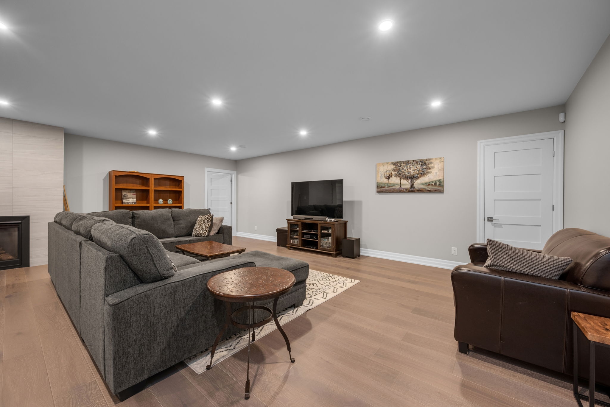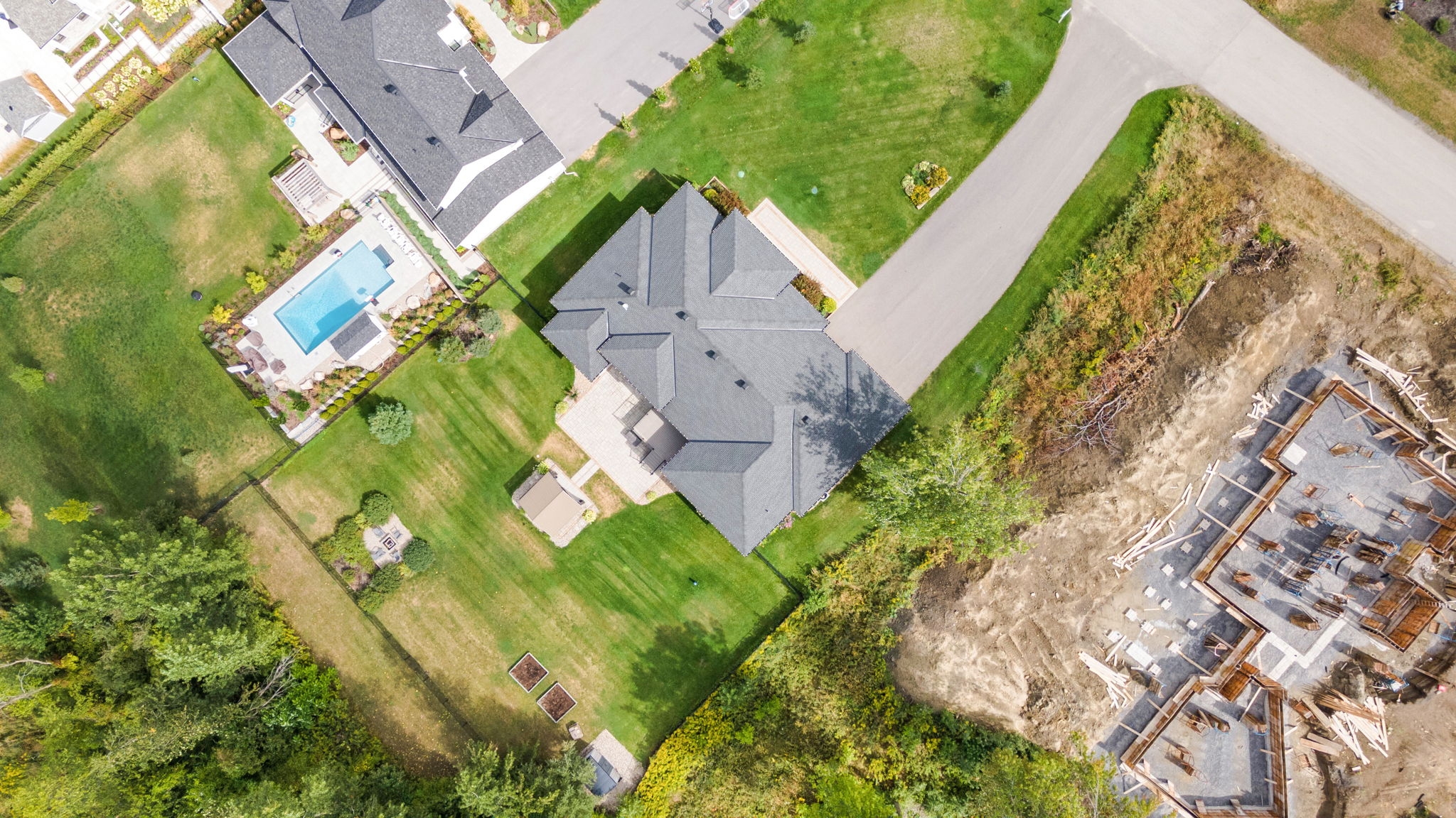 Step into this stunning custom John Gerard bungalow, featuring an expansive 3400 sqft of main-floor living space, enhanced by over 2000 sqft of beautifully finished basement. Exuding luxury and sophistication, this full brick residence is adorned with high-end finishes throughout. The main floor showcases, timeless trim work, elegant hardwood floors, tile, and soaring ceilings ranging from 9 to 12 feet, contributing to the home's grand ambiance. A fully functional main floor laundry room and pantry room offer convenience, while four spacious bedrooms (one currently used as an office) on the main level, along with a fifth bedroom and full washroom in the basement, accommodate families of all sizes.The gourmet kitchen is a culinary delight, equipped with top-tier Thermador appliances, soft-close drawers, and cupboards, and adorned with sleek quartz countertops in the kitchen and all washrooms. The basement is an entertainer's paradise, boasting a large recreation room, wet bar, billiards area, full gym (easily convertible to a sixth bedroom), and ample storage space with direct access to the triple-car garage. The property is situated on an oversized 1.1 acre lot, larger than neighboring properties, and includes a wooded area that ensures privacy and seclusion. This exceptional property perfectly combines style, comfort, and functionality, making it an ideal place to call home.