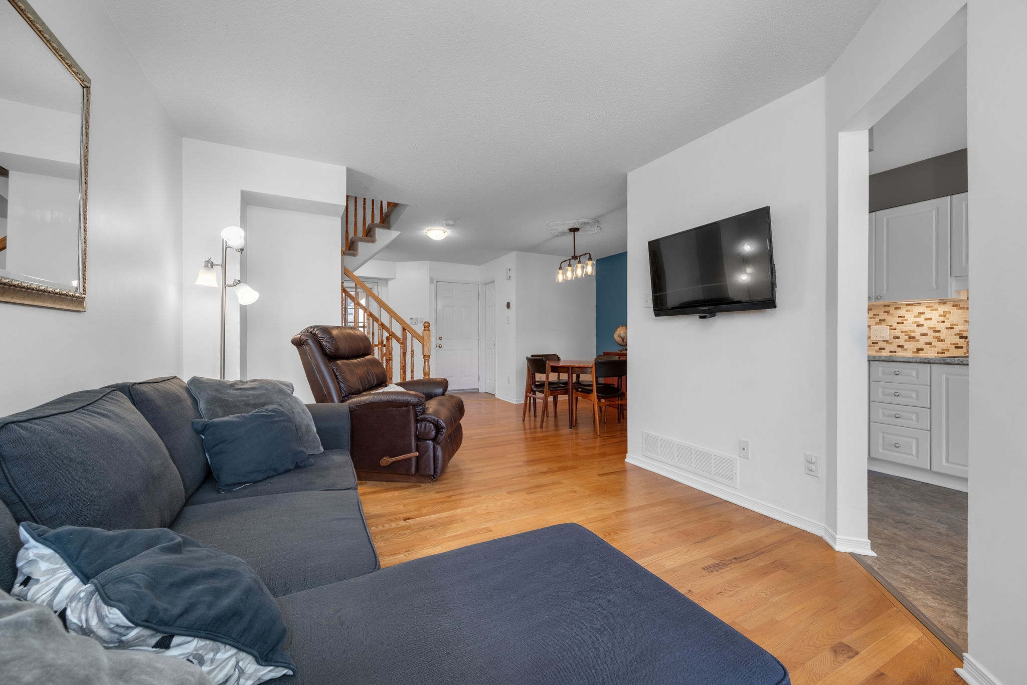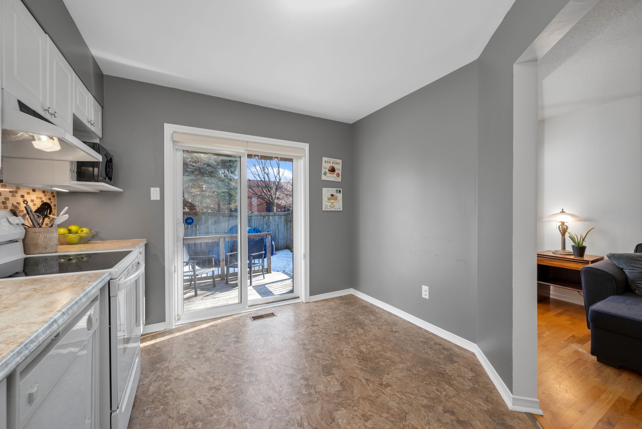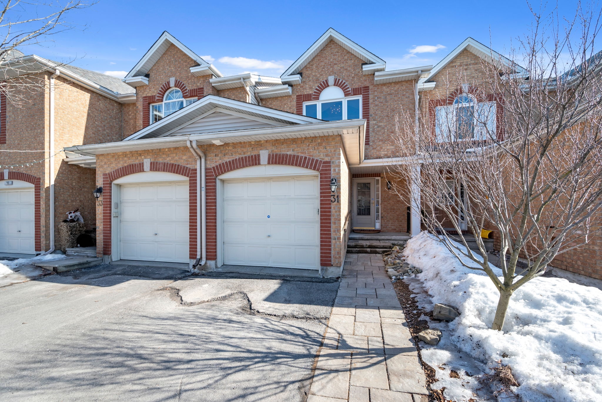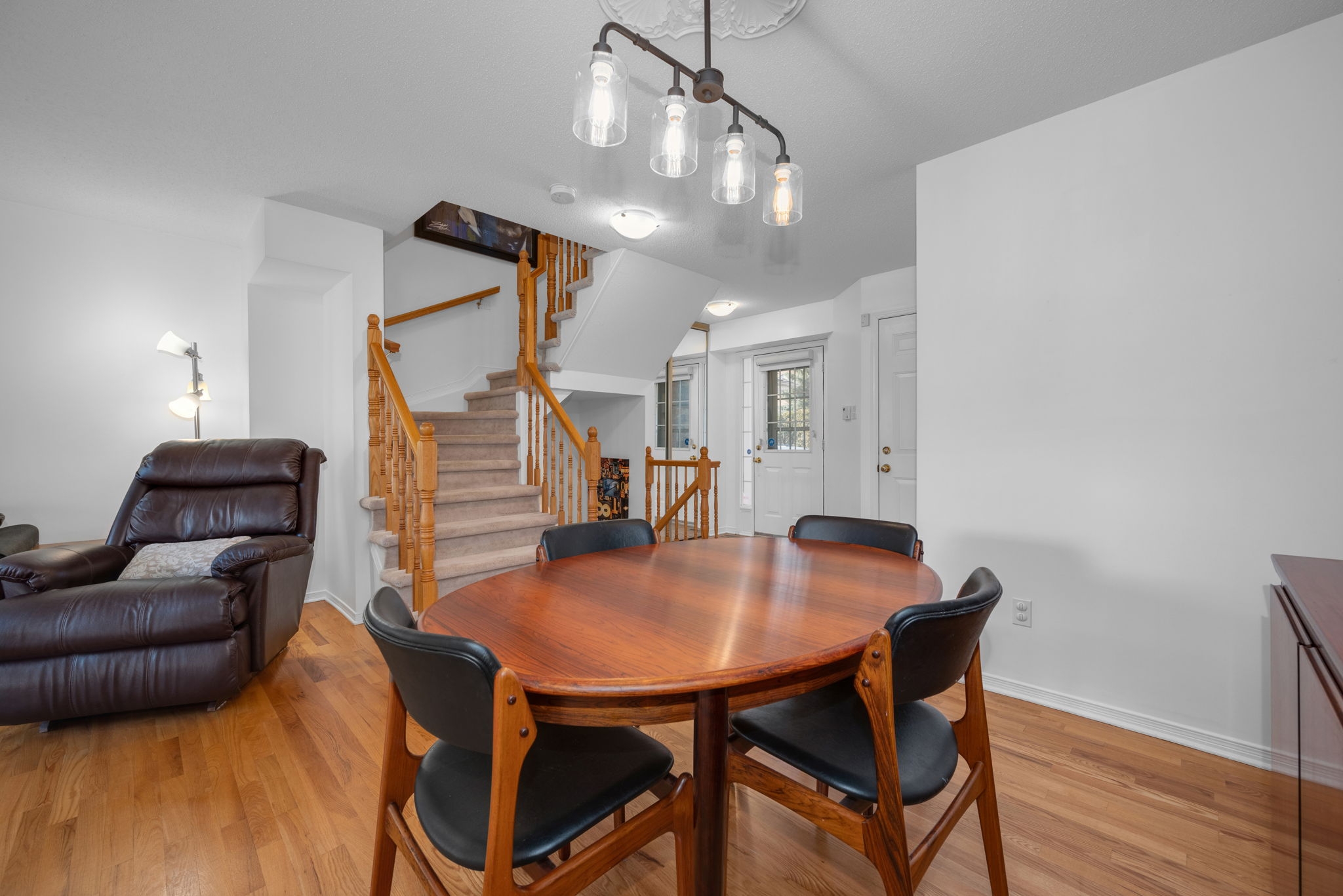 Nestled in the family-friendly Greenboro community, this lovely 3 bedroom freehold townhome offers comfort and convenience. Ideally located near parks, schools, transit, and shopping, this home is designed for effortless living. Step inside to a bright and welcoming foyer, leading to a sun-drenched main level where gleaming hardwood floors extend through the dining room and great room. Beautifully updated, the eat-in kitchen is both tasteful and functional, seamlessly connecting to a spacious outdoor deck with retractable awning and natural gas line for BBQ creating the ideal setting for indoor-outdoor living. Upstairs, the primary bedroom is accented with a soaring cathedral ceiling, while all three bedrooms feature expansive windows and plush carpeting, creating a warm and inviting atmosphere. A full bathroom on this level adds everyday convenience. A finished basement provides additional living space, with the potential to add a third bathroom, making it a versatile extension of the home. With snow removal included in the common maintenance fee, enjoy a low-maintenance lifestyle in a welcoming neighbourhood.