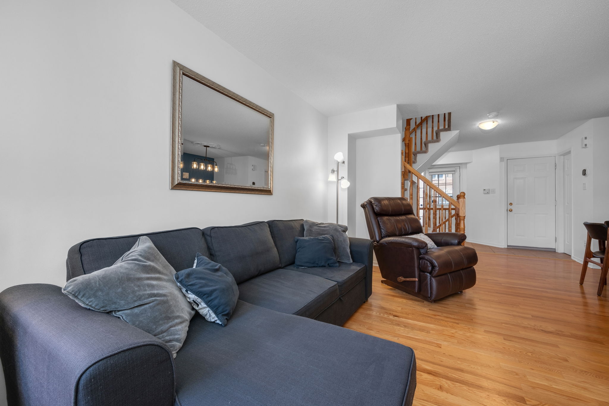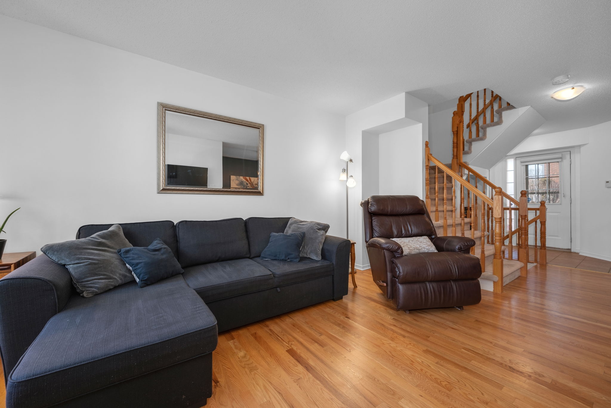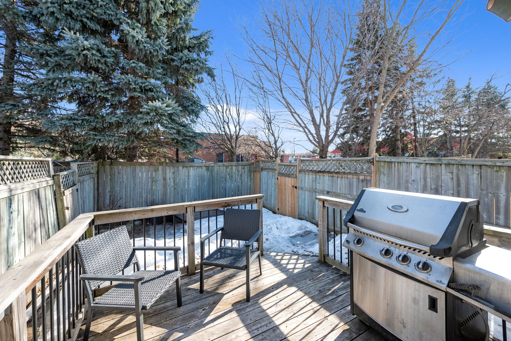 Nestled in the family-friendly Greenboro community, this lovely 3 bedroom freehold townhome offers comfort and convenience. Ideally located near parks, schools, transit, and shopping, this home is designed for effortless living. Step inside to a bright and welcoming foyer, leading to a sun-drenched main level where gleaming hardwood floors extend through the dining room and great room. Beautifully updated, the eat-in kitchen is both tasteful and functional, seamlessly connecting to a spacious outdoor deck with retractable awning and natural gas line for BBQ creating the ideal setting for indoor-outdoor living. Upstairs, the primary bedroom is accented with a soaring cathedral ceiling, while all three bedrooms feature expansive windows and plush carpeting, creating a warm and inviting atmosphere. A full bathroom on this level adds everyday convenience. A finished basement provides additional living space, with the potential to add a third bathroom, making it a versatile extension of the home. With snow removal included in the common maintenance fee, enjoy a low-maintenance lifestyle in a welcoming neighbourhood.