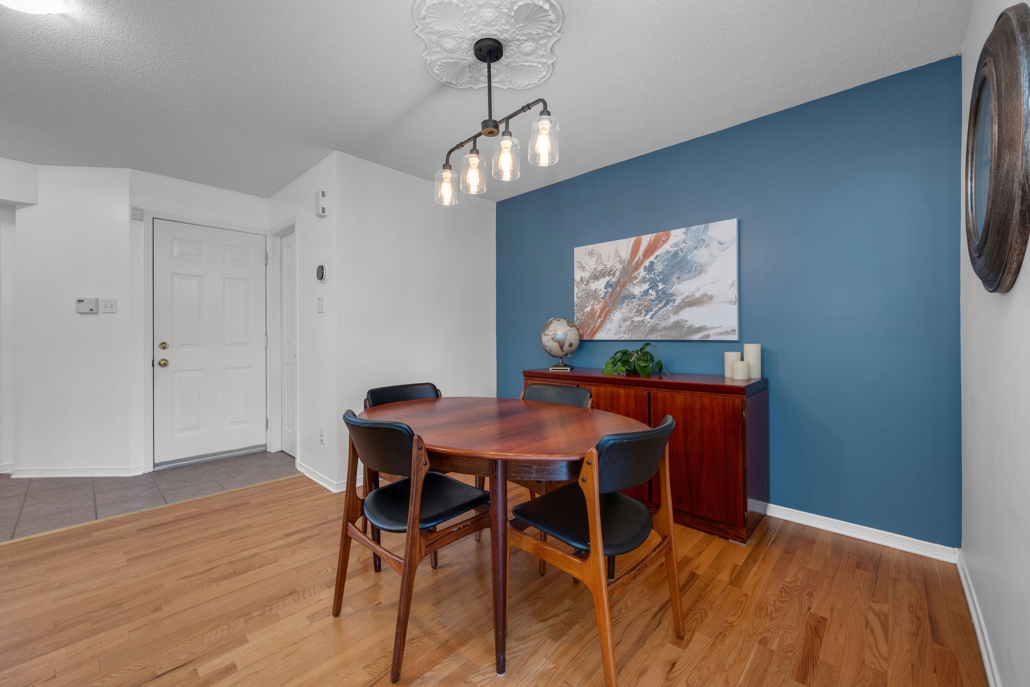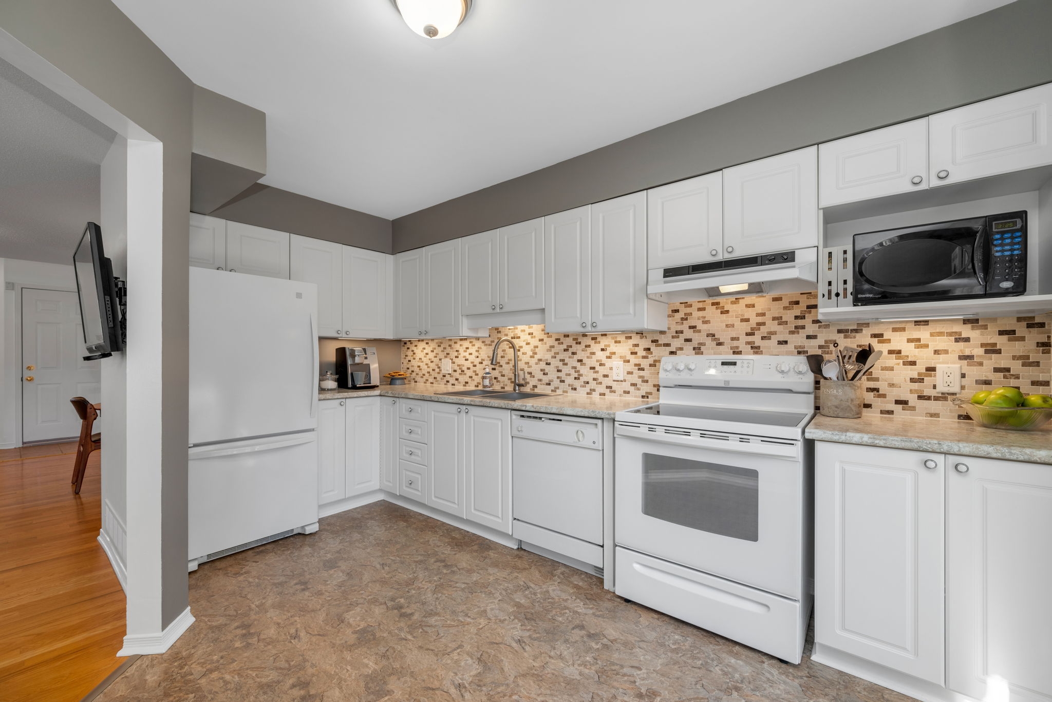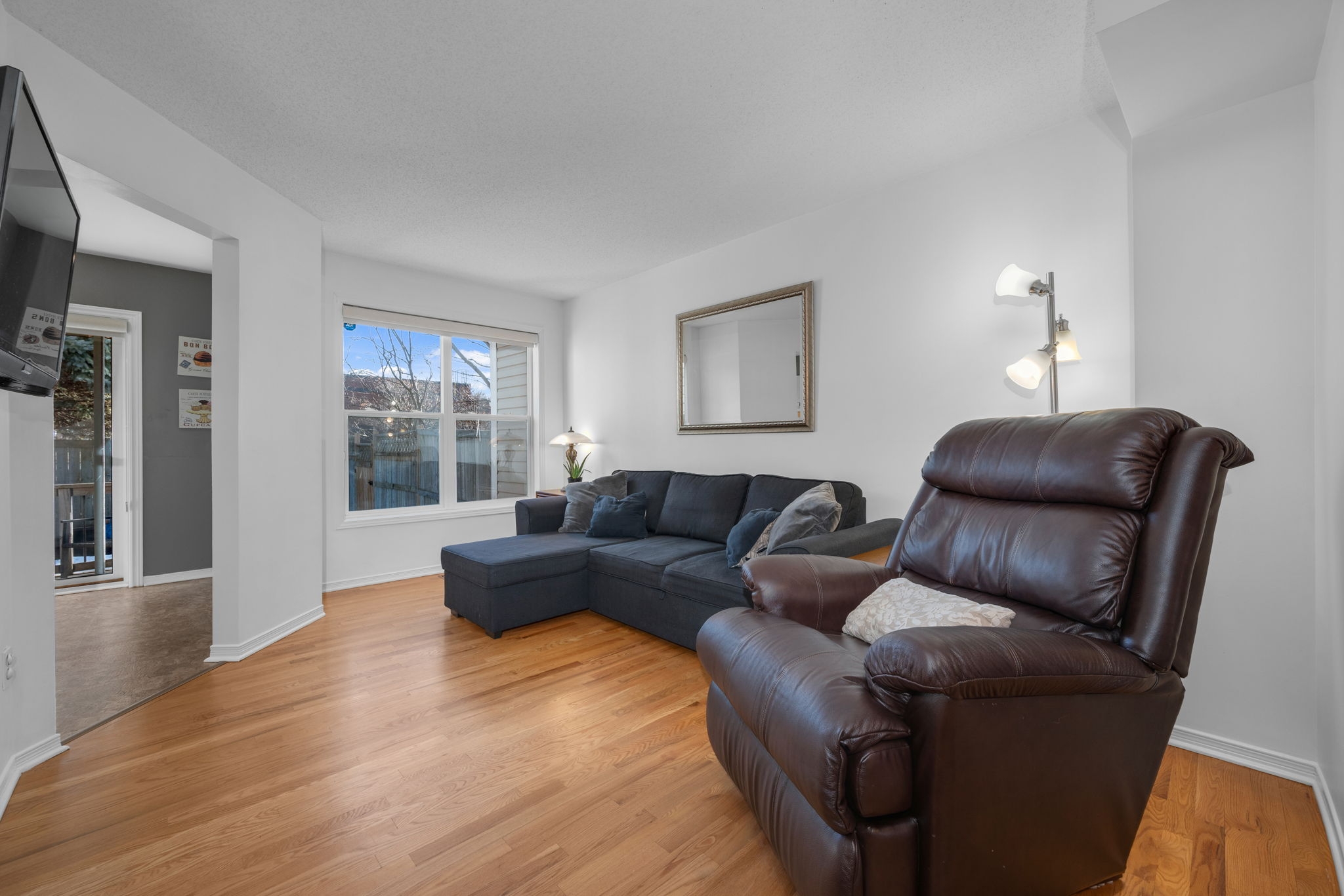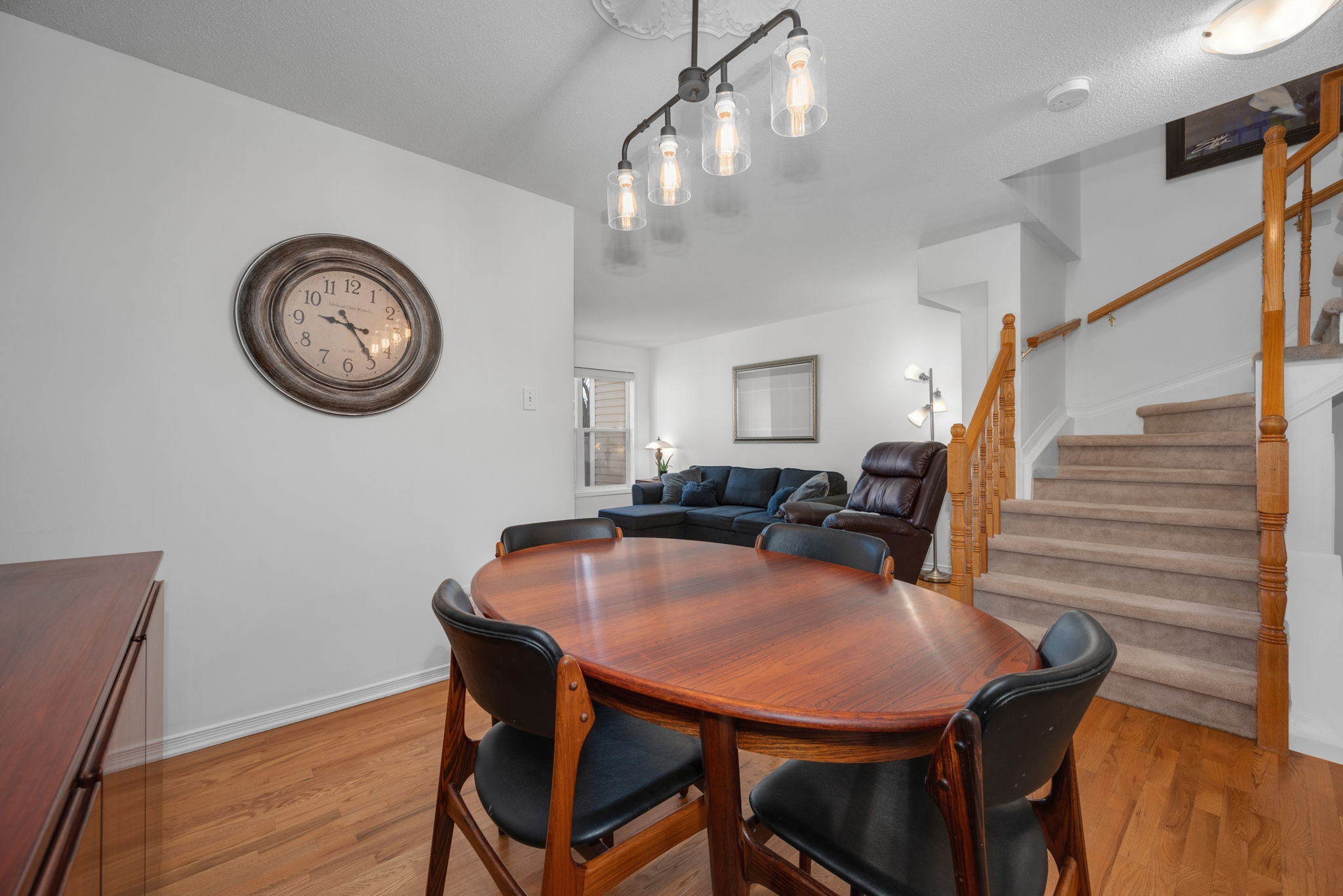Nestled in the family-friendly Greenboro community, this lovely 3 bedroom freehold townhome offers comfort and convenience. Ideally located near parks, schools, transit, and shopping, this home is designed for effortless living. Step inside to a bright and welcoming foyer, leading to a sun-drenched main level where gleaming hardwood floors extend through the dining room and great room. Beautifully updated, the eat-in kitchen is both tasteful and functional, seamlessly connecting to a spacious outdoor deck with retractable awning and natural gas line for BBQ creating the ideal setting for indoor-outdoor living. Upstairs, the primary bedroom is accented with a soaring cathedral ceiling, while all three bedrooms feature expansive windows and plush carpeting, creating a warm and inviting atmosphere. A full bathroom on this level adds everyday convenience. A finished basement provides additional living space, with the potential to add a third bathroom, making it a versatile extension of the home. With snow removal included in the common maintenance fee, enjoy a low-maintenance lifestyle in a welcoming neighbourhood.