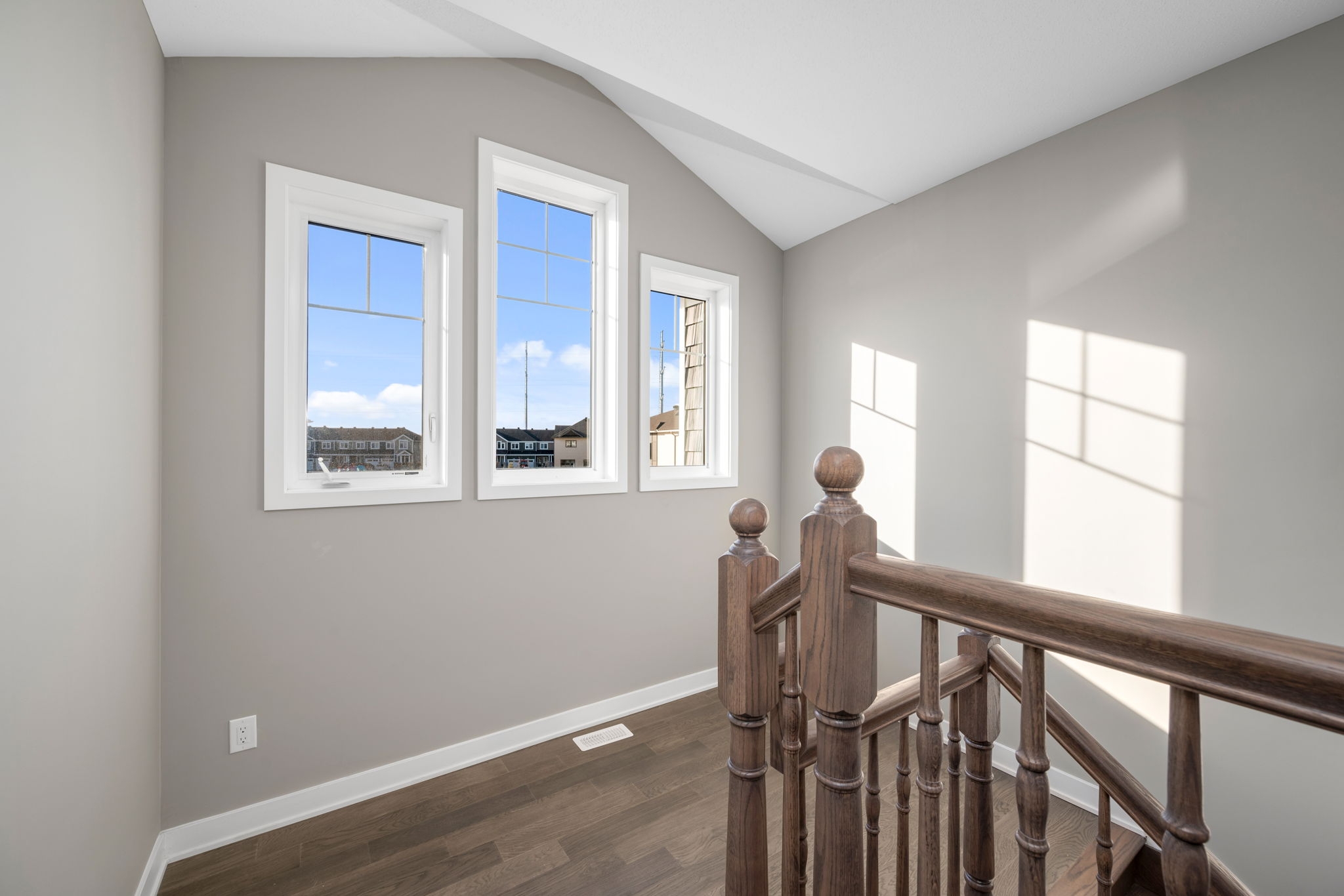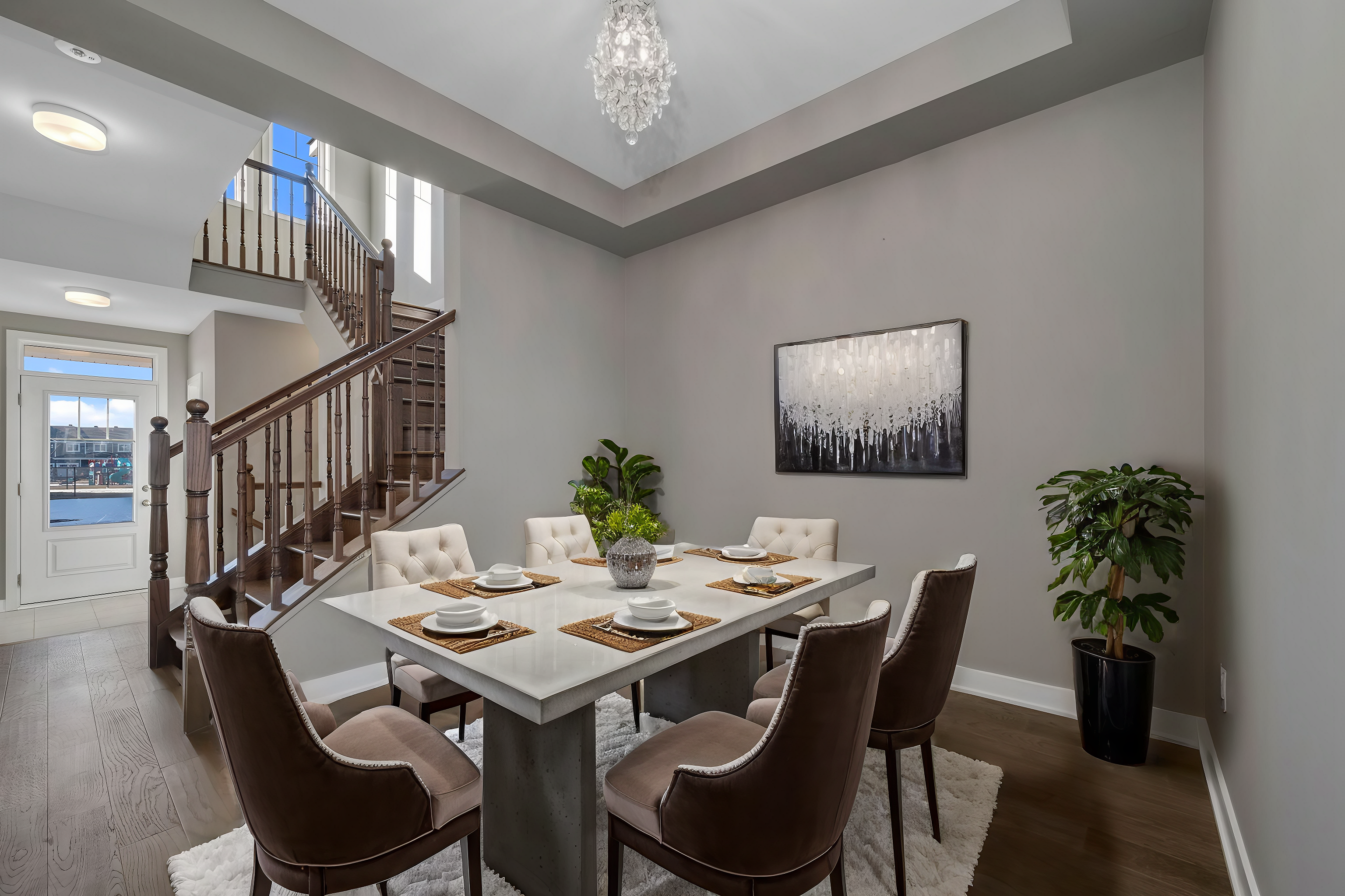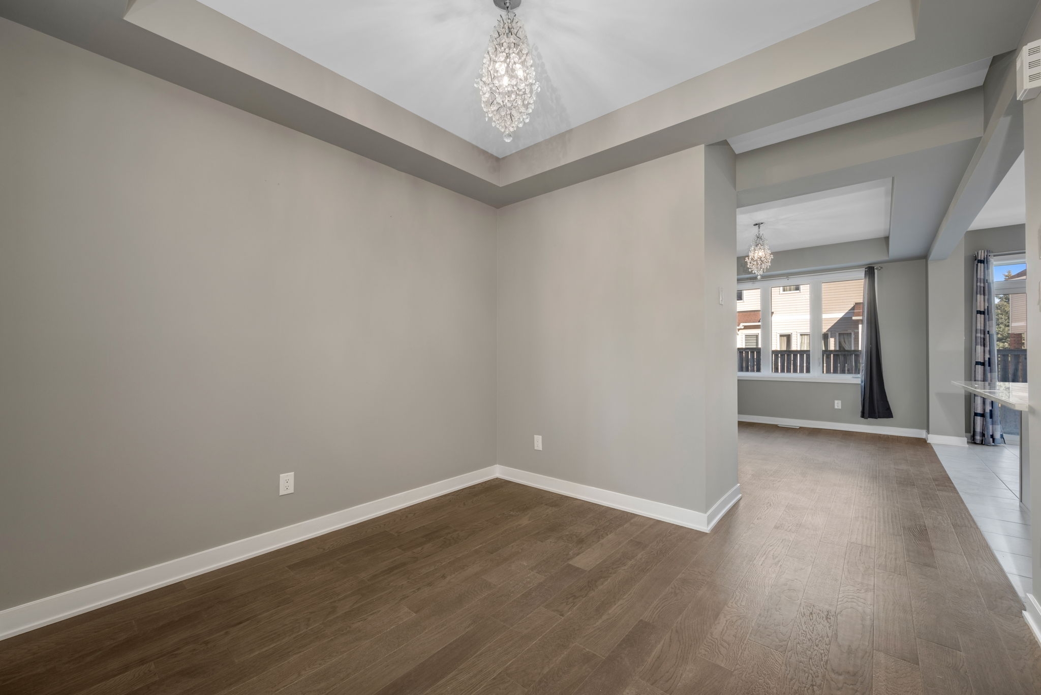 This thoughtfully designed 3 bedroom, 3 bathroom townhome offers modern style, comfort, and convenience. The bright open-concept main level is accented by elegant tray ceilings, creating a spacious and sophisticated atmosphere in the living and dining areas.The large eat-in kitchen is a haven for culinary enthusiasts, offering ample counter space and a bonus pantry. The thoughtfully designed layout overlooks the living room, seamlessly blending functionality with connection.A stunning hardwood staircase leads to the upper level, where the large primary bedroom boasts a walk-in closet and a private 3piece ensuite. Two spacious secondary bedrooms, each with mirrored closet doors, offers a comfortable retreat for family or guests. A full bathroom and a convenient laundry centre complete this level. The finished basement opens up endless possibilities! Whether you envision a lively recreation room, a productive home office, a well-equipped gym, or all three, this space is ready to bring your ideas to life. Plus, you'll love the generous storage space. Perfectly situated in a sought-after neighbourhood, this home puts the best of the community within walking distance - schools, shops, and all the essentials are just moments away. Some photos are virtually staged.