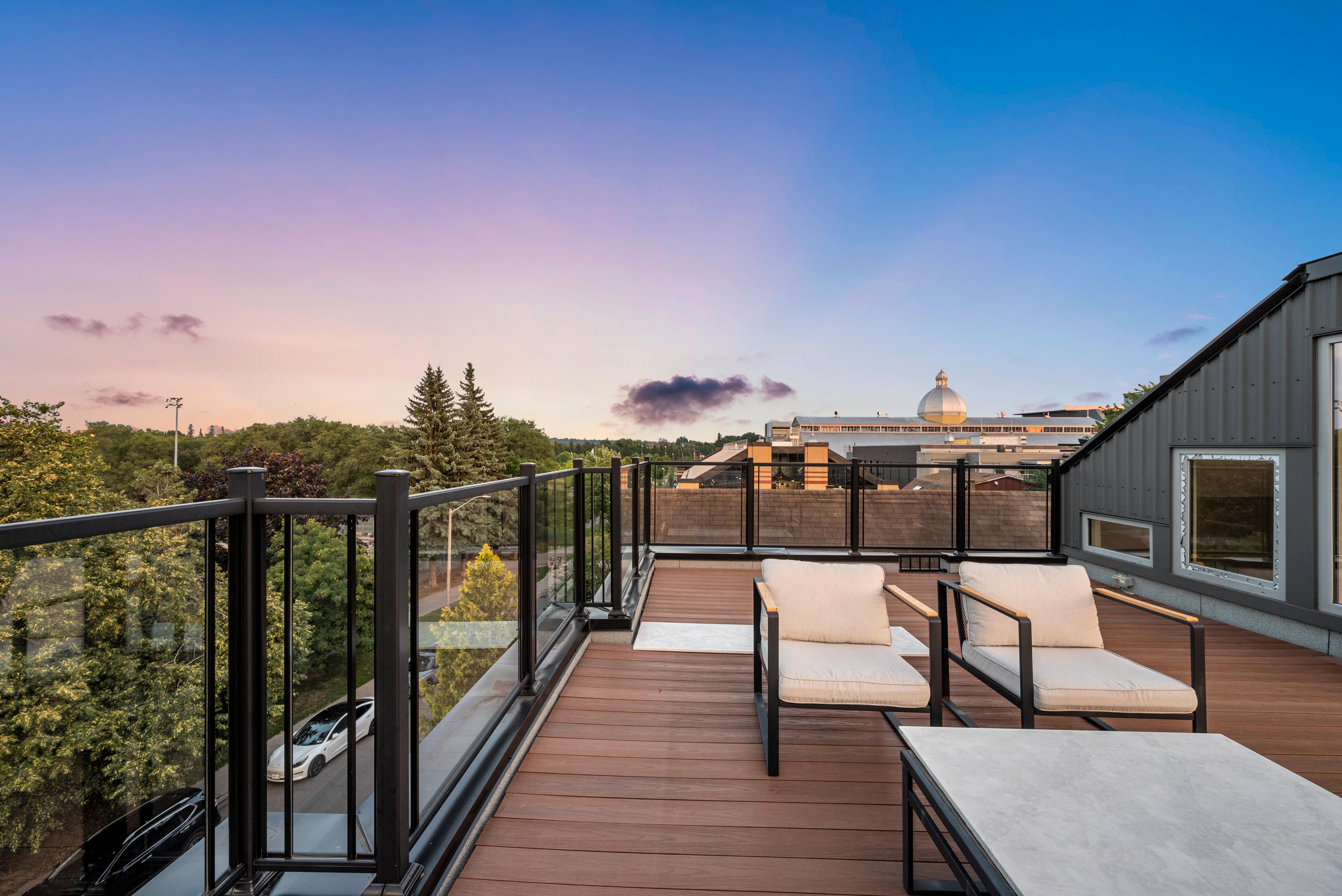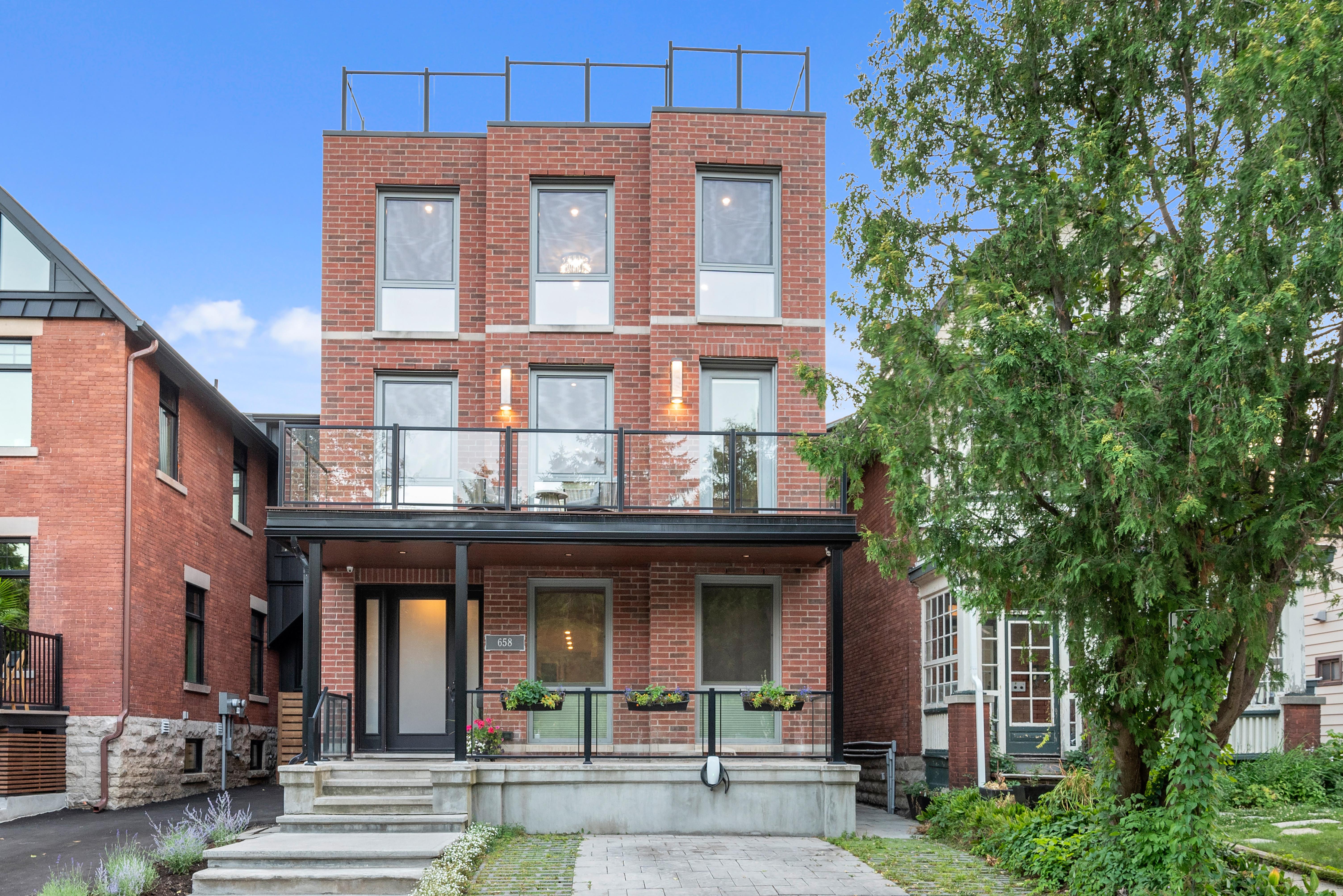 Situated in Ottawa's Glebe neighbourhood, 658 O'Connor Street offers unparalleled urban living. This exquisite home is steps from Sylvia Holden Park, providing serene natural views within the city. Proximity to Rideau Canal paths ensures year-round recreation, with picturesque walks to Dows Lake for sunsets. Beside Lansdowne Park, the vibrant neighbourhood offers restaurants, retail, community events, and top-tier schools. Architecturally stunning, this three-story home blends elegance with practicality. Featuring Canadian maple hardwood floors, high ceilings, and expansive European triple-pane windows, the interior finishings are beautifully curated right and sophisticated. The main floor showcases a striking custom glass staircase with a stunning three-story light fixture. A custom kitchen by Ellen Lee Design highlights walnut cabinetry, Cambria quartz countertops, and high-end appliances. The primary suite on the second floor boasts a sitting area, gas fireplace, walk-in closet, and spa-inspired en-suite with a steam shower and soaker tub. Three additional spacious bedrooms with en-suite baths, heated floors, and walk-in closets complete the second and third floors, enhanced by two convenient laundry facilities. What sets 658 O'Connor apart is its exceptional outdoor and bonus flex spaces. The 1000-square-foot rooftop patio, unique in the neighbourhood, offers a private retreat with a hot tub and incredible panoramic views of the Rideau Canal and Lansdowne Park. The landscaped backyard creates an entertainment oasis with a custom pool and lounge area for gatherings. A versatile secondary suite (legal duplex) provides space for multi-generational living, rental income, or additional recreational use. Experience the best of urban living in this beautiful Glebe property, making this home a truly refined and unique opportunity.