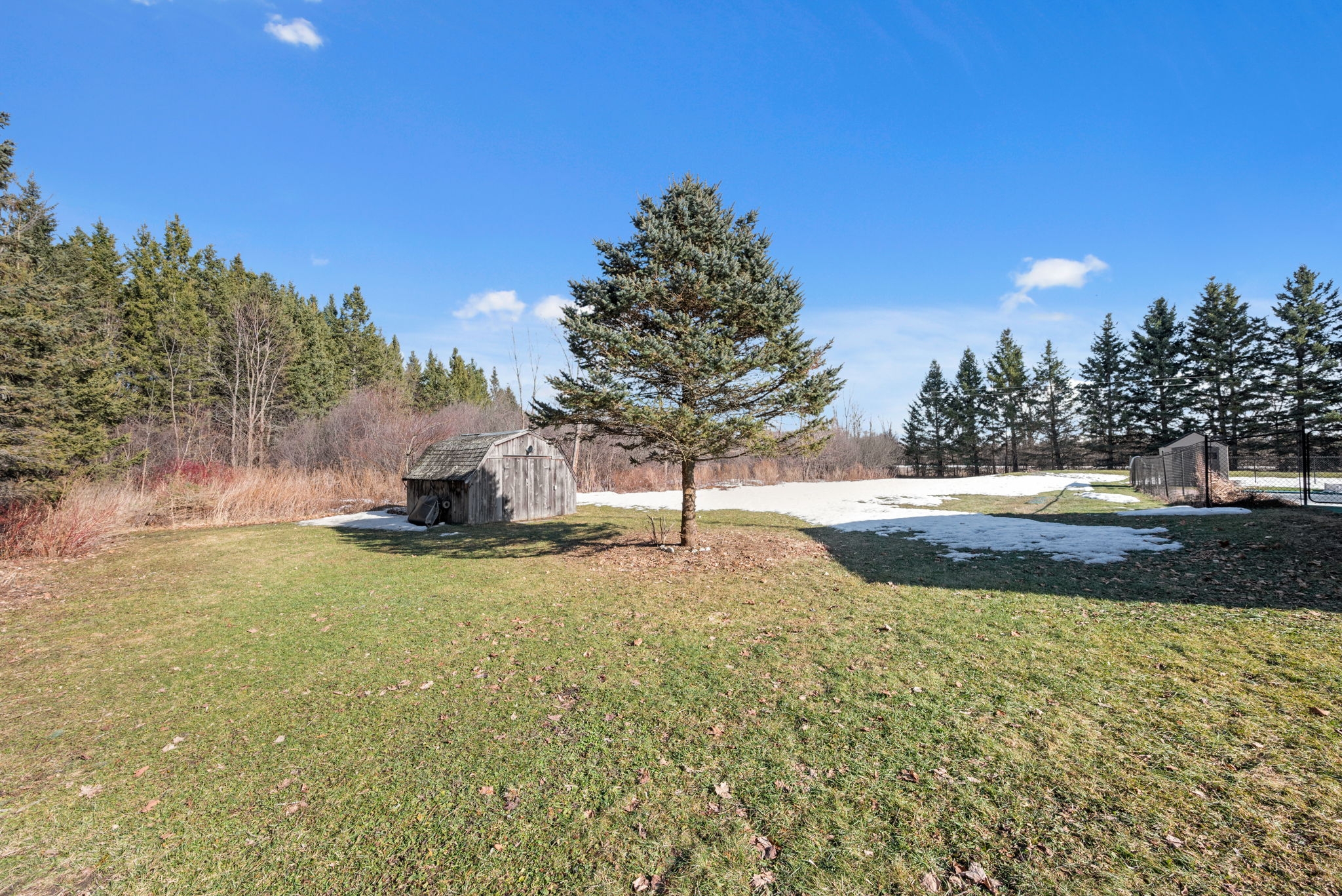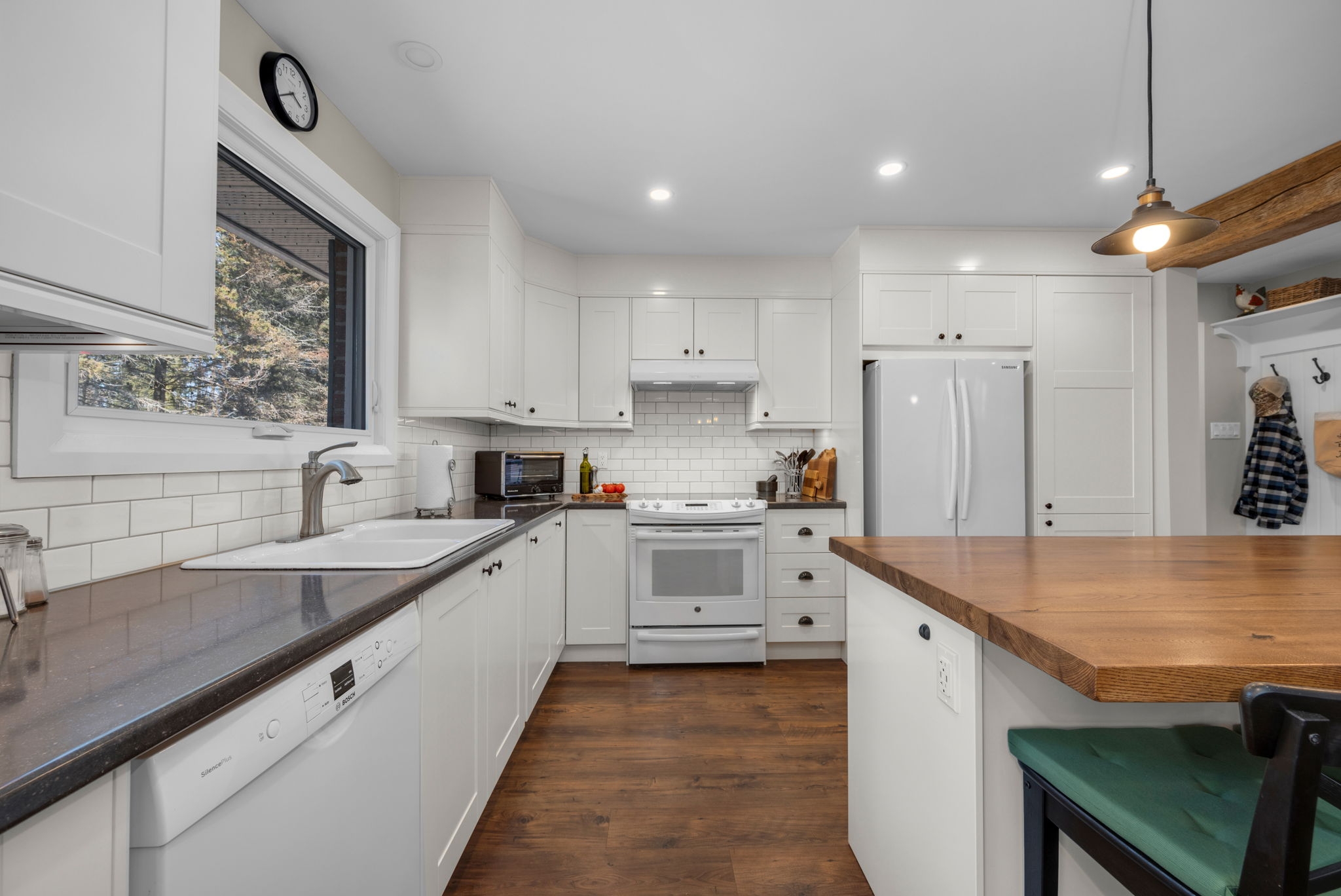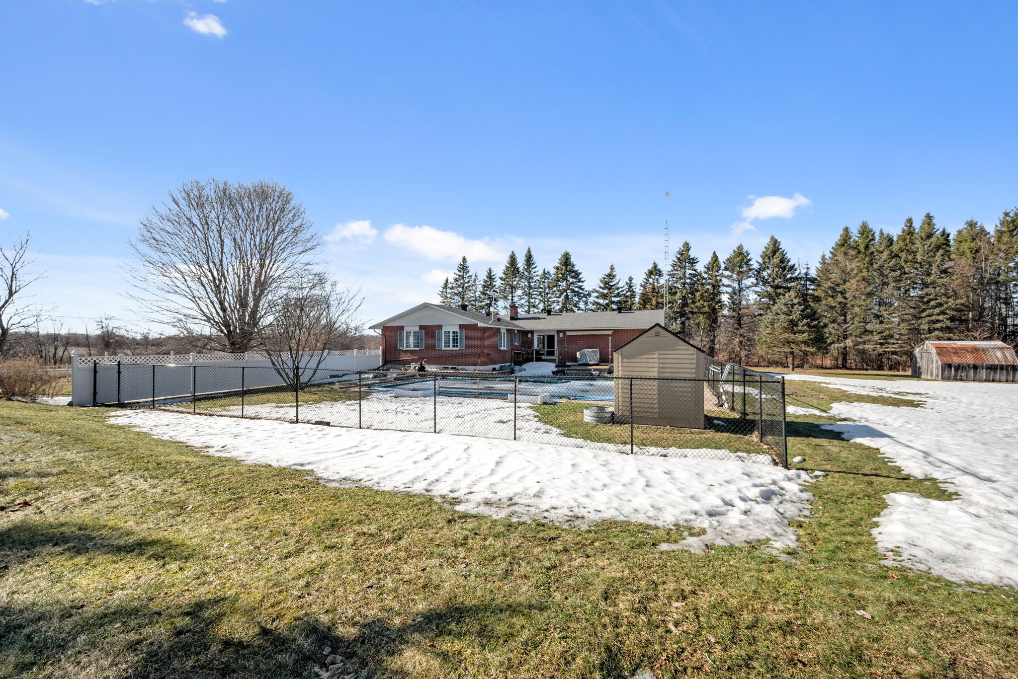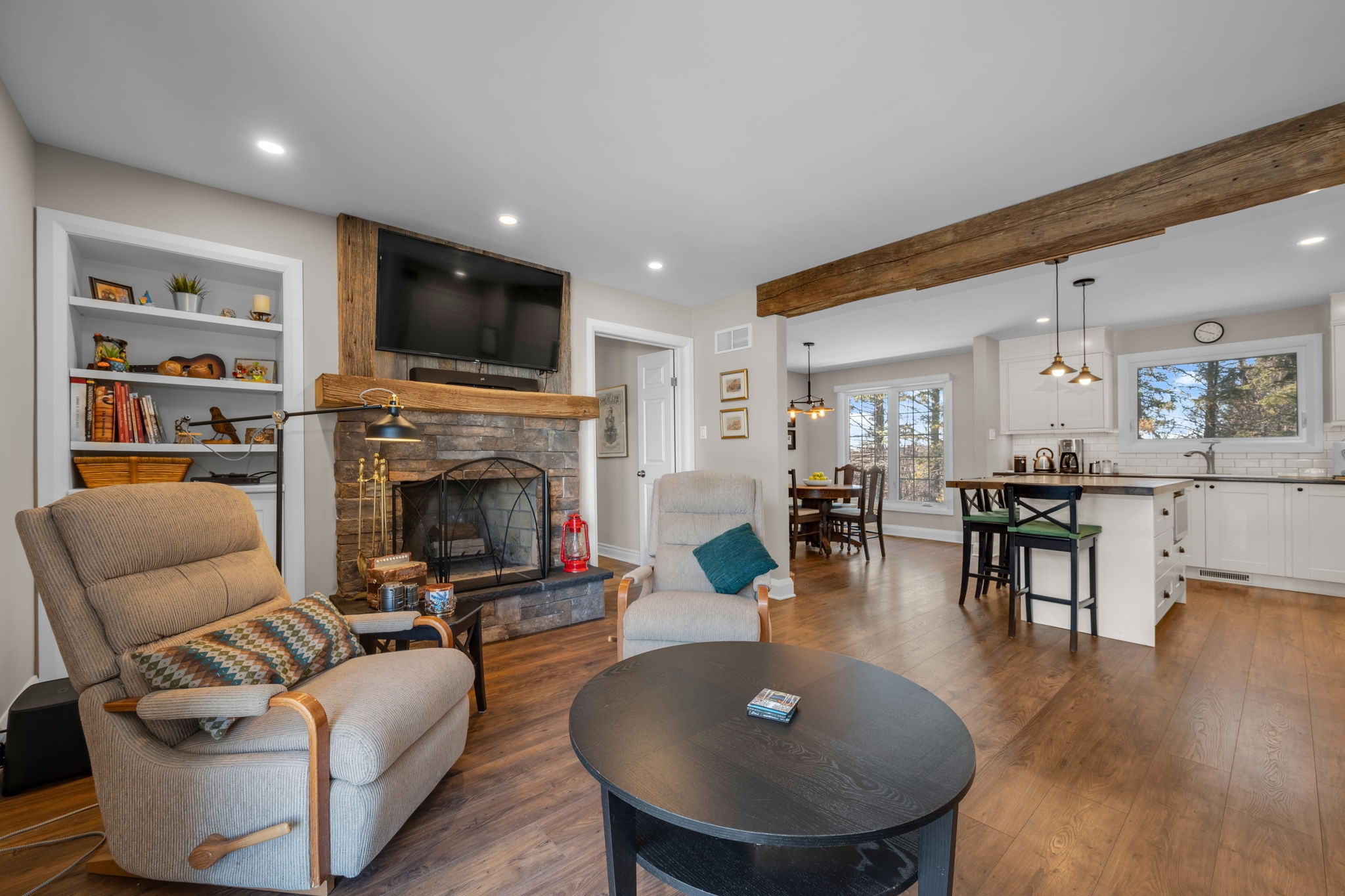 Nestled on a sprawling lot surrounded by mature trees, this beautifully designed 3-bedroom bungalow offers a perfect blend of comfort and functionality. With a thoughtful layout and inviting living spaces, this home is ideal for both relaxation and entertaining.Step into the spacious living room, where large windows flood the space with natural light, creating a warm and welcoming atmosphere. The chefs kitchen is a standout feature, complete with a generous island, breakfast bar seating, and seamless flow into the eating area and dining room perfect for gathering with family and friends.The cozy family room, highlighted by a wood-burning fireplace, provides direct access to the backyard deck, making indoor-outdoor living effortless. The primary bedroom boasts a private ensuite, while two additional well-sized bedrooms offer comfortable accommodations for family or guests.Downstairs, the finished basement provides bonus living space, ideal for a recreation room, home gym, or media lounge, along with a dedicated workshop for hobbyists and DIY enthusiasts.Outside, the expansive backyard is a true oasis, featuring an inground pool surrounded by lush greenery, offering a private retreat for summer enjoyment. Whether you're hosting barbecues, relaxing by the pool, or enjoying the natural surroundings, this home delivers the perfect balance of tranquility and convenience.