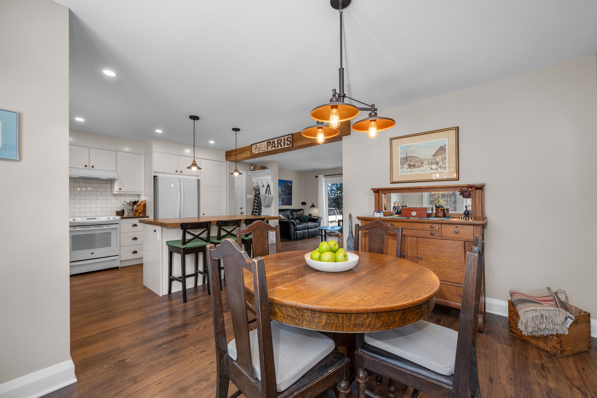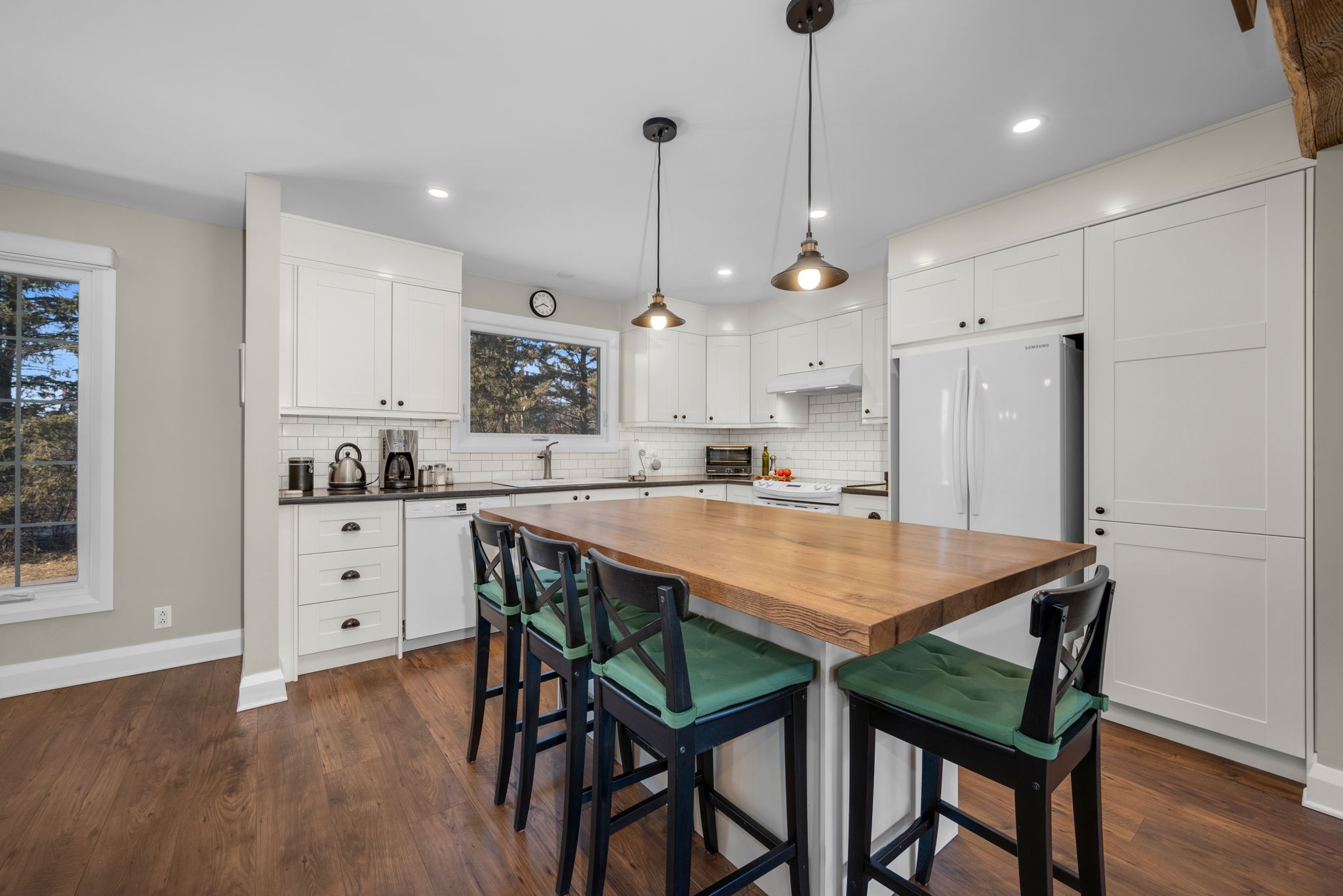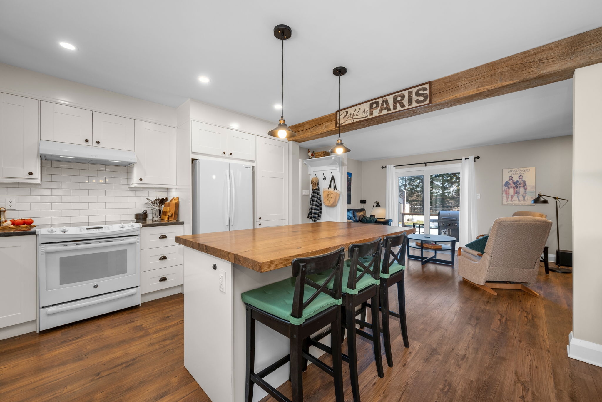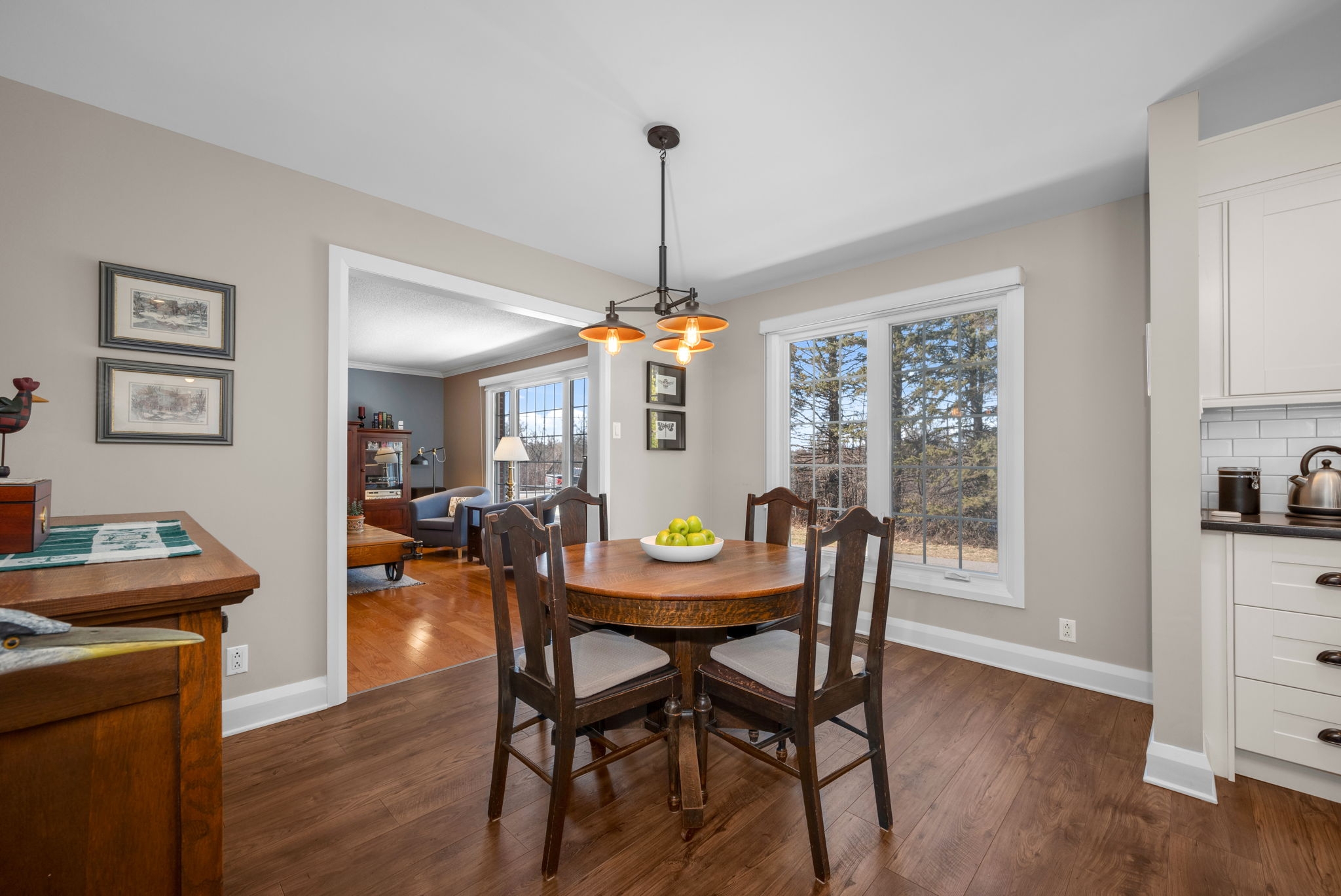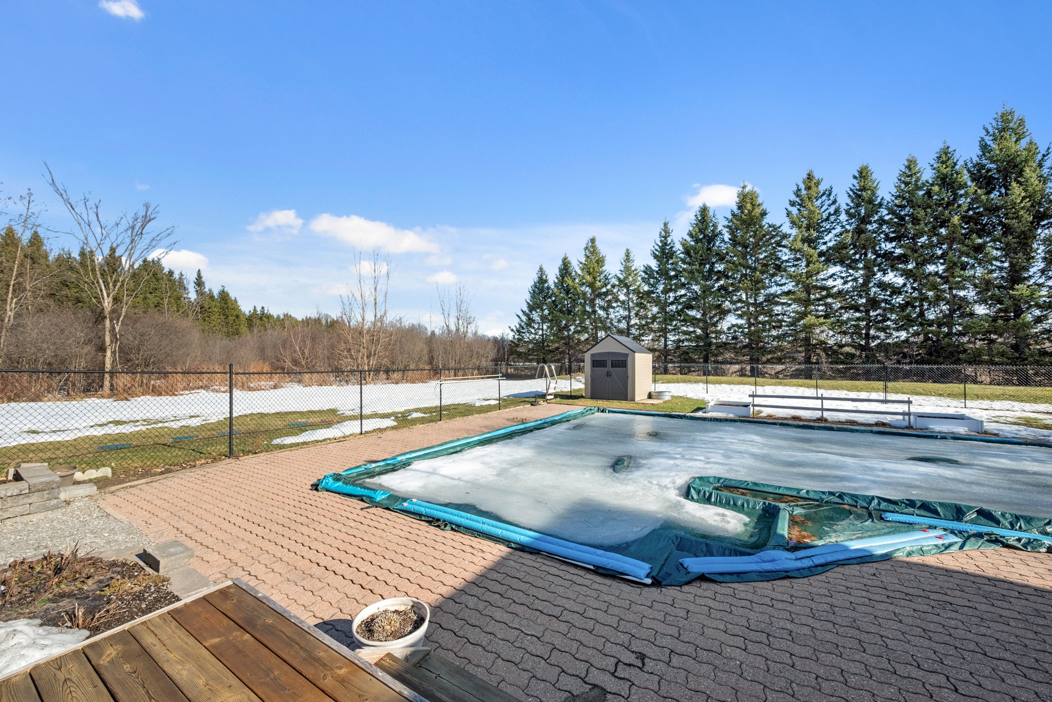 Nestled on a sprawling lot surrounded by mature trees, this beautifully designed 3-bedroom bungalow offers a perfect blend of comfort and functionality. With a thoughtful layout and inviting living spaces, this home is ideal for both relaxation and entertaining.Step into the spacious living room, where large windows flood the space with natural light, creating a warm and welcoming atmosphere. The chefs kitchen is a standout feature, complete with a generous island, breakfast bar seating, and seamless flow into the eating area and dining room perfect for gathering with family and friends.The cozy family room, highlighted by a wood-burning fireplace, provides direct access to the backyard deck, making indoor-outdoor living effortless. The primary bedroom boasts a private ensuite, while two additional well-sized bedrooms offer comfortable accommodations for family or guests.Downstairs, the finished basement provides bonus living space, ideal for a recreation room, home gym, or media lounge, along with a dedicated workshop for hobbyists and DIY enthusiasts.Outside, the expansive backyard is a true oasis, featuring an inground pool surrounded by lush greenery, offering a private retreat for summer enjoyment. Whether you're hosting barbecues, relaxing by the pool, or enjoying the natural surroundings, this home delivers the perfect balance of tranquility and convenience.