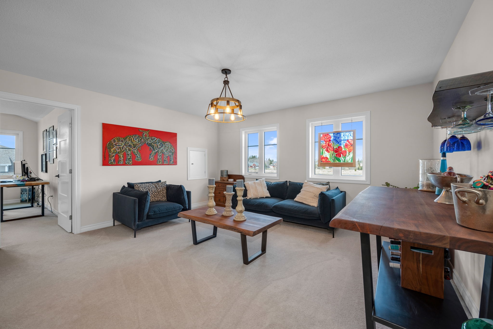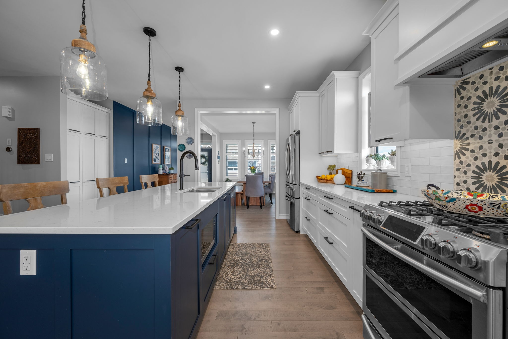 Welcome to 31 Pelham Crescent, a stunning Caivan 4T model bungalow with a full second level and a beautifully finished basement, offering over 3,300 sqft of refined living space. Situated in the coveted Fox Run neighbourhood, on a premium corner half pie shaped lot, this exceptional home showcases over $200,000 in premium upgrades that enhance both style and functionality. The heart of the home is the upgraded kitchen featuring pantry with pull out storage, sleek cabinetry, and an open layout that flows seamlessly into the living and dining areas, perfect for entertaining or day-to-day living. Elegant 4" hardwood flooring runs throughout the main living spaces, complemented by custom California shutters on every window, adding both charm and privacy. The family room centres around a striking upgraded fireplace with a rich wood mantle, creating a cozy yet upscale atmosphere. The primary suite offers a tranquil retreat with a spacious walk-in closet and a spa-like ensuite, while additional bedrooms provide flexibility for family or guests. Upstairs, a loft-style second level offers bonus living space ideal for a home office, media area, or playroom. The fully finished basement expands the homes versatility with a large recreation area, storage, and room for hobbies or a gym. Step outside to a landscaped, fully fenced backyard with a large deckideal for relaxing or entertaining. With a double-car garage, mudroom, and high-end finishes throughout, this home is move-in ready and thoughtfully designed for modern living.