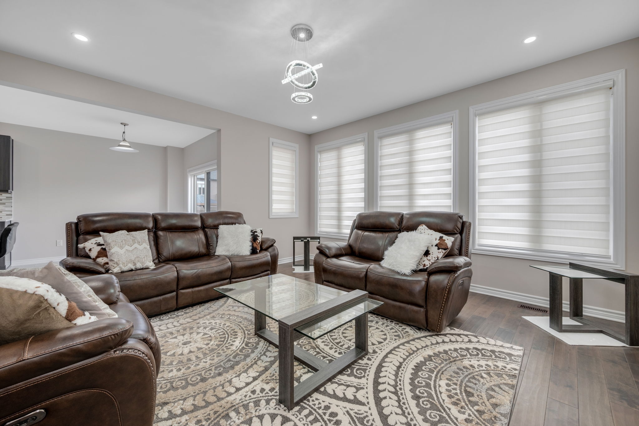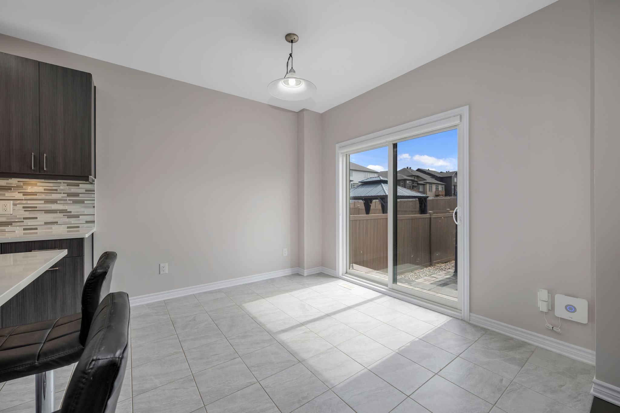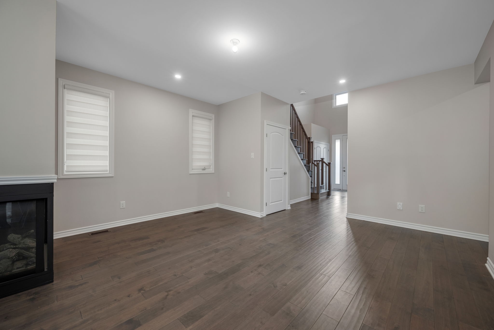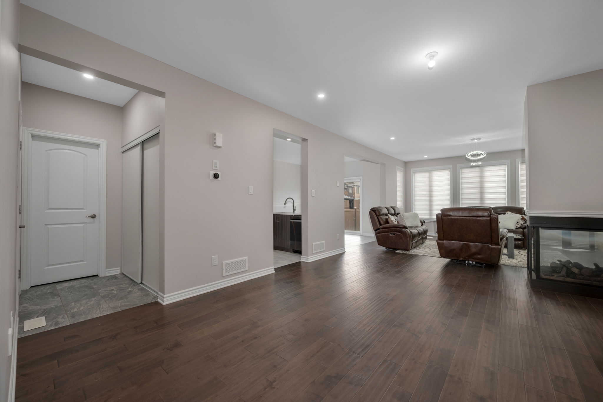 This stunning contemporary home offers a perfect blend of modern design, spacious comfort, and functional layout. The striking curb appeal sets the tone for an interior that boasts seamless flow throughout its open-concept main level. Rich hardwood flooring leads you into a bright and airy living space featuring a stylish stone accent wall and a sleek three-sided fireplace that adds warmth and elegance to both the living and dining areas. The chef-inspired kitchen is outfitted with dark modern cabinetry, quartz countertops, a chic glass tile backsplash, premium stainless steel appliances, and a dedicated eating area overlooking the backyard. Upstairs, the generously sized primary suite is filled with natural light and features a spa-like ensuite with a soaker tub and glass shower, accompanied by three additional spacious bedrooms and a full bath. The fully finished basement adds versatile living space along with an additional bathroom perfect for a home office, gym, or guest suite. Outside, the fully fenced backyard features beautiful interlock stonework and a covered gazebo, creating the perfect setting for outdoor dining, relaxing, or entertaining.