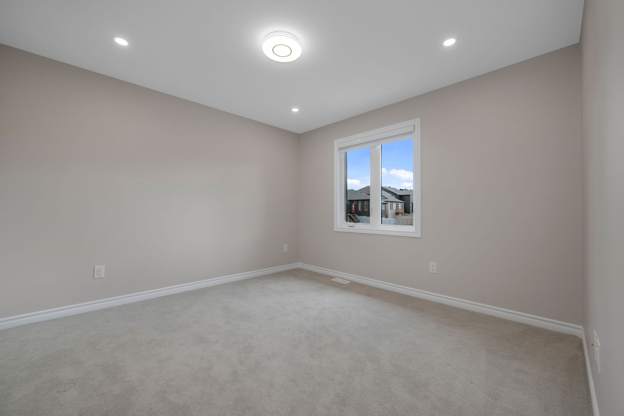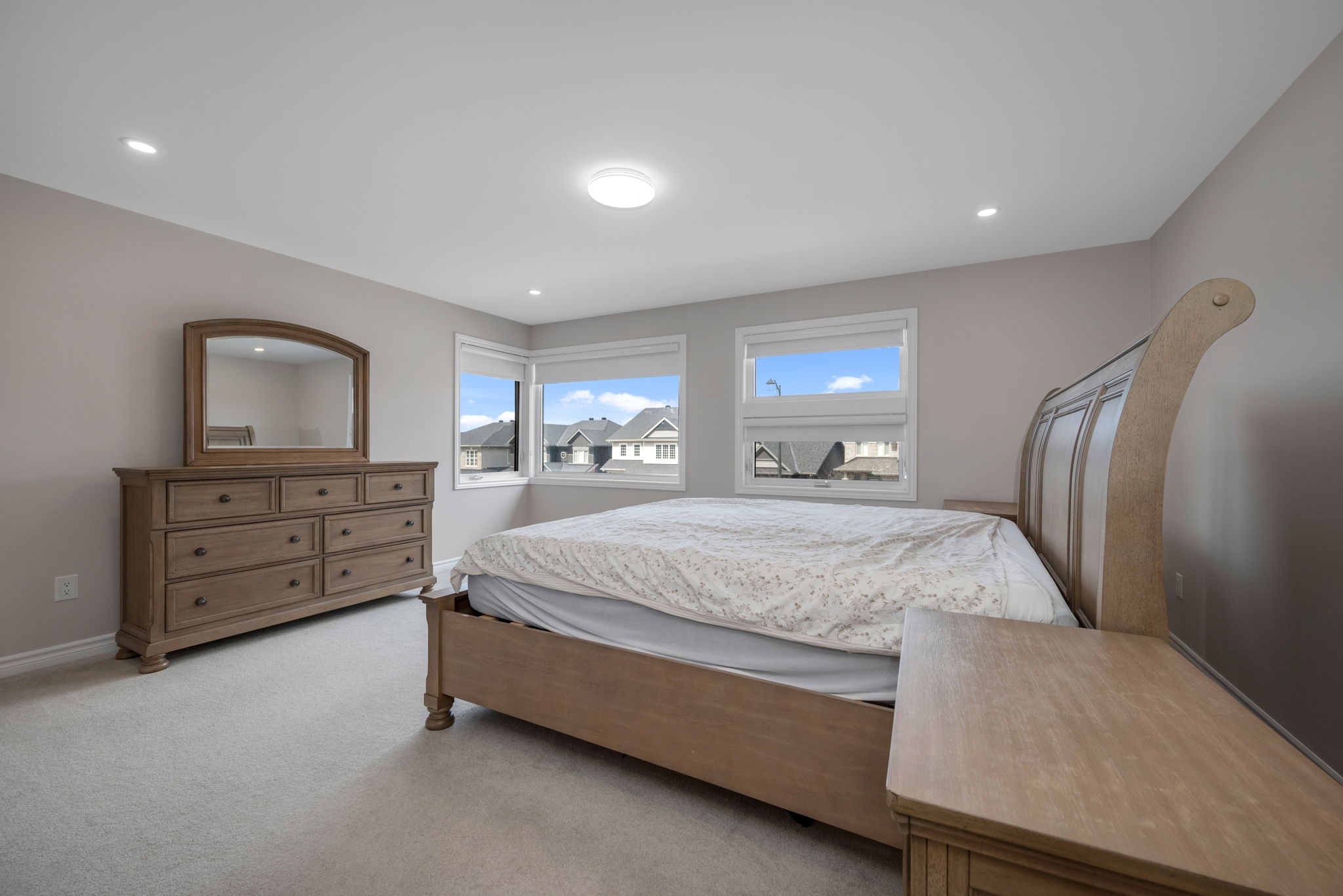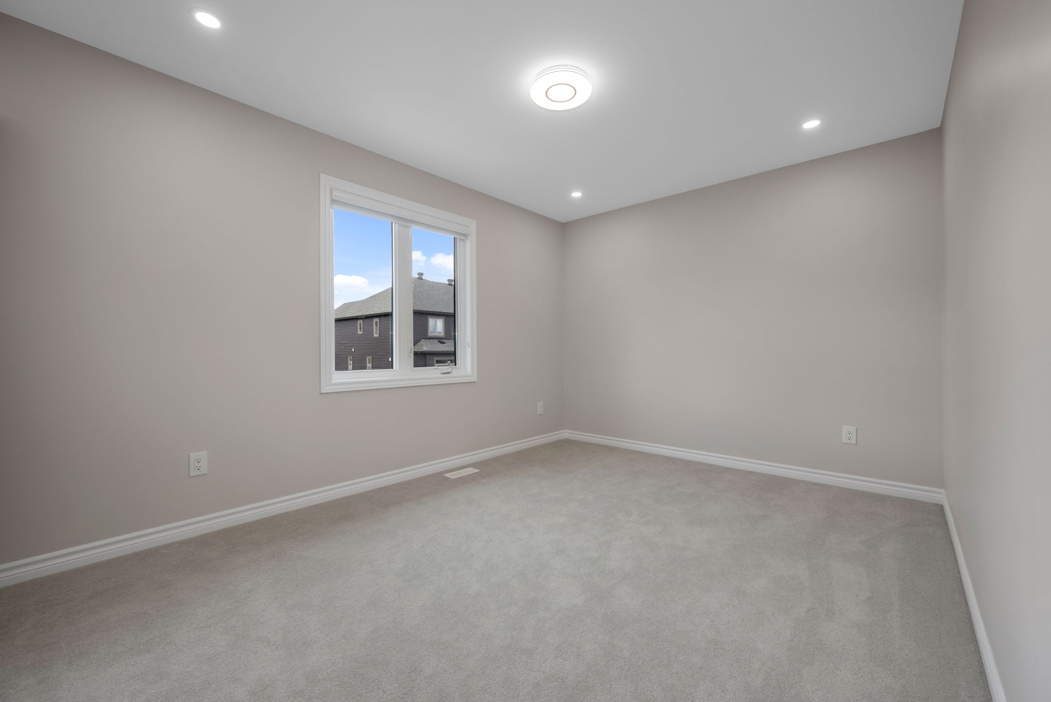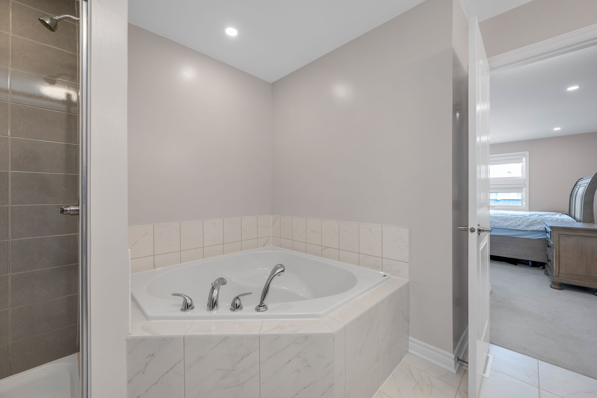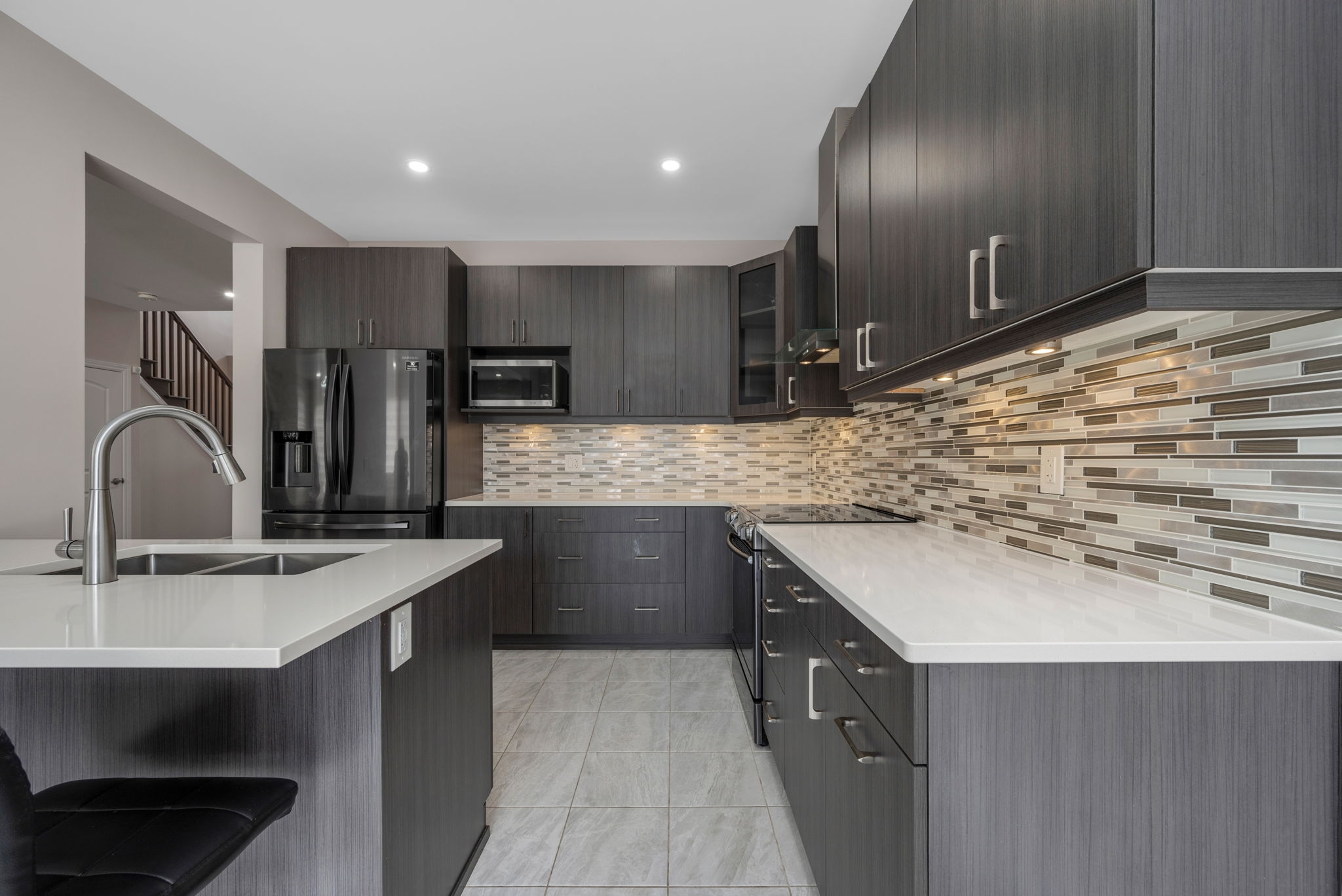 This stunning contemporary home offers a perfect blend of modern design, spacious comfort, and functional layout. The striking curb appeal sets the tone for an interior that boasts seamless flow throughout its open-concept main level. Rich hardwood flooring leads you into a bright and airy living space featuring a stylish stone accent wall and a sleek three-sided fireplace that adds warmth and elegance to both the living and dining areas. The chef-inspired kitchen is outfitted with dark modern cabinetry, quartz countertops, a chic glass tile backsplash, premium stainless steel appliances, and a dedicated eating area overlooking the backyard. Upstairs, the generously sized primary suite is filled with natural light and features a spa-like ensuite with a soaker tub and glass shower, accompanied by three additional spacious bedrooms and a full bath. The fully finished basement adds versatile living space along with an additional bathroom perfect for a home office, gym, or guest suite. Outside, the fully fenced backyard features beautiful interlock stonework and a covered gazebo, creating the perfect setting for outdoor dining, relaxing, or entertaining.