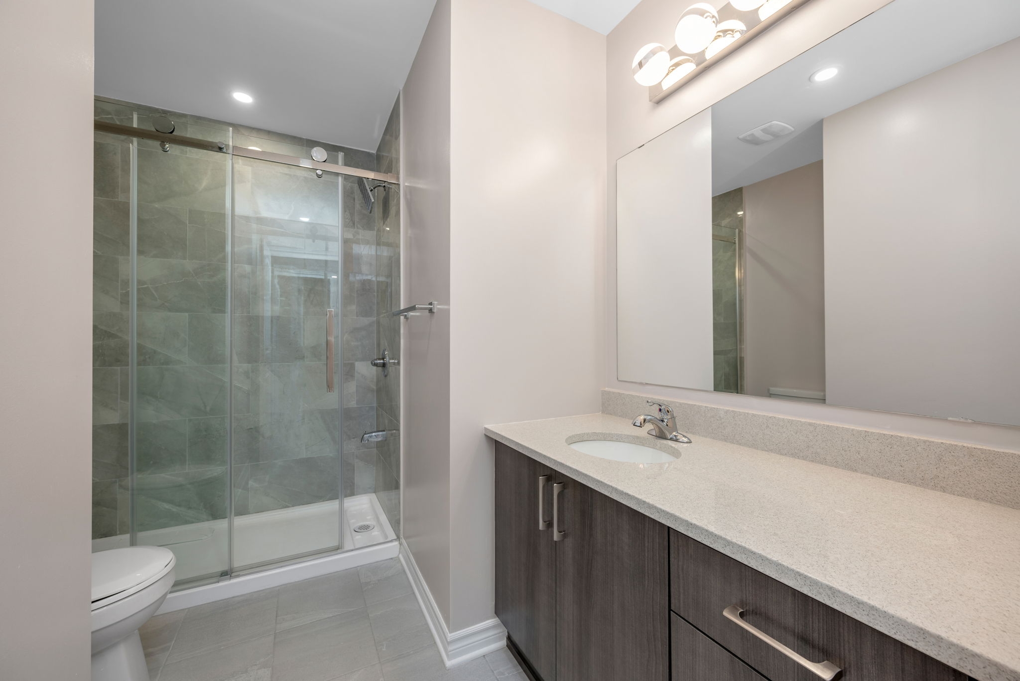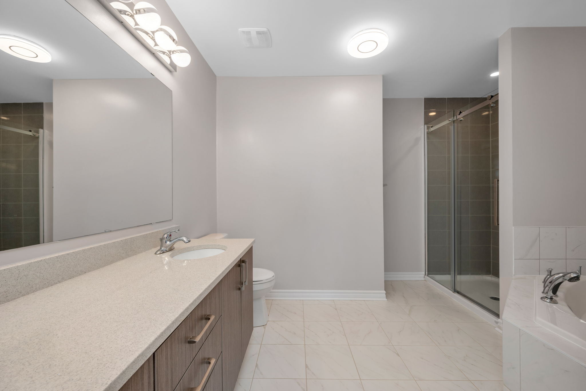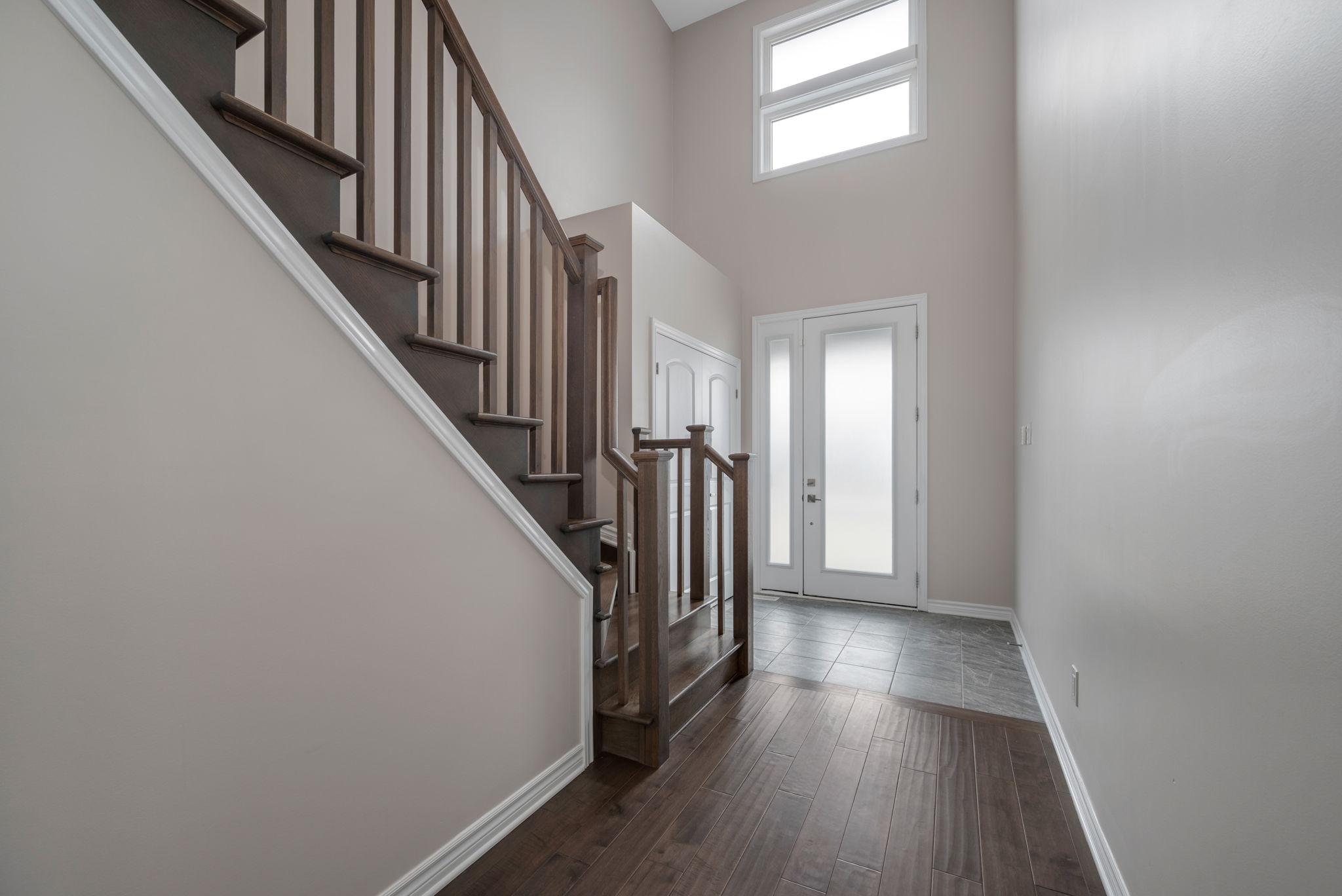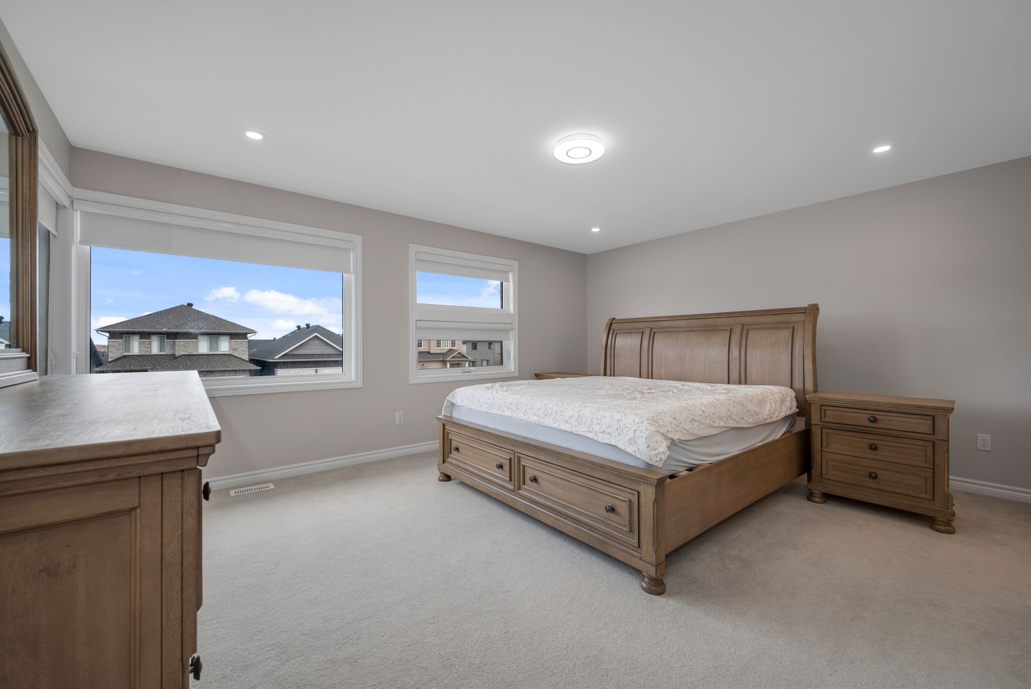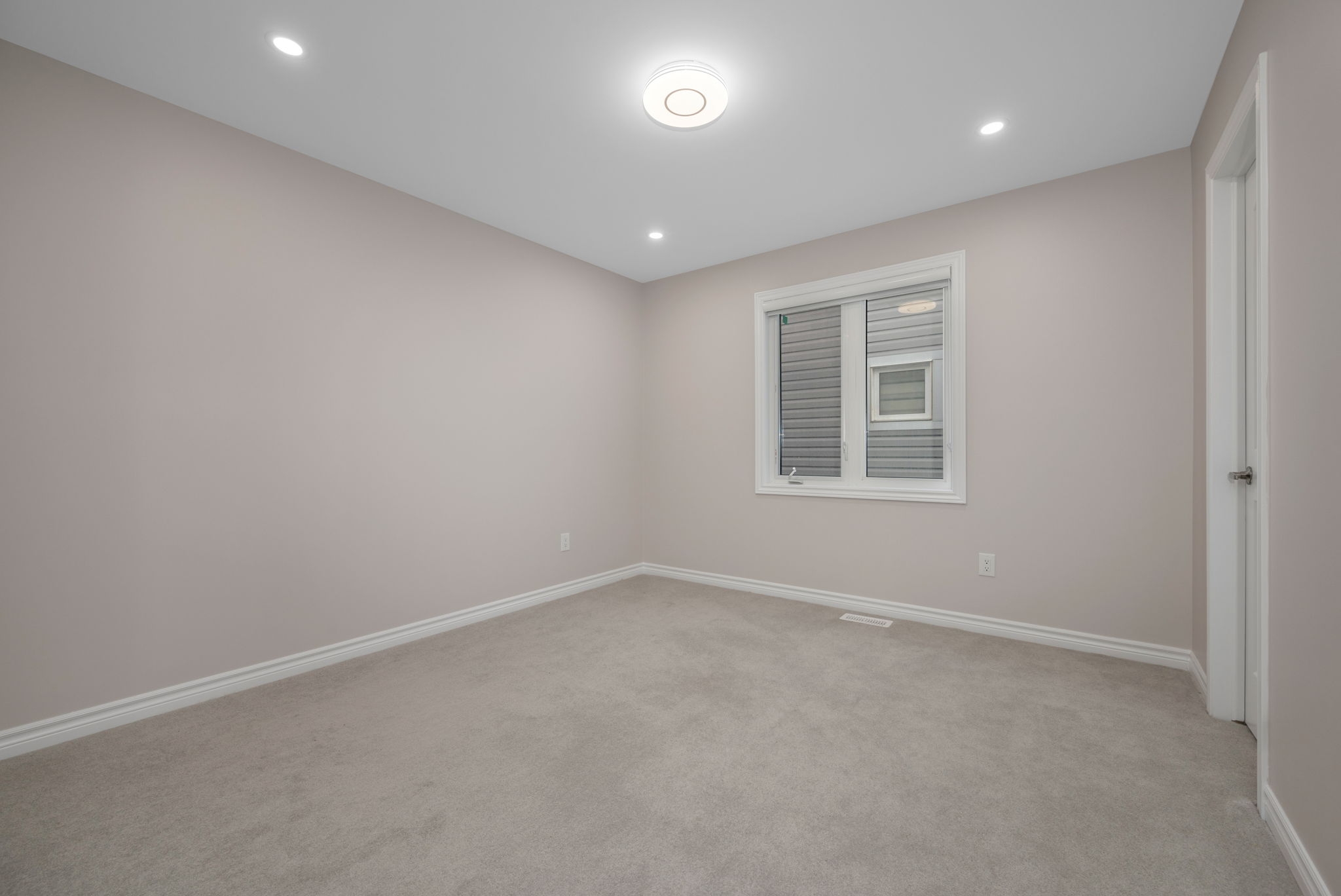 This stunning contemporary home offers a perfect blend of modern design, spacious comfort, and functional layout. The striking curb appeal sets the tone for an interior that boasts seamless flow throughout its open-concept main level. Rich hardwood flooring leads you into a bright and airy living space featuring a stylish stone accent wall and a sleek three-sided fireplace that adds warmth and elegance to both the living and dining areas. The chef-inspired kitchen is outfitted with dark modern cabinetry, quartz countertops, a chic glass tile backsplash, premium stainless steel appliances, and a dedicated eating area overlooking the backyard. Upstairs, the generously sized primary suite is filled with natural light and features a spa-like ensuite with a soaker tub and glass shower, accompanied by three additional spacious bedrooms and a full bath. The fully finished basement adds versatile living space along with an additional bathroom perfect for a home office, gym, or guest suite. Outside, the fully fenced backyard features beautiful interlock stonework and a covered gazebo, creating the perfect setting for outdoor dining, relaxing, or entertaining.