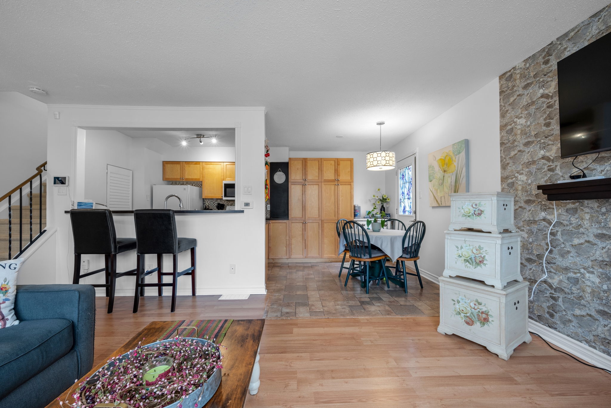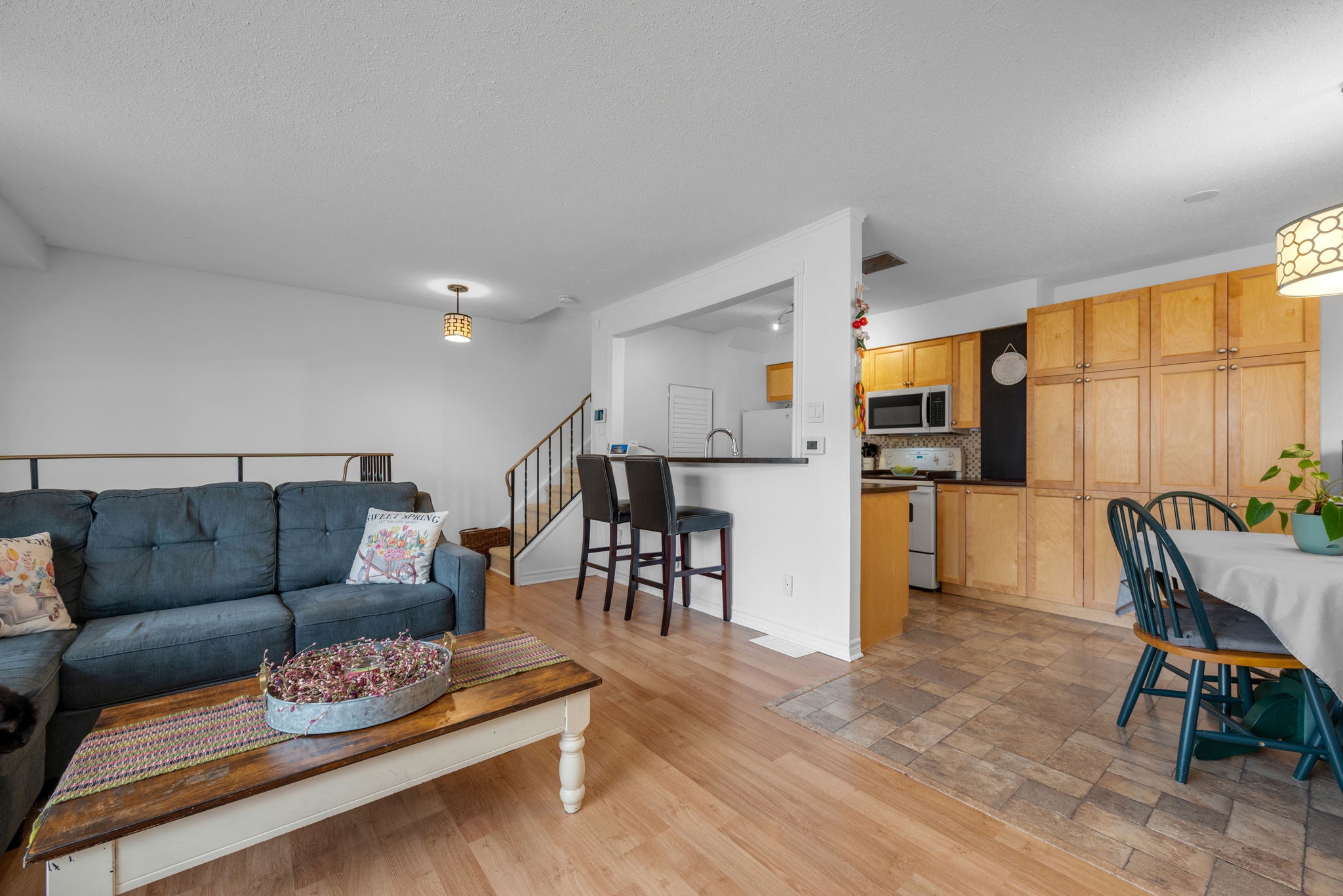 Welcome to this well-maintained 3-bedroom, 1.5-bathroom townhouse condo, perfectly suited for first-time homebuyers, downsizers, or investors. Situated in a sought-after neighbourhood, this home offers comfort, convenience, and a smart layout for modern living. Step inside to a spacious main floor featuring an open-concept living and dining area, perfect for entertaining or relaxing with family. The kitchen boasts ample cabinetry, making meal prep a breeze while offering plenty of storage space. Upstairs, you'll find two generously sized bedrooms and a full bathroom. The finished basement adds incredible value, featuring a third bedroom, a convenient partial bathroom, and versatile space that can be used as a home office, gym, or media room.