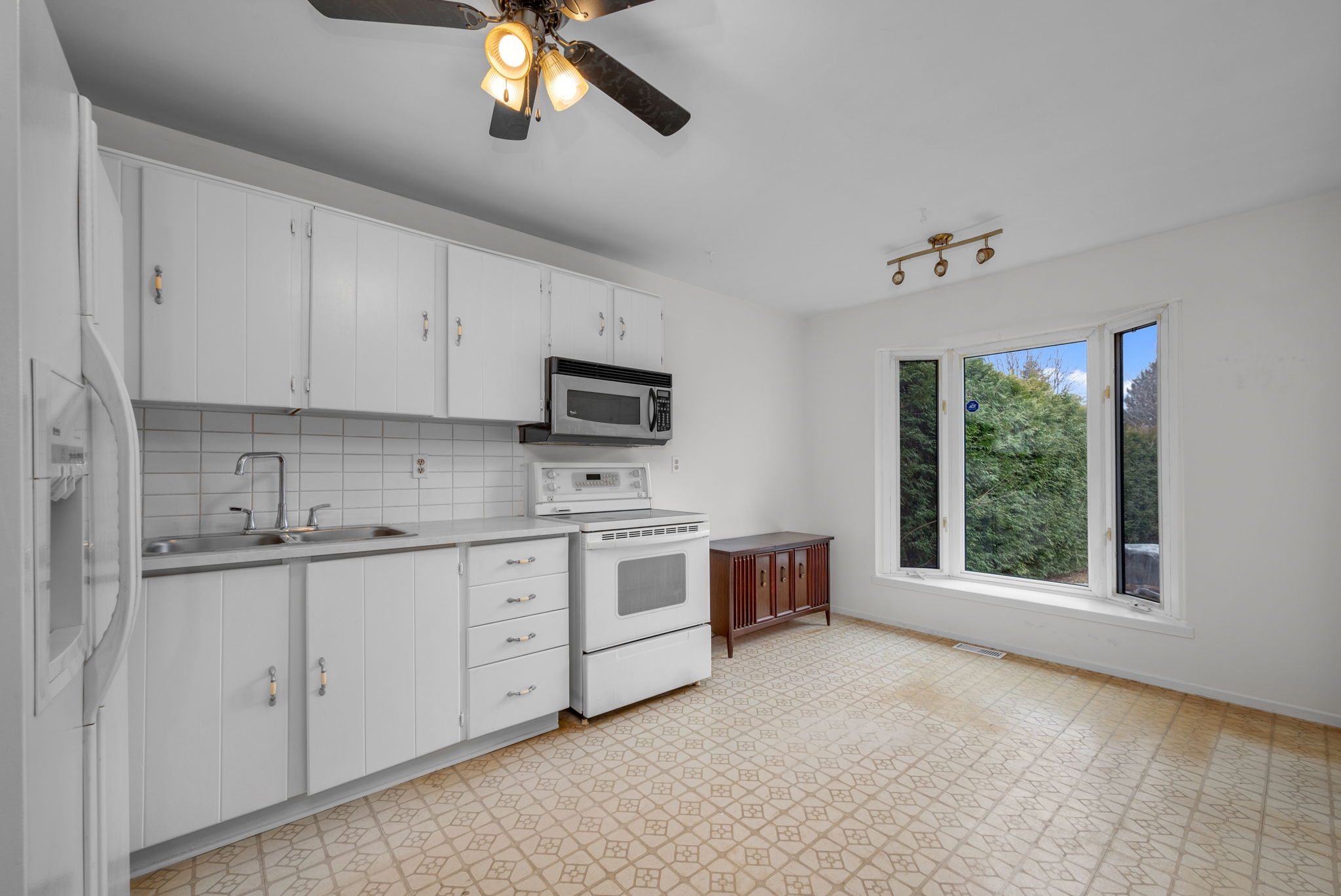 Located on a peaceful cul-de-sac in a sought-after pocket of Orleans, this 3-bedroom, 2-bathroom semi-detached home offers a fantastic opportunity for buyers ready to bring their personal touch and vision to life. Step inside to a bright and inviting living room featuring a wood-burning fireplace and a large picture window that fills the space with natural light. The separate dining room opens through patio doors to an enclosed porch, perfect for enjoying the outdoors in any season. A sunny eat-in kitchen with a bay window overlooks the impressive, oversized backyard, a rare find with endless possibilities for entertaining, gardening, or family fun. Upstairs, you'll find a spacious primary bedroom with double closets, two additional well-sized bedrooms, and a full family bathroom. The lower level provides additional living space, ideal for a playroom, rec room, or future updates. Backing onto Marsha Park, close to the future LRT, and offering quick access to the highway, this home delivers unbeatable location and value. Some photos are virtually staged. Roof and Siding 2019, Furnace 2021, Water Heater 2019.