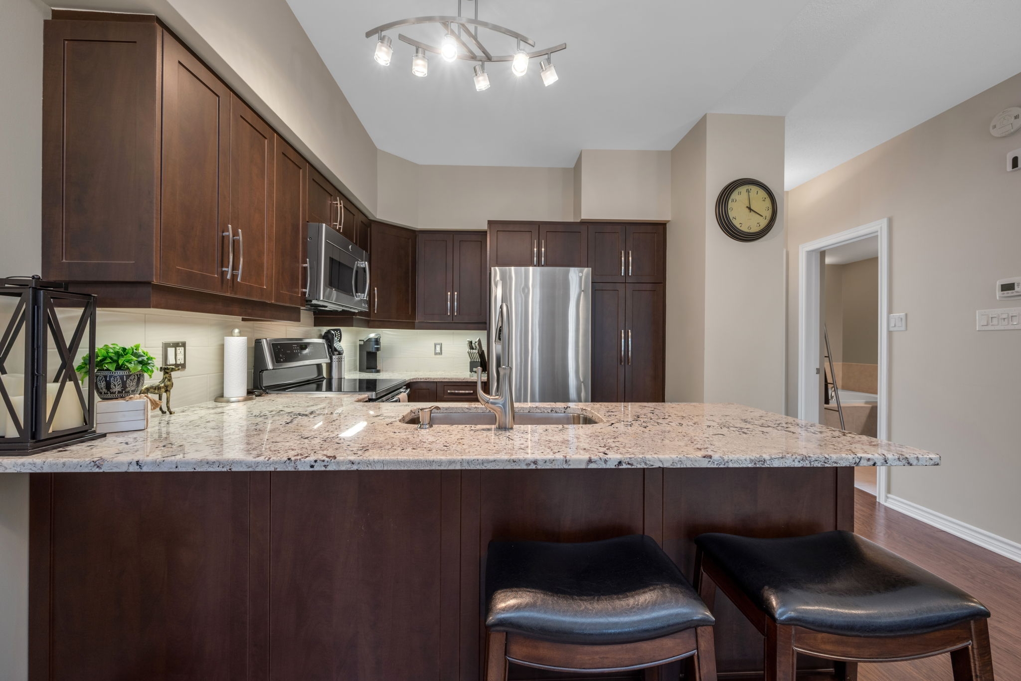 Discover the perfect blend of elegance and comfort at 48 Edenvale, a stylish stacked condo in an unbeatable location. Immaculately maintained, this home boasts over $32,000 in upgrades, ensuring a modern and sophisticated living experience.Step inside to find beautiful upgraded flooring, sleek stainless steel appliances, and stunning granite countertops in both the kitchen and main bathroom, complemented by a refreshed backsplash for a contemporary touch. Every detail has been thoughtfully enhanced, from upgraded light fixtures to stylish window blinds, creating a seamless and refined ambiance throughout.Flooded with natural light, this bright and airy space offers flexibility to suit your lifestyle, whether you need a dedicated home office or an additional bedroom. Enjoy the outdoors with a charming terrace at the back, featuring a retractable screen on the balcony door for added convenience. Freshly painted and completely move-in ready, this home is perfect for those seeking turnkey convenience and undeniable pride of ownership.