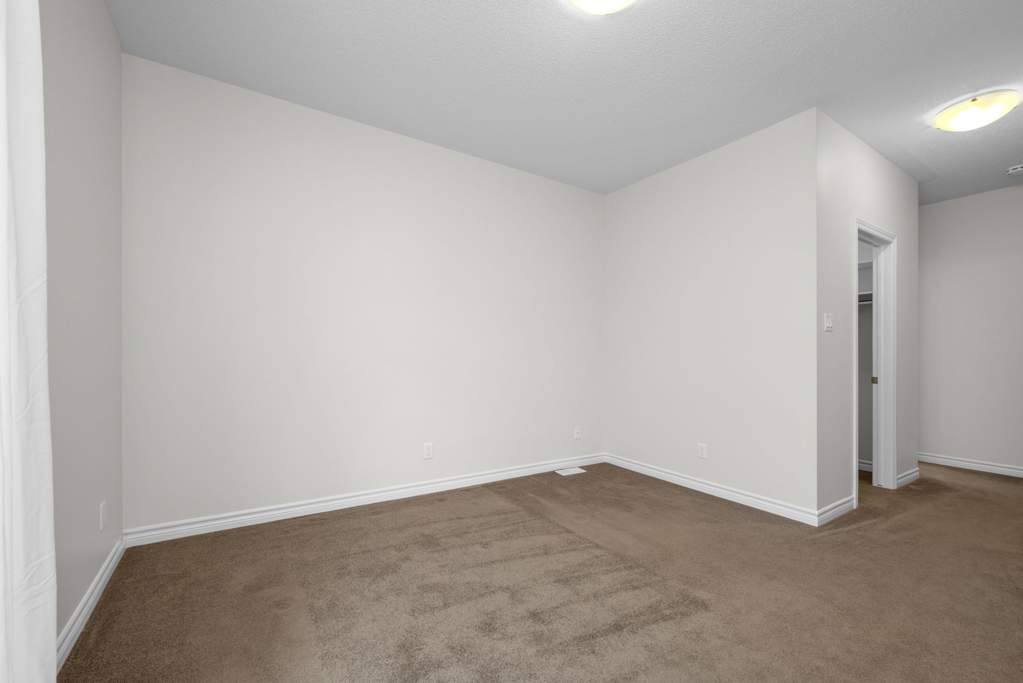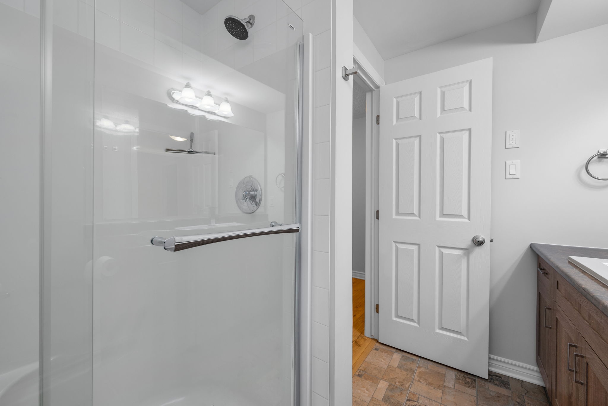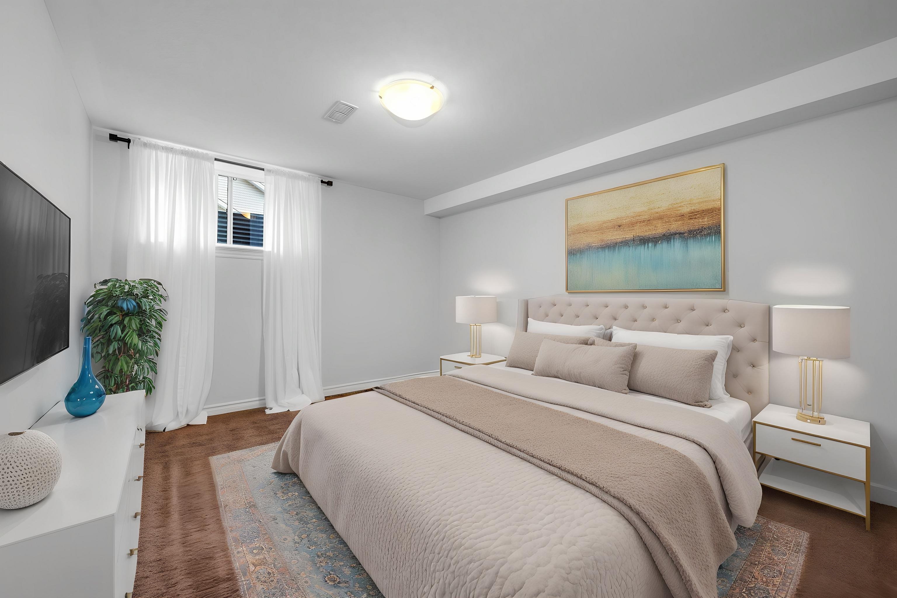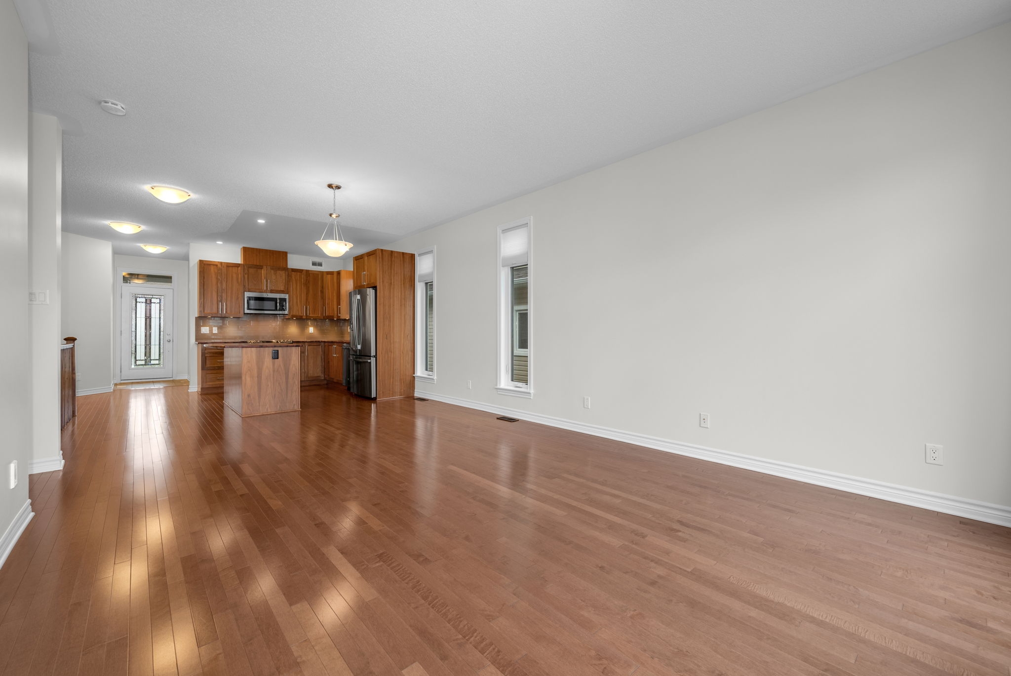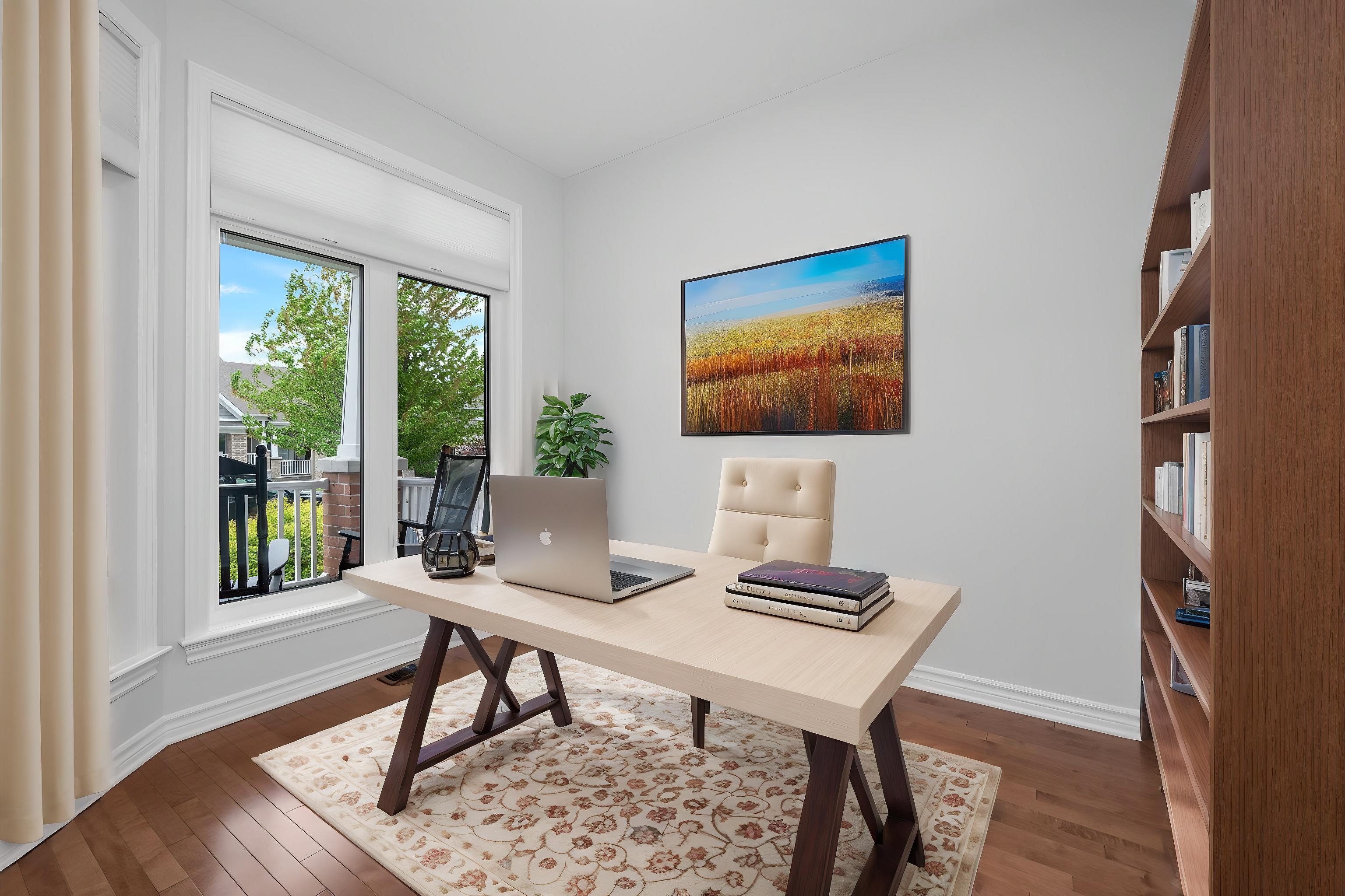 Tucked away on a peaceful street in the highly desirable Cardinal Creek community, this lovingly maintained semi-detached bungalow offers the perfect blend of comfort and practicality making this an ideal home for those looking to downsize without compromise. From the moment you arrive, the inviting front porch welcomes you home, hinting at the warmth and thoughtful design that awaits inside. Freshly painted, this bright and thoughtfully planned main floor features a dedicated study, perfect as a home office, craft room, or cozy TV den, paired with a smart, open-concept layout ideal for everyday living and effortless entertaining. The kitchen is a true highlight, boasting upgraded countertops that offer plenty of workspace, a centre island, upgraded cabinetry with ample storage including pots and pans drawers and spice pullout, all seamlessly connected to the spacious living and dining area. Step through the patio doors to the landscaped backyard with BBQ gas line where a large stone patio and fully enclosed cedar gazebo creates a private and peaceful space for morning coffee, summer BBQs, or serene birdwatching. The primary bedroom serves as a tranquil retreat, complete with a walk-in closet, additional wardrobe space, and a private ensuite featuring upgraded cabinetry, modern countertops, and a converted walk-in shower. A combined laundry and powder room layout adds convenience and flexibility to daily routines, while inside access from the insulated garage ensures year-round ease. The finished lower level extends your living space with a spacious recreation room, a second bedroom with a walk-in closet, a three-piece bathroom, and ample storage for all your extras. Enjoy low maintenance living just moments from walking paths, parks, transit, and everyday amenities. Some Photos Virtually Staged.