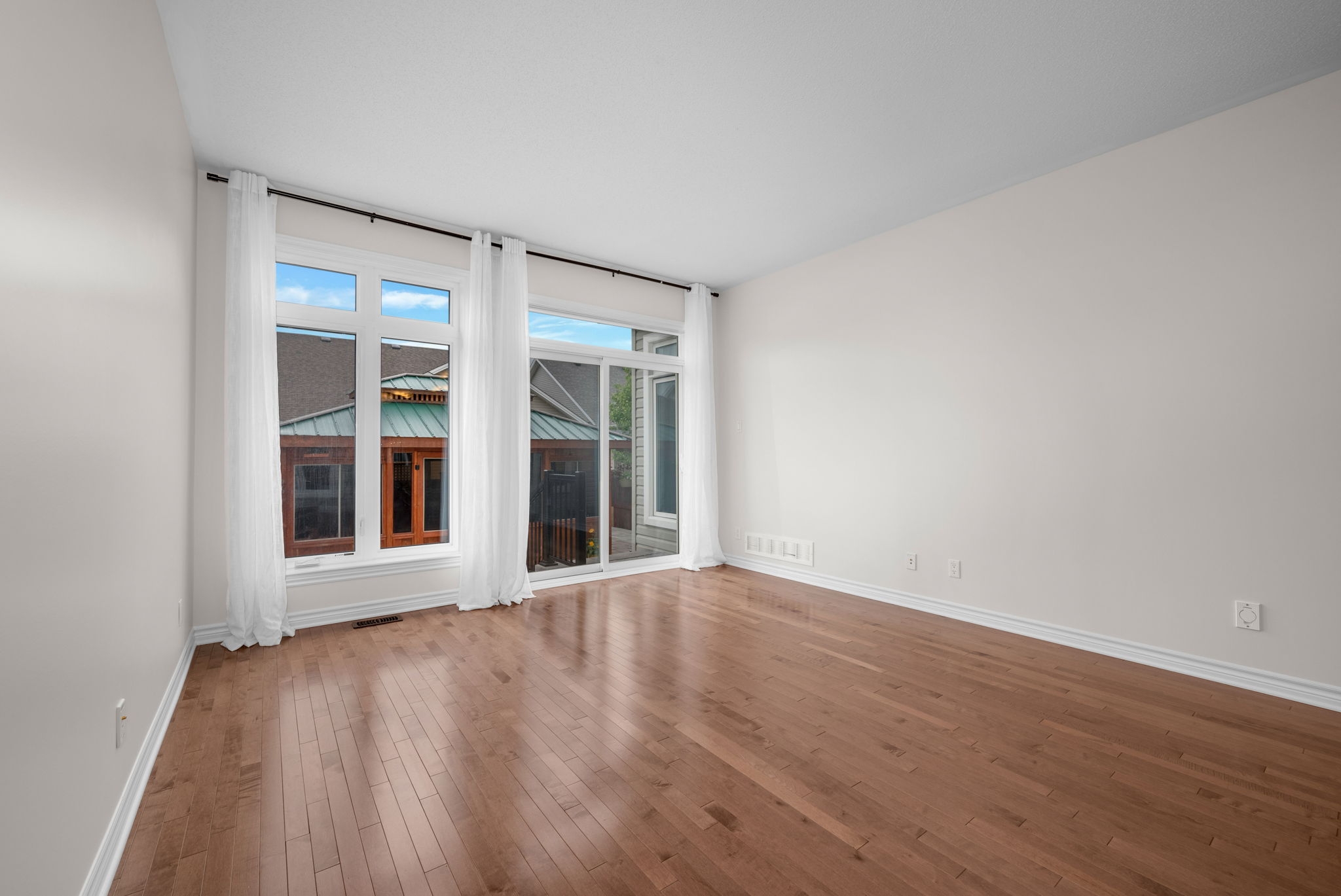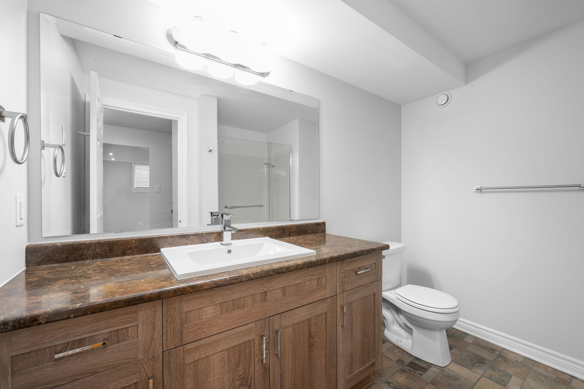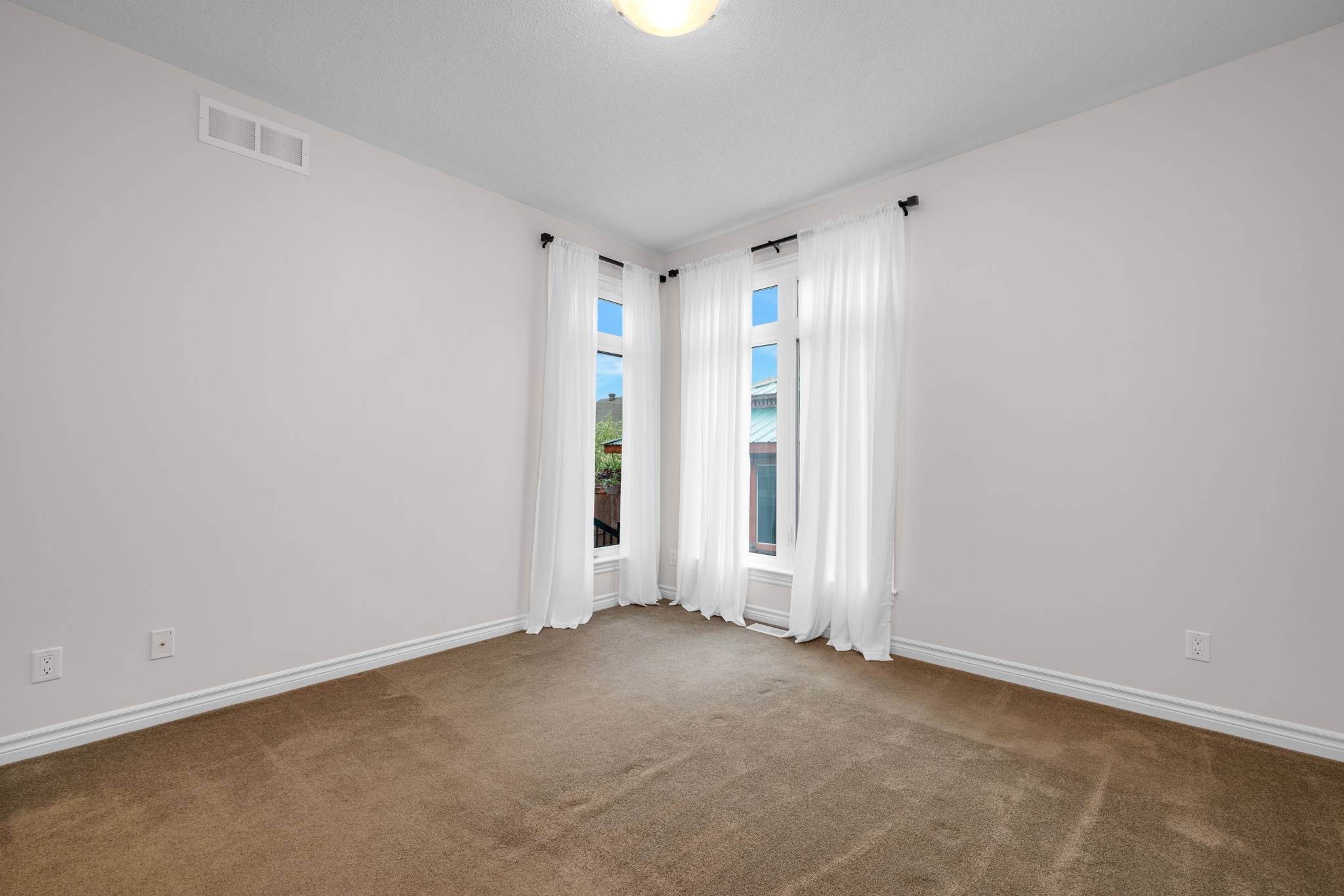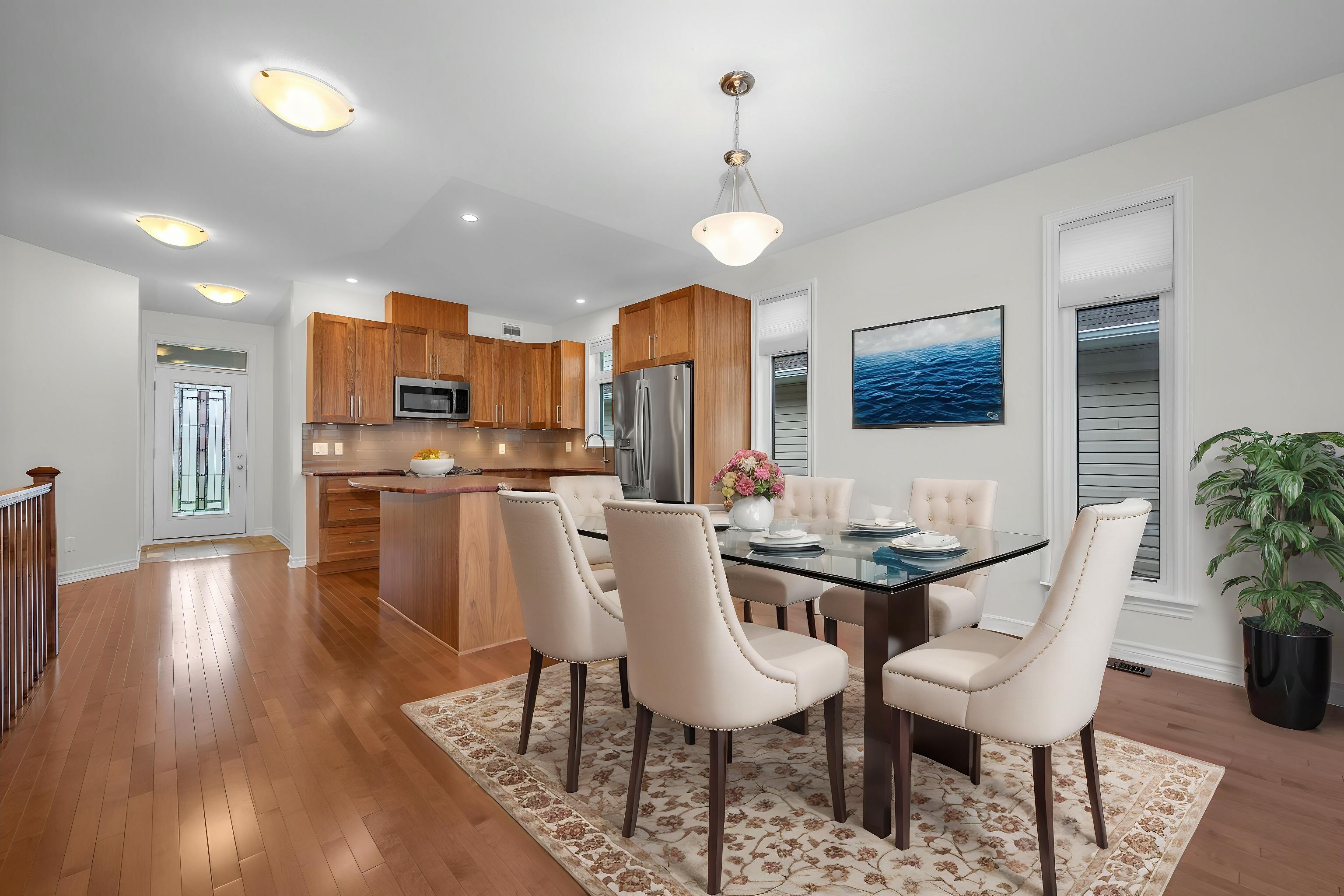 Tucked away on a peaceful street in the highly desirable Cardinal Creek community, this lovingly maintained semi-detached bungalow offers the perfect blend of comfort and practicality making this an ideal home for those looking to downsize without compromise. From the moment you arrive, the inviting front porch welcomes you home, hinting at the warmth and thoughtful design that awaits inside. Freshly painted, this bright and thoughtfully planned main floor features a dedicated study, perfect as a home office, craft room, or cozy TV den, paired with a smart, open-concept layout ideal for everyday living and effortless entertaining. The kitchen is a true highlight, boasting upgraded countertops that offer plenty of workspace, a centre island, upgraded cabinetry with ample storage including pots and pans drawers and spice pullout, all seamlessly connected to the spacious living and dining area. Step through the patio doors to the landscaped backyard with BBQ gas line where a large stone patio and fully enclosed cedar gazebo creates a private and peaceful space for morning coffee, summer BBQs, or serene birdwatching. The primary bedroom serves as a tranquil retreat, complete with a walk-in closet, additional wardrobe space, and a private ensuite featuring upgraded cabinetry, modern countertops, and a converted walk-in shower. A combined laundry and powder room layout adds convenience and flexibility to daily routines, while inside access from the insulated garage ensures year-round ease. The finished lower level extends your living space with a spacious recreation room, a second bedroom with a walk-in closet, a three-piece bathroom, and ample storage for all your extras. Enjoy low maintenance living just moments from walking paths, parks, transit, and everyday amenities. Some Photos Virtually Staged.