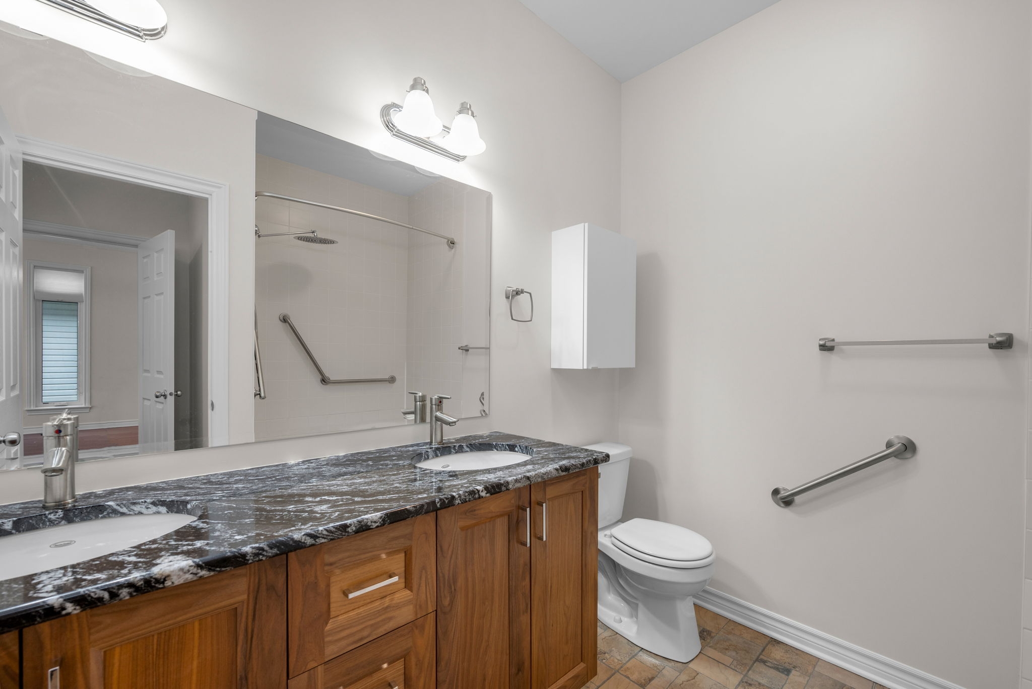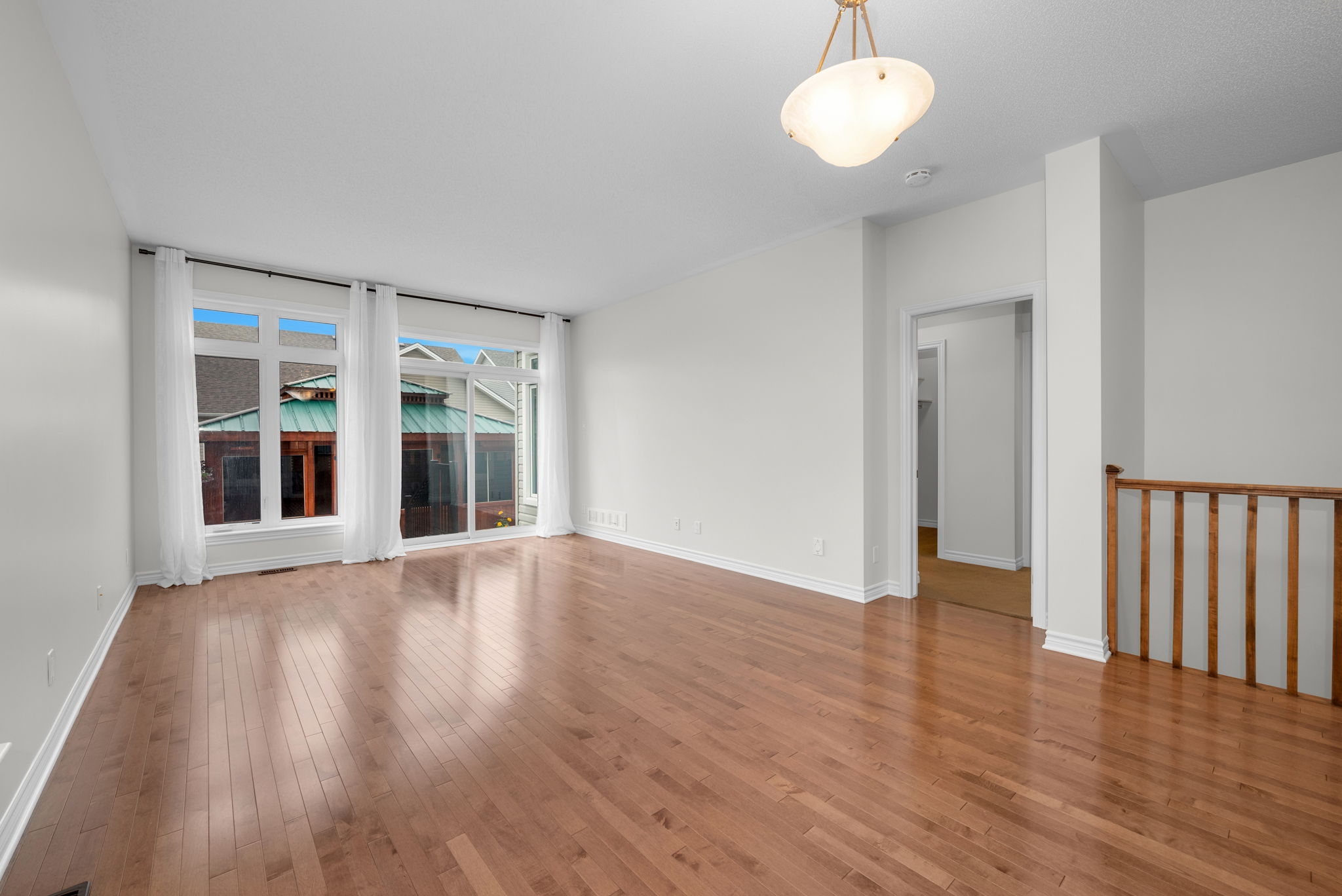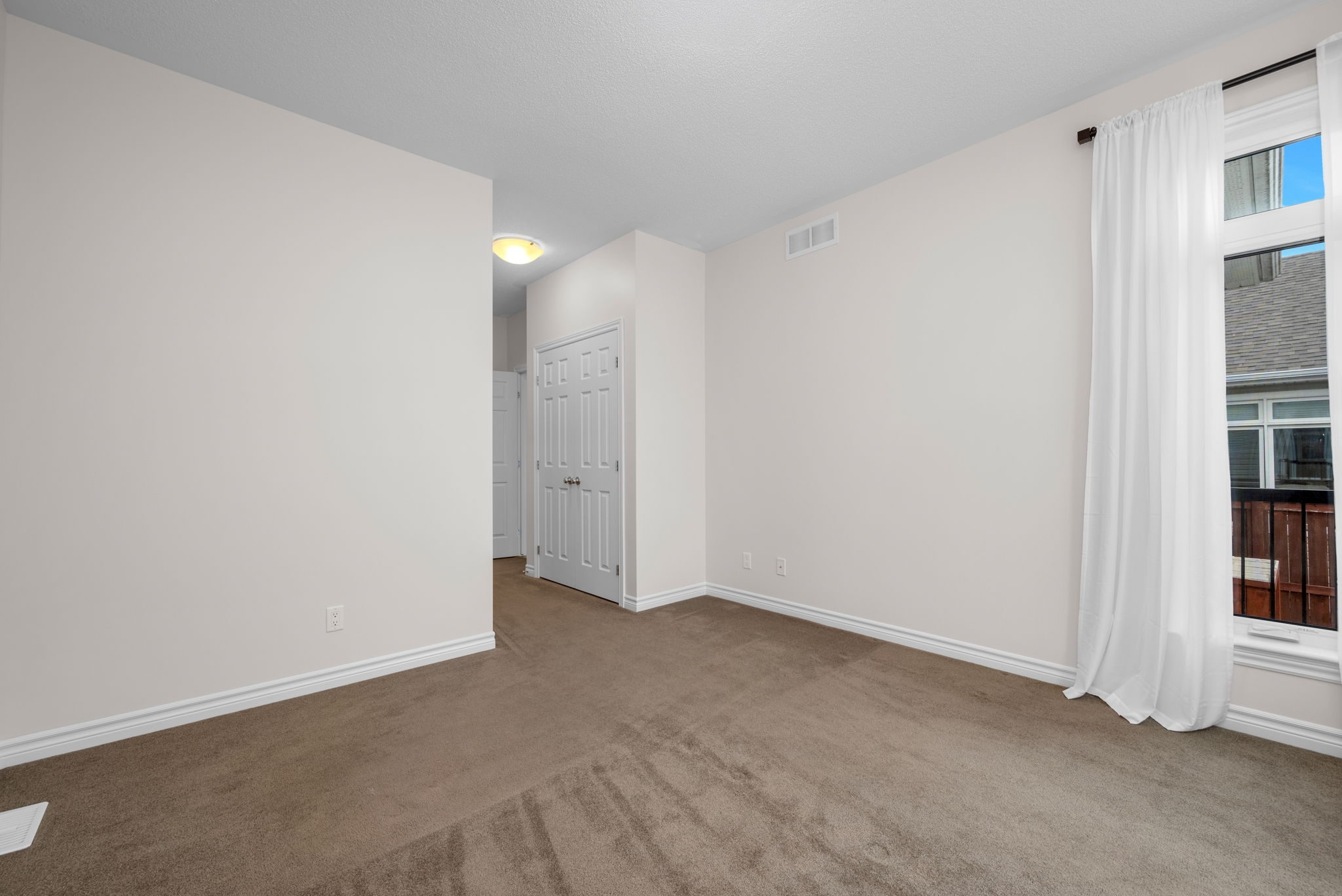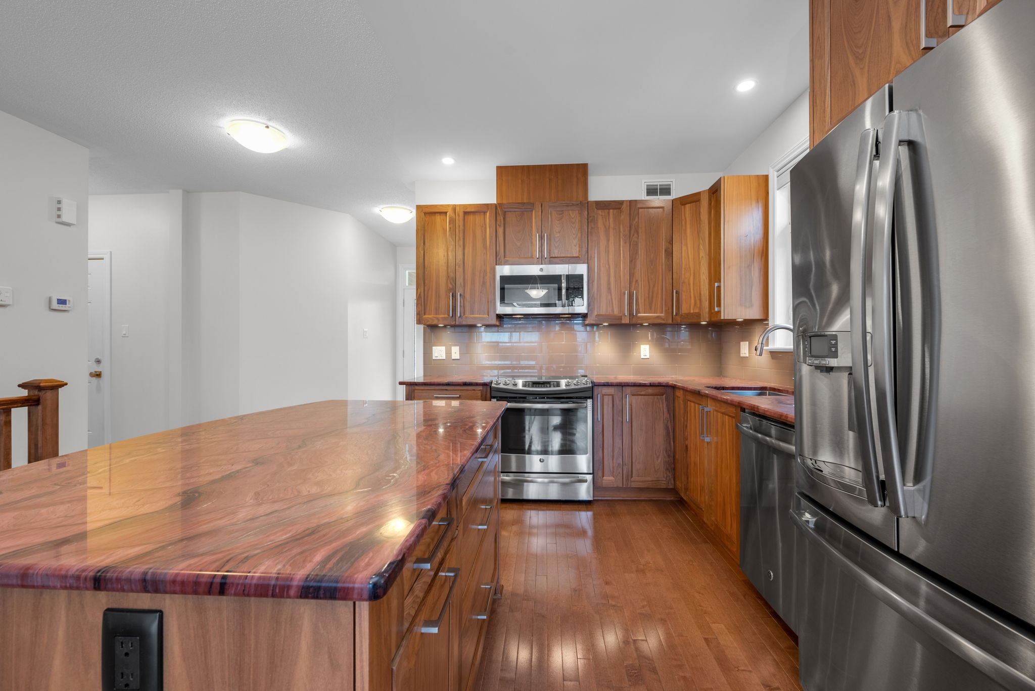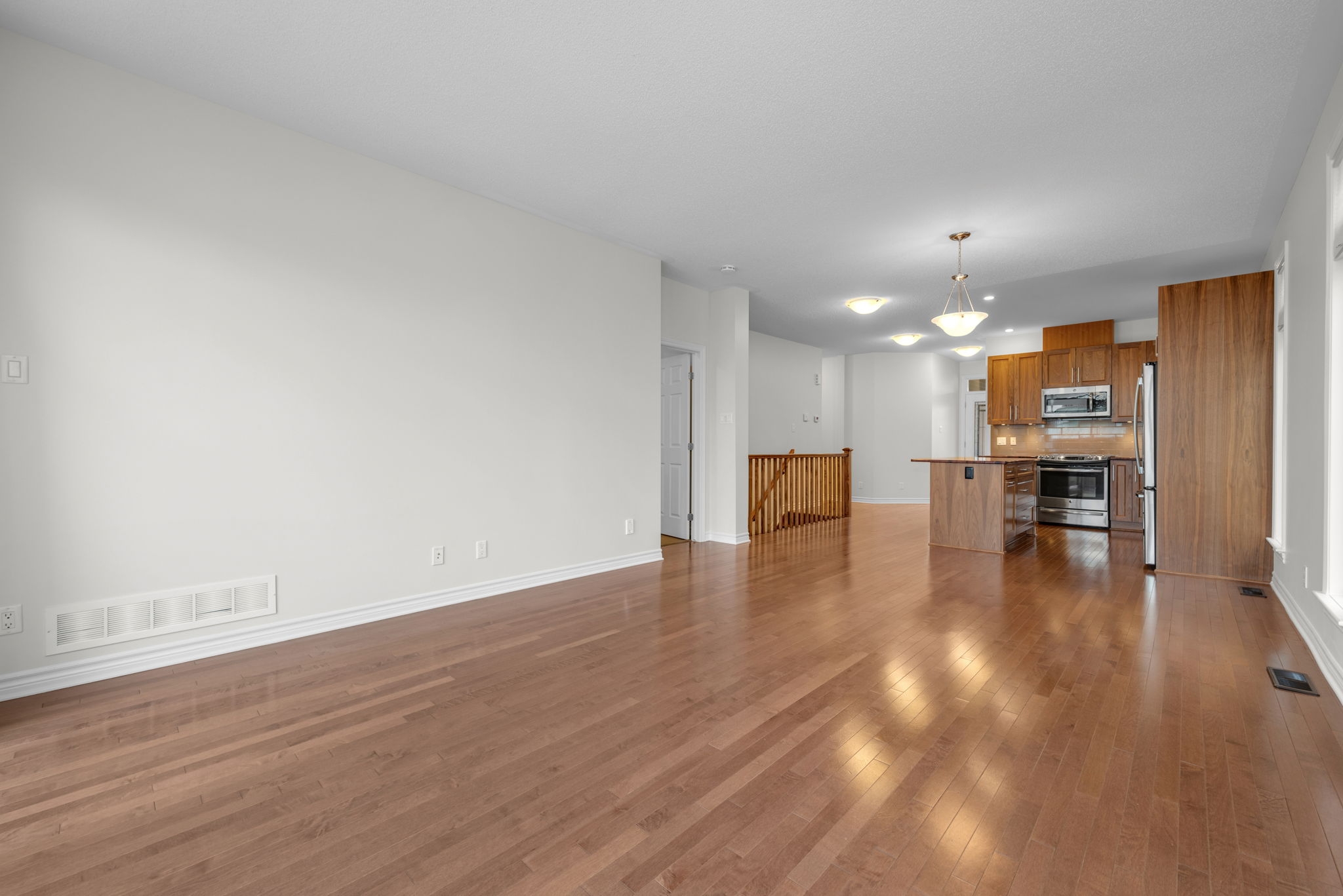 Tucked away on a peaceful street in the highly desirable Cardinal Creek community, this lovingly maintained semi-detached bungalow offers the perfect blend of comfort and practicality making this an ideal home for those looking to downsize without compromise. From the moment you arrive, the inviting front porch welcomes you home, hinting at the warmth and thoughtful design that awaits inside. Freshly painted, this bright and thoughtfully planned main floor features a dedicated study, perfect as a home office, craft room, or cozy TV den, paired with a smart, open-concept layout ideal for everyday living and effortless entertaining. The kitchen is a true highlight, boasting upgraded countertops that offer plenty of workspace, a centre island, upgraded cabinetry with ample storage including pots and pans drawers and spice pullout, all seamlessly connected to the spacious living and dining area. Step through the patio doors to the landscaped backyard with BBQ gas line where a large stone patio and fully enclosed cedar gazebo creates a private and peaceful space for morning coffee, summer BBQs, or serene birdwatching. The primary bedroom serves as a tranquil retreat, complete with a walk-in closet, additional wardrobe space, and a private ensuite featuring upgraded cabinetry, modern countertops, and a converted walk-in shower. A combined laundry and powder room layout adds convenience and flexibility to daily routines, while inside access from the insulated garage ensures year-round ease. The finished lower level extends your living space with a spacious recreation room, a second bedroom with a walk-in closet, a three-piece bathroom, and ample storage for all your extras. Enjoy low maintenance living just moments from walking paths, parks, transit, and everyday amenities. Some Photos Virtually Staged.