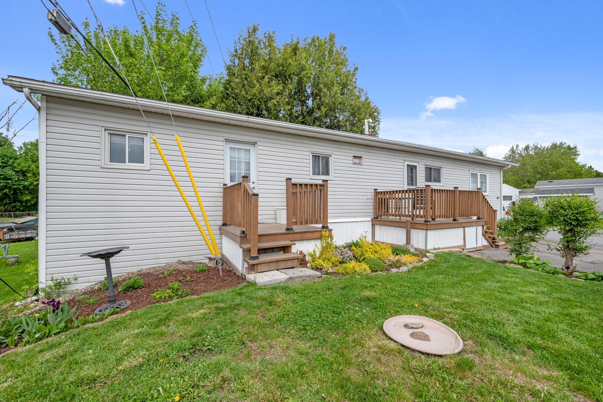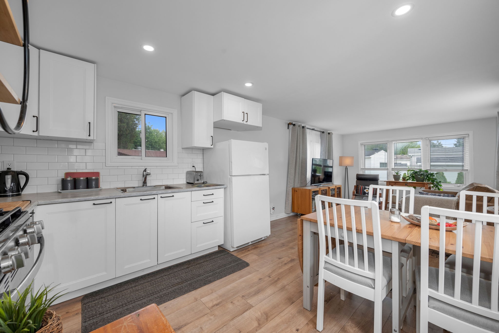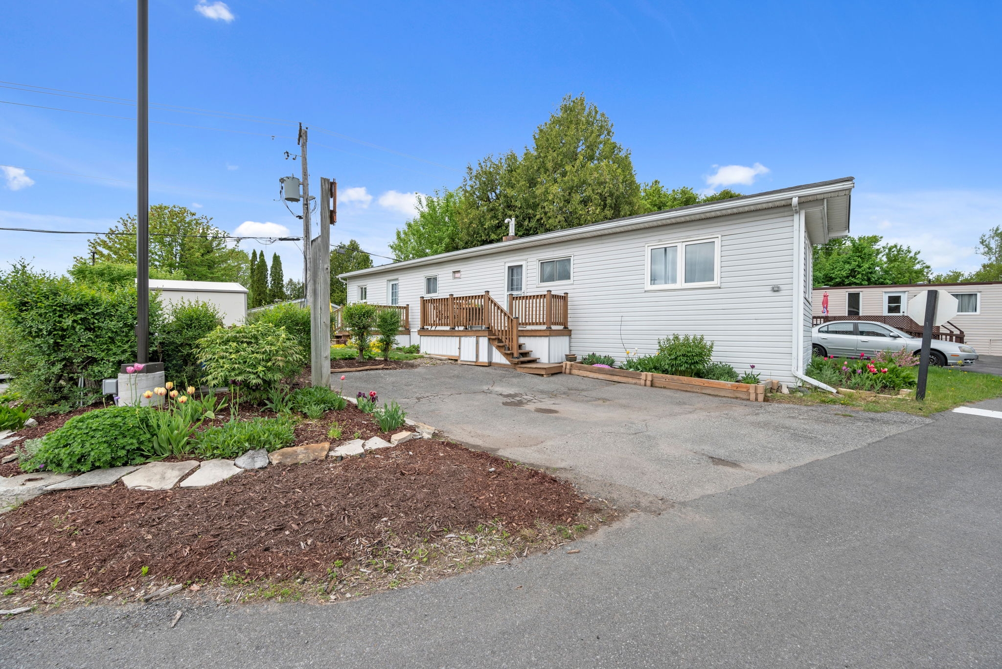 Discover the perfect blend of style and functionality in this beautifully updated mobile home, nestled in the highly sought-after community of Bellwood Estates. Designed with a bright andopen layout, this home seamlessly connects the living, dining, and kitchen areasideal forcomfortable, everyday living.The spacious living room is filled with natural light from large windows, creating a warm andinviting atmosphere. The redesigned kitchen, completed in 2021, features sleek modern cabinetryand ample counter space, making meal prep both easy and enjoyable. The adjacent dining area is perfectly positioned for casual meals and family time.You'll find a generously sized primary bedroom along with one additional well-proportioned bedroom and a full bathroom, offering practical living space for a variety of needs.Set on a private corner lot, the exterior offers ample space for gardening and is surrounded by mature greenery, providing a peaceful and private setting. A double car laneway adds convenient off-street parking.This thoughtfully maintained bungalow-style modular home offers comfort, privacy, and a strong sense of community in one of the west ends most desirable locations.