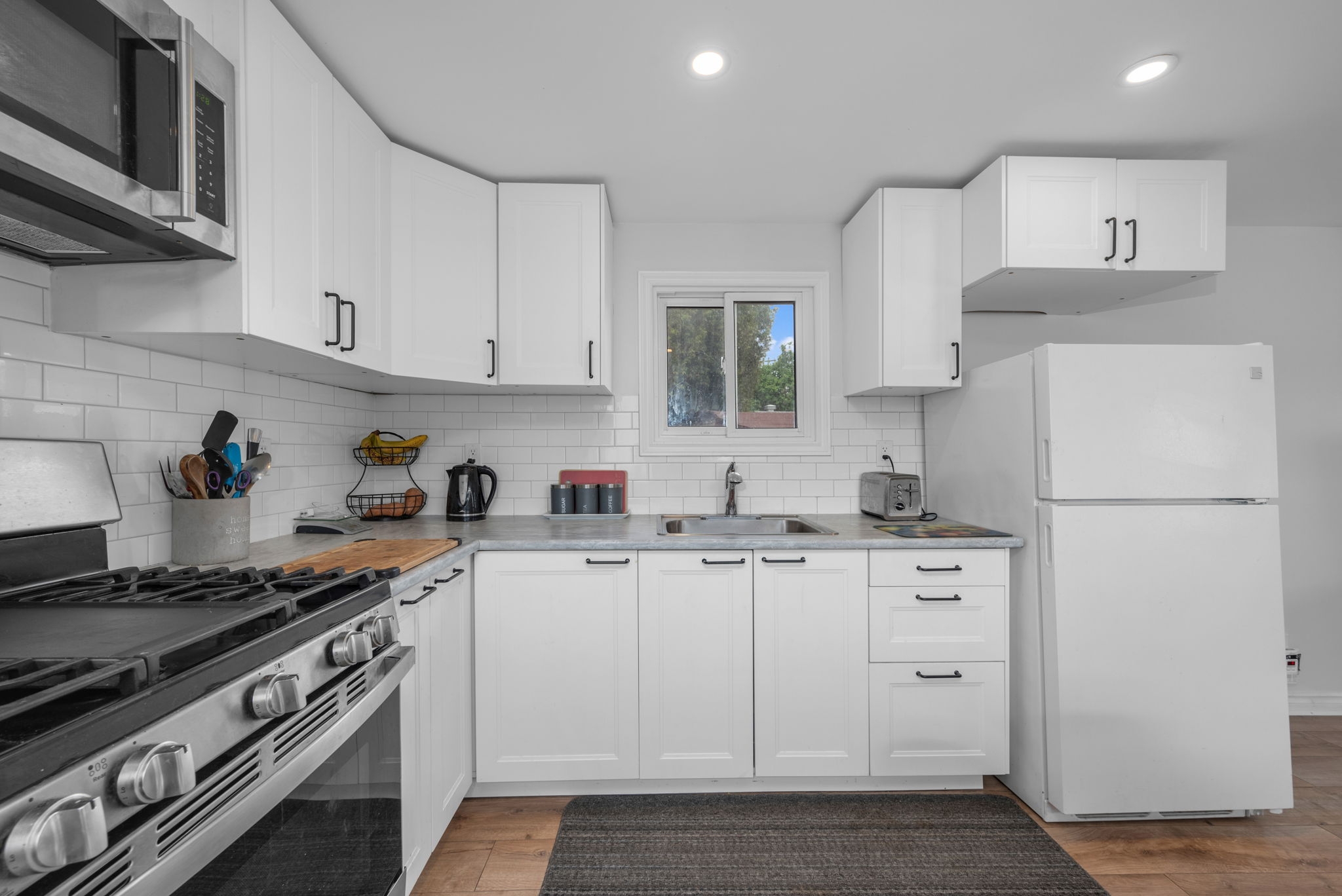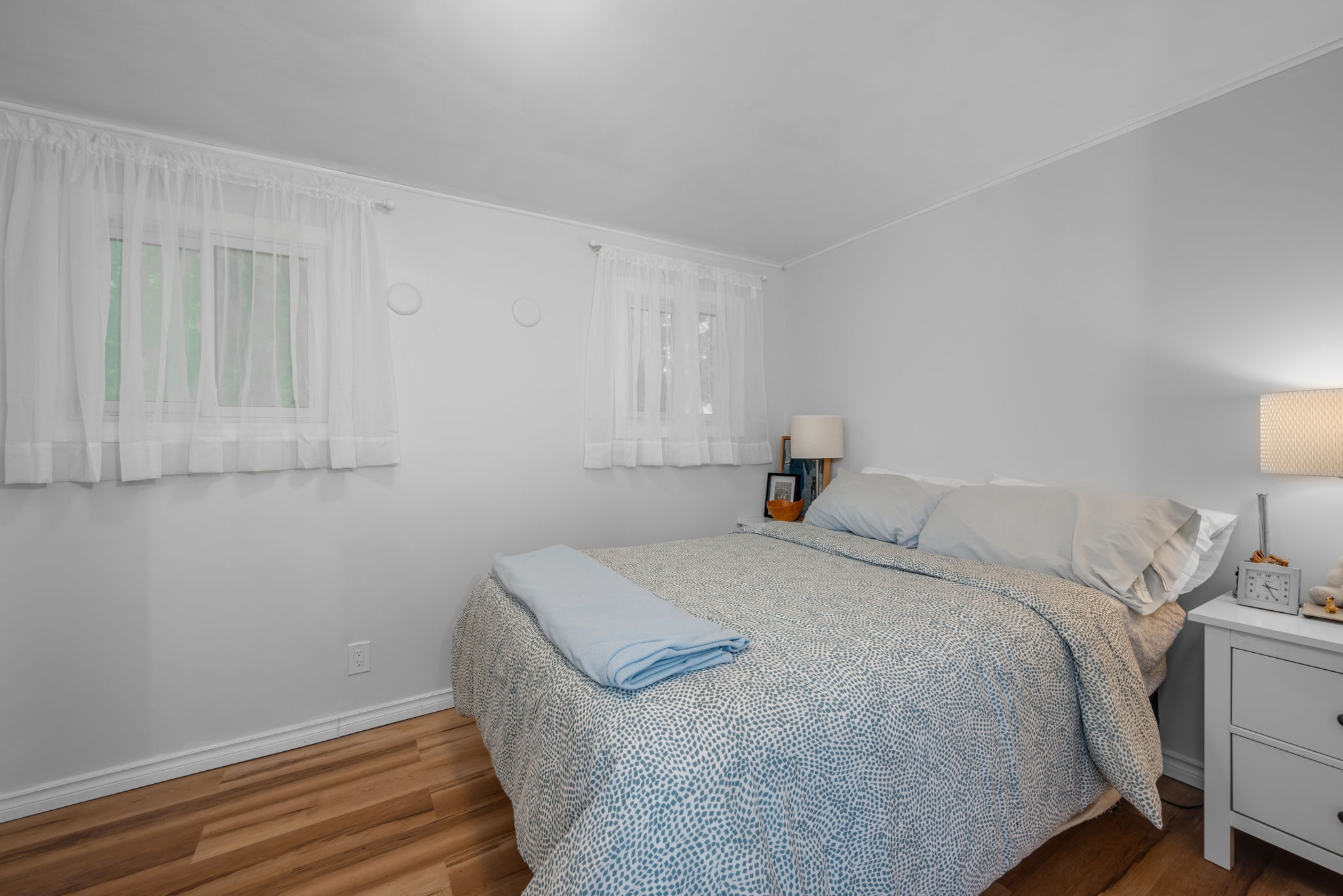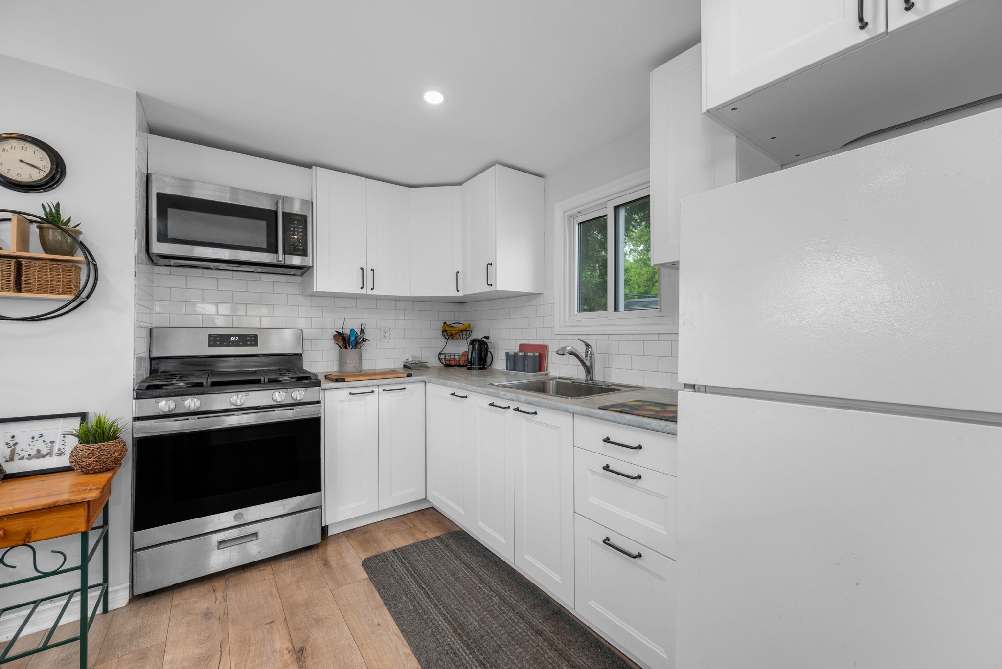 Discover the perfect blend of style and functionality in this beautifully updated mobile home, nestled in the highly sought-after community of Bellwood Estates. Designed with a bright andopen layout, this home seamlessly connects the living, dining, and kitchen areasideal forcomfortable, everyday living.The spacious living room is filled with natural light from large windows, creating a warm andinviting atmosphere. The redesigned kitchen, completed in 2021, features sleek modern cabinetryand ample counter space, making meal prep both easy and enjoyable. The adjacent dining area is perfectly positioned for casual meals and family time.You'll find a generously sized primary bedroom along with one additional well-proportioned bedroom and a full bathroom, offering practical living space for a variety of needs.Set on a private corner lot, the exterior offers ample space for gardening and is surrounded by mature greenery, providing a peaceful and private setting. A double car laneway adds convenient off-street parking.This thoughtfully maintained bungalow-style modular home offers comfort, privacy, and a strong sense of community in one of the west ends most desirable locations.