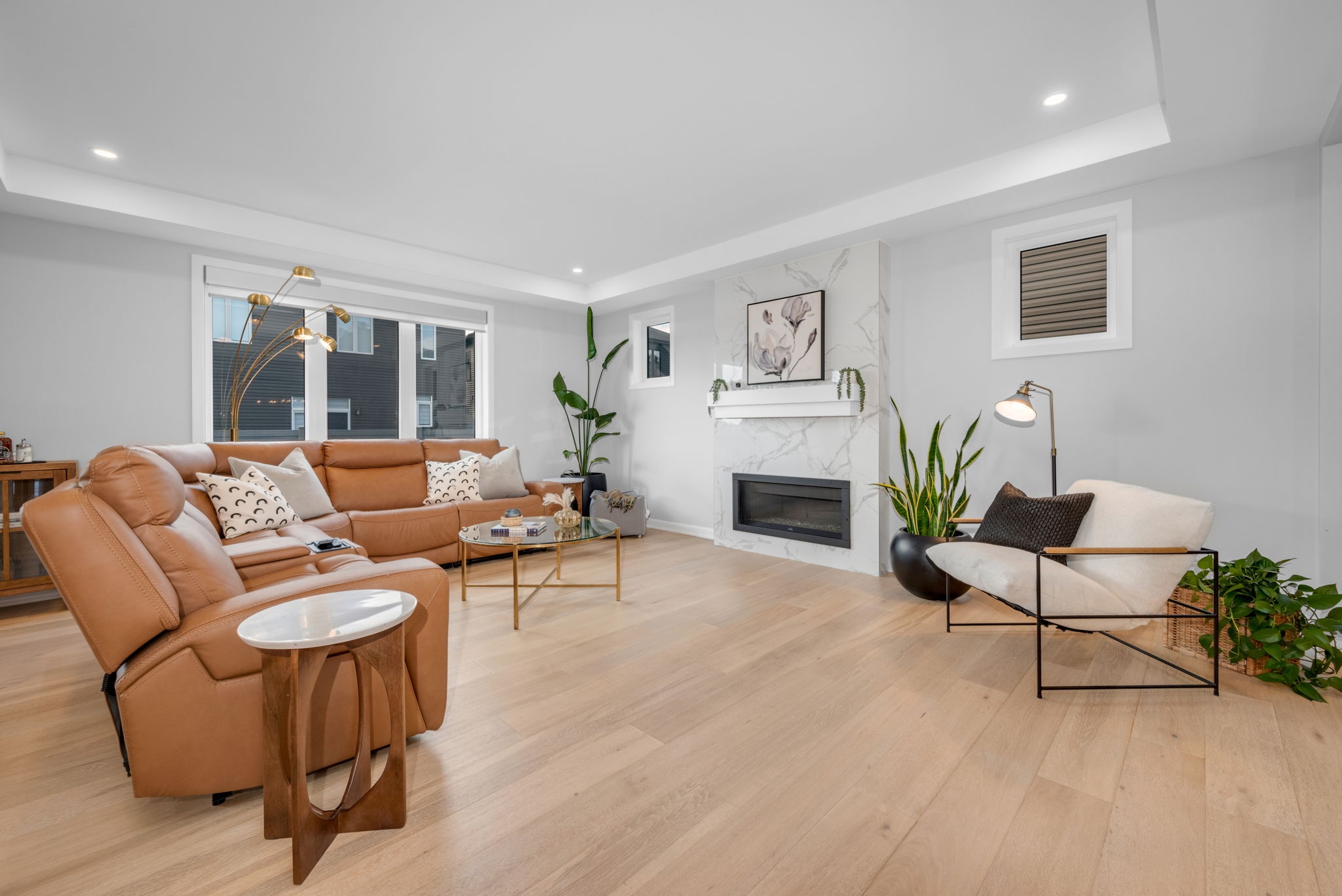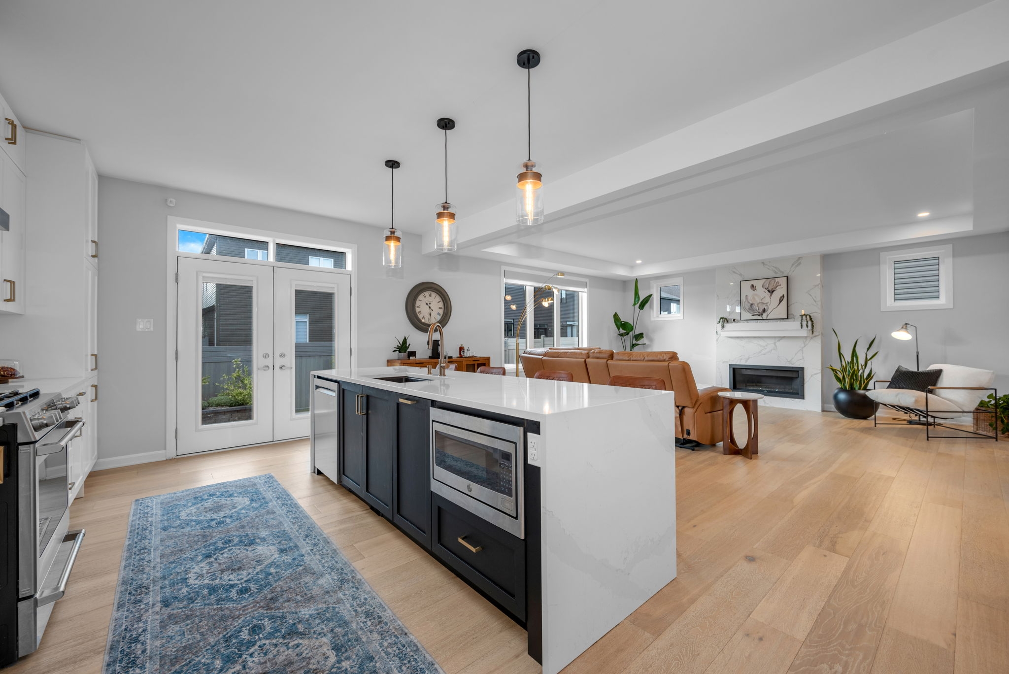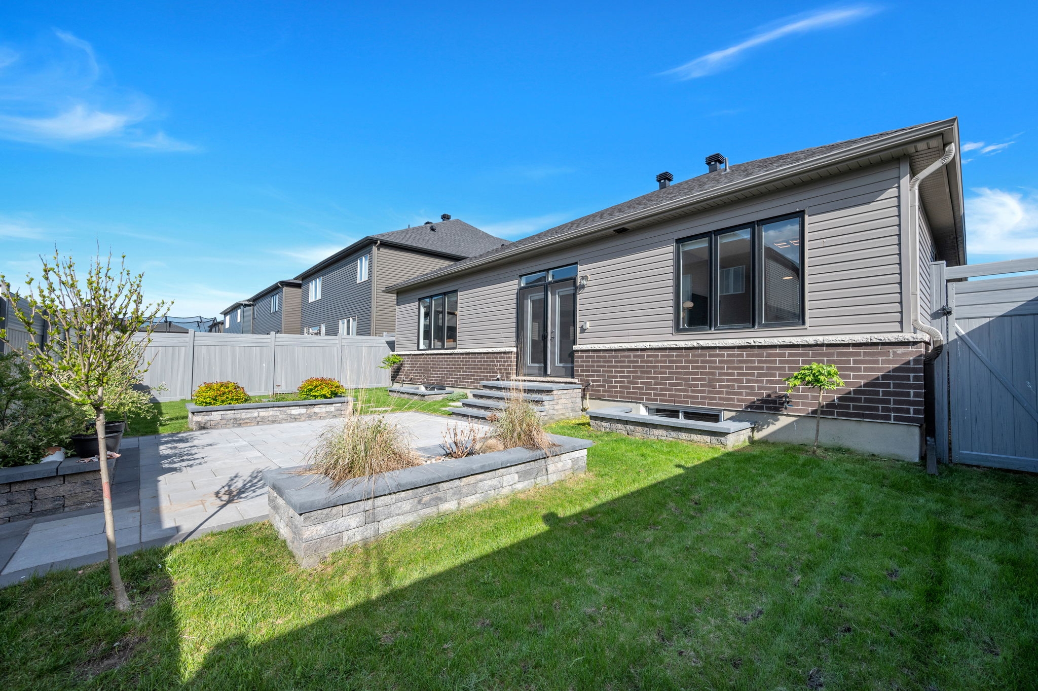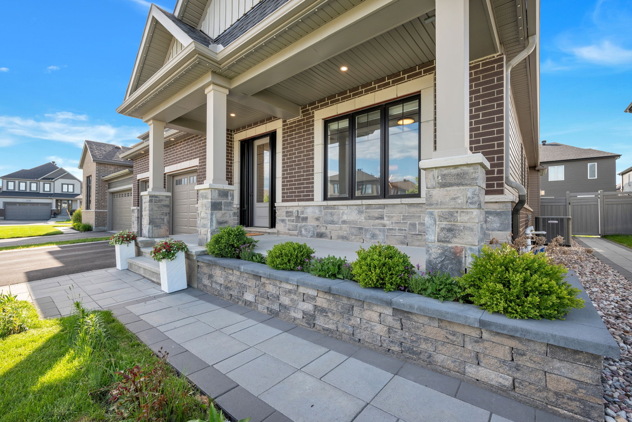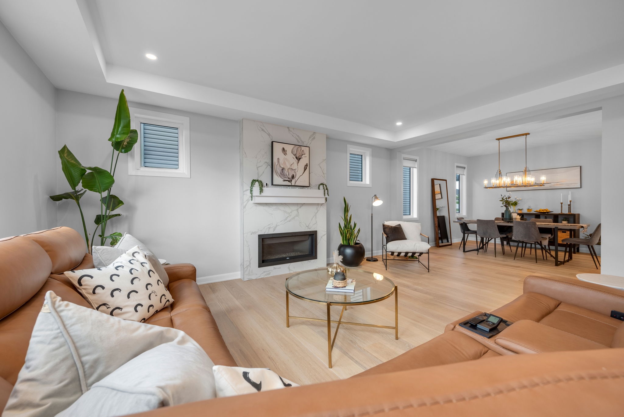 Experience elegance in this stunning 2+2 bedroom bungalow, showcasing refined décor and exceptional features. Permanent celebration lighting and upgraded exterior fixtures enhance its curb appeal, complemented by the interlock walkway and covered veranda with pot lights. A full security system ensures peace of mind.Step through the grand 8-foot high front door into a foyer with oversized tile, high baseboards, and 9-foot flat ceilings. Sophistication continues with five-panel interior doors, wide-plank hardwood floors, and upgraded light fixtures throughout.The chefs kitchen features a centre island with breakfast bar, quartz countertops with a striking waterfall edge, and stylish two-tone cabinetry. Most blinds are motorized, effortlessly controlling natural light. Twin dining room windows brighten the space, while the living room boasts a bold vertical gas fireplace.The primary suite offers a walk-in closet and a luxurious 5-piece ensuite with a glass shower, standalone tub, and twin sink vanity. A second bedroom with an oversized window and a well-appointed 5-piece main bath complete the main level.Main-floor laundry includes quartz countertops. An open hardwood staircase leads to an expansive lower level with a rec room, den, and two additional bedrooms. The kitchenette has quartz countertops and a wine fridge, while the spa-like 5-piece bath features radiant floor heating, a full-body wash shower, linen storage, and a private sauna.The PVC fenced yard provides a retreat with an interlock patio. The fully custom heated garage features a natural gas heater, EV charger, custom storage, and newly re-finished flooring in 2024, plus floor-to-ceiling slatwalls for optimal organization. Upgrades include an automatic natural gas generator (2023), three rear gas hookups for BBQs and fire pits, California Closets (2023), and interlock landscaping (2023).